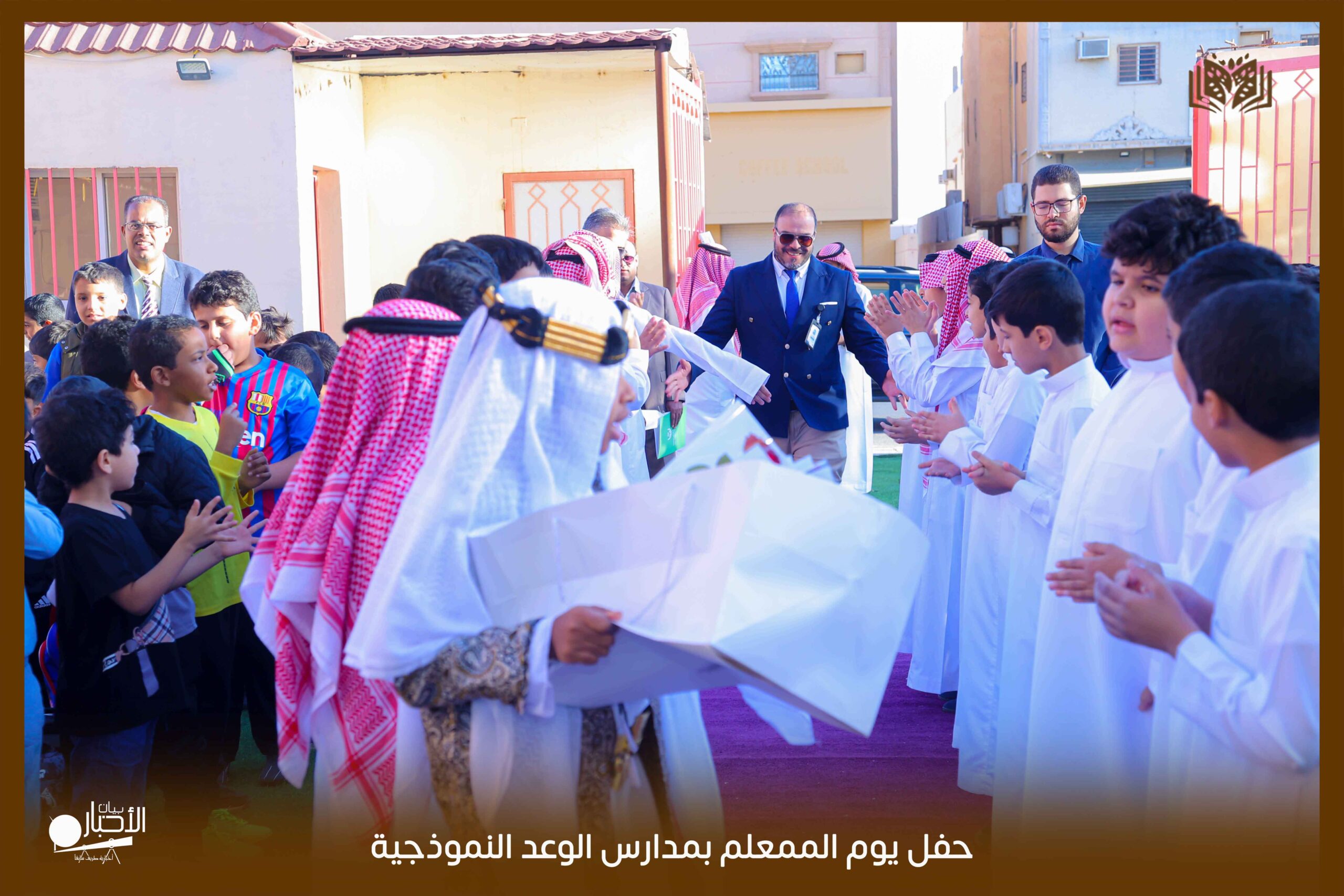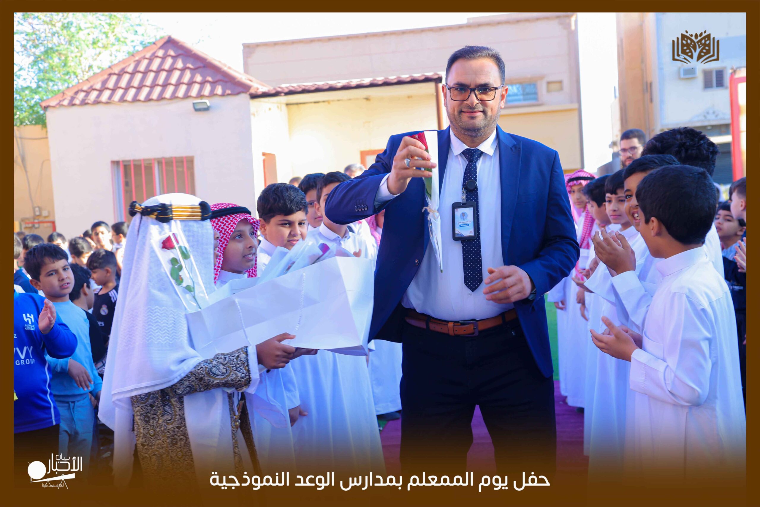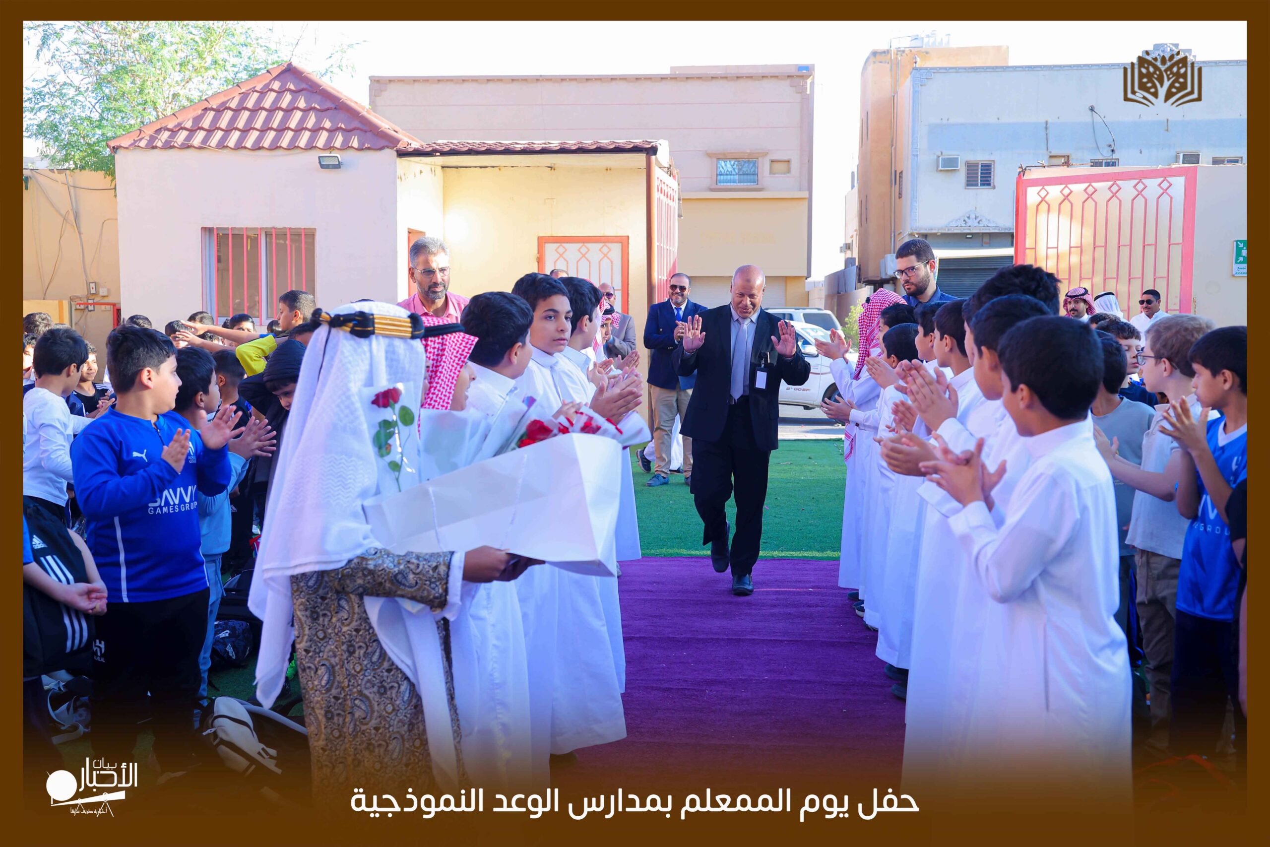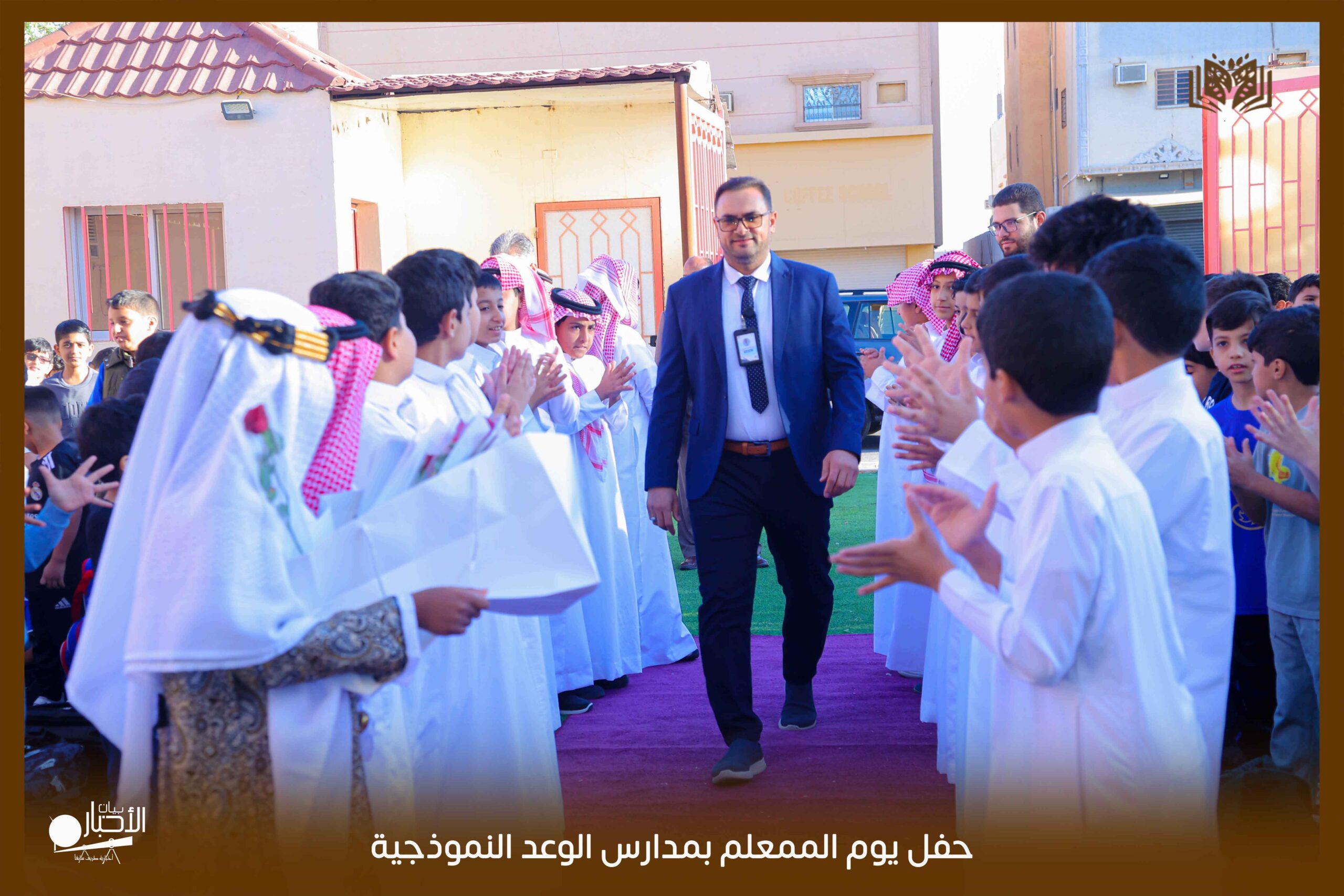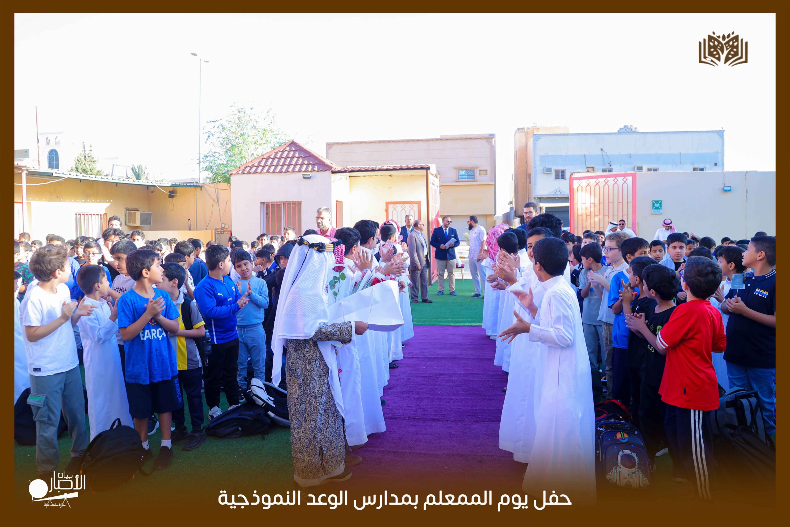 أقامت مدارس الوعد النموذجية الأهلية ( المرحلة الابتدائية ) تكريمًا لمعلمي المدرسة وذلك تزامنا مع احتفال اليوم العالمي للمعلم ٢٠٢٥، حيث شارك بعض من أولياء أمور الطلاب في جدارية يوم المعلم بكتابة عبارات الشكر والثناء للمعلم الذي هو صانع الأجيال والمربي القدوة ٠