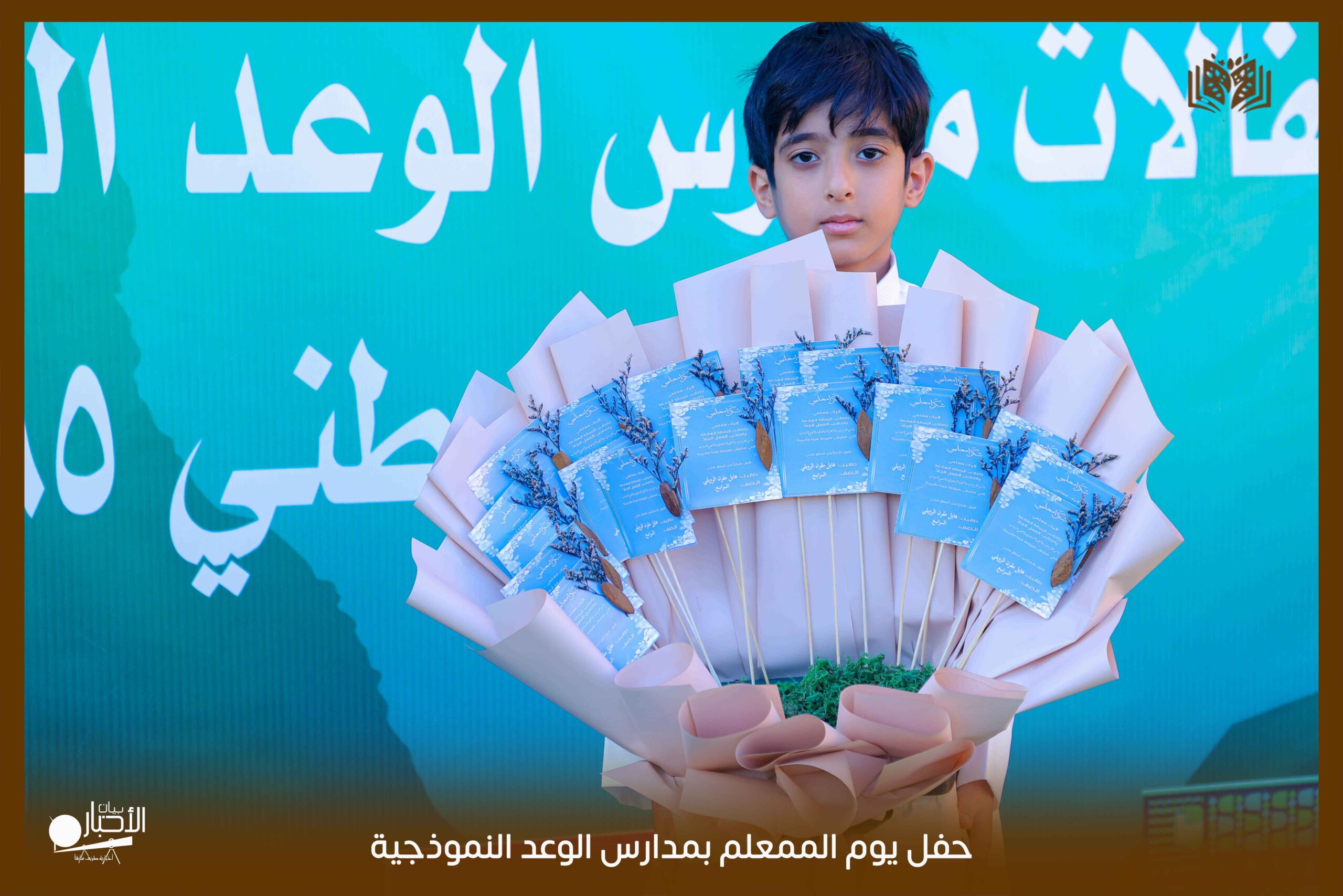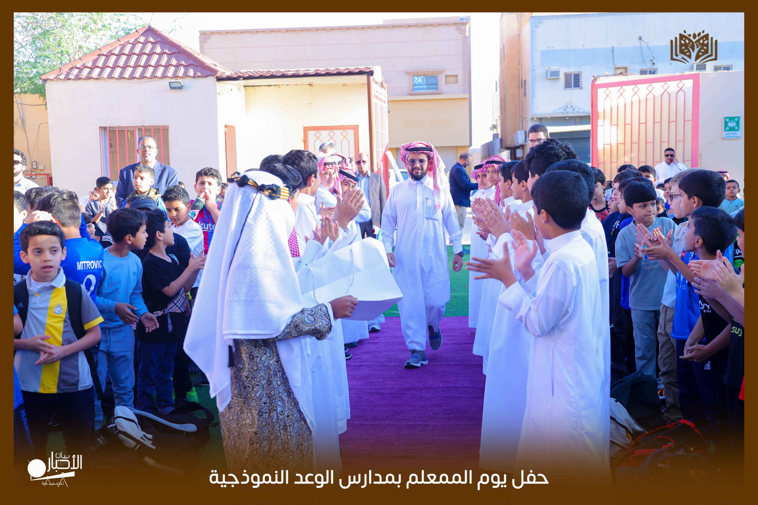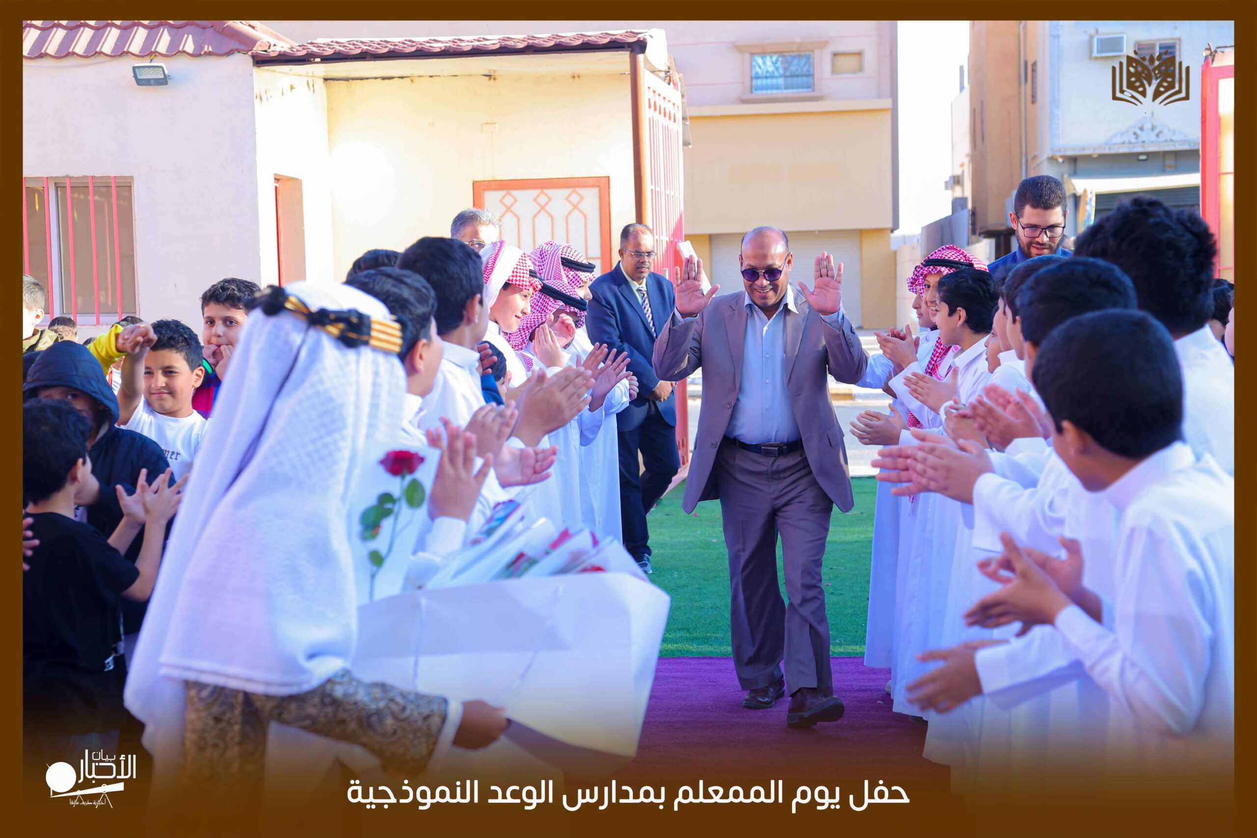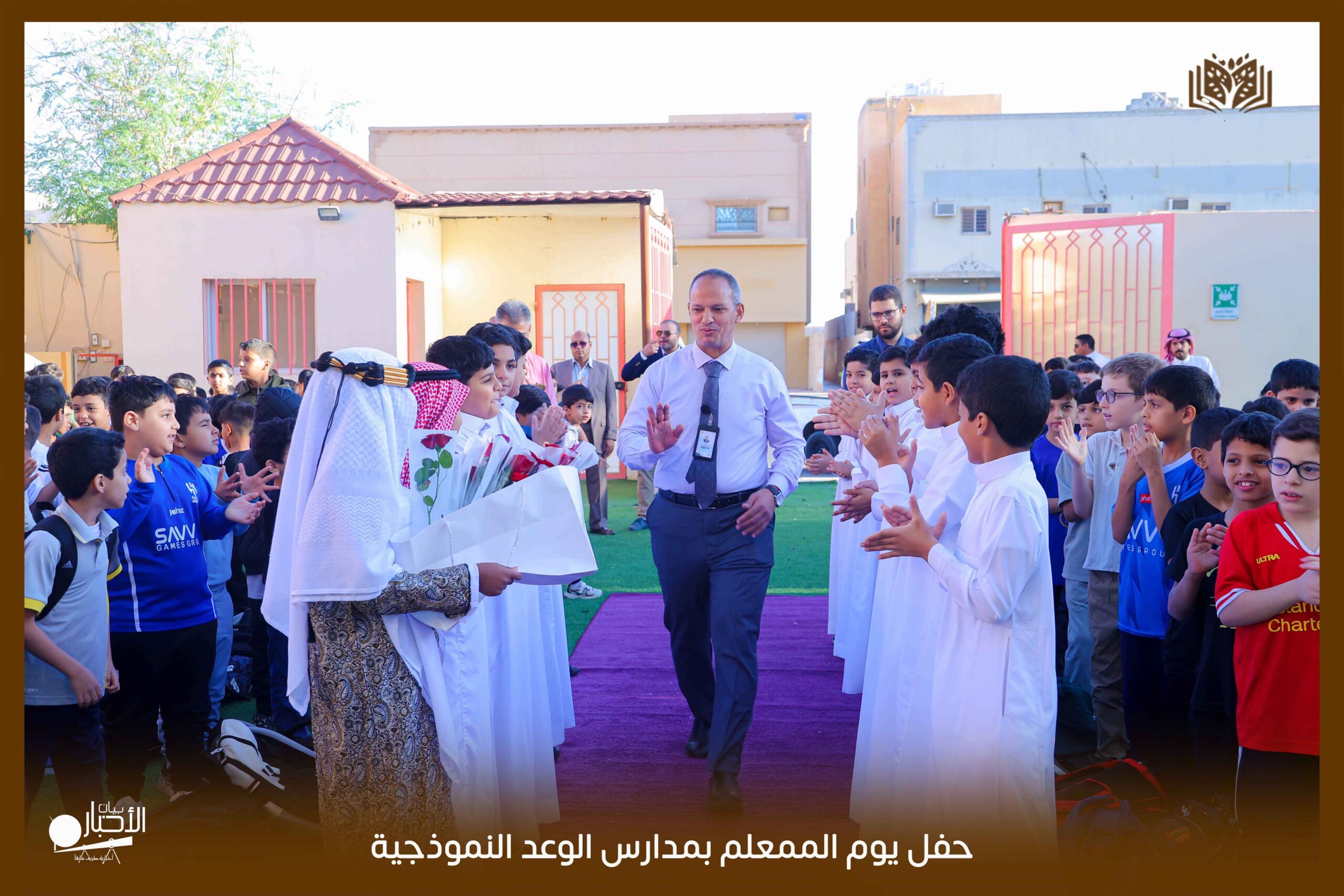 أقامت مدارس الوعد النموذجية الأهلية ( المرحلة الابتدائية ) تكريمًا لمعلمي المدرسة وذلك تزامنا مع احتفال اليوم العالمي للمعلم ٢٠٢٥، حيث شارك بعض من أولياء أمور الطلاب في جدارية يوم المعلم بكتابة عبارات الشكر والثناء للمعلم الذي هو صانع الأجيال والمربي القدوة ٠