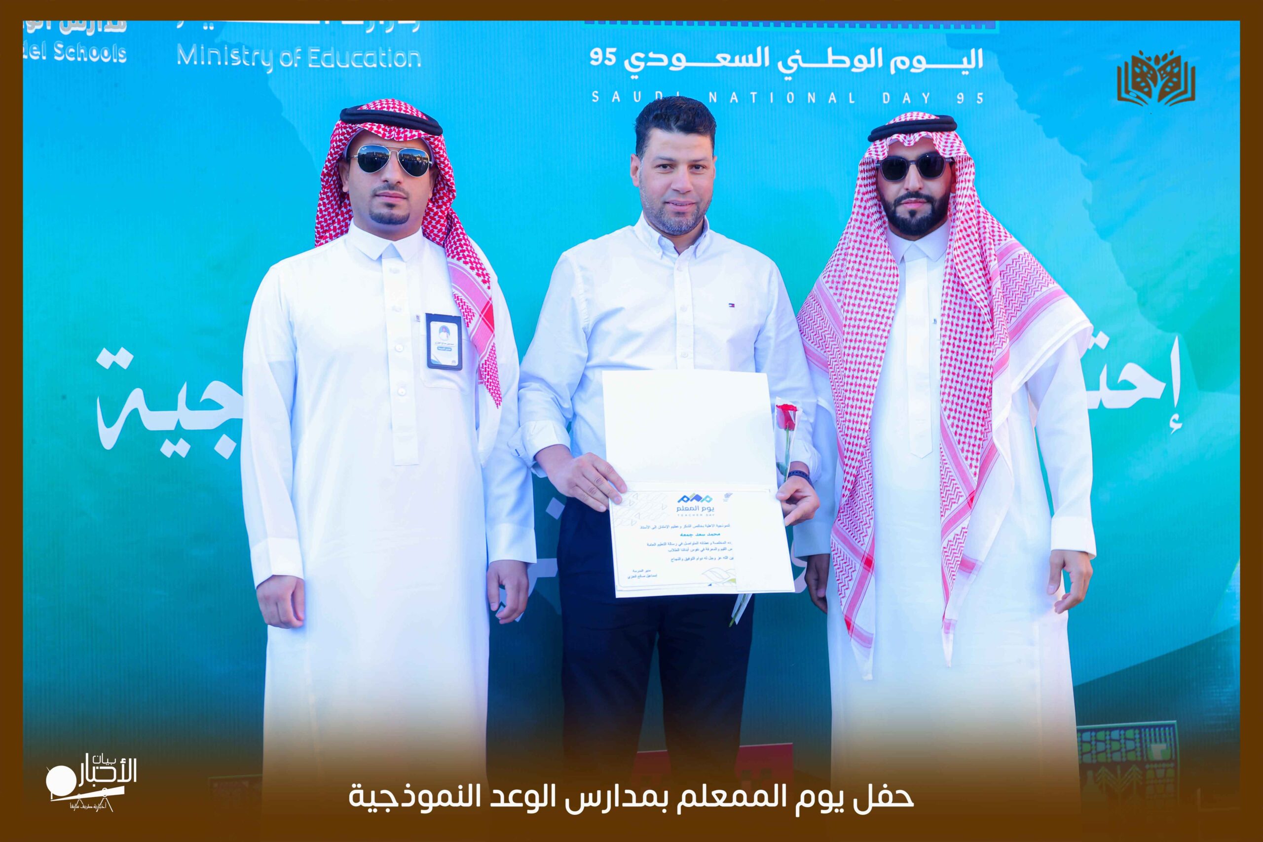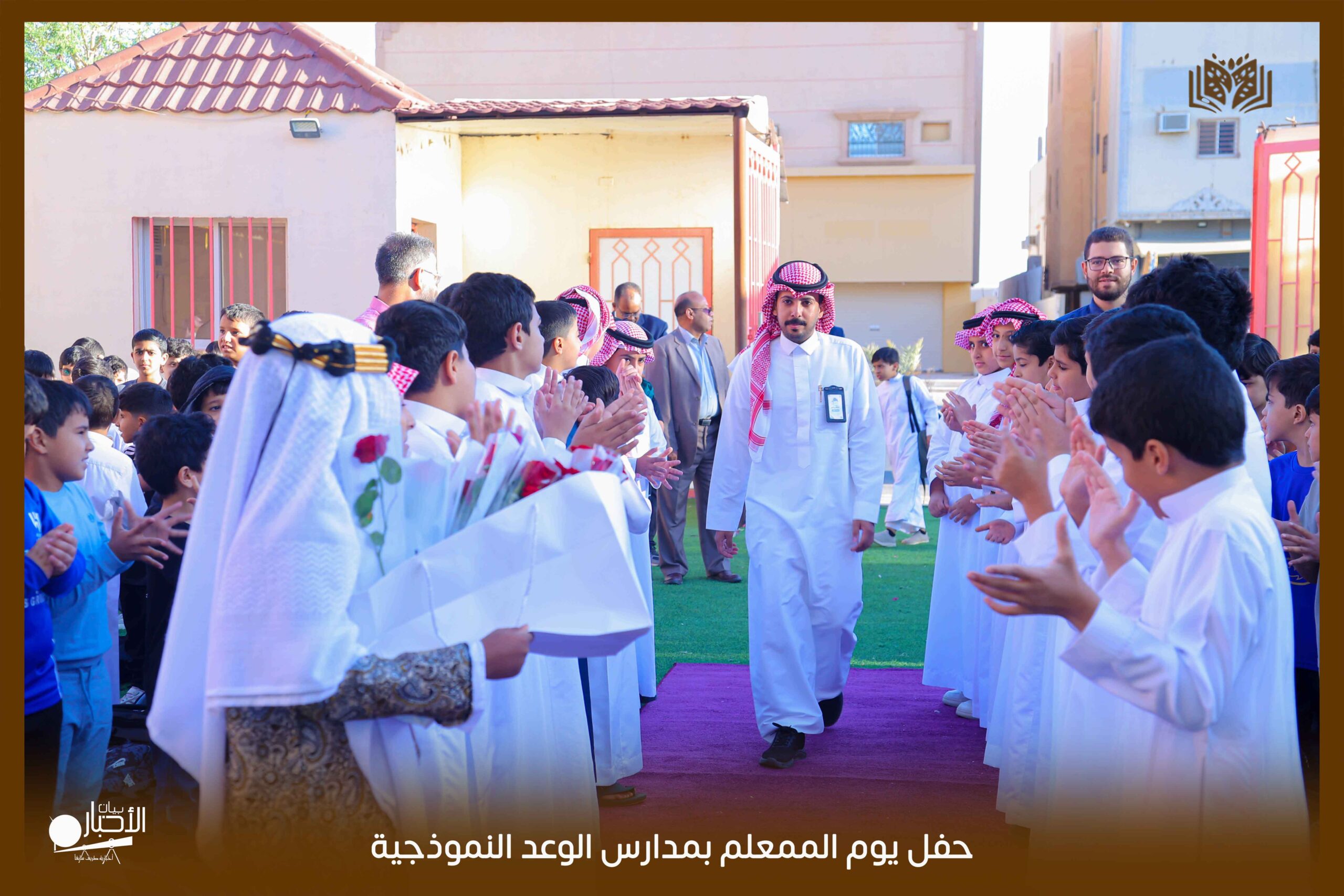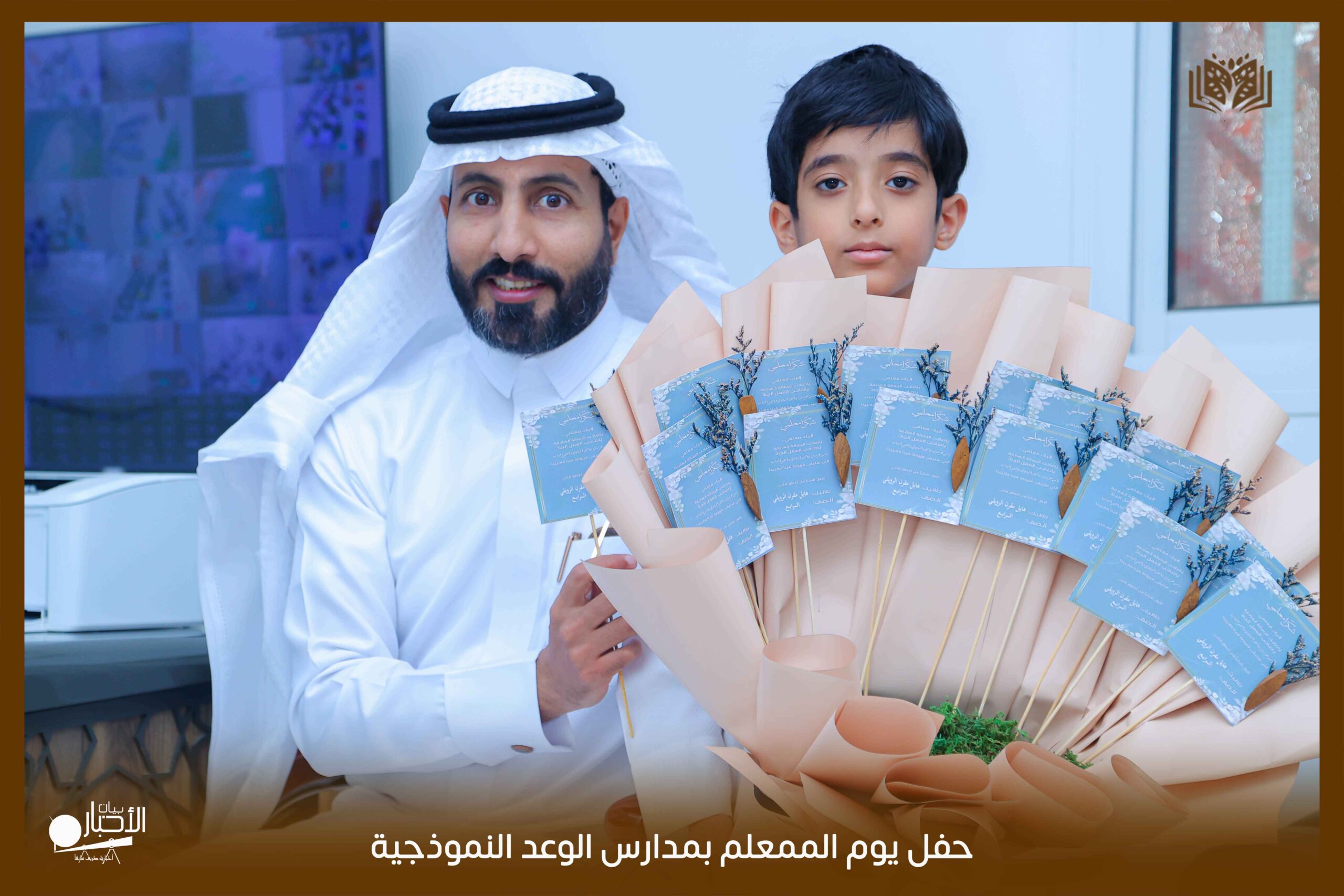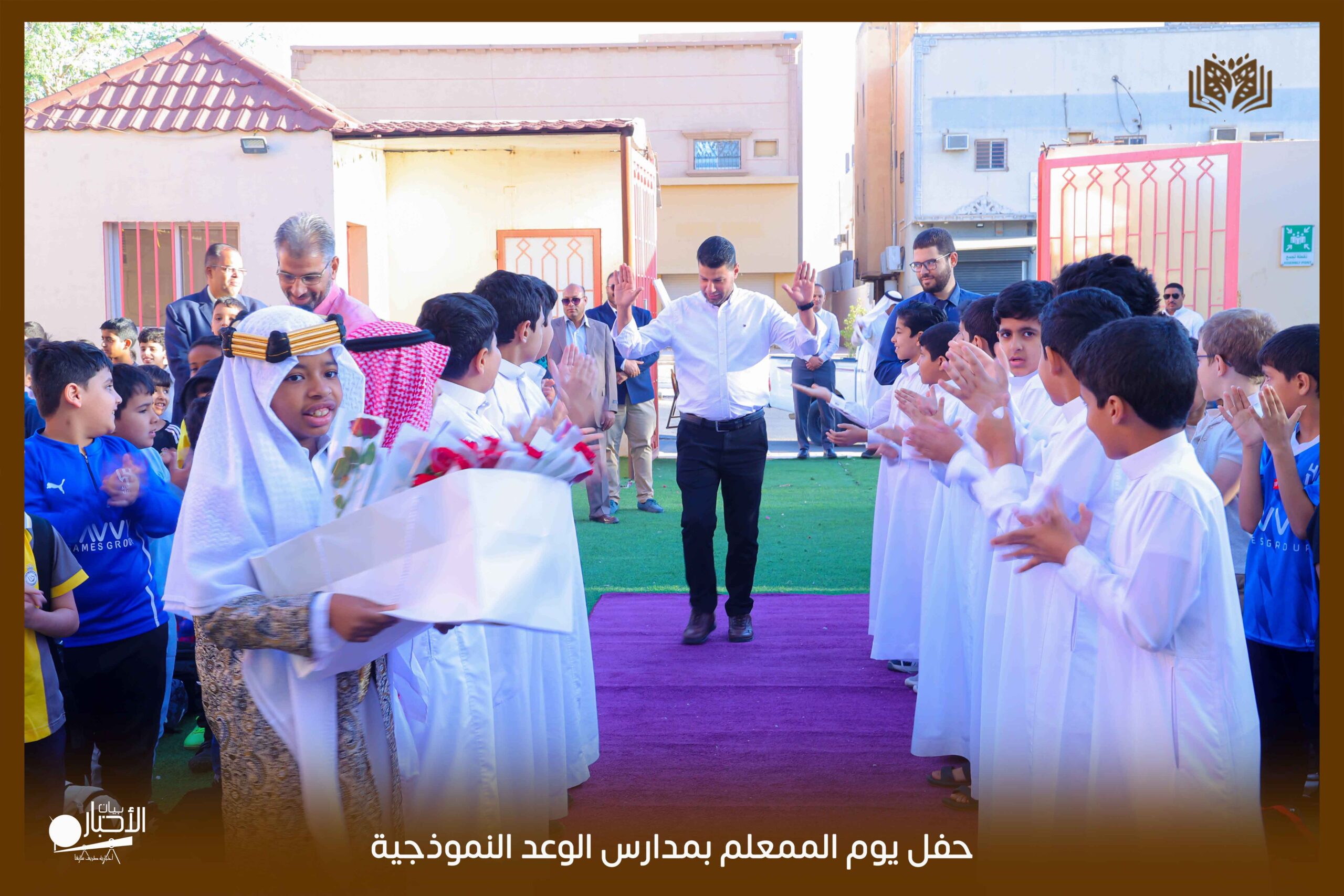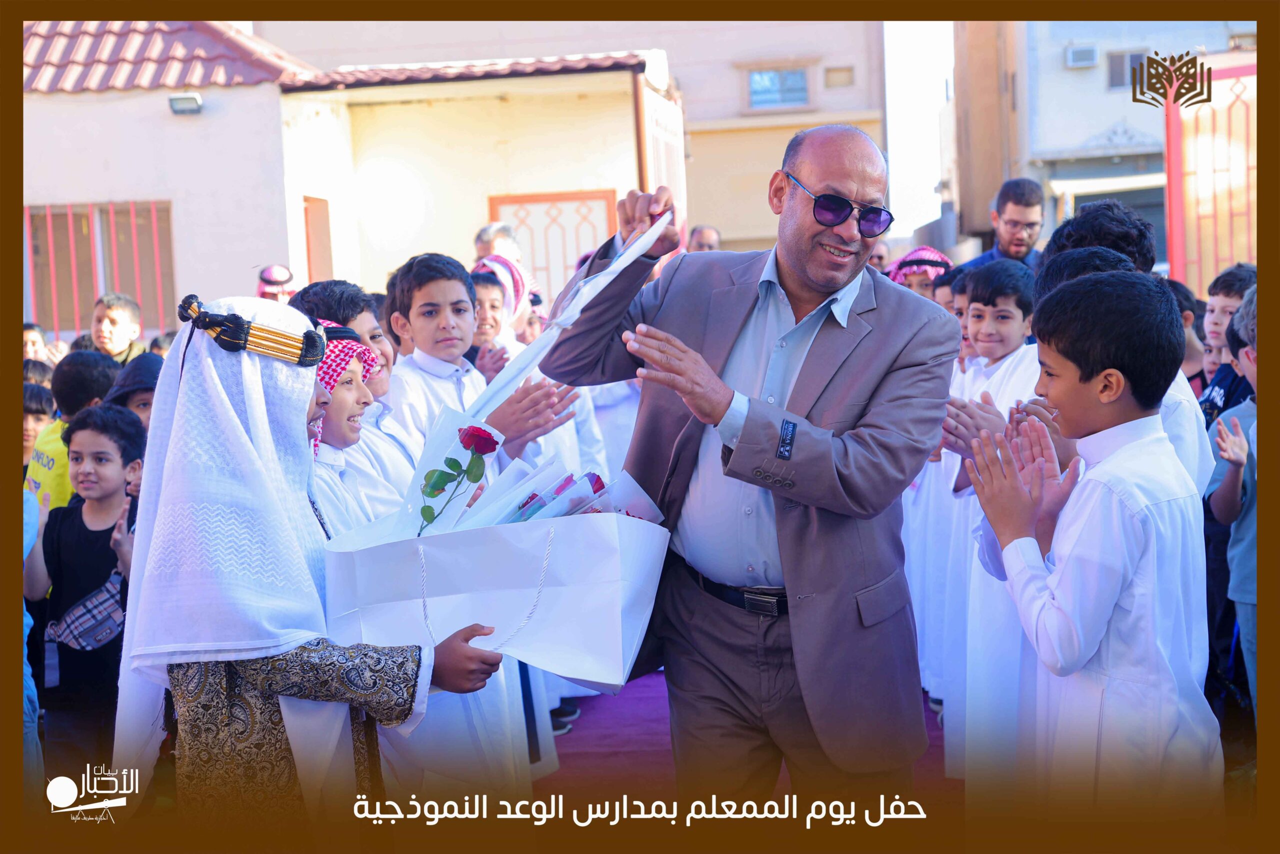 أقامت مدارس الوعد النموذجية الأهلية ( المرحلة الابتدائية ) تكريمًا لمعلمي المدرسة وذلك تزامنا مع احتفال اليوم العالمي للمعلم ٢٠٢٥، حيث شارك بعض من أولياء أمور الطلاب في جدارية يوم المعلم بكتابة عبارات الشكر والثناء للمعلم الذي هو صانع الأجيال والمربي القدوة ٠