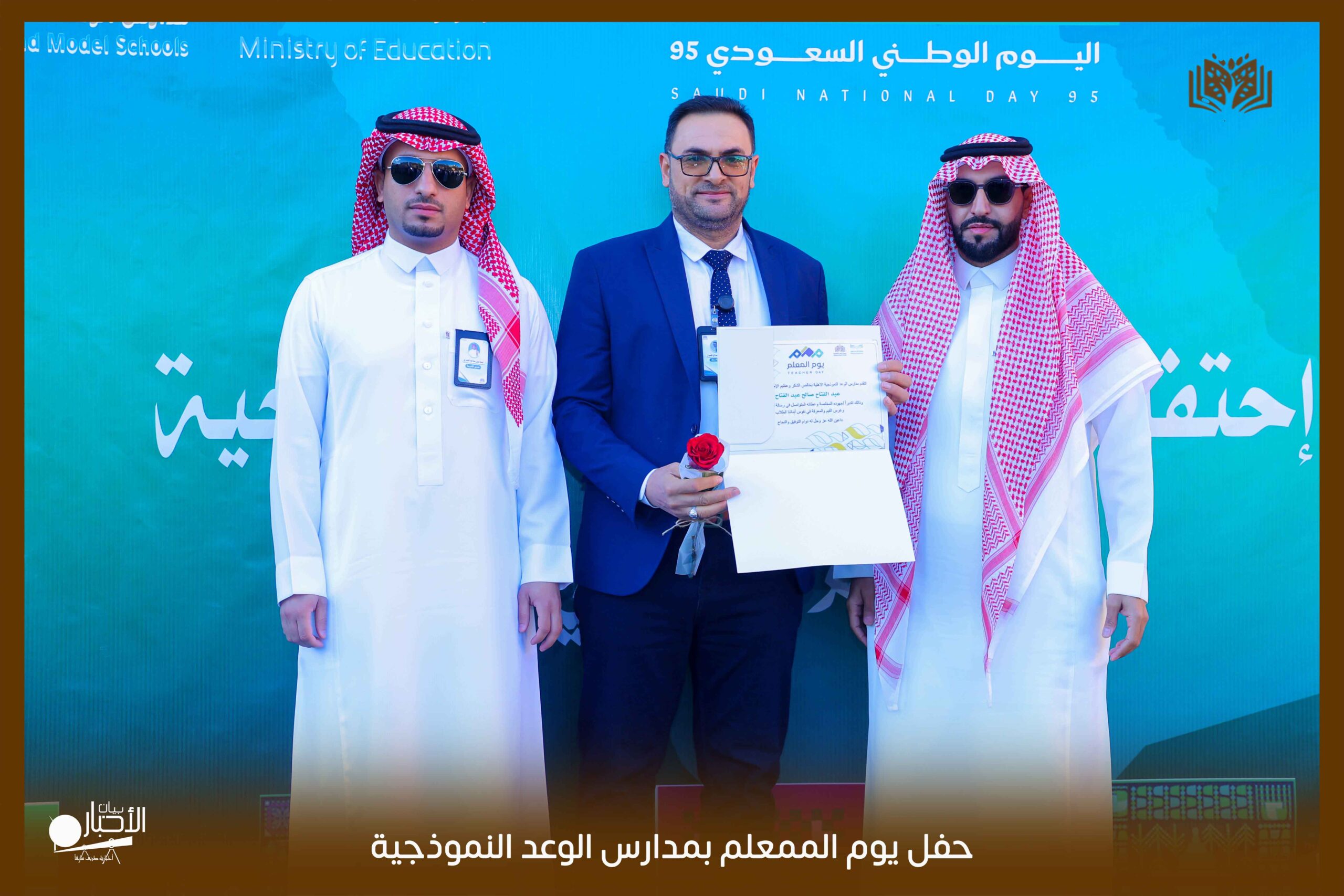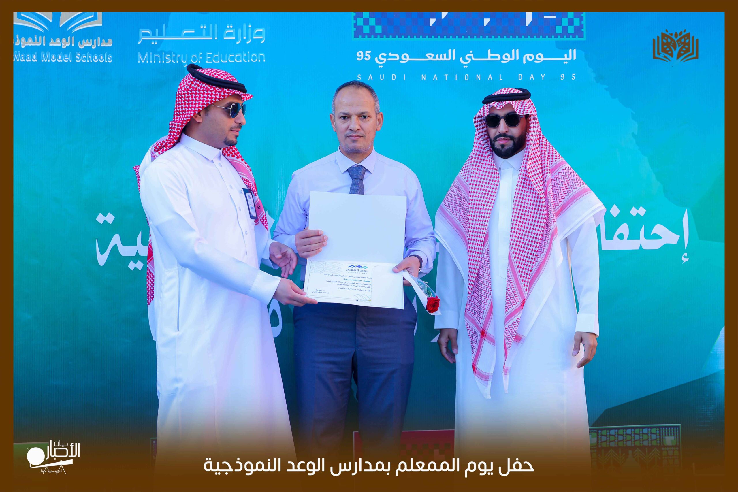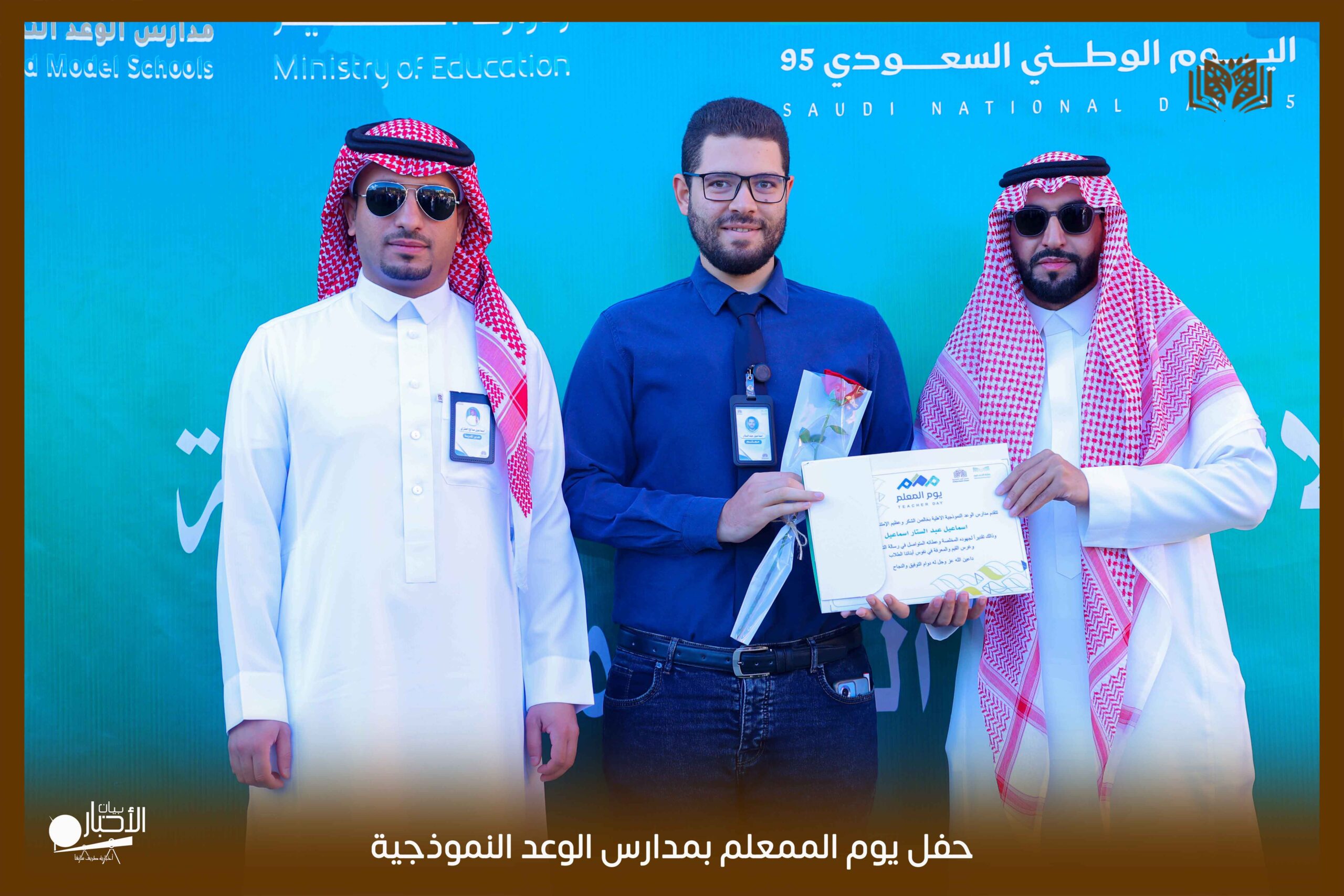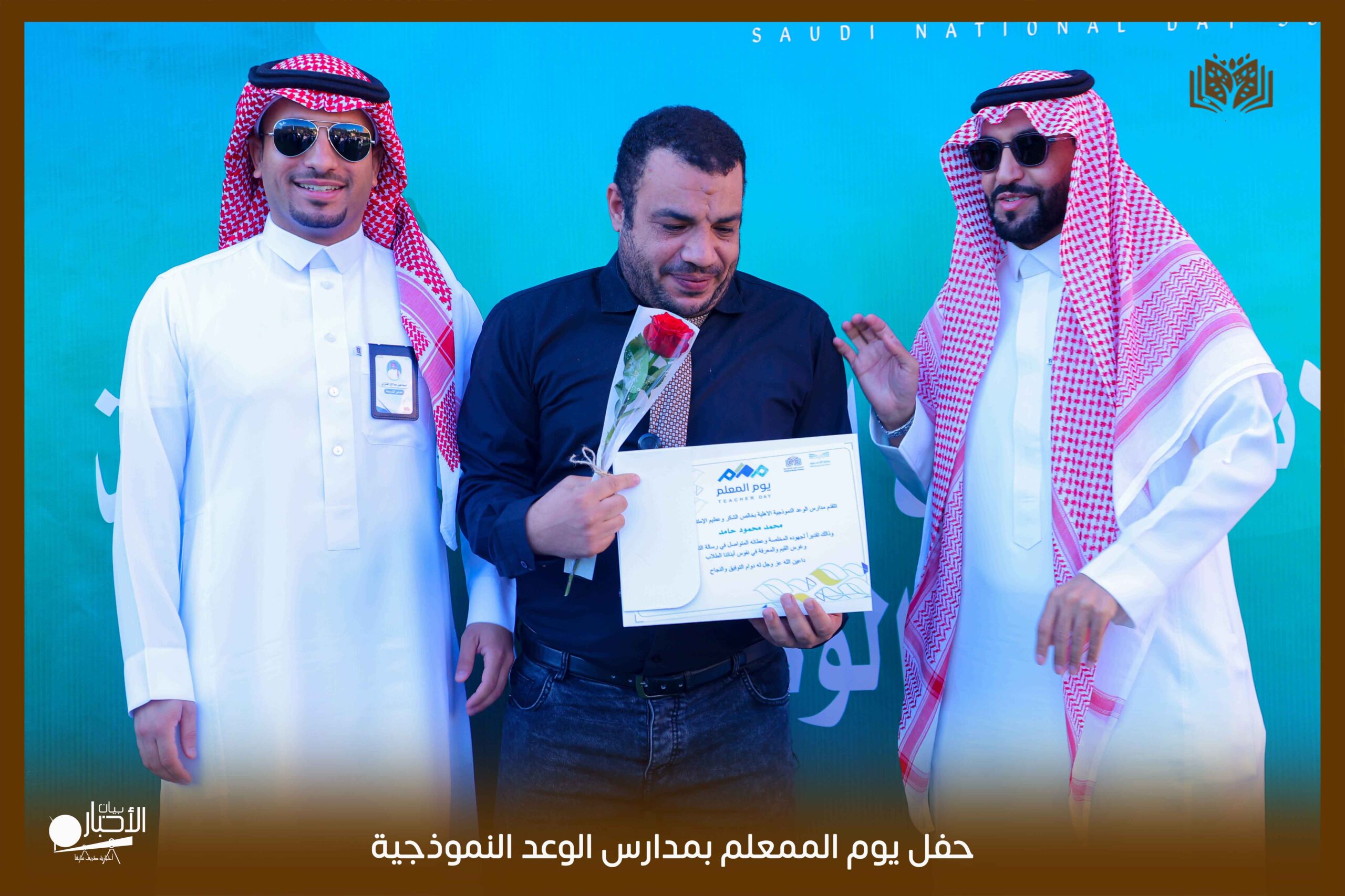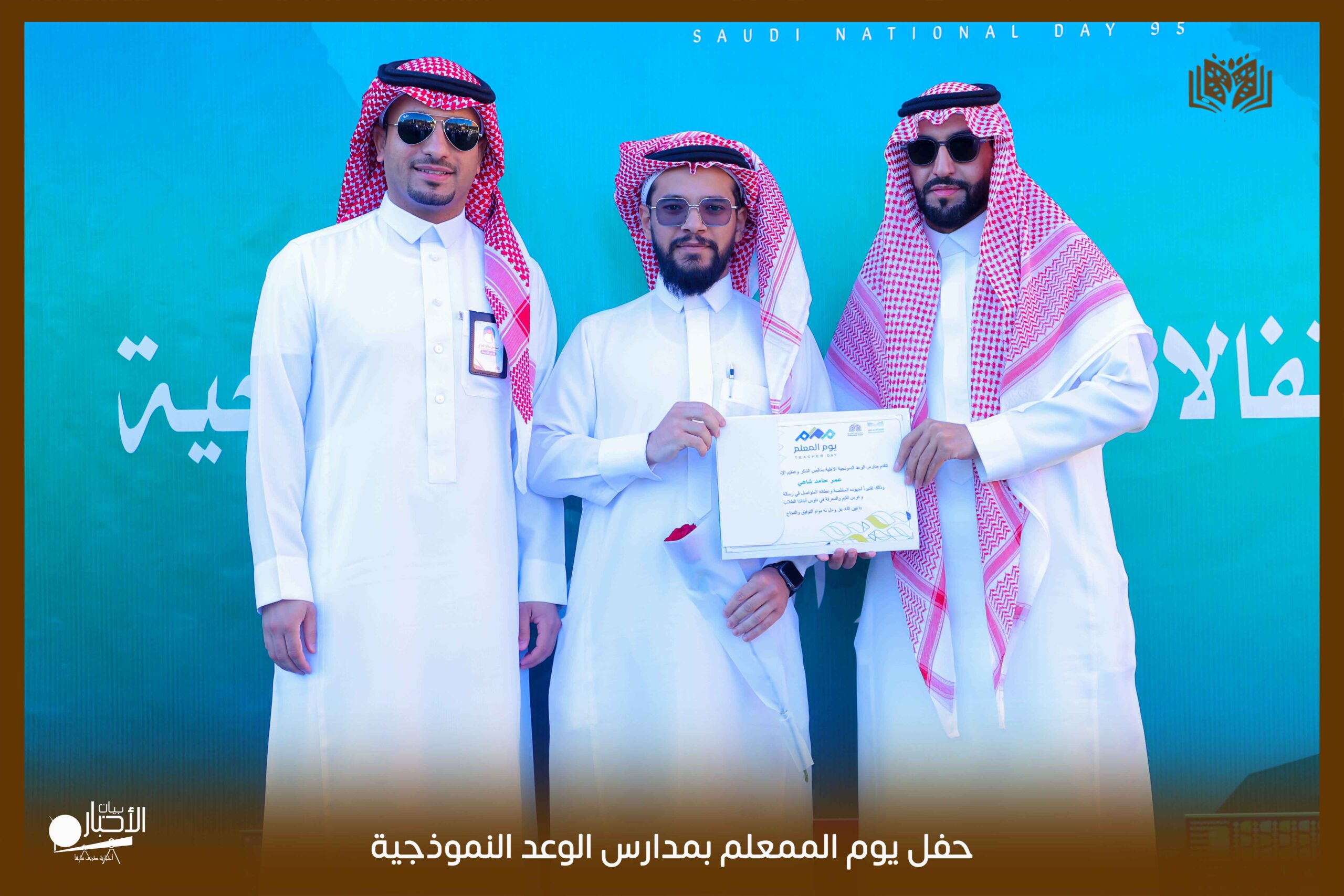 أقامت مدارس الوعد النموذجية الأهلية ( المرحلة الابتدائية ) تكريمًا لمعلمي المدرسة وذلك تزامنا مع احتفال اليوم العالمي للمعلم ٢٠٢٥، حيث شارك بعض من أولياء أمور الطلاب في جدارية يوم المعلم بكتابة عبارات الشكر والثناء للمعلم الذي هو صانع الأجيال والمربي القدوة ٠