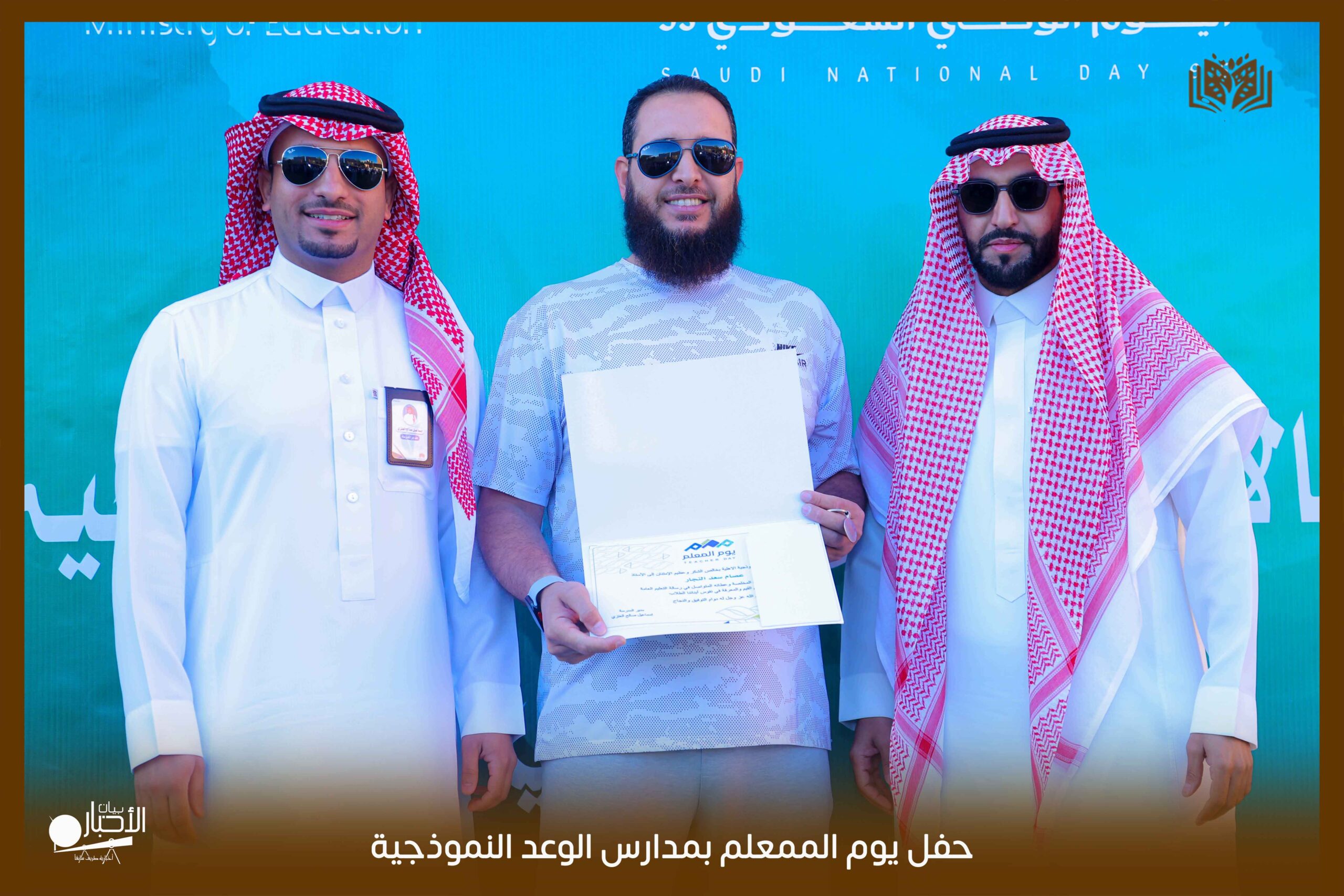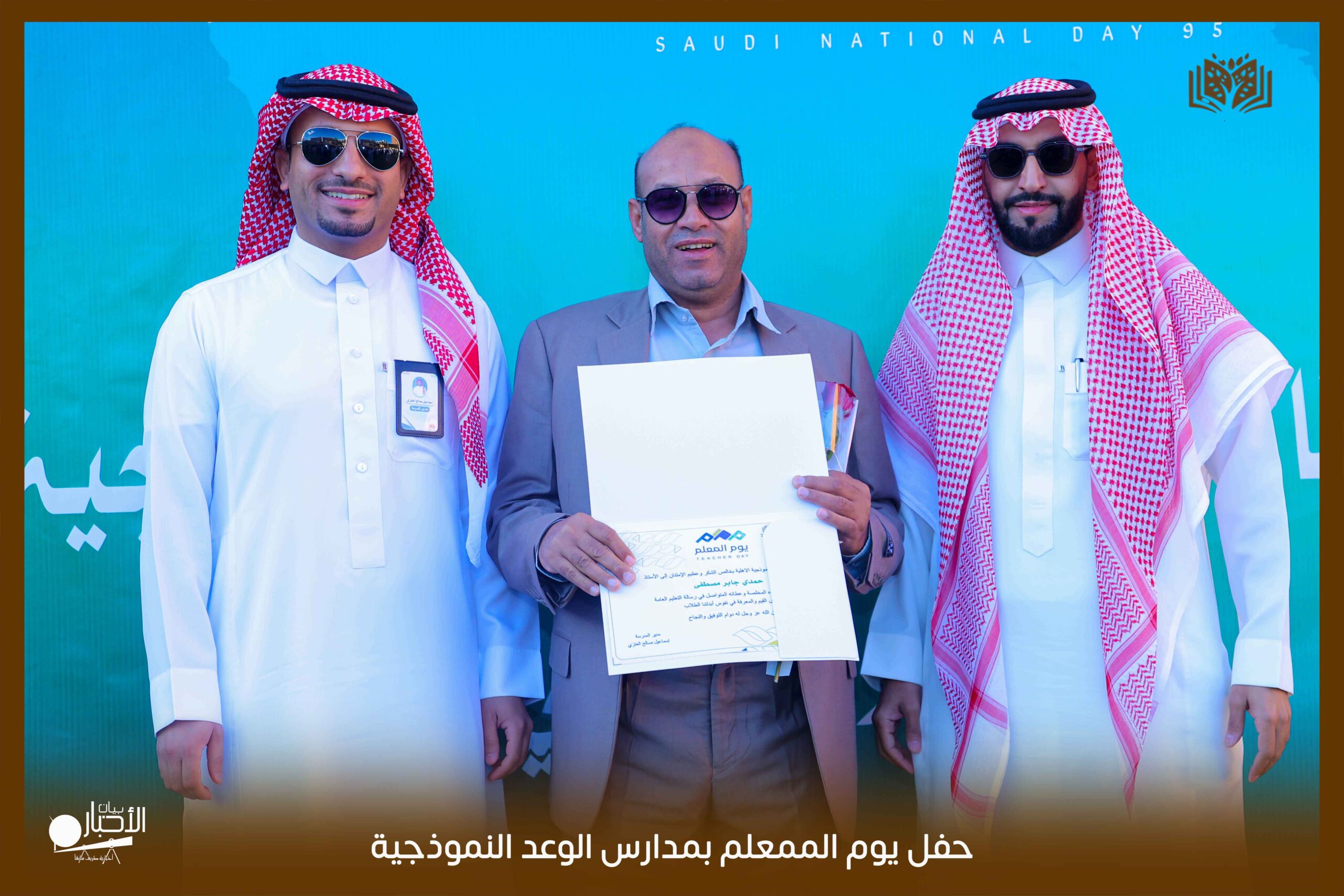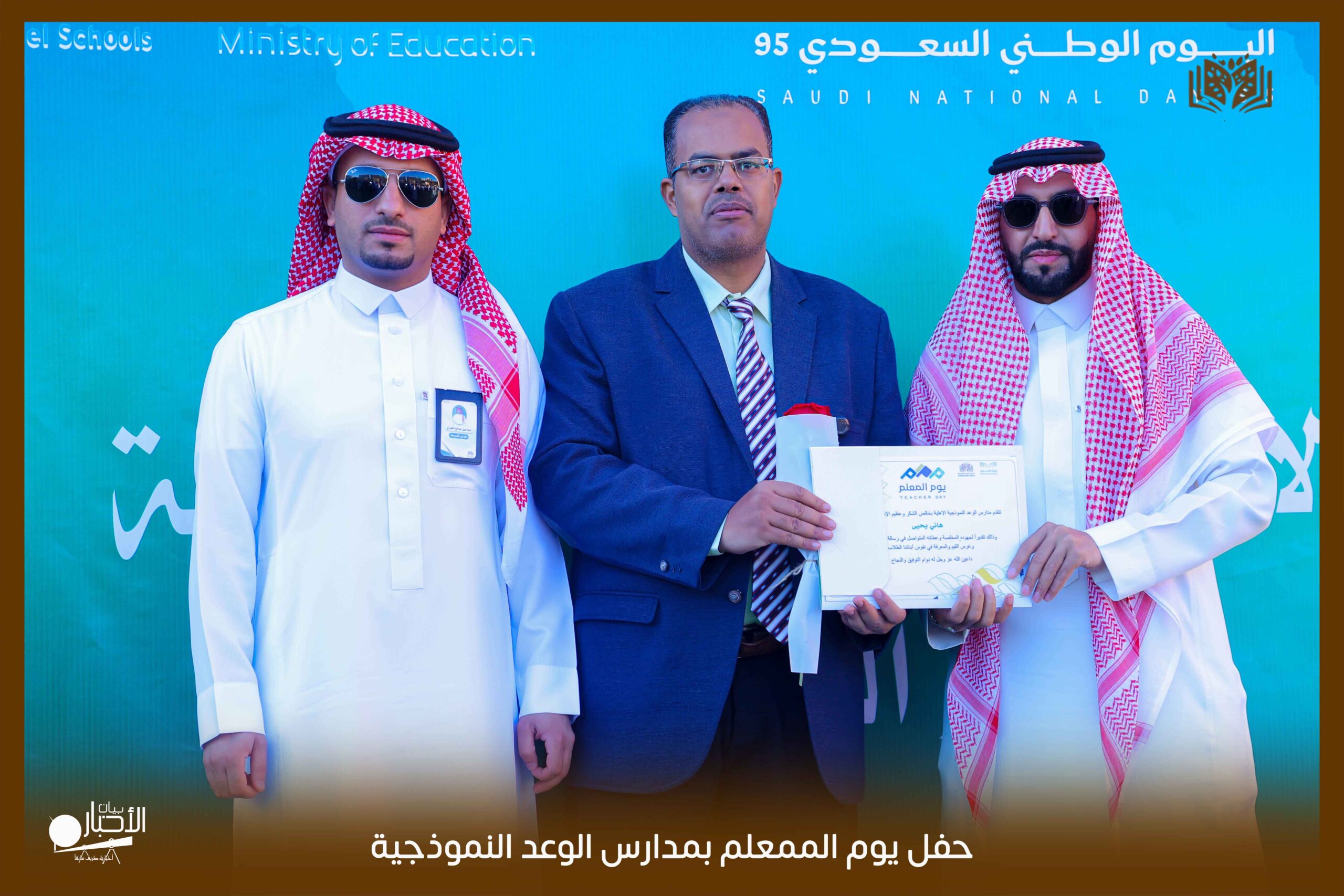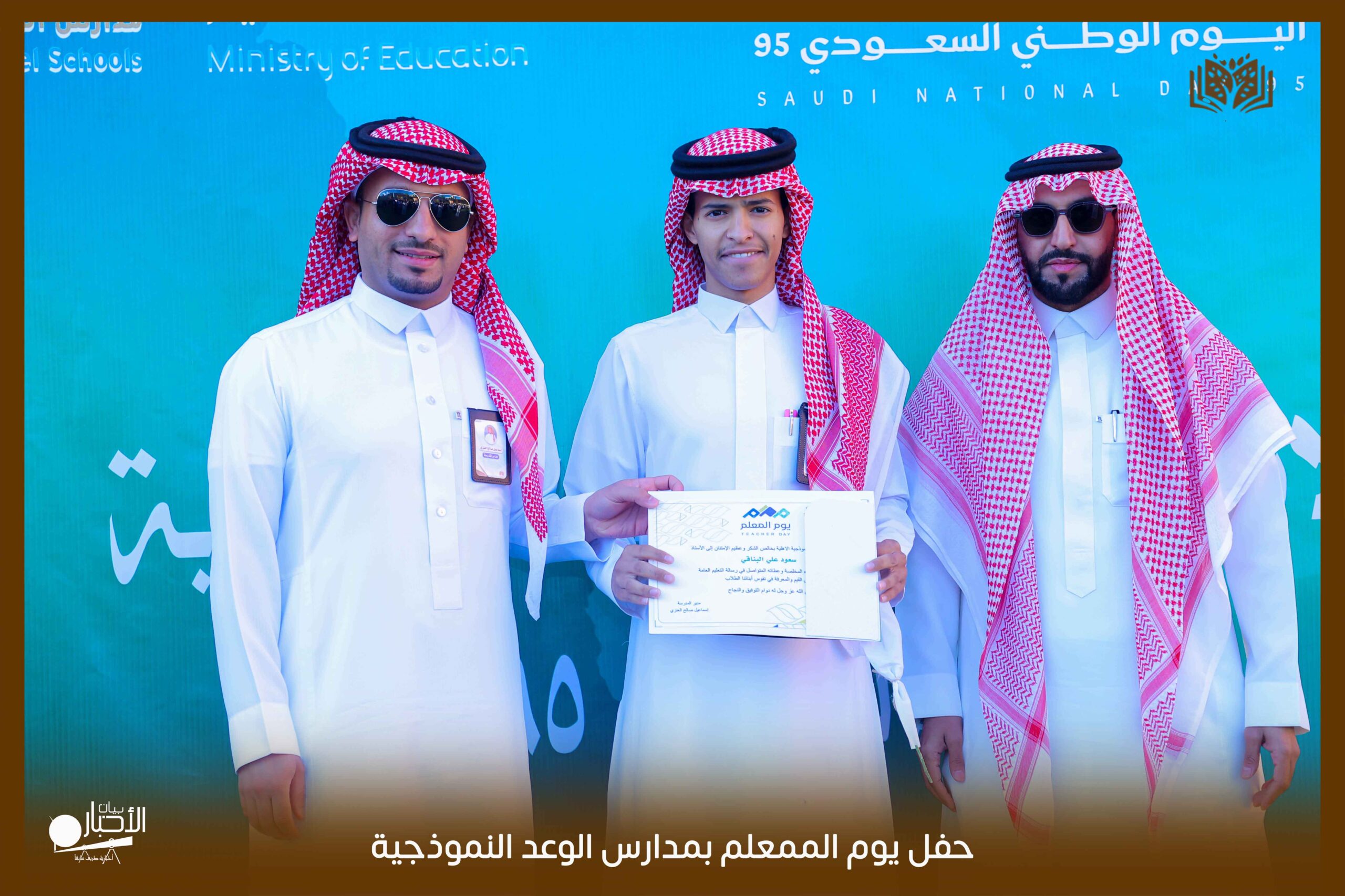 جاء ذلك التكريم من مدير المدرسة الأستاذ إسماعيل صالح العنزي حيث تم تكريم كلا من الأستاذ محمد سالم الرويلي المشرف العام على مدارس الوعد النموذجية والأستاذ عبدالرحمن حمود الرويلي مدير المرحلة المتوسطة والثانوية والأستاذ محمد سعد المشرف الفني بالمرحلة المتوسطة والثانوية ثم تكريم معلمي المدرسة وسط أجواء سادها روح المحبة والإخاء داعين الله عز وجل أن يكتب أجرهم ويجعل ما قدموا في ميزان حسناتهم ٠