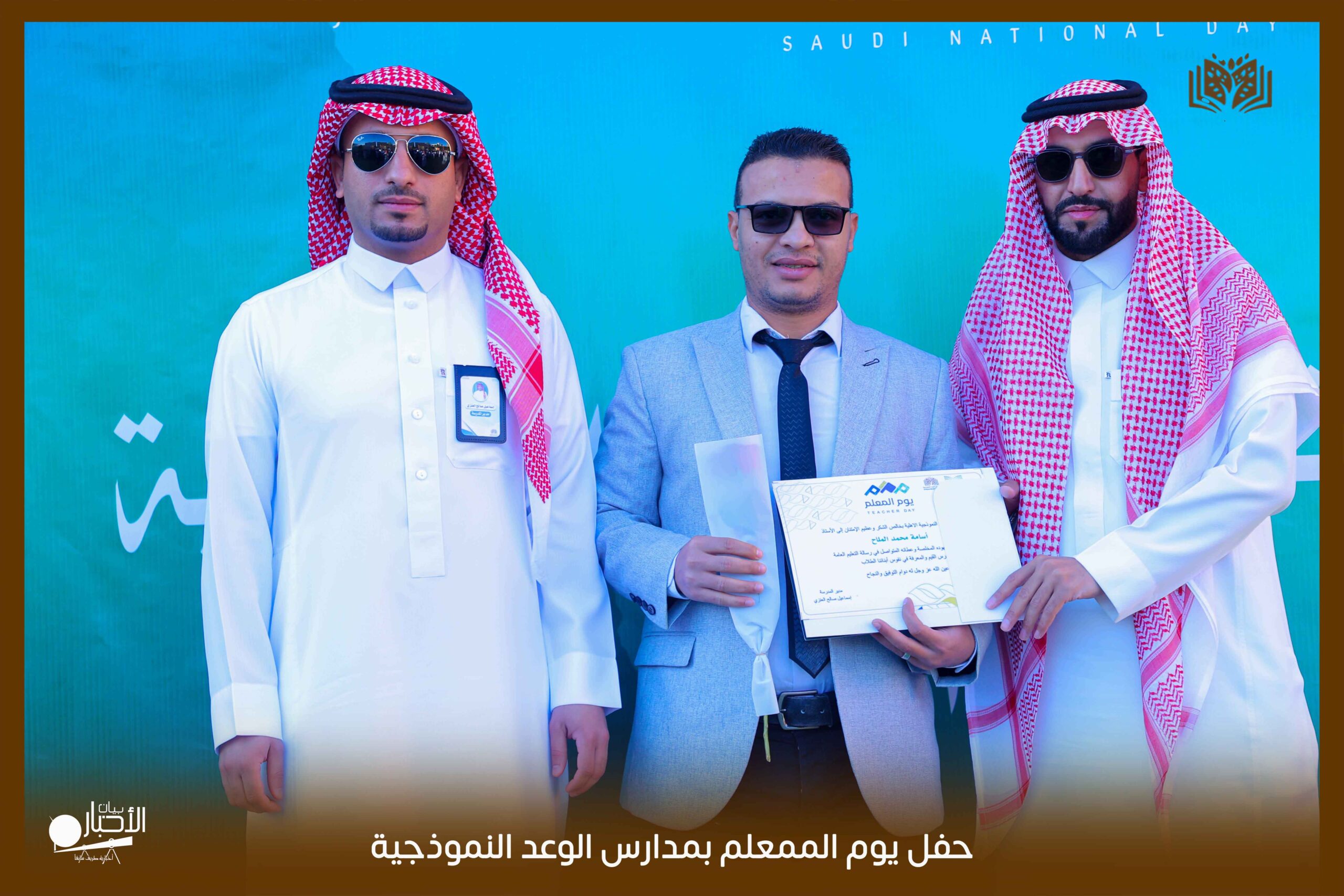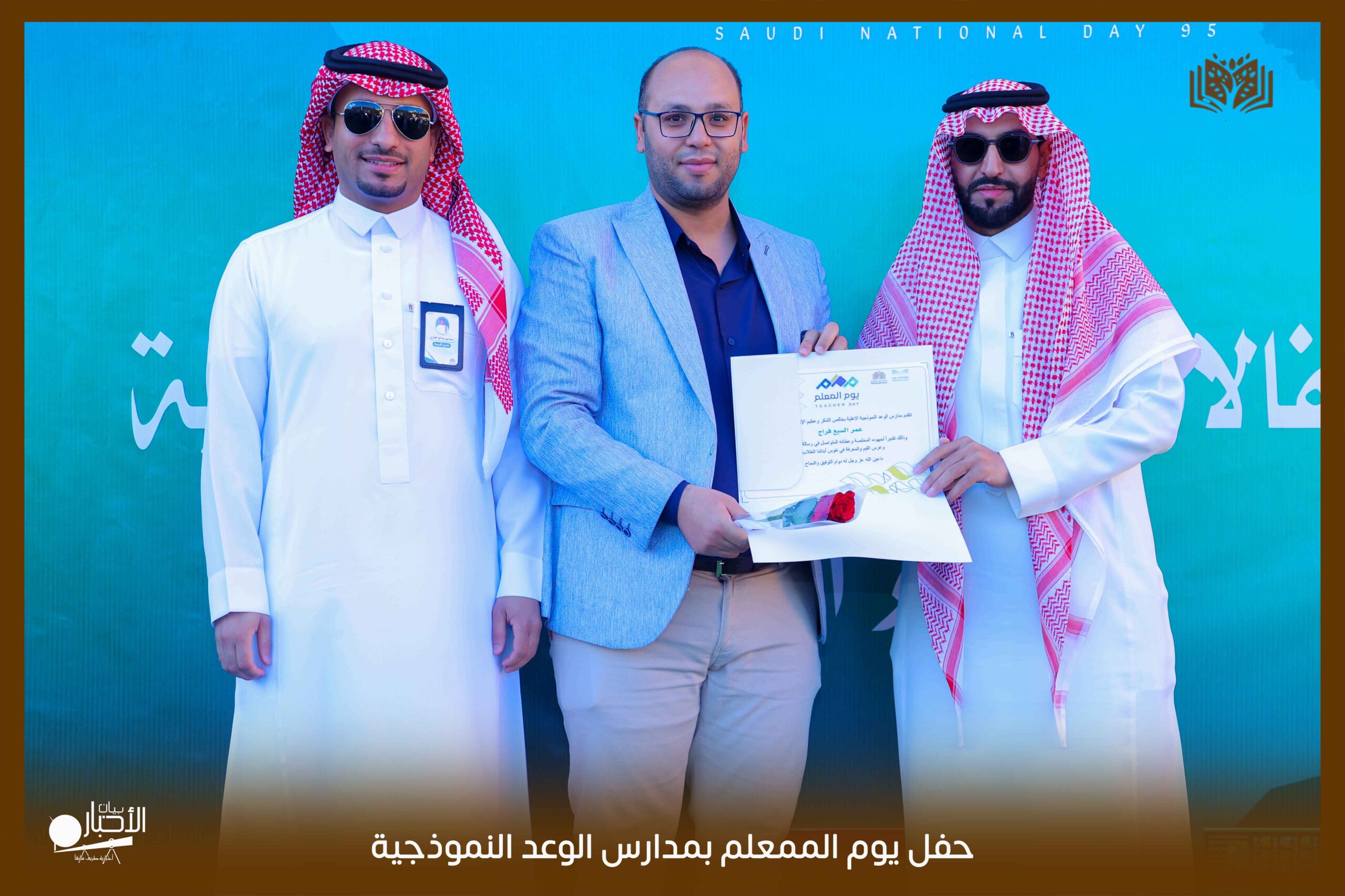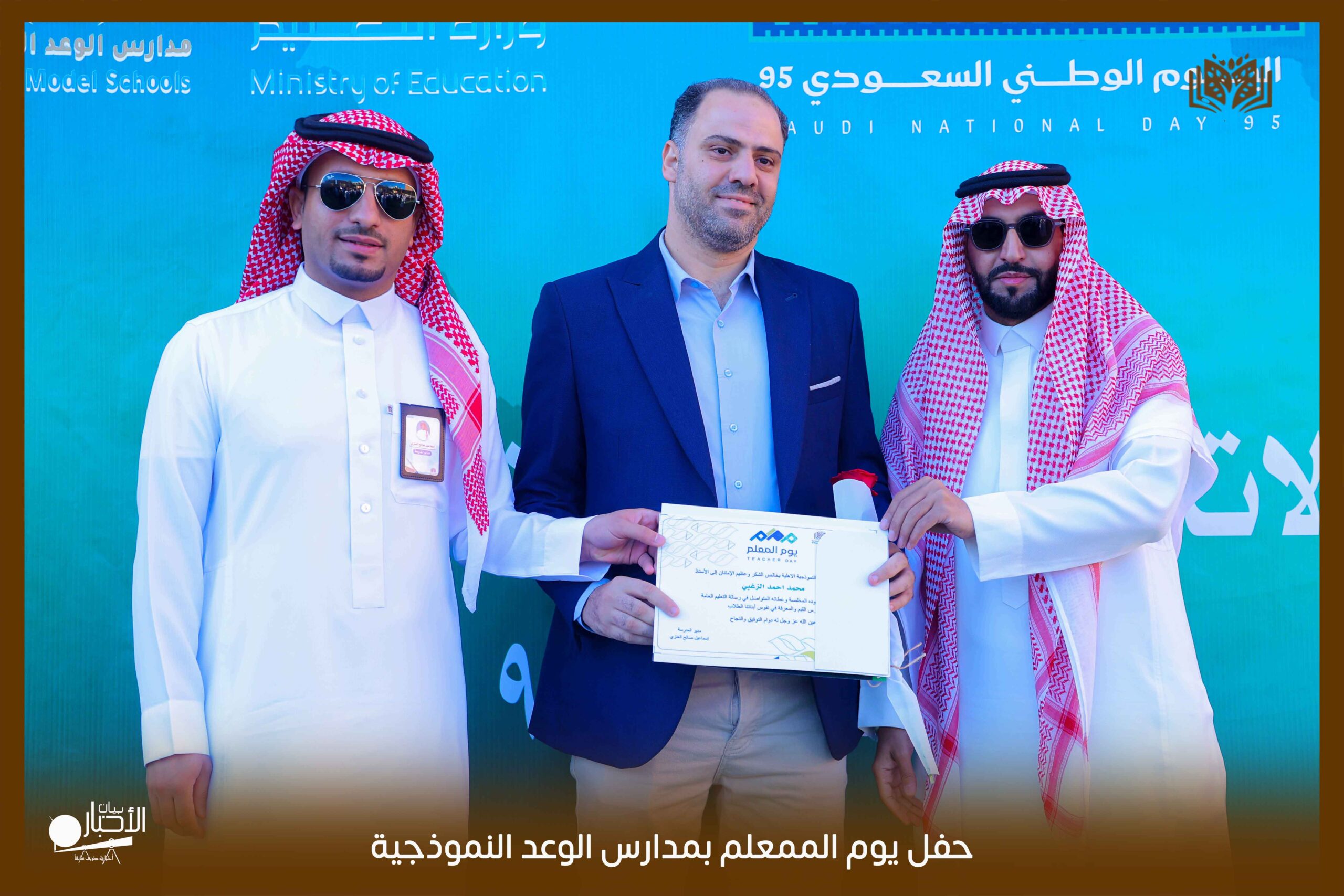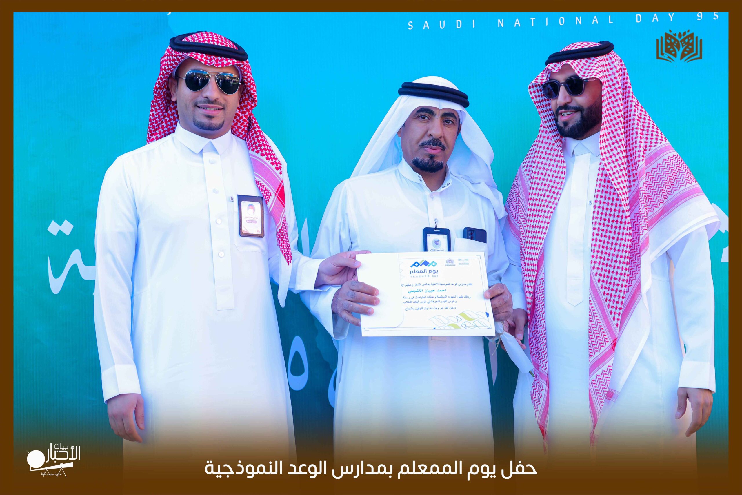 جاء ذلك التكريم من مدير المدرسة الأستاذ إسماعيل صالح العنزي حيث تم تكريم كلا من الأستاذ محمد سالم الرويلي المشرف العام على مدارس الوعد النموذجية والأستاذ عبدالرحمن حمود الرويلي مدير المرحلة المتوسطة والثانوية والأستاذ محمد سعد المشرف الفني بالمرحلة المتوسطة والثانوية ثم تكريم معلمي المدرسة وسط أجواء سادها روح المحبة والإخاء داعين الله عز وجل أن يكتب أجرهم ويجعل ما قدموا في ميزان حسناتهم ٠