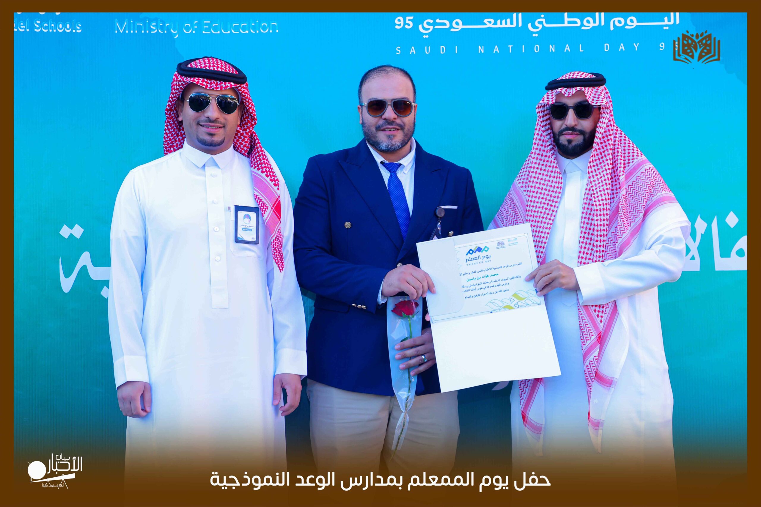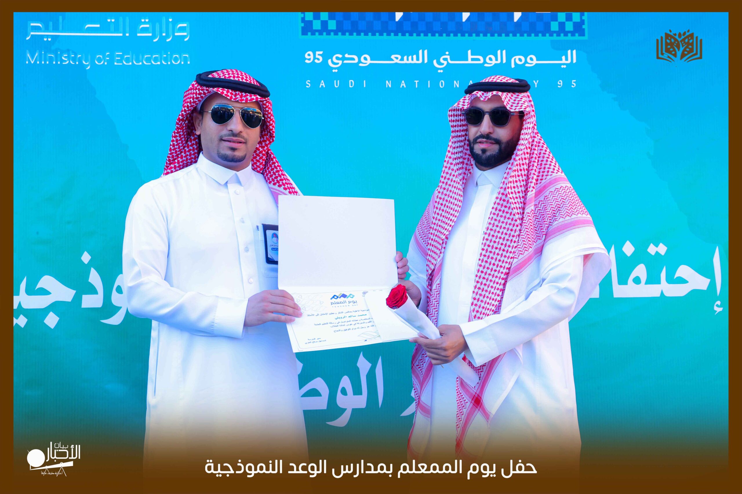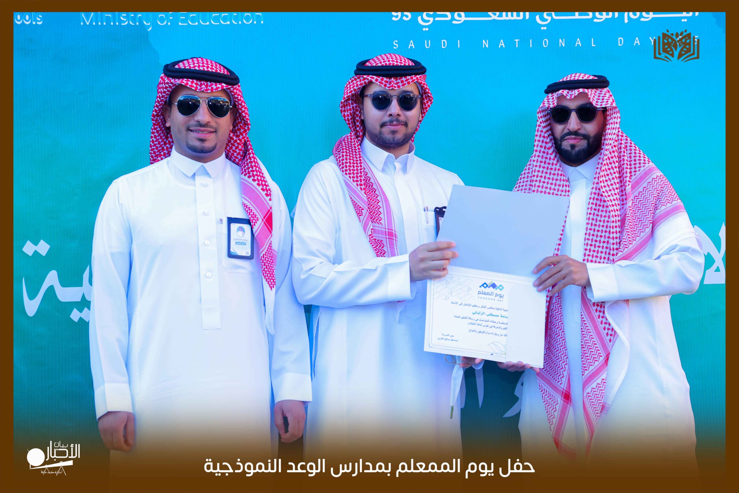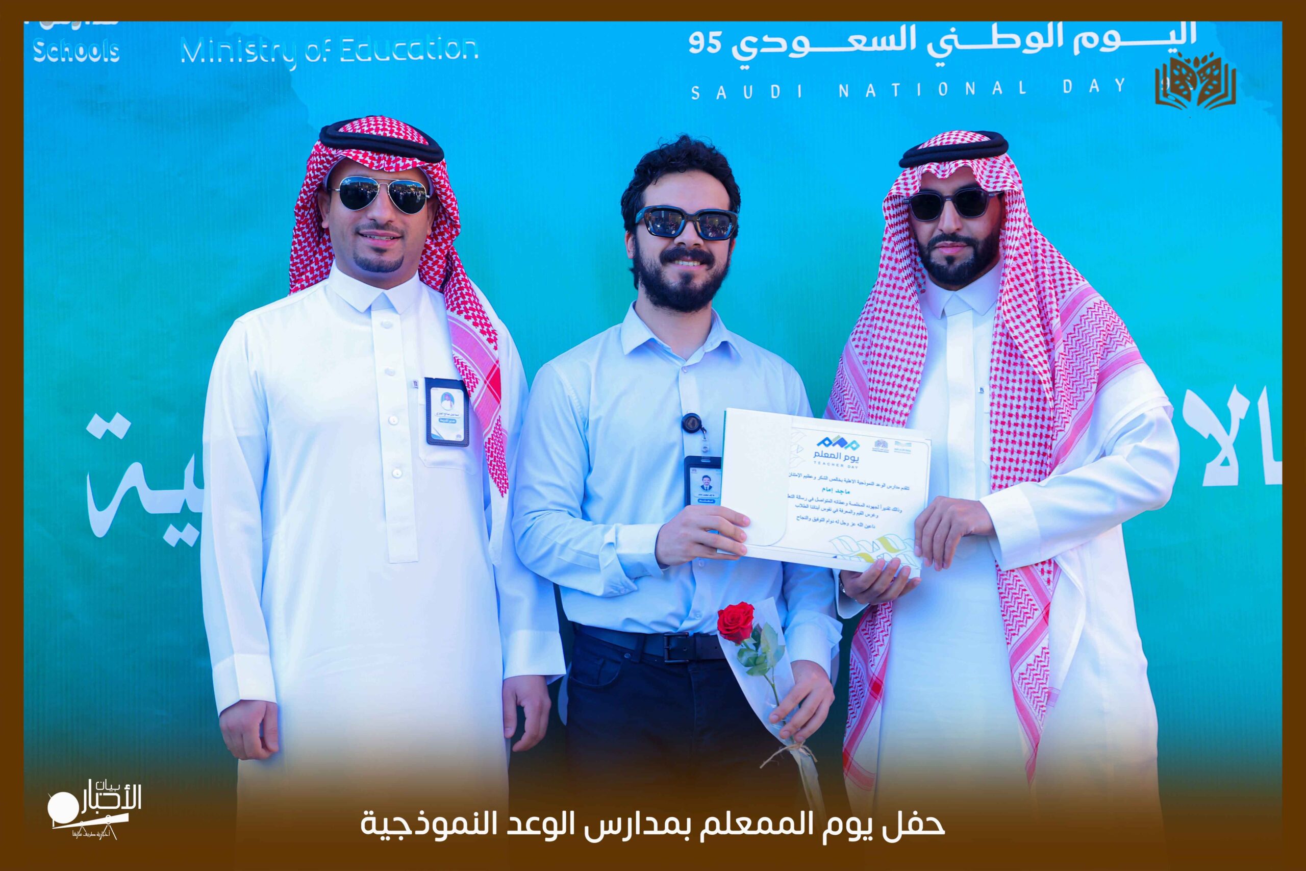 جاء ذلك التكريم من مدير المدرسة الأستاذ إسماعيل صالح العنزي حيث تم تكريم كلا من الأستاذ محمد سالم الرويلي المشرف العام على مدارس الوعد النموذجية والأستاذ عبدالرحمن حمود الرويلي مدير المرحلة المتوسطة والثانوية والأستاذ محمد سعد المشرف الفني بالمرحلة المتوسطة والثانوية ثم تكريم معلمي المدرسة وسط أجواء سادها روح المحبة والإخاء داعين الله عز وجل أن يكتب أجرهم ويجعل ما قدموا في ميزان حسناتهم ٠