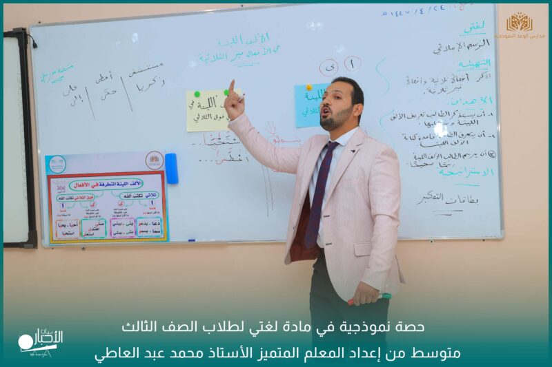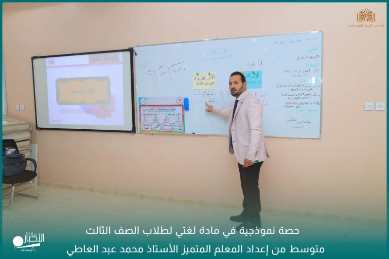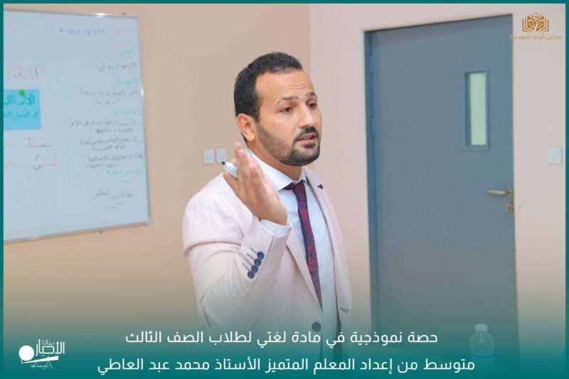 أقامت مدارس الوعد النموذجية الأهلية حصة نموذجية في مادة لغتي لطلاب الصف الثالث متوسط من إعداد المعلم المتميز الأستاذ محمد عبد العاطي.