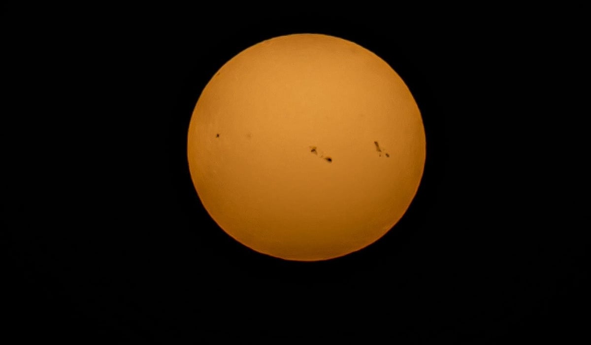 رُصدت اليوم خمس بقع شمسية عملاقة في سماء منطقة الحدود الشمالية، ظهرت بوضوح للعين المجرّدة قبيل غروب الشمس على هيئة نُقط سوداء ضخمة، في مشهد فلكي لافت جذب أنظار المهتمين بالفضاء والفلك.