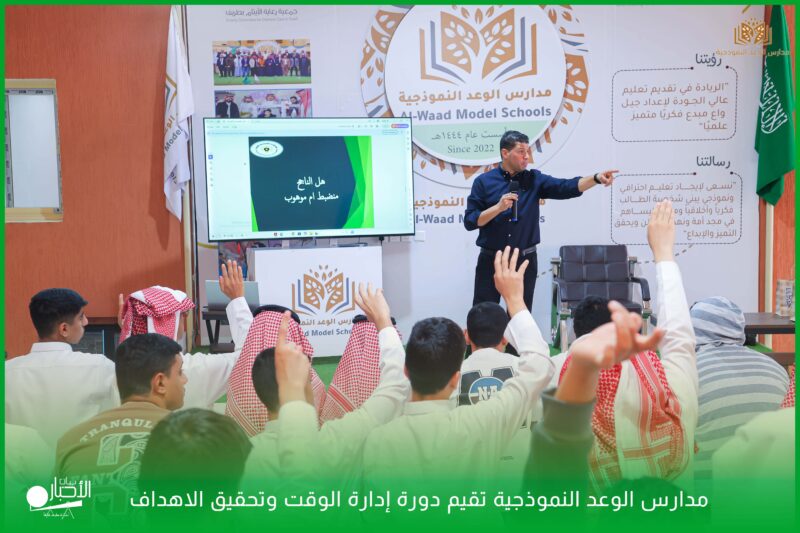 أقامت ثانوية الوعد النموذجية اليوم الأربعاء الموافق 2025/10/15 دورة إدارة الوقت وتحقيق الاهداف تهدف إلى تنمية مهارات وقدرات الطلاب وتنظيم وقتهم وتحقيق اهدافهم.
