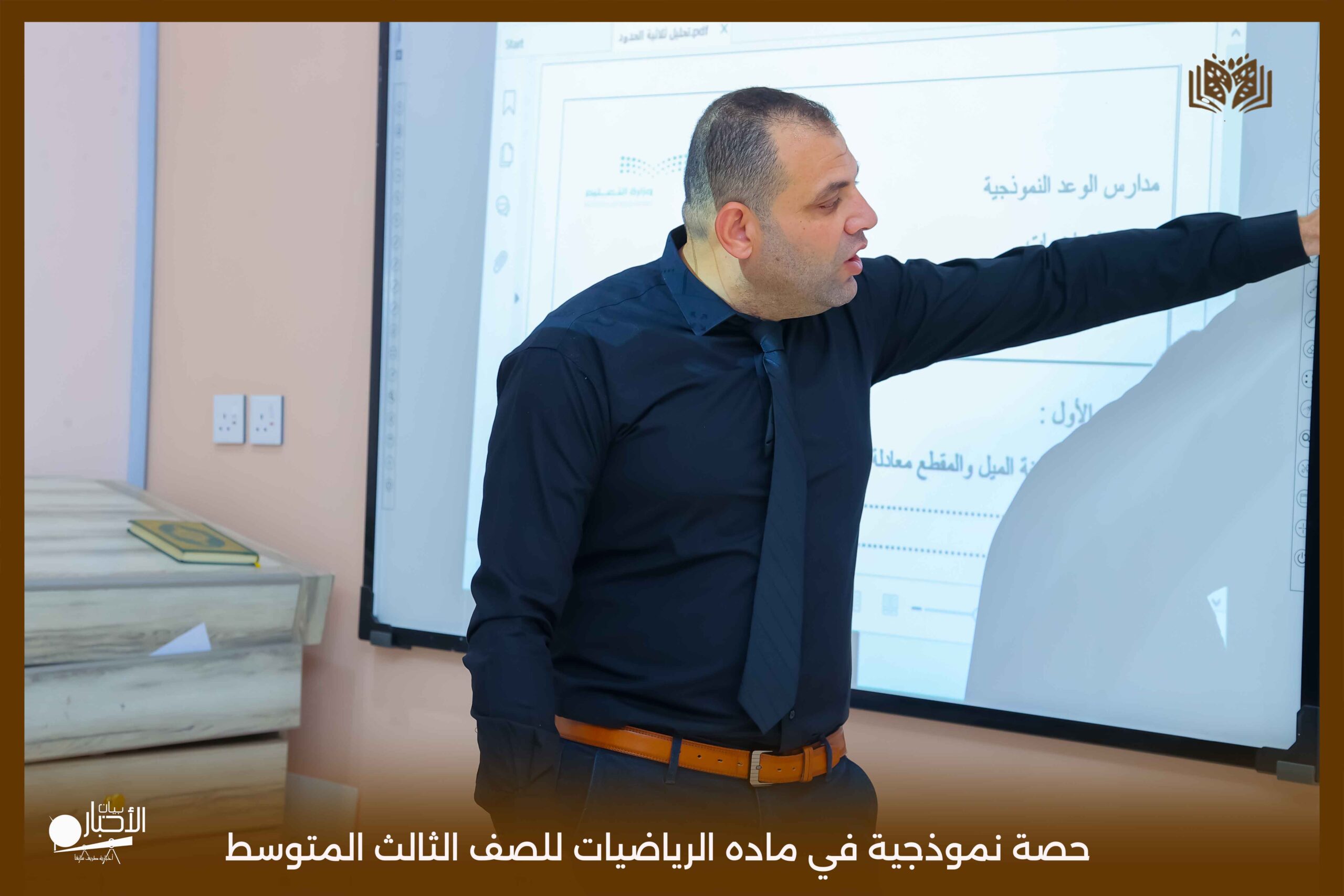 قدم الحصة معلم الرياضيات للصف الثالث المتوسط أنور إسماعيل في حضور مدير المدرسة عبد الرحمن حمود الرويلي.