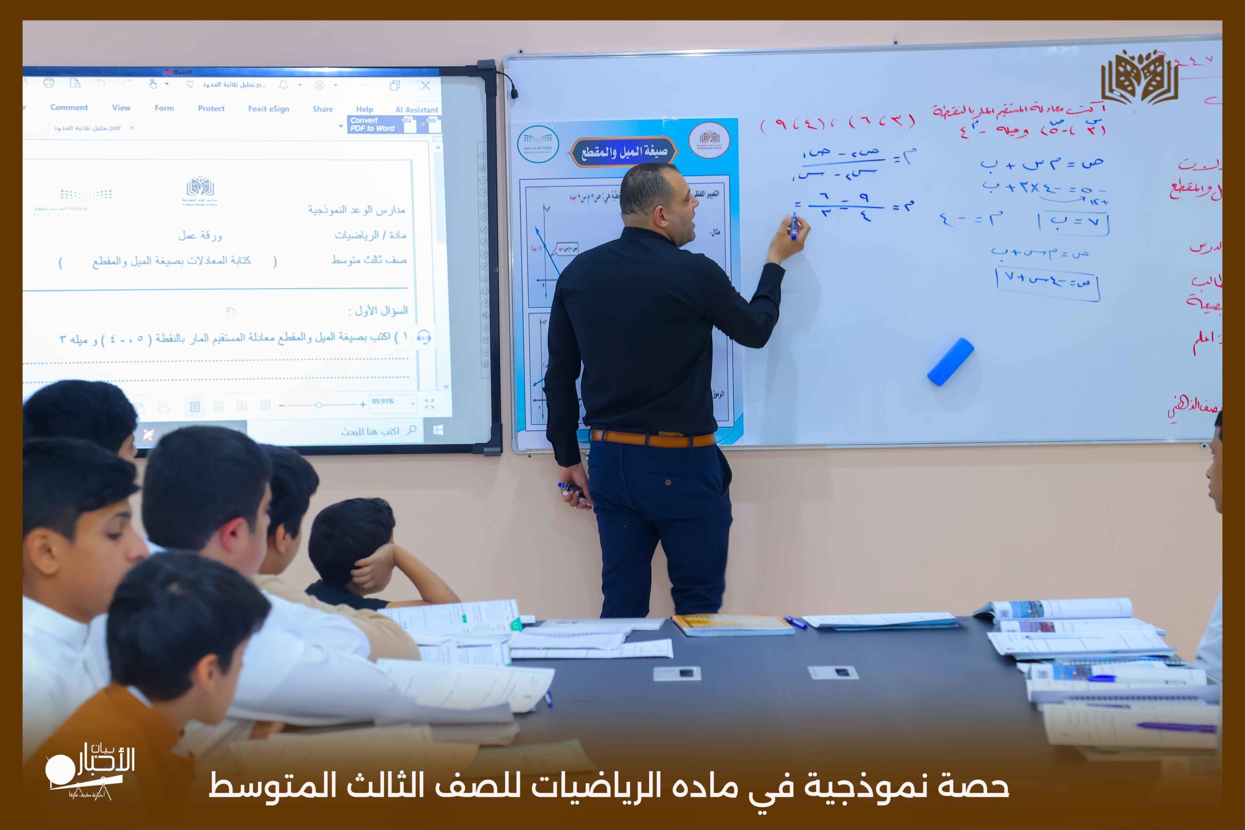 بالفيديو والصور .. حصة نموذجية في ماده الرياضيات للصف الثالث المتوسط بمدارس الوعد بطريف