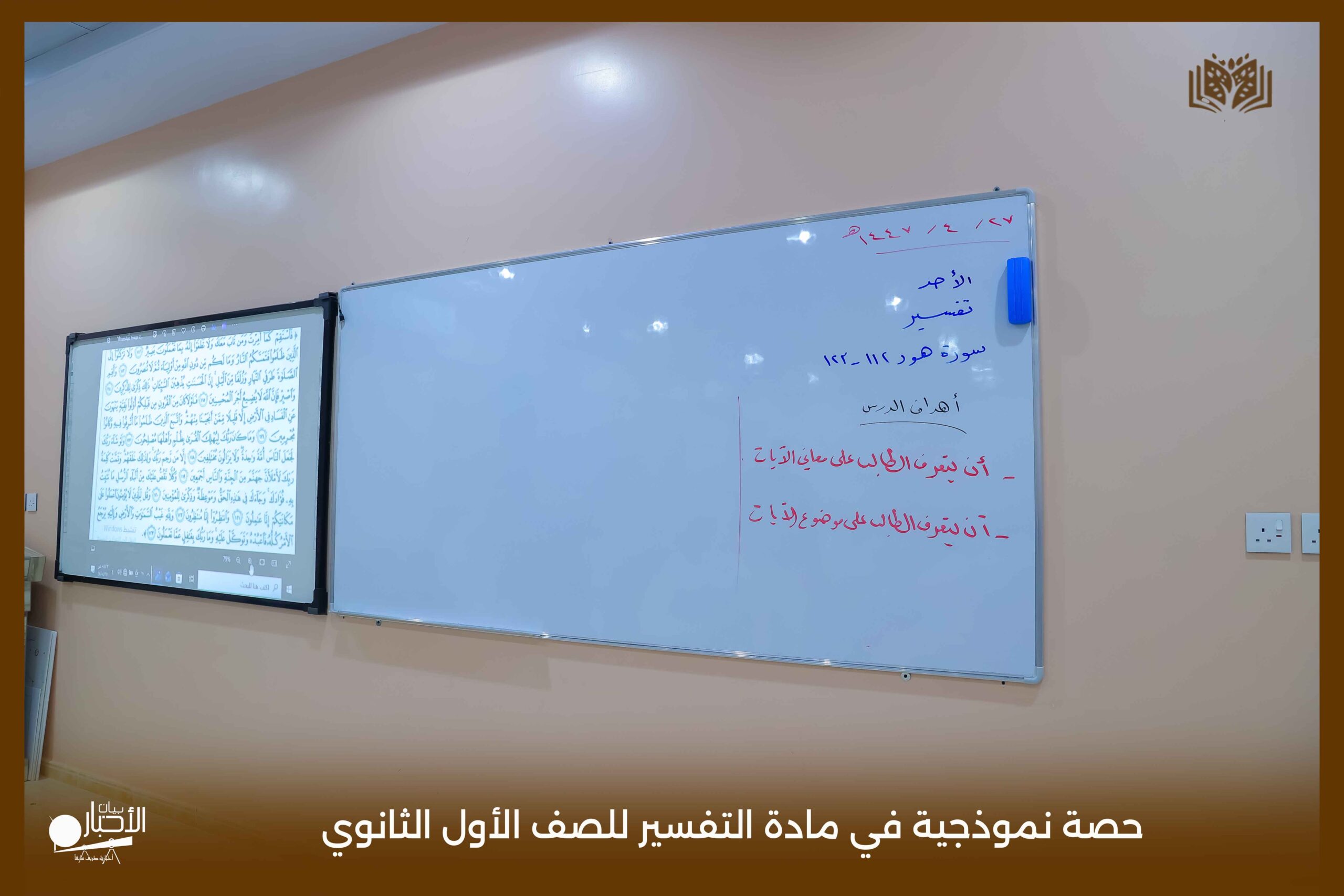 بالفيديو والصور .. مدارس الوعد بطريف تقيم حصة نموذجية في مادة التفسير للصف الأول الثانوي
