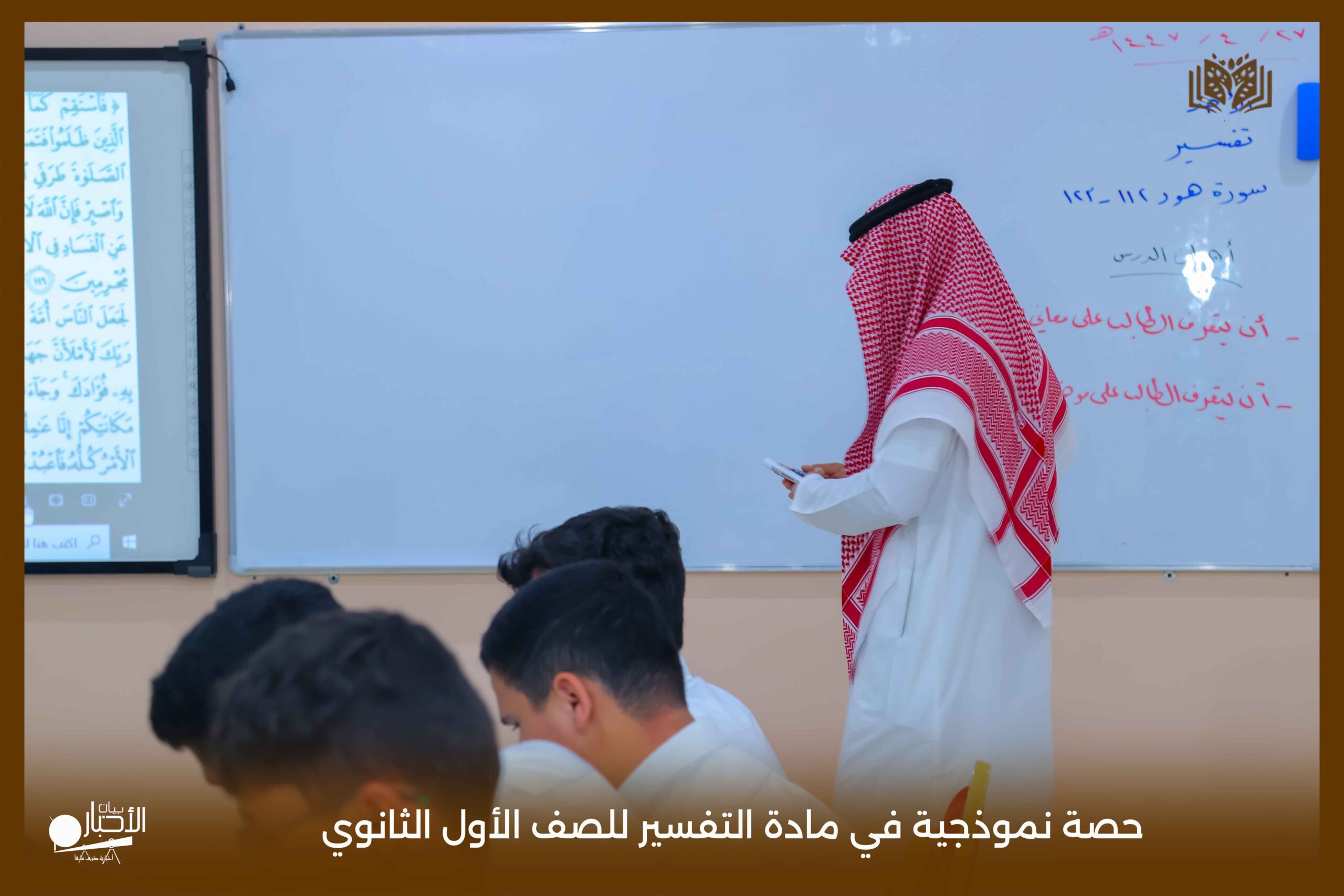 نفذت مدارس الوعد النموذجية اليوم الأحد ١٤٤٧/٤/٢٧ حصة نموذجية في مادة التفسير للصف الأول الثانوي تحت عنوان ( تفسير سورة هود ١١٢ – ١٢٣ ).