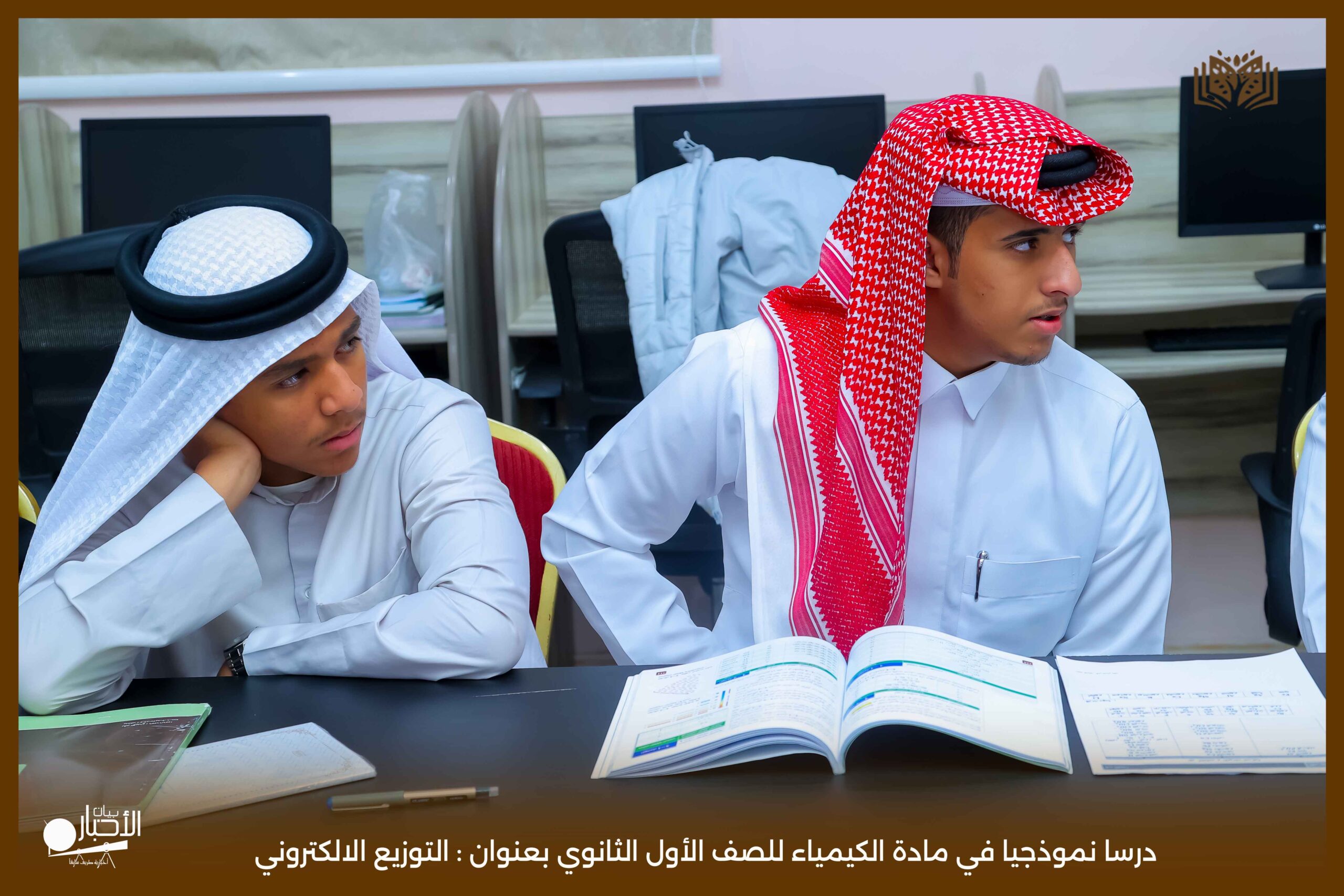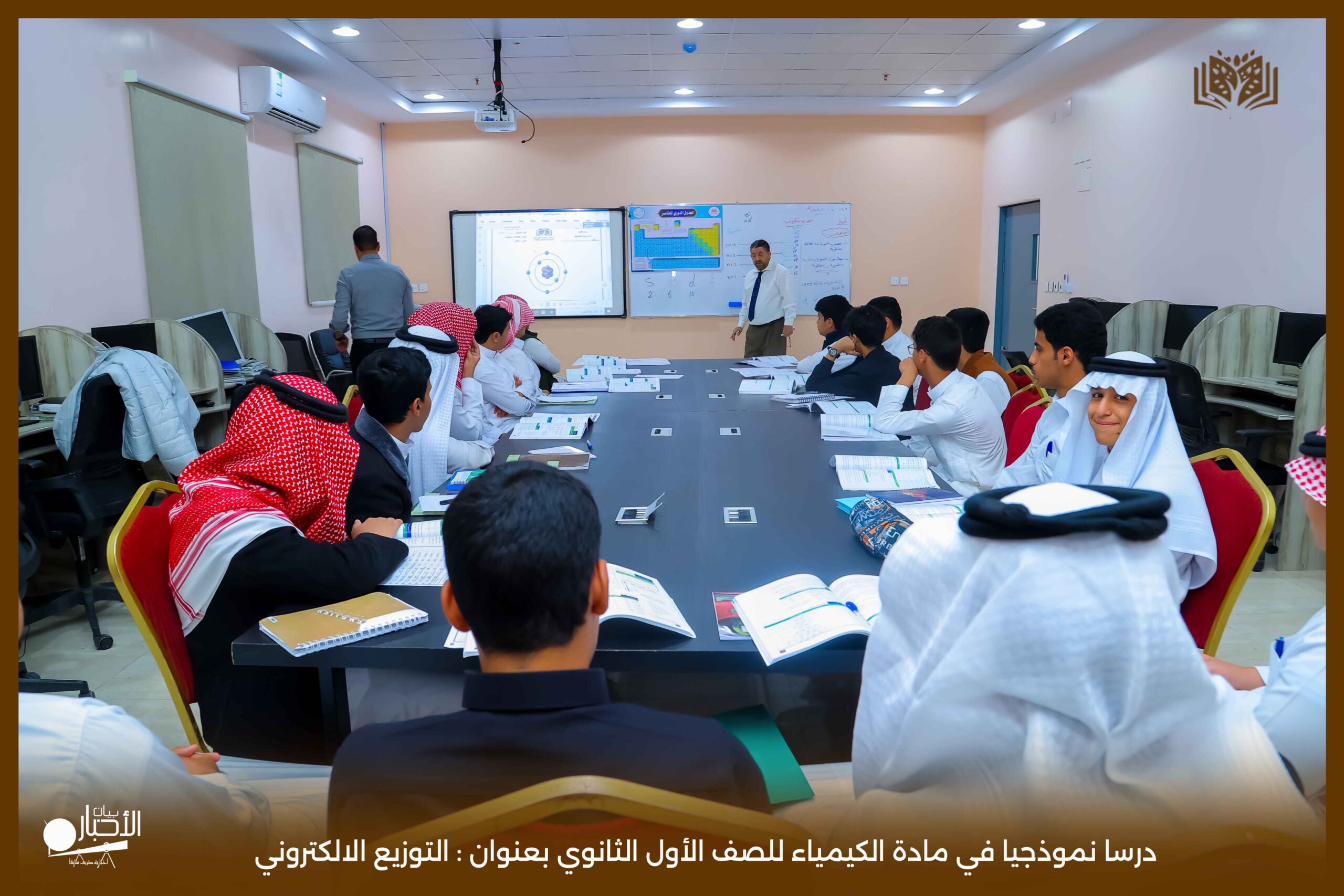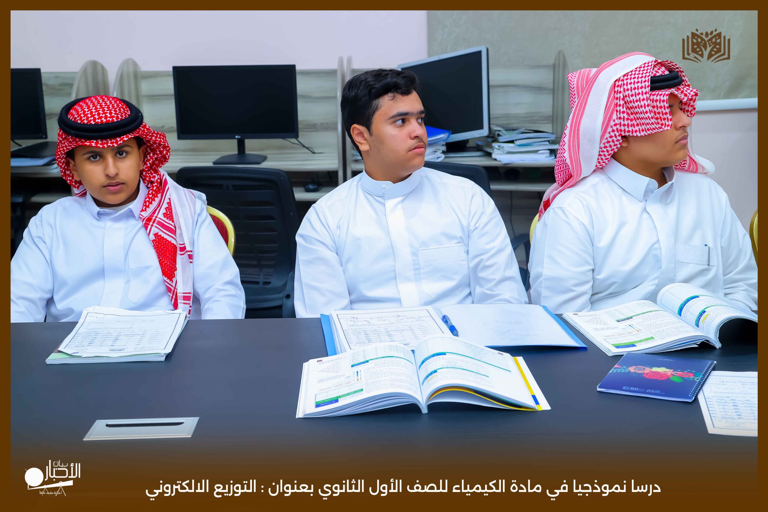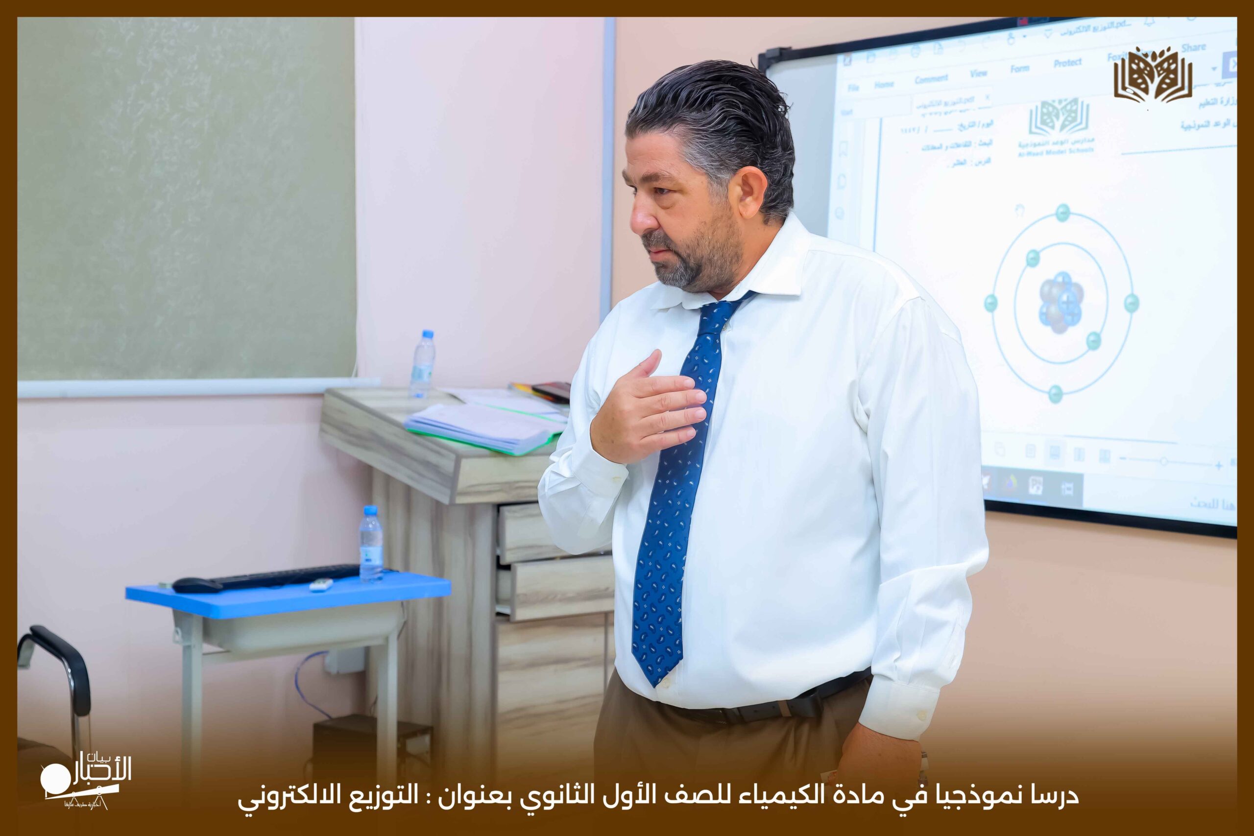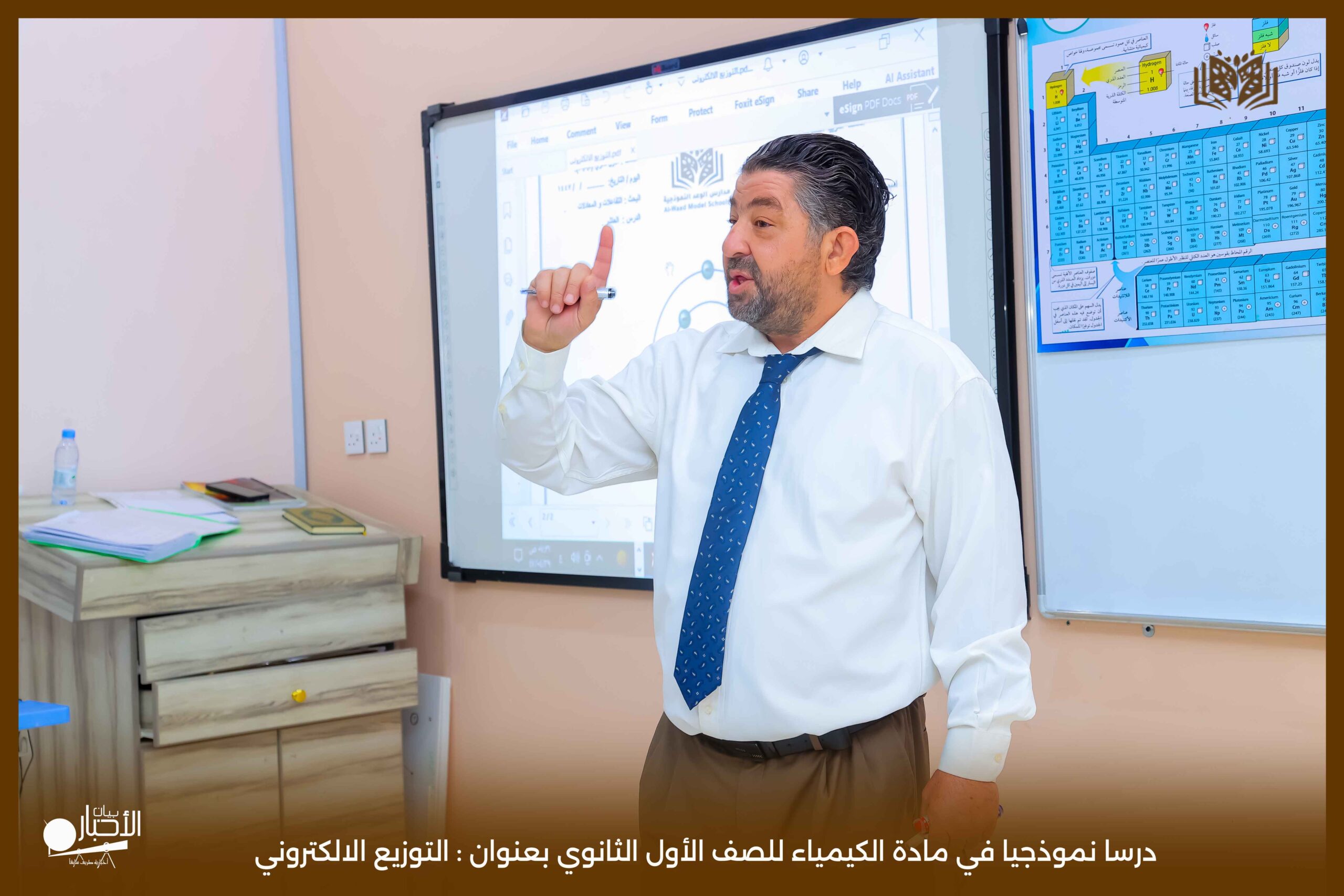 شهدت مدارس الوعد النموذجية في محافظة طريف يوم الثلاثاء ٢٩/٤/١٤٤٧ درسا نموذجيا في مادة الكيمياء للصف الأول الثانوي بعنوان : التوزيع الالكتروني .