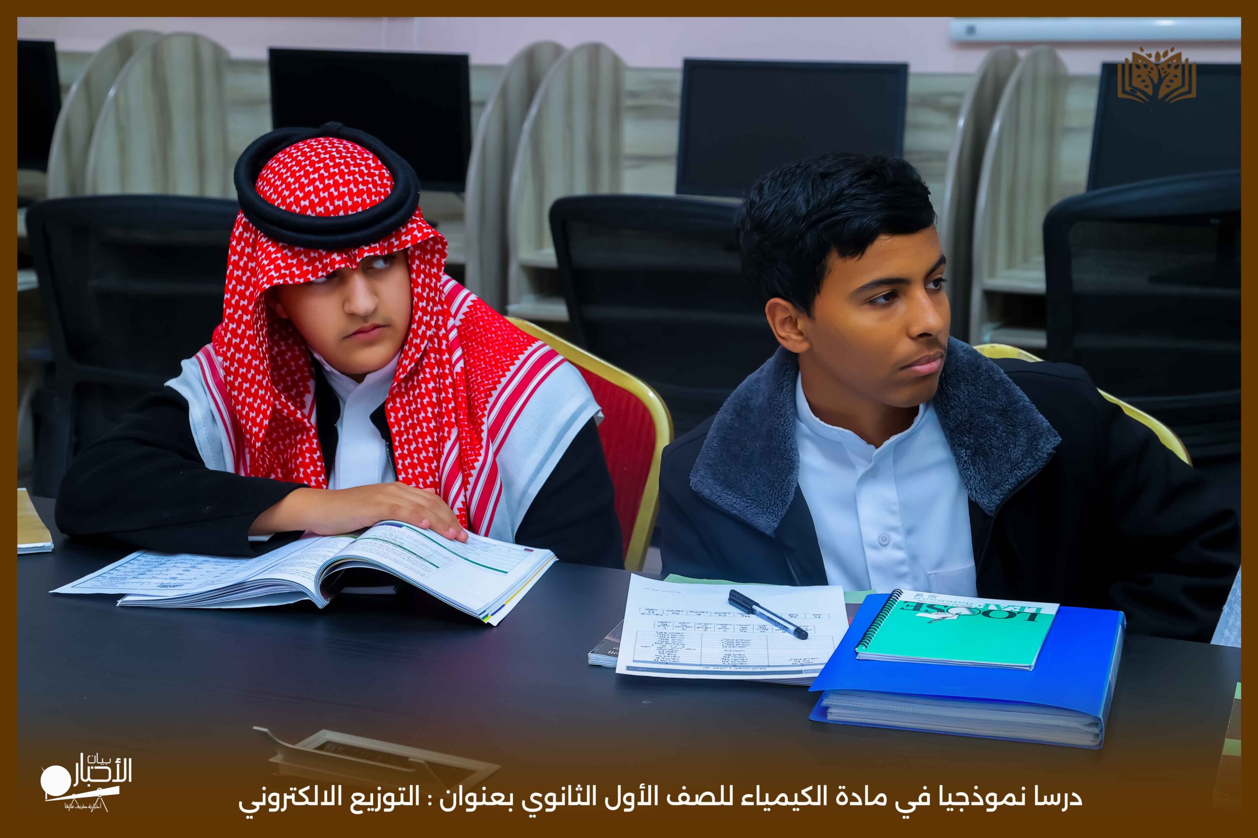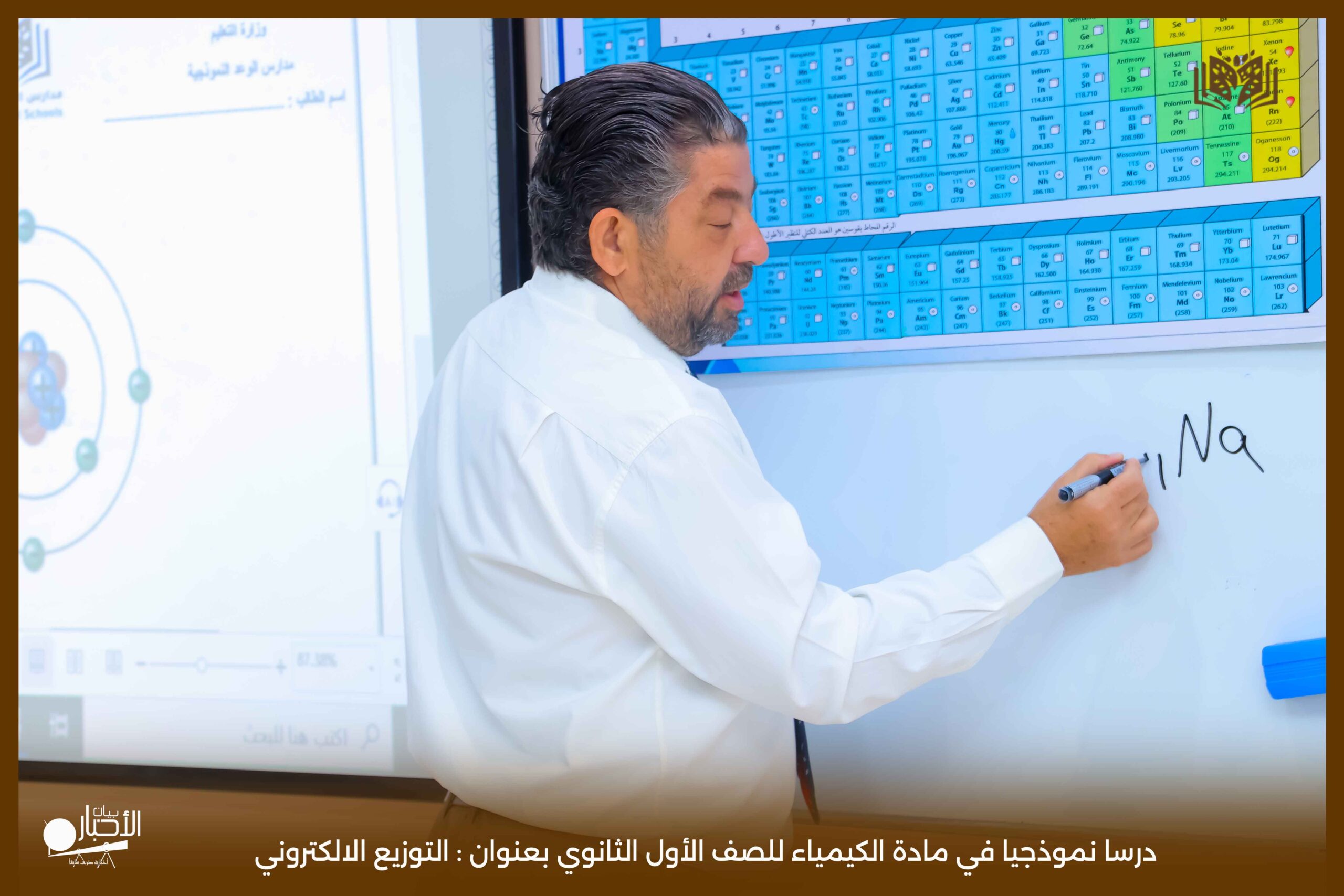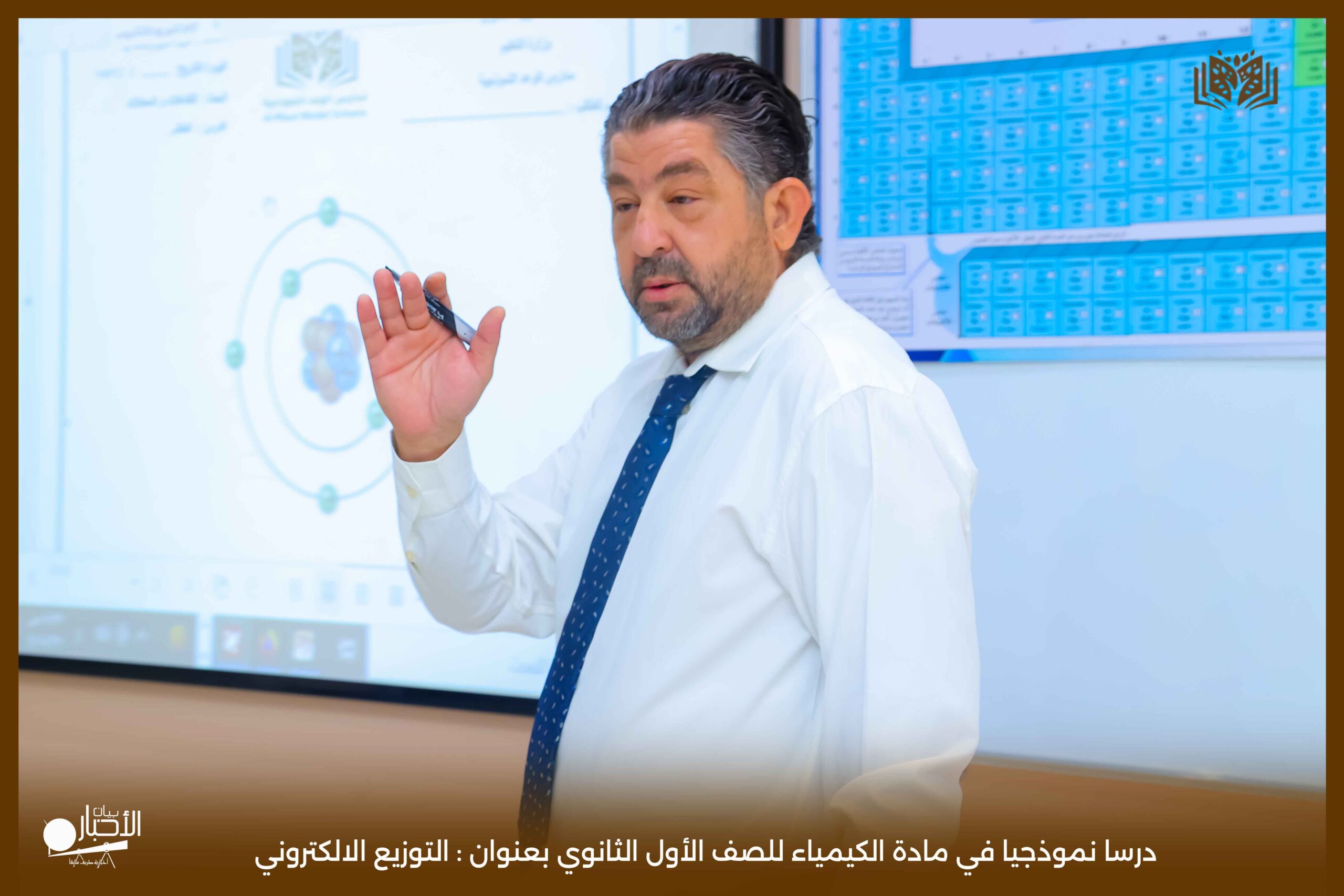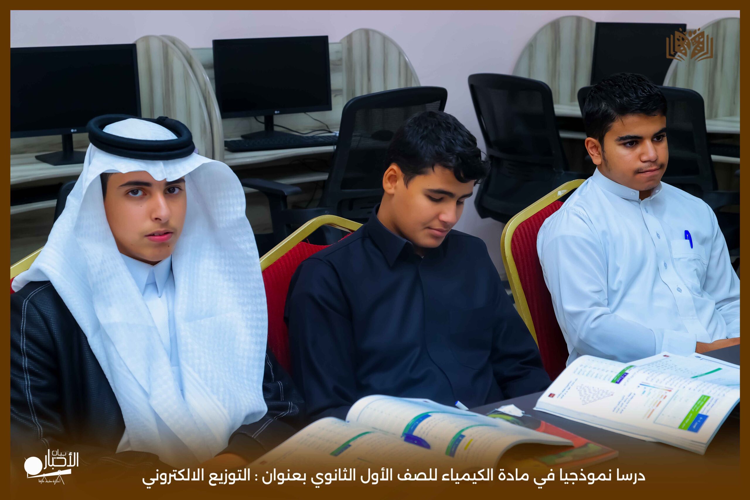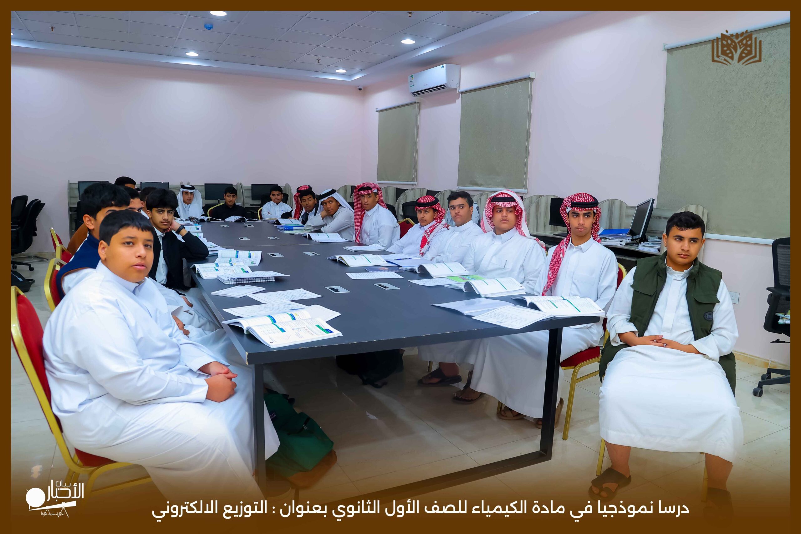 شهدت مدارس الوعد النموذجية في محافظة طريف يوم الثلاثاء ٢٩/٤/١٤٤٧ درسا نموذجيا في مادة الكيمياء للصف الأول الثانوي بعنوان : التوزيع الالكتروني .
