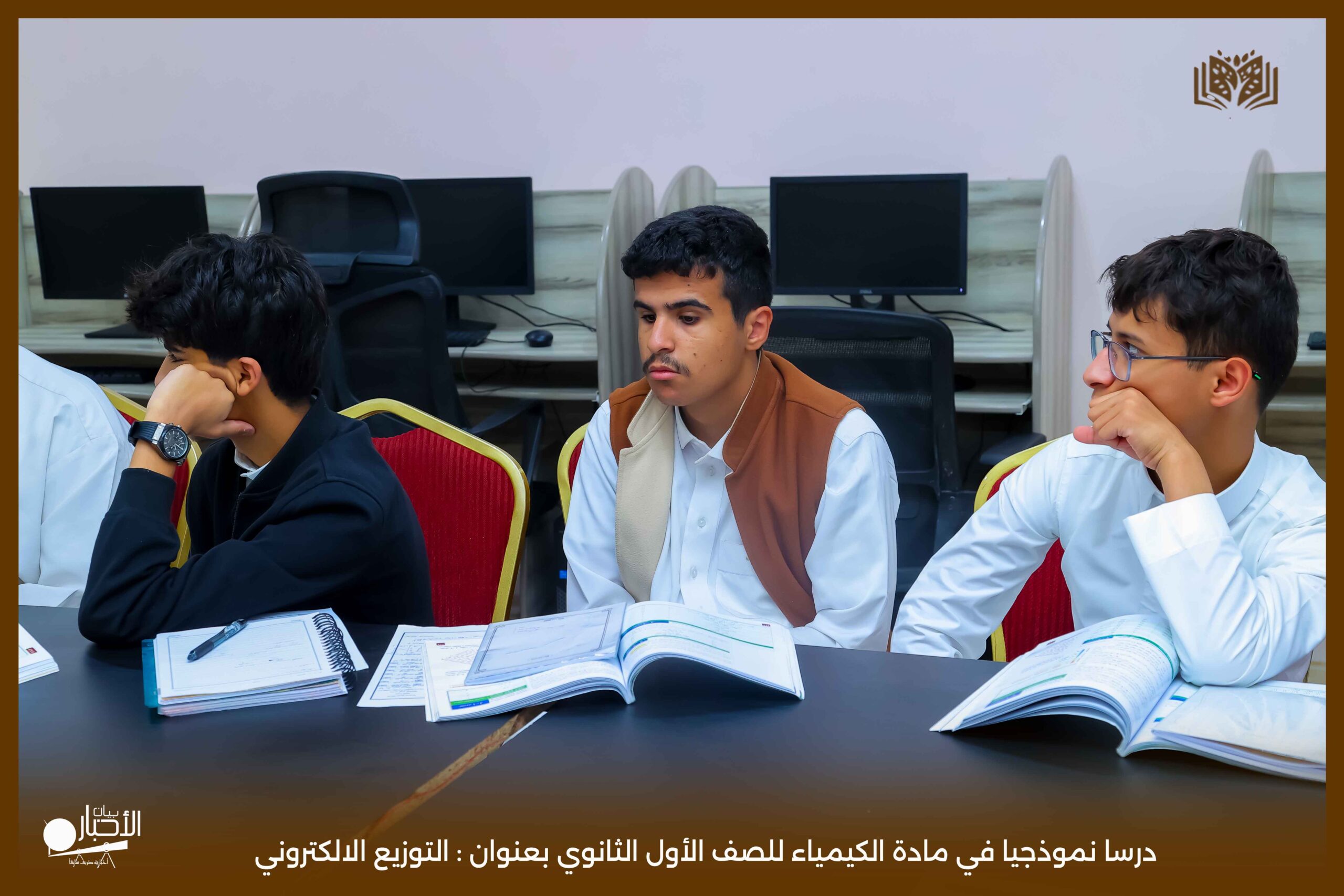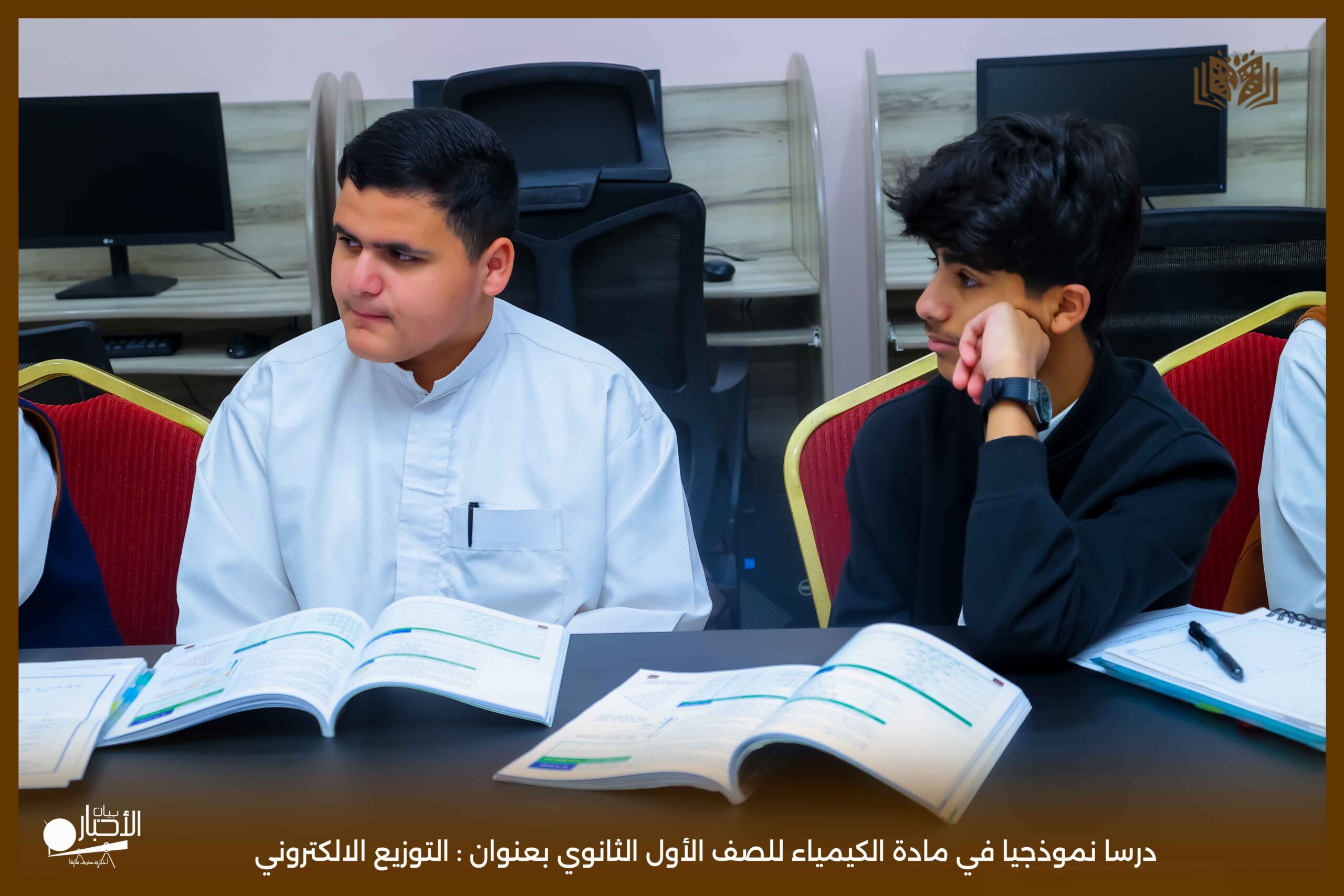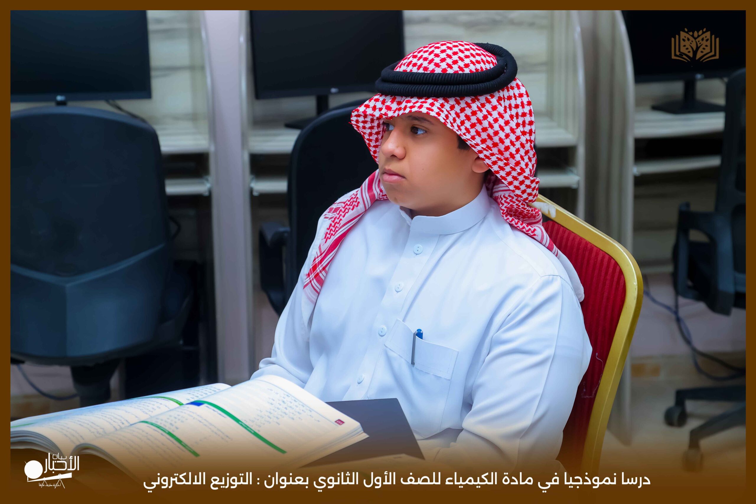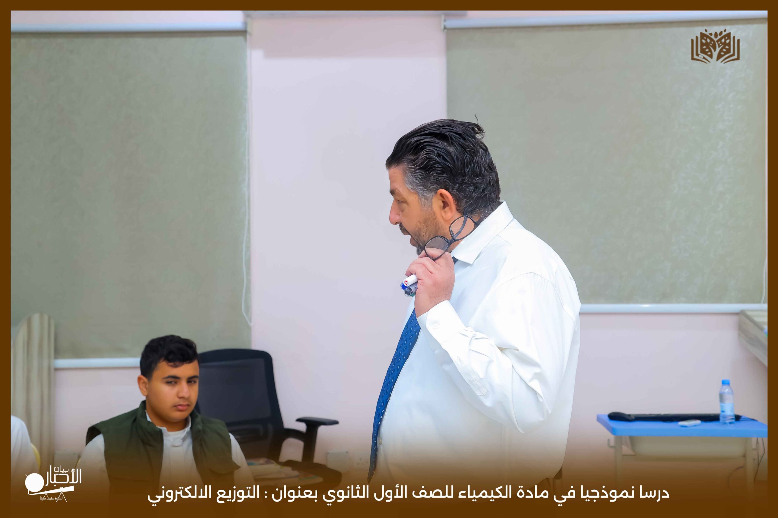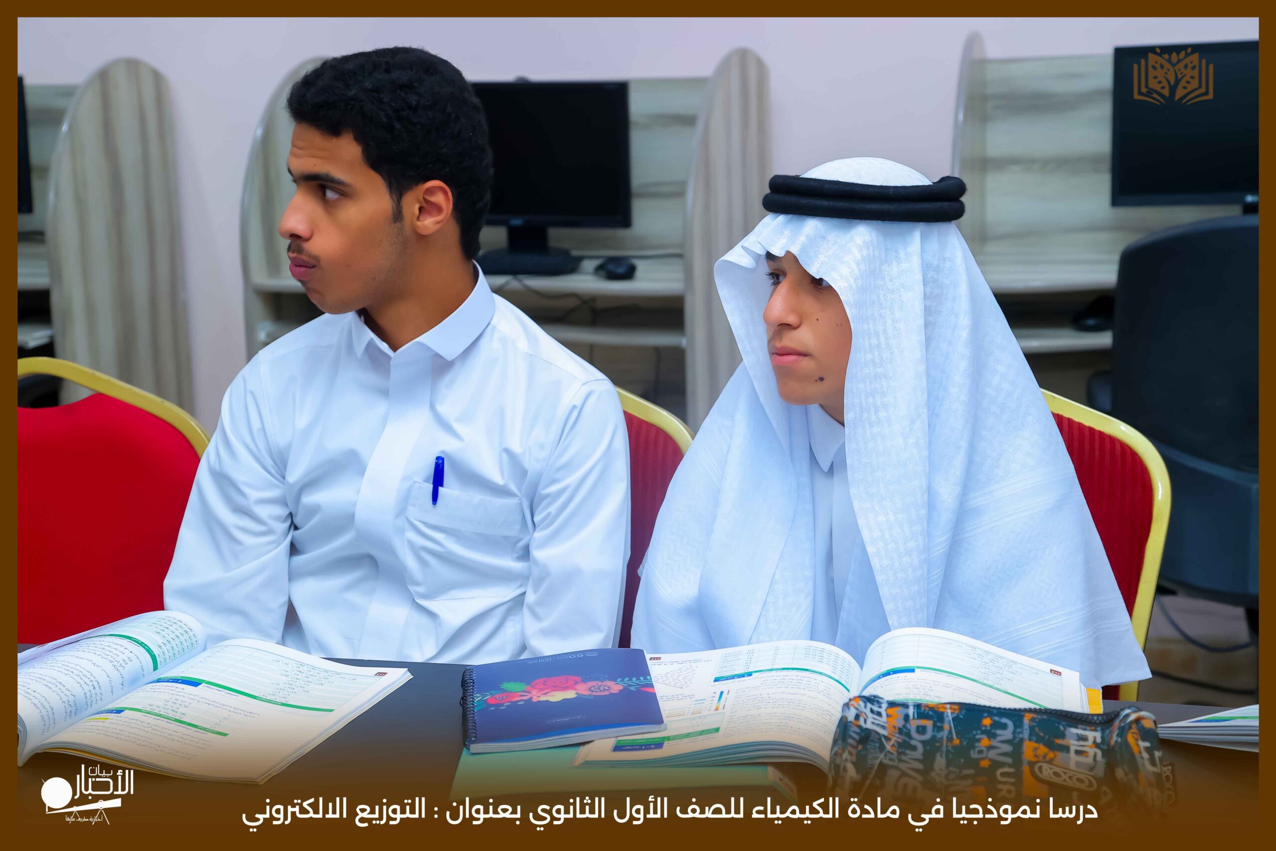 شهدت مدارس الوعد النموذجية في محافظة طريف يوم الثلاثاء ٢٩/٤/١٤٤٧ درسا نموذجيا في مادة الكيمياء للصف الأول الثانوي بعنوان : التوزيع الالكتروني .