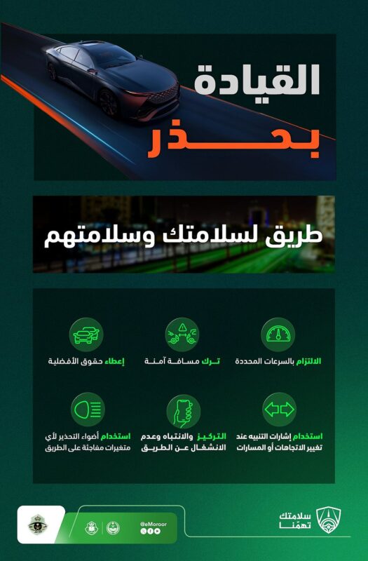 الحملة التي تحمل رسالة واضحة بعنوان “طريق لسلامتك وسلامتهم”، تأتي استمرارًا لمبادرات وطنية تهدف إلى تقليل نسب الحوادث المرورية وتعزيز سلوك القيادة الوقائية، وتواكب التوجهات الرسمية نحو بيئة مرورية أكثر أمانًا لجميع مستخدمي الطرق. (سبق).