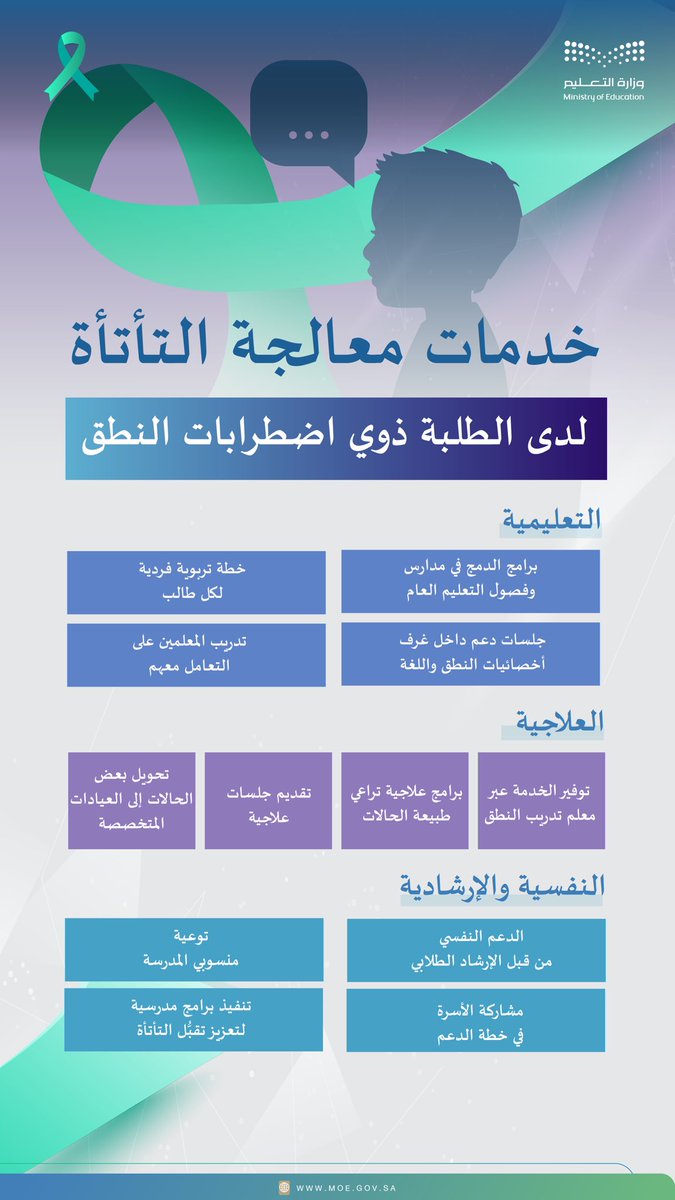 أهم الأخبار في الصحف السعودية هذا اليوم > وزارة التعليم: نقدم خدمات متكاملة لمعالجة التأتأة لدى الطلبة ذوي اضطرابات النطق