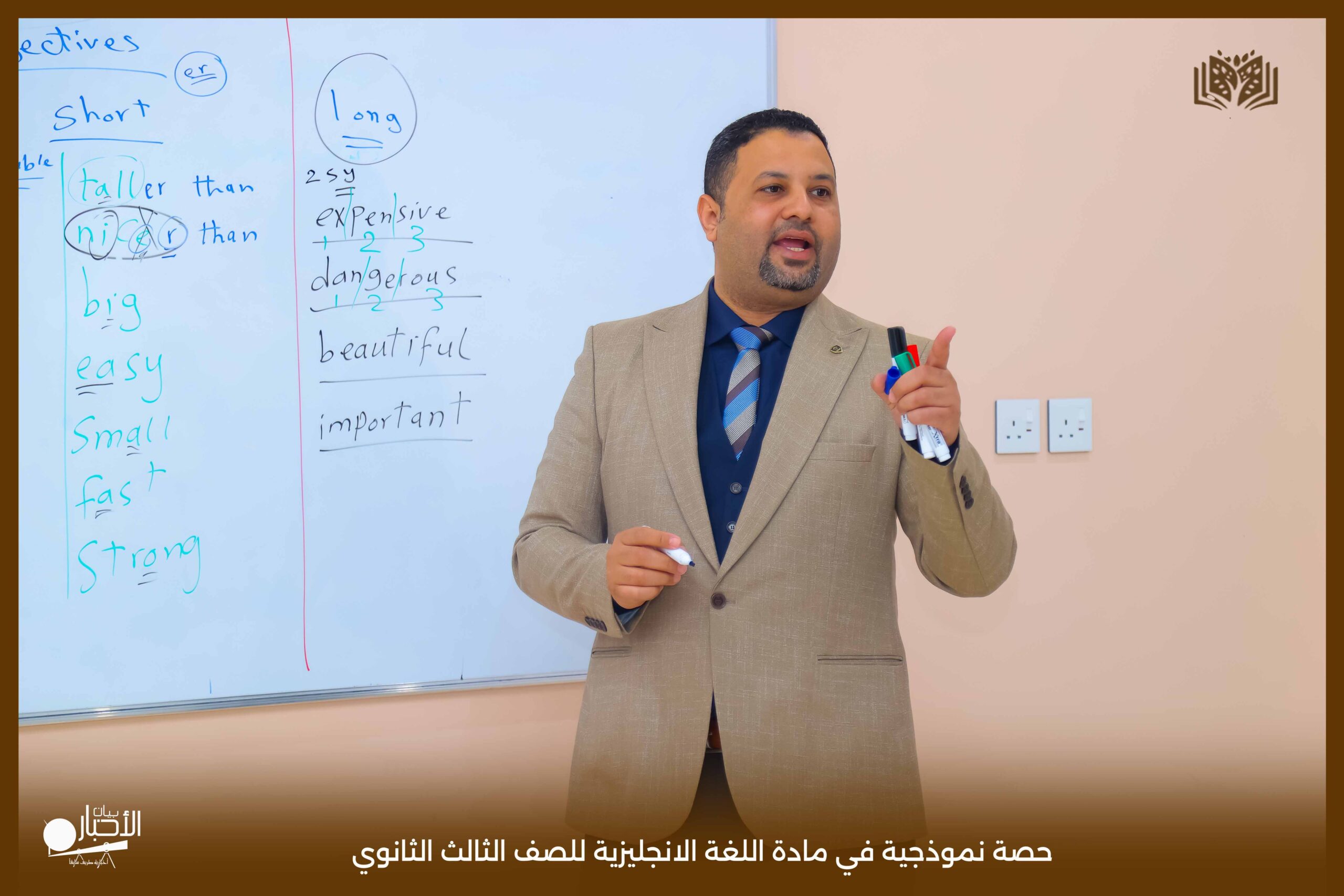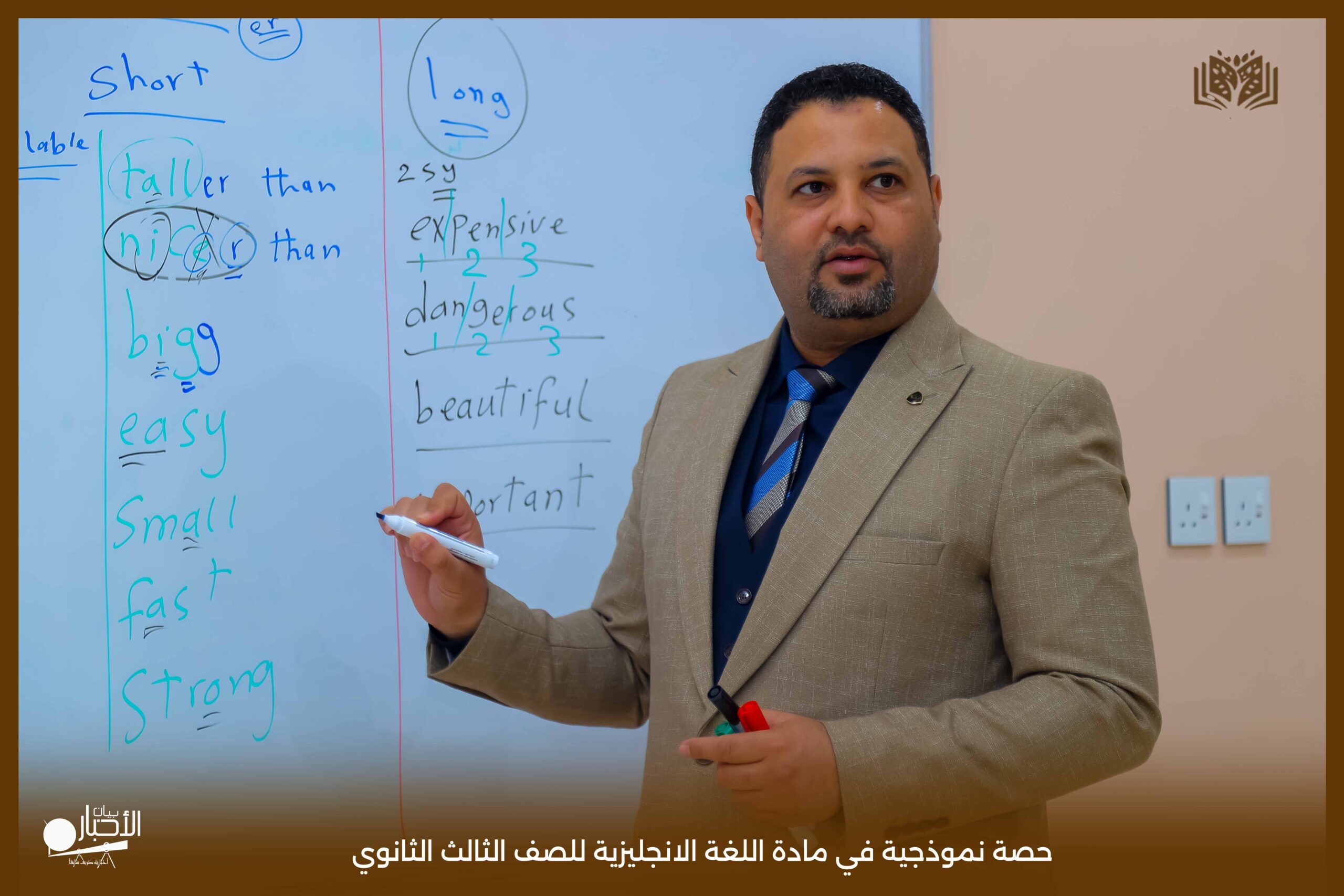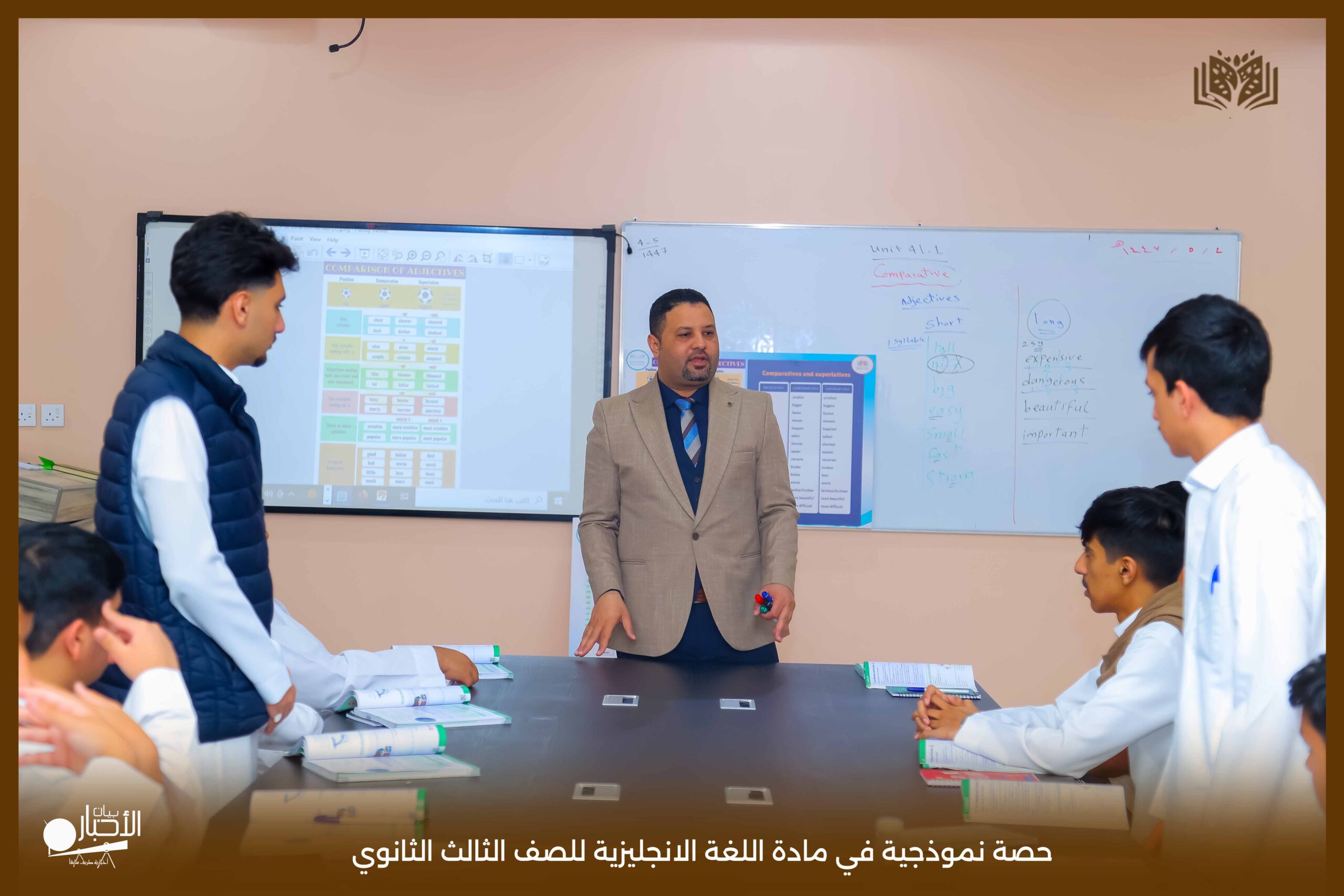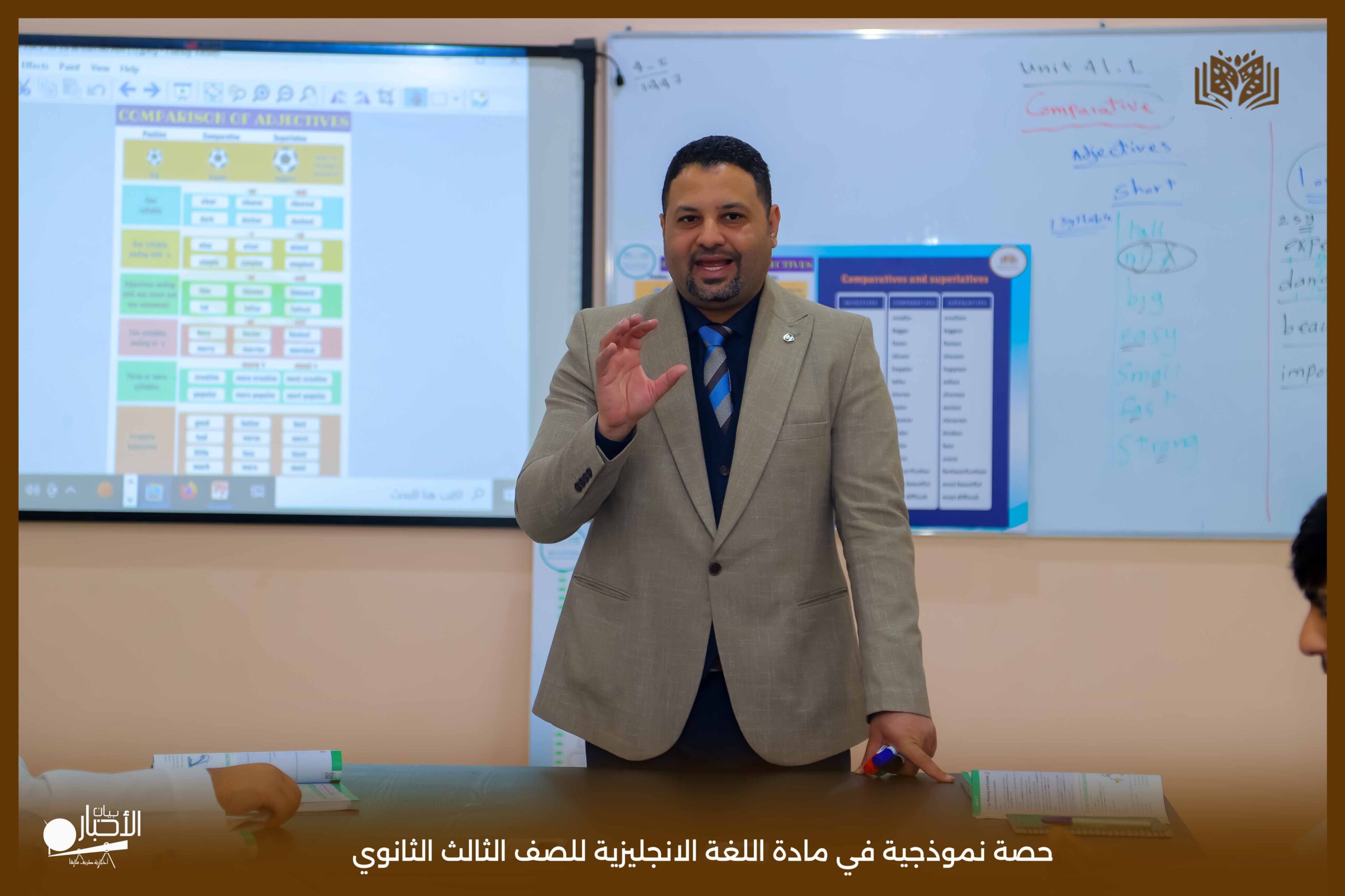 قدمت اليوم مدارس الوعد النموذجية بالقسم الثانوي حصة نموذجية في مادة اللغة الانجليزية للصف الثالث الثانوي درس Comparative and Superlative مستخدما استراتيجية الحوار والمناقشة والعصف الذهني كما تم استخدام الوسائل التعليمية اللازمة لذلك لتسهيل و تبسيط المعلومة للطلاب .
