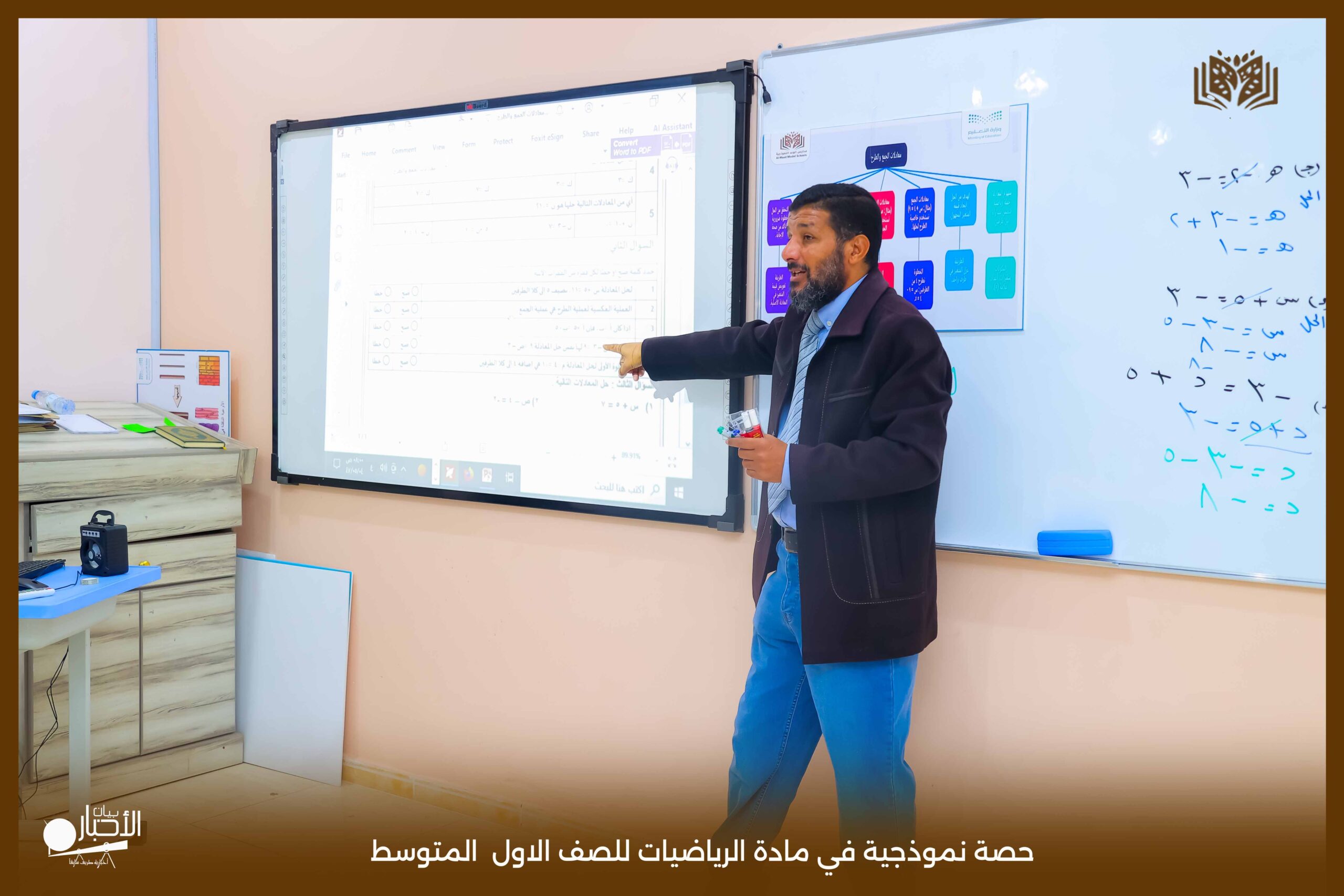 قدم الحصة معلم الرياضيات للصف الأول المتوسط الاستاذ عادل رجب عبدالعزيز في حضور مدير المدرسة عبد الرحمن حمود الرويلي.