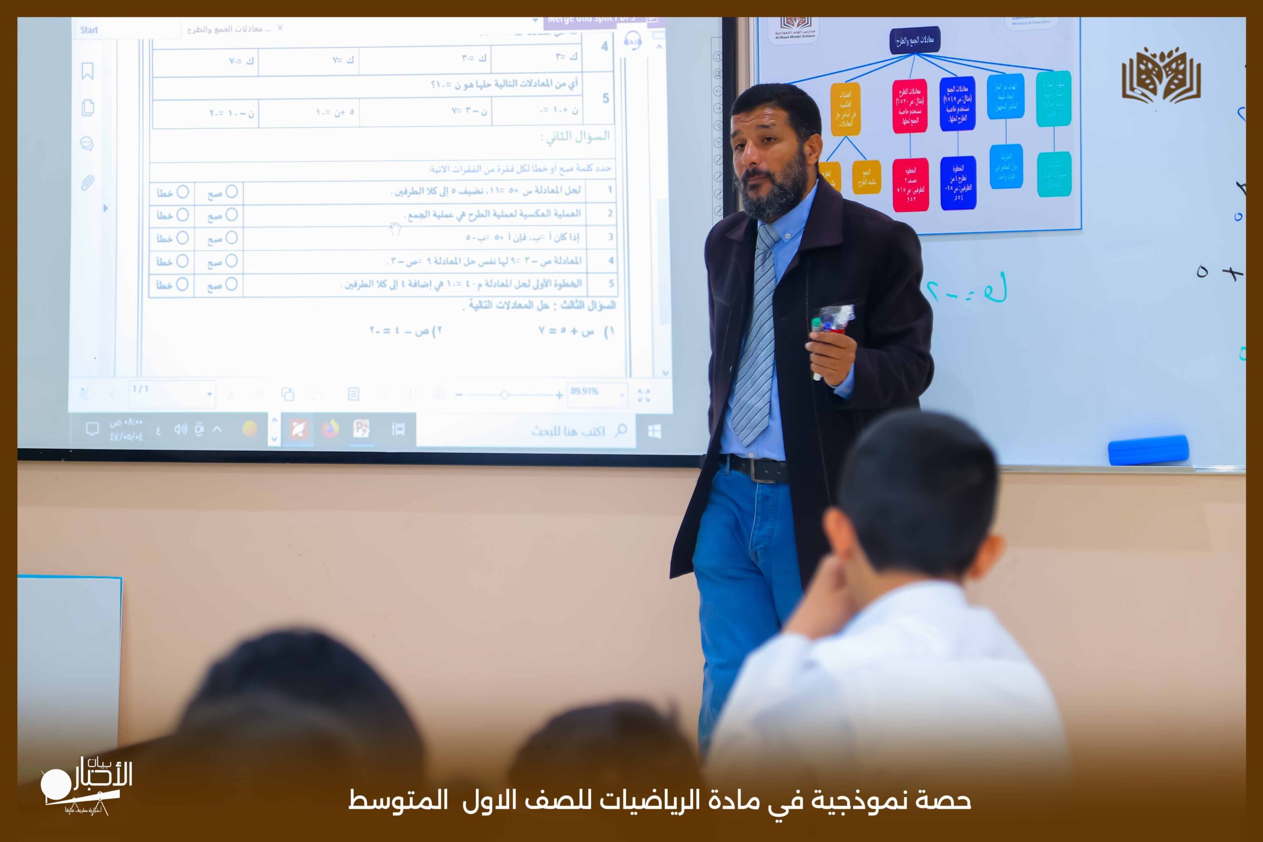 بالفيديو والصور .. حصة نموذجية في مادة الرياضيات للصف الأول المتوسط بمدارس الوعد بطري