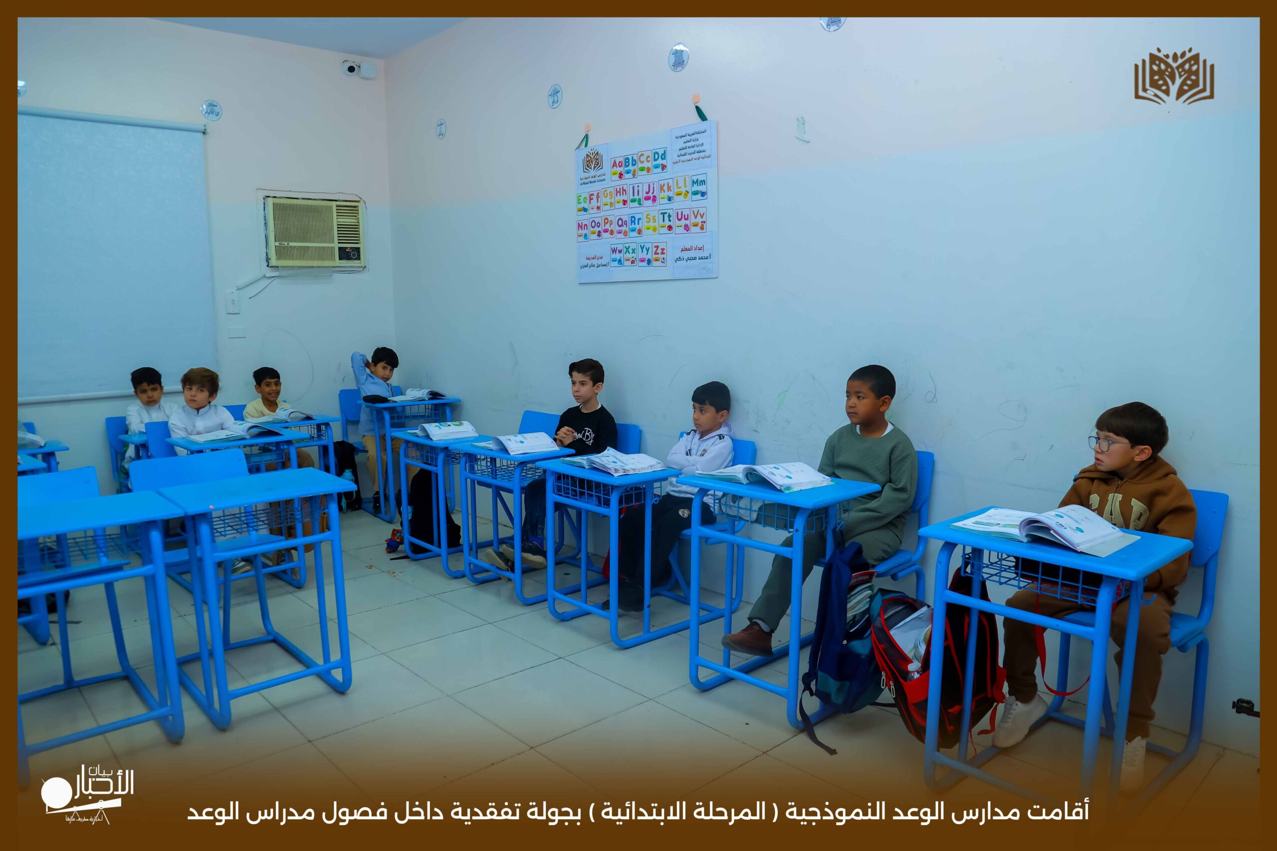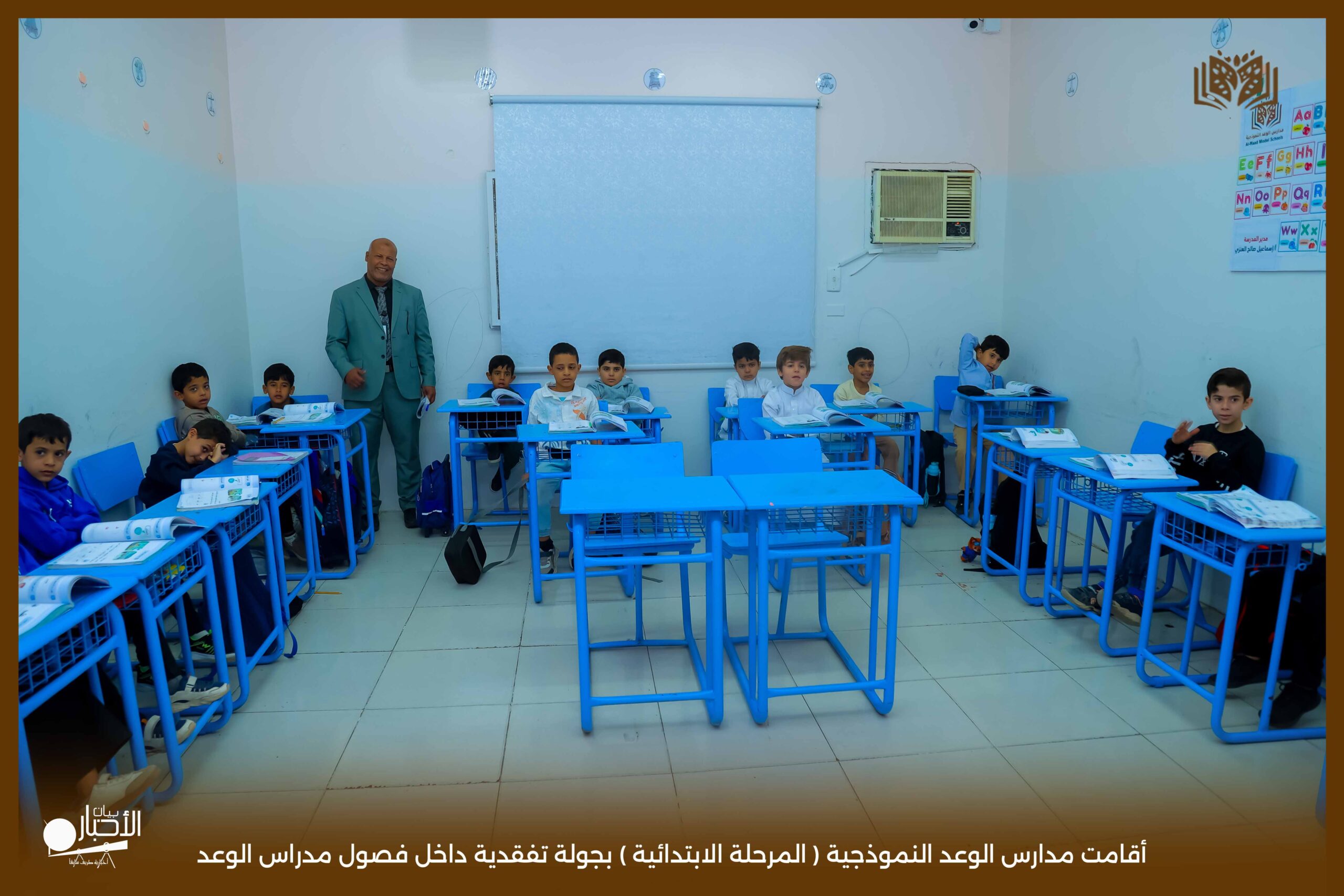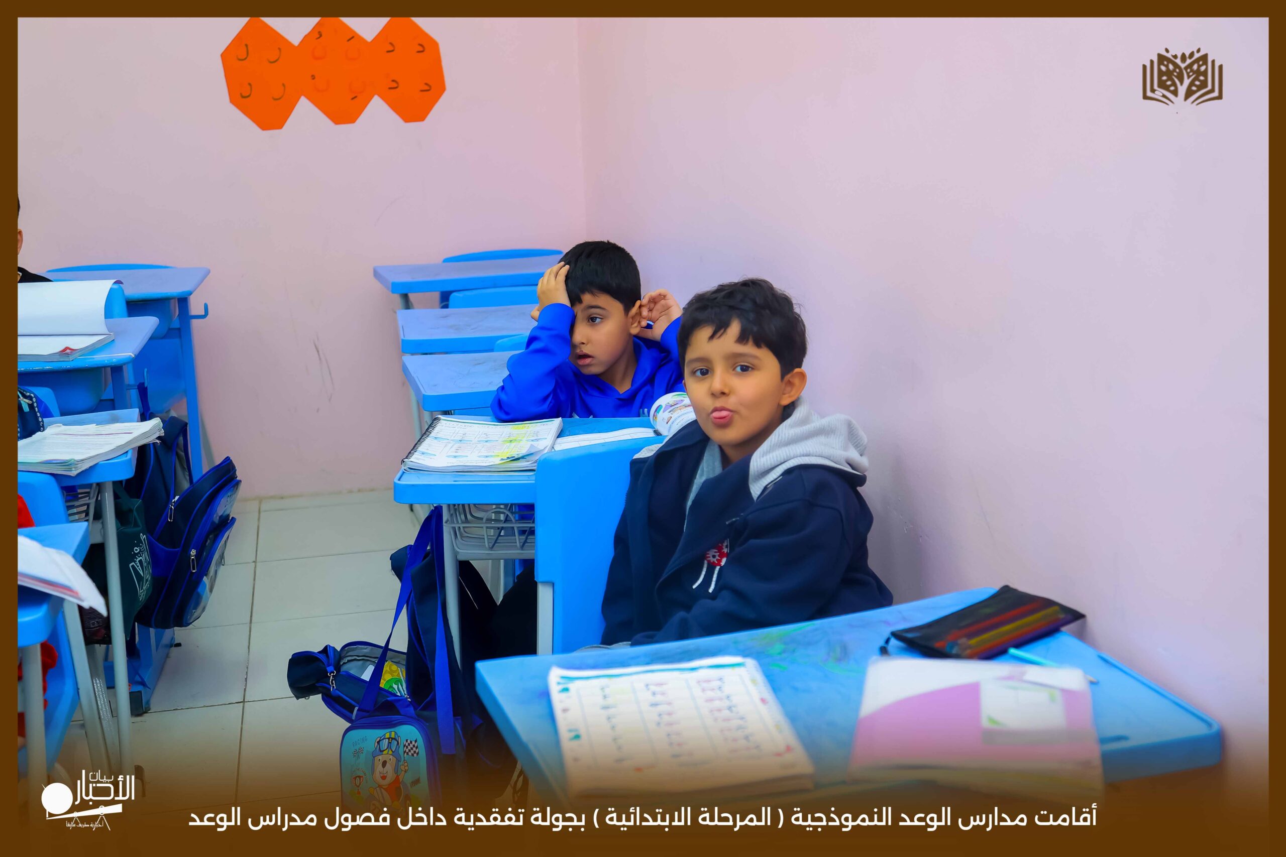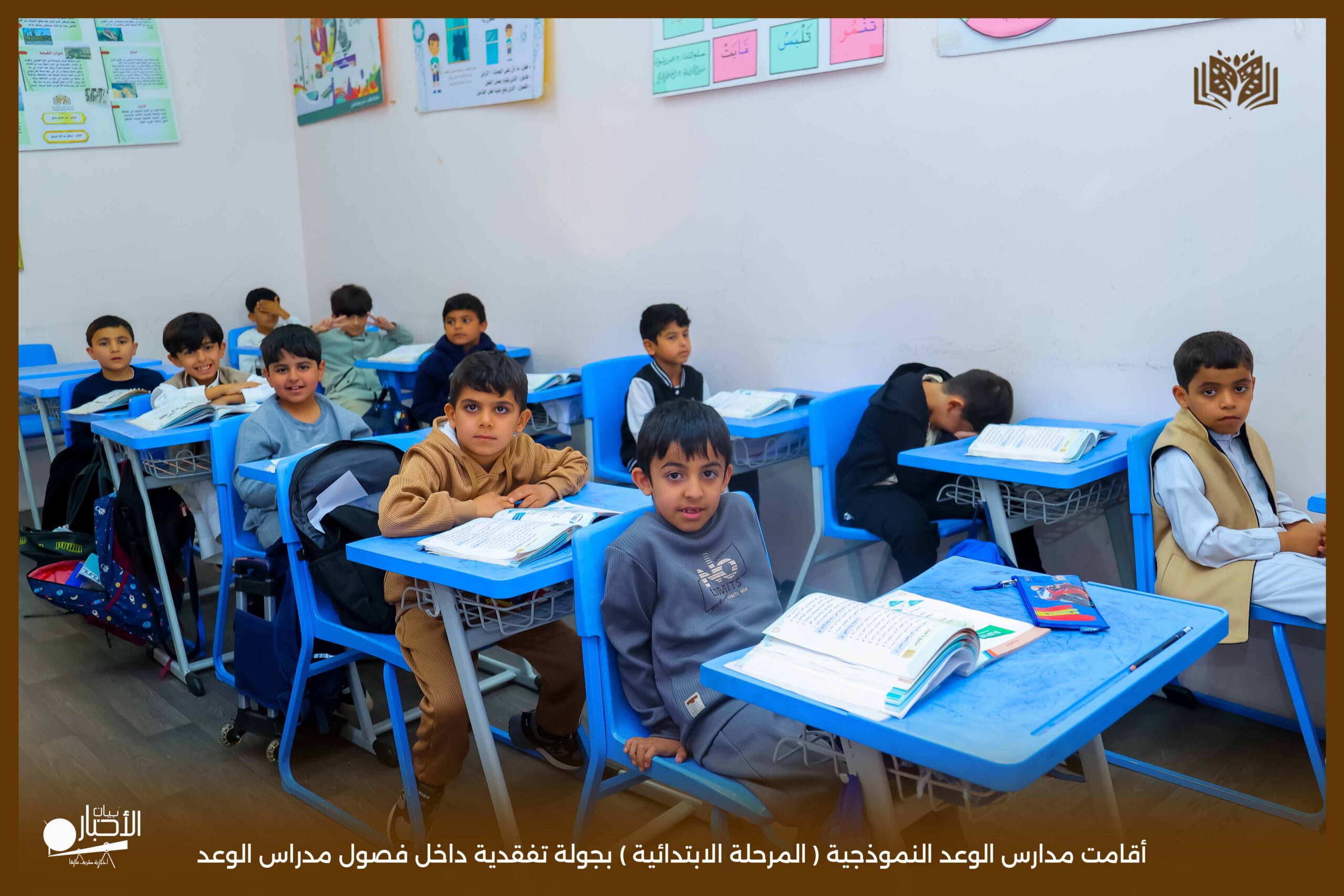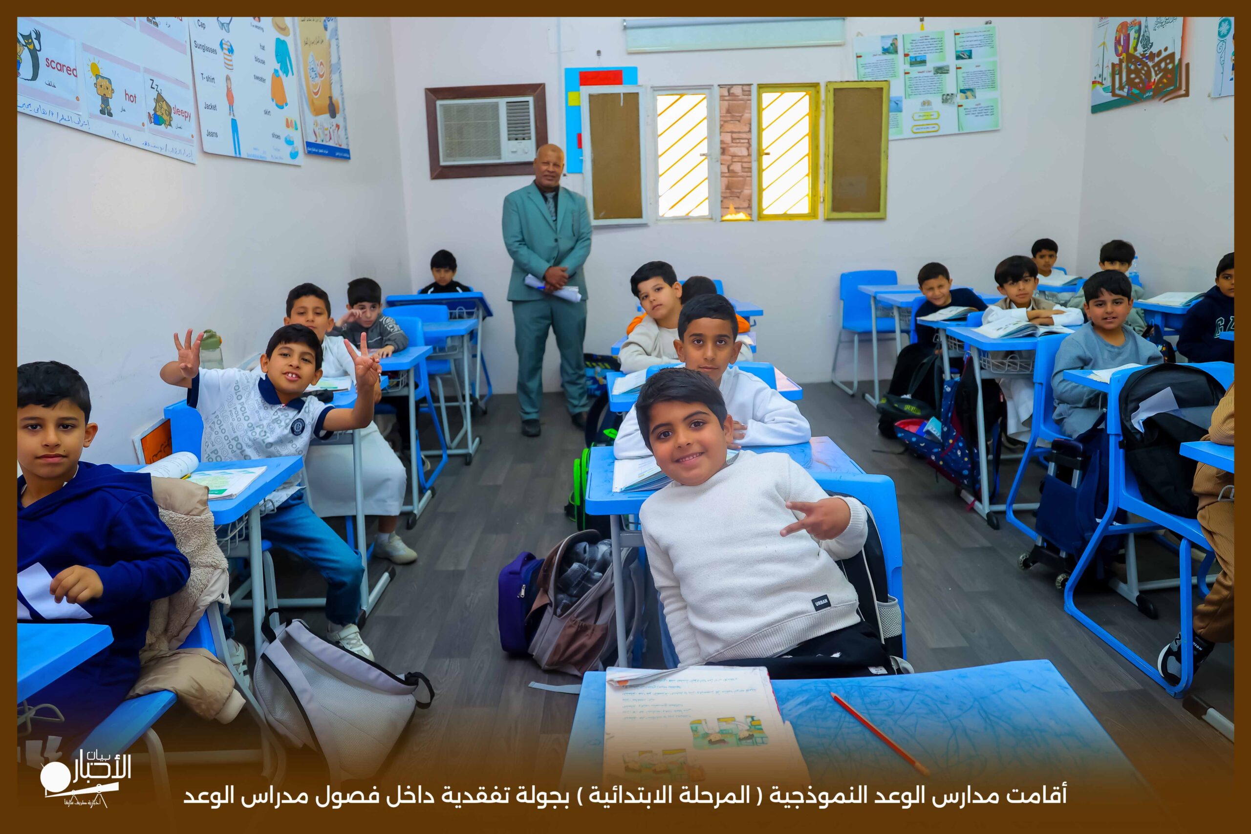 أقامت مدارس الوعد النموذجية ( المرحلة الابتدائية ) بجولة تفقدية داخل فصول مدراس الوعد ضمن الزيارات الصفية من قبل الإدارة والدعم الفني والمتابعة بالمدرسة و الوقوف على مستويات الطلاب ومدى انضباط العملية التعليمية داخل المدرسة.