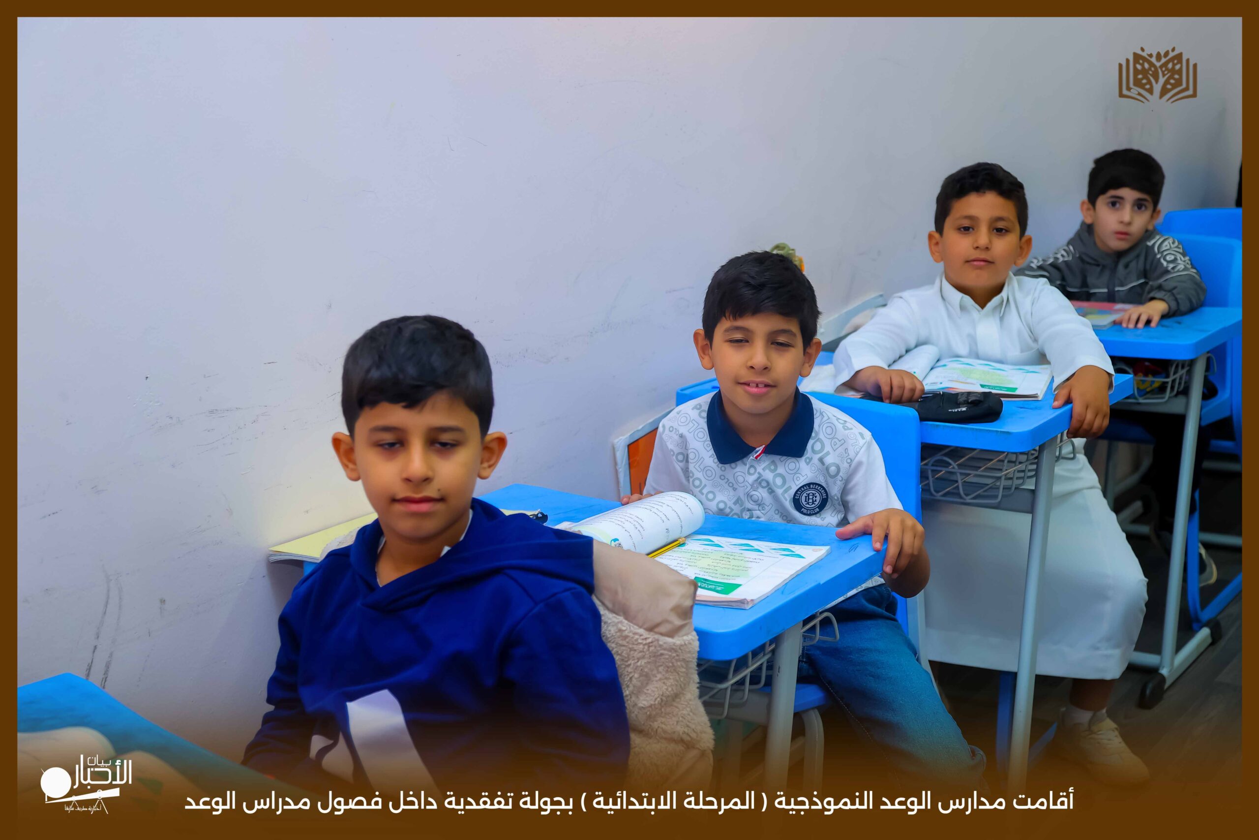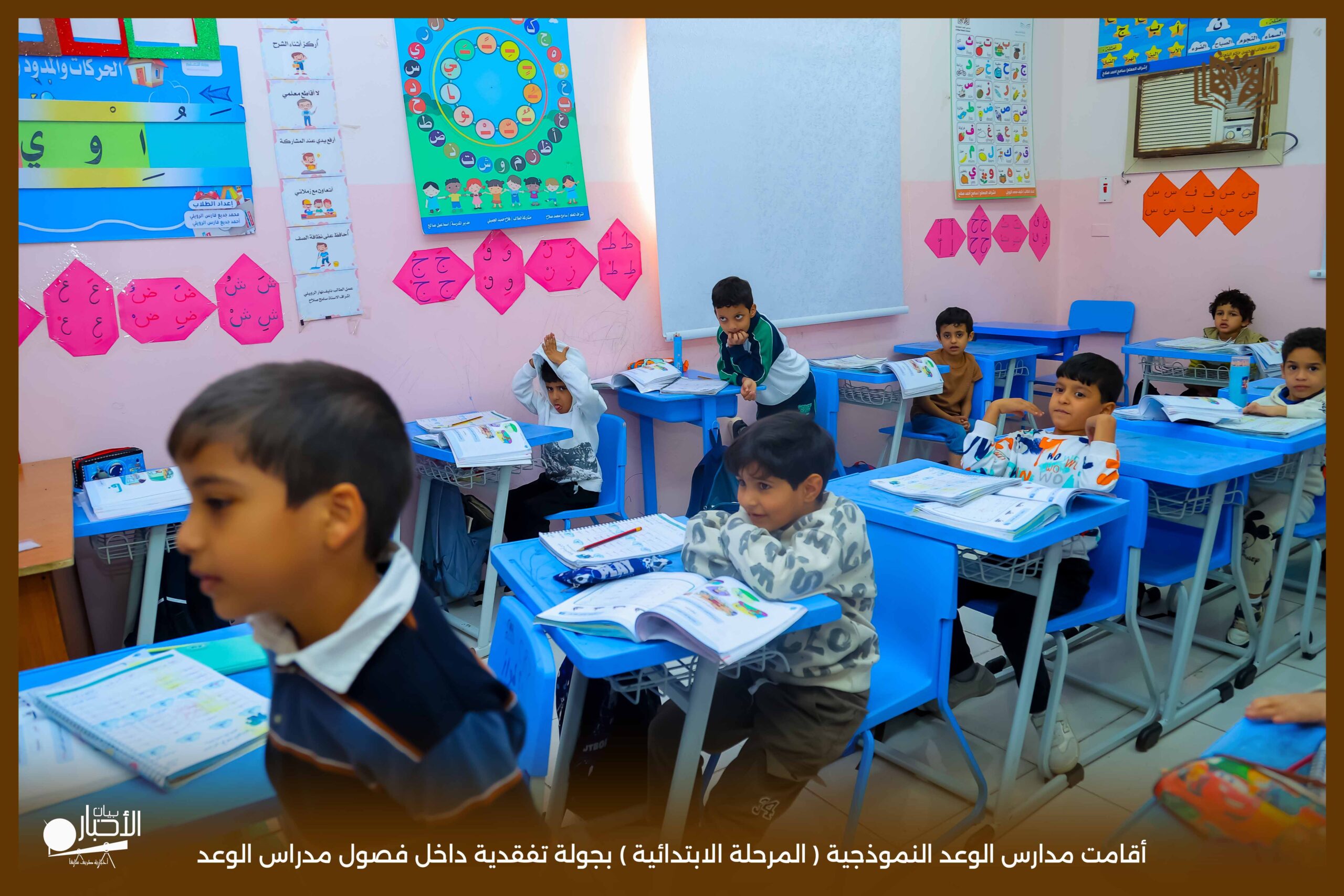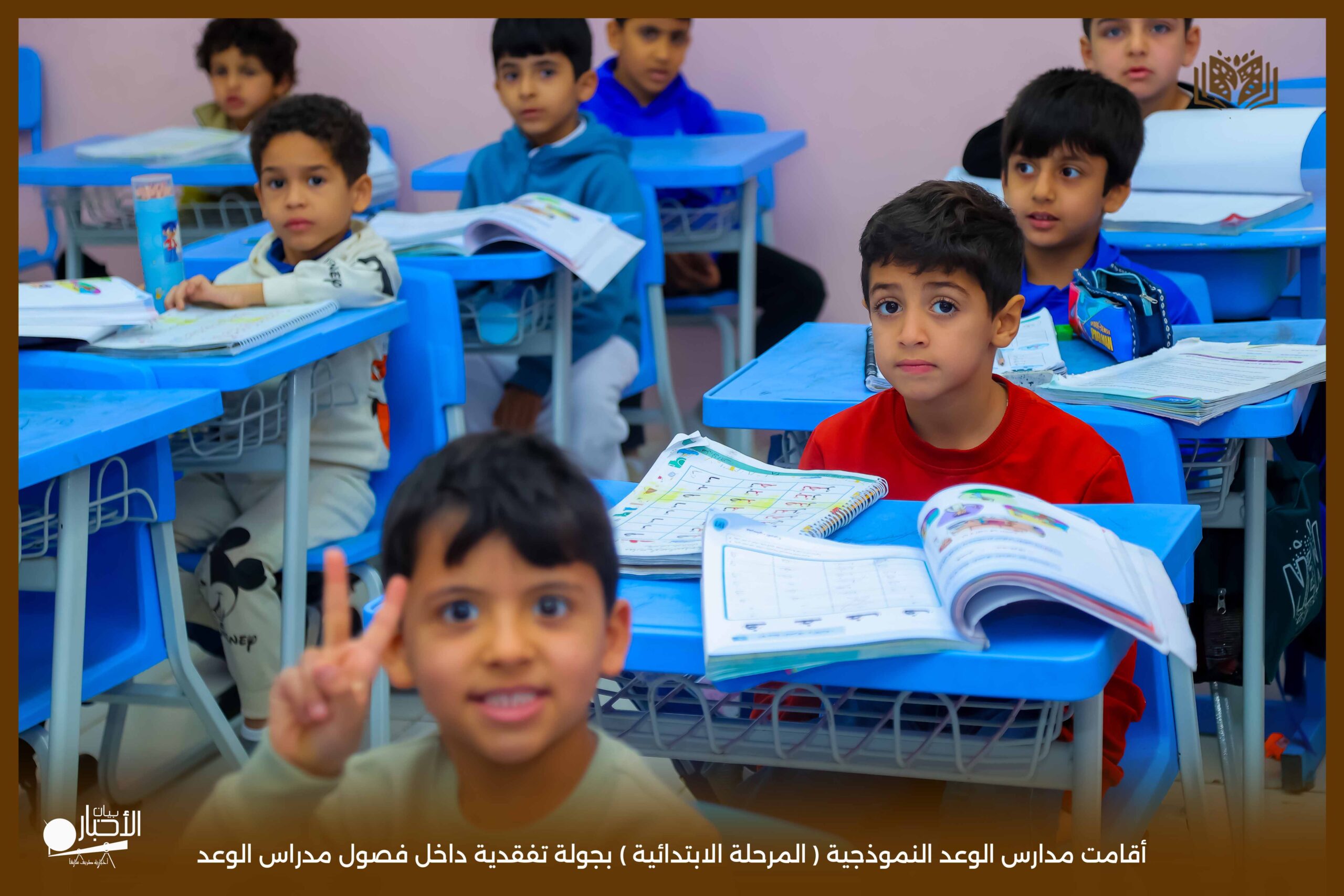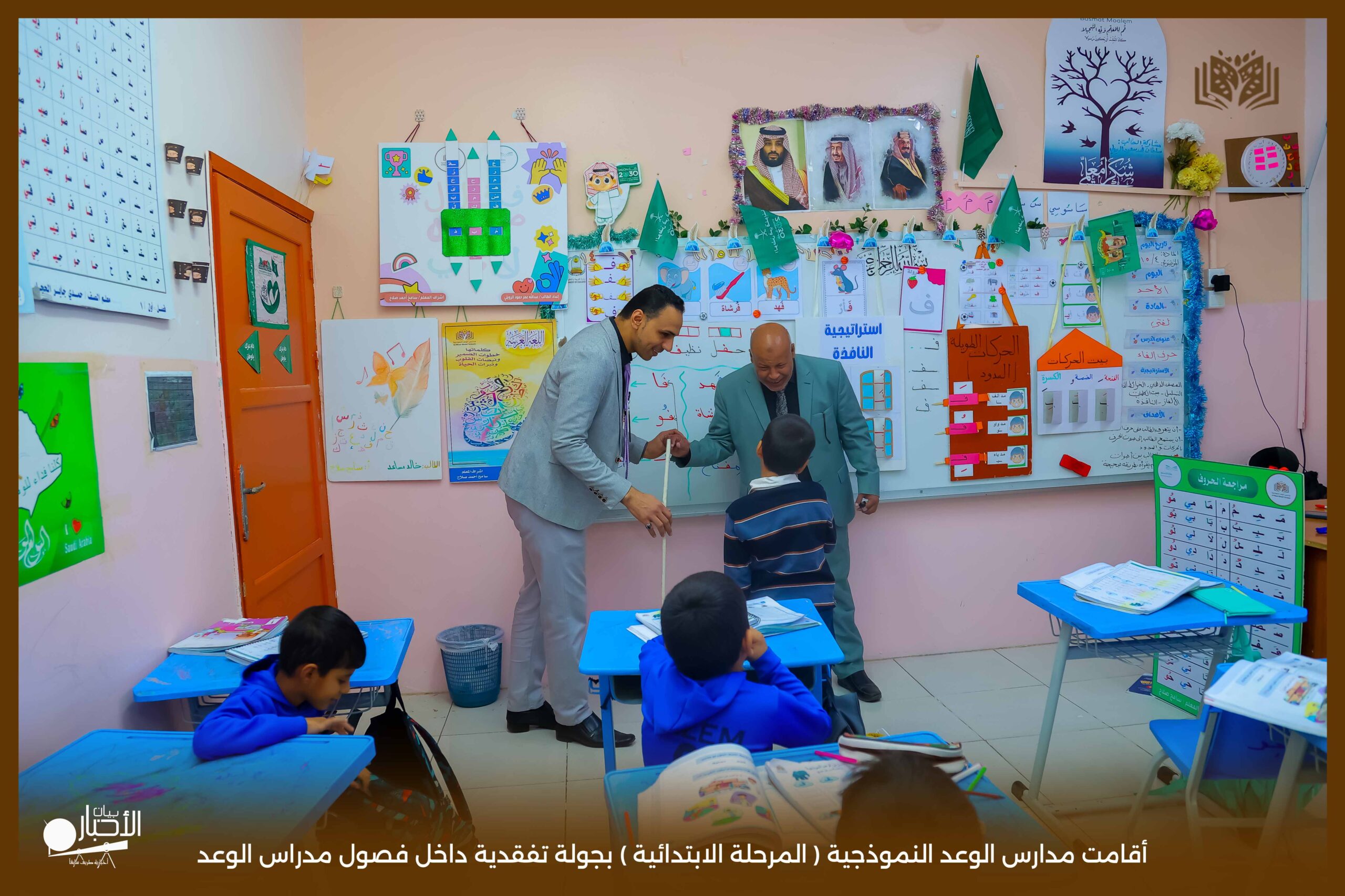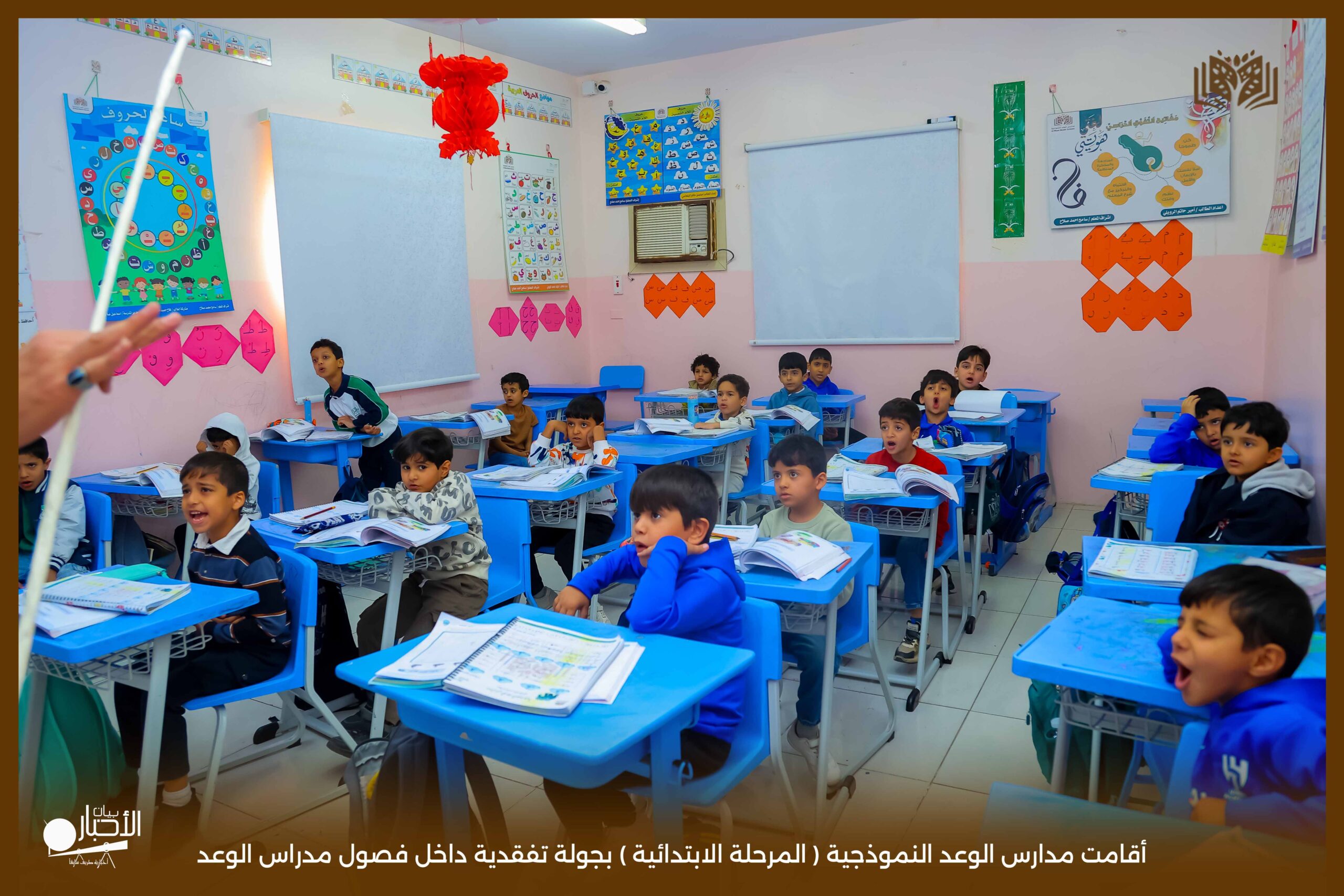 أقامت مدارس الوعد النموذجية ( المرحلة الابتدائية ) بجولة تفقدية داخل فصول مدراس الوعد ضمن الزيارات الصفية من قبل الإدارة والدعم الفني والمتابعة بالمدرسة و الوقوف على مستويات الطلاب ومدى انضباط العملية التعليمية داخل المدرسة.