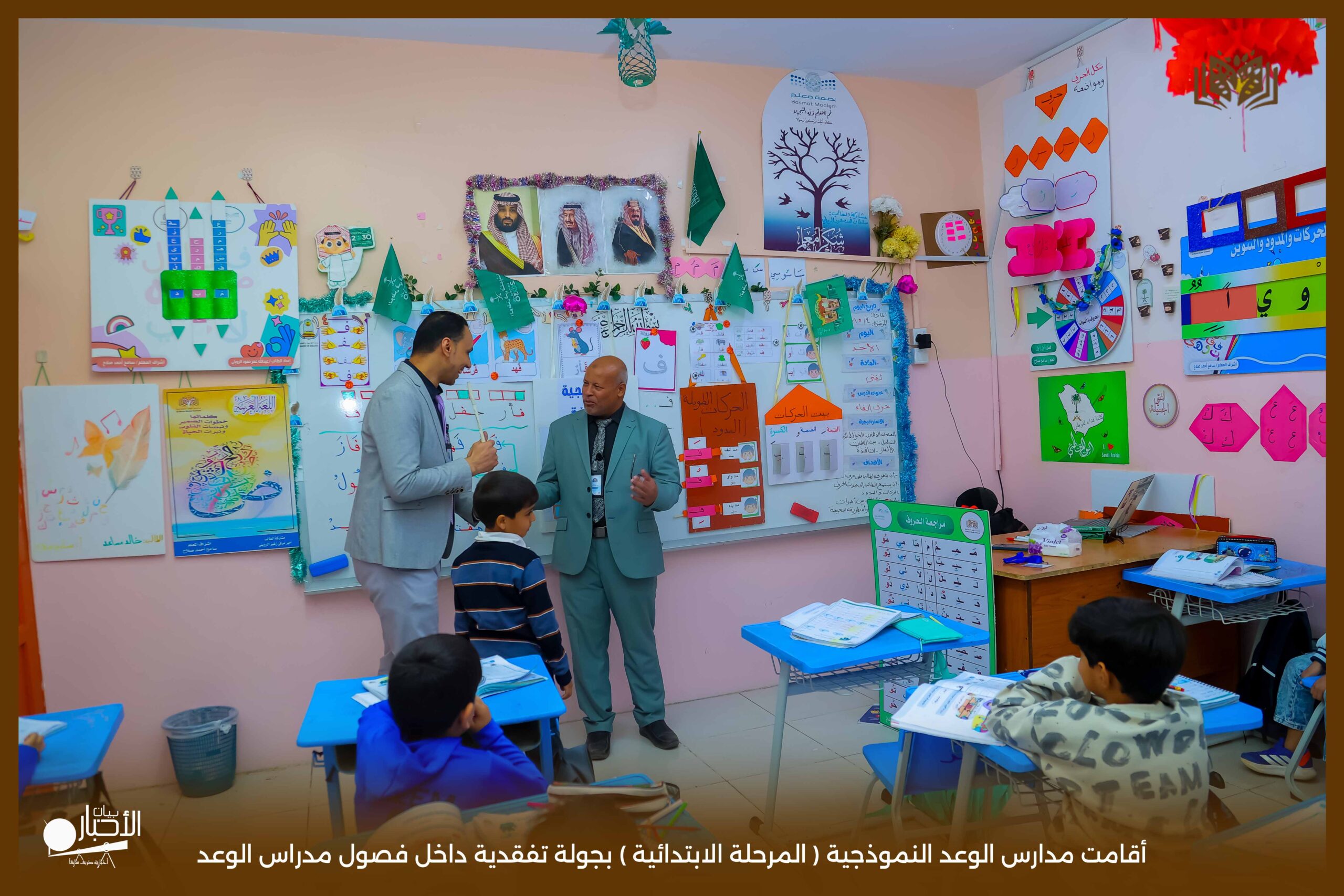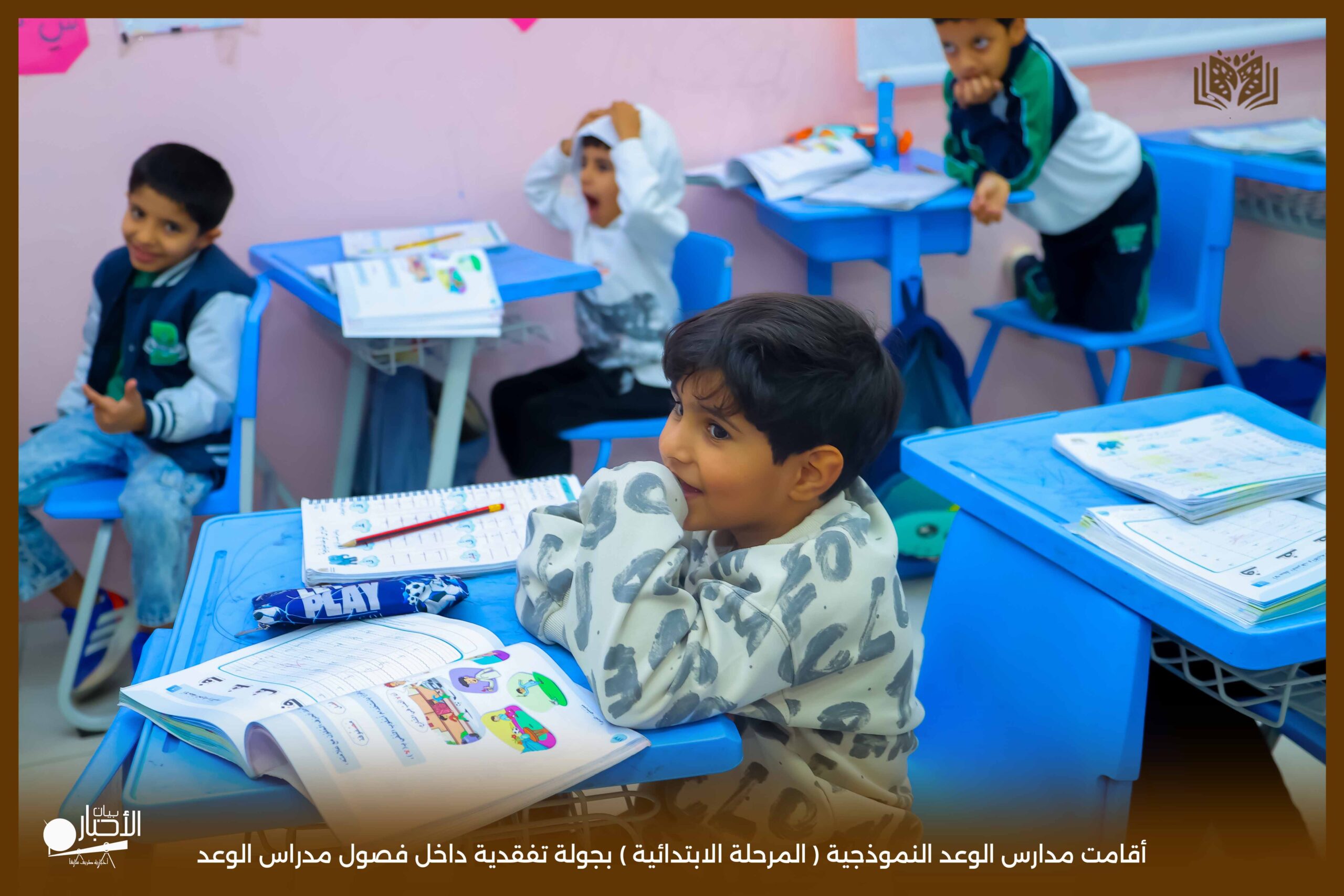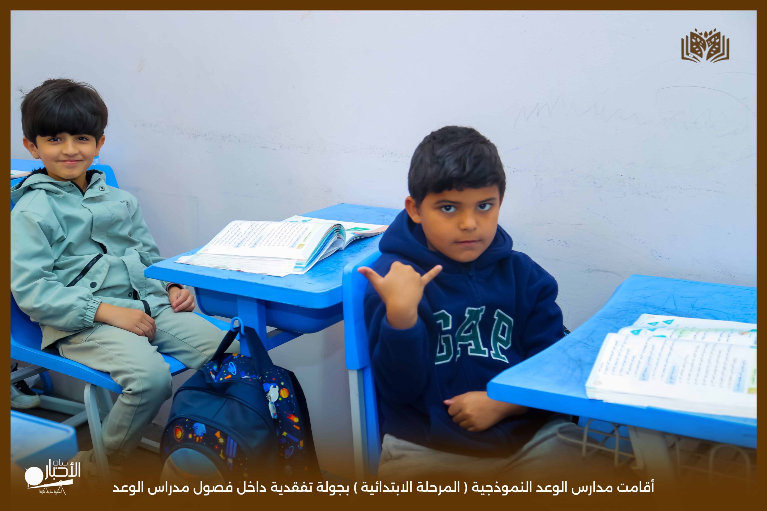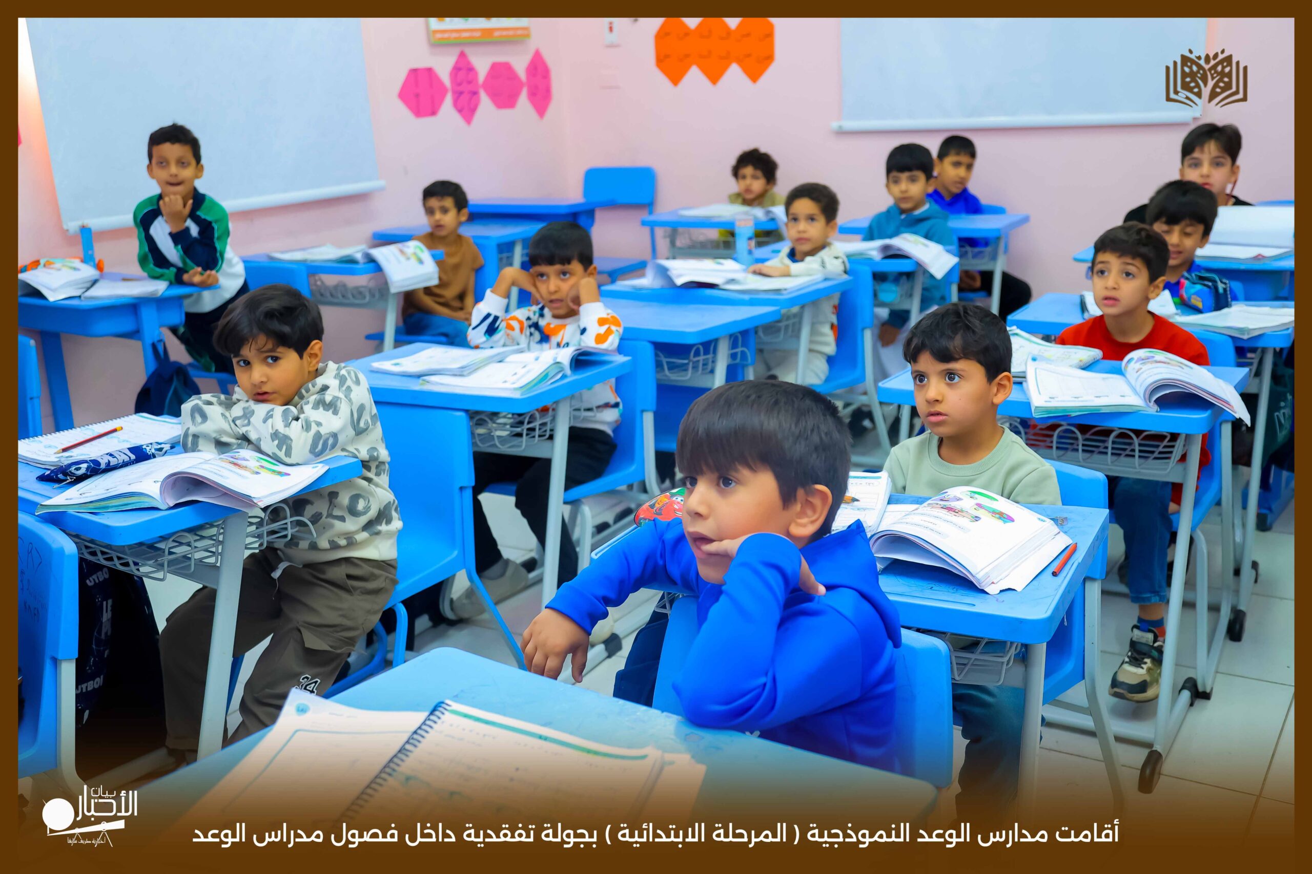 أقامت مدارس الوعد النموذجية ( المرحلة الابتدائية ) بجولة تفقدية داخل فصول مدراس الوعد ضمن الزيارات الصفية من قبل الإدارة والدعم الفني والمتابعة بالمدرسة و الوقوف على مستويات الطلاب ومدى انضباط العملية التعليمية داخل المدرسة.