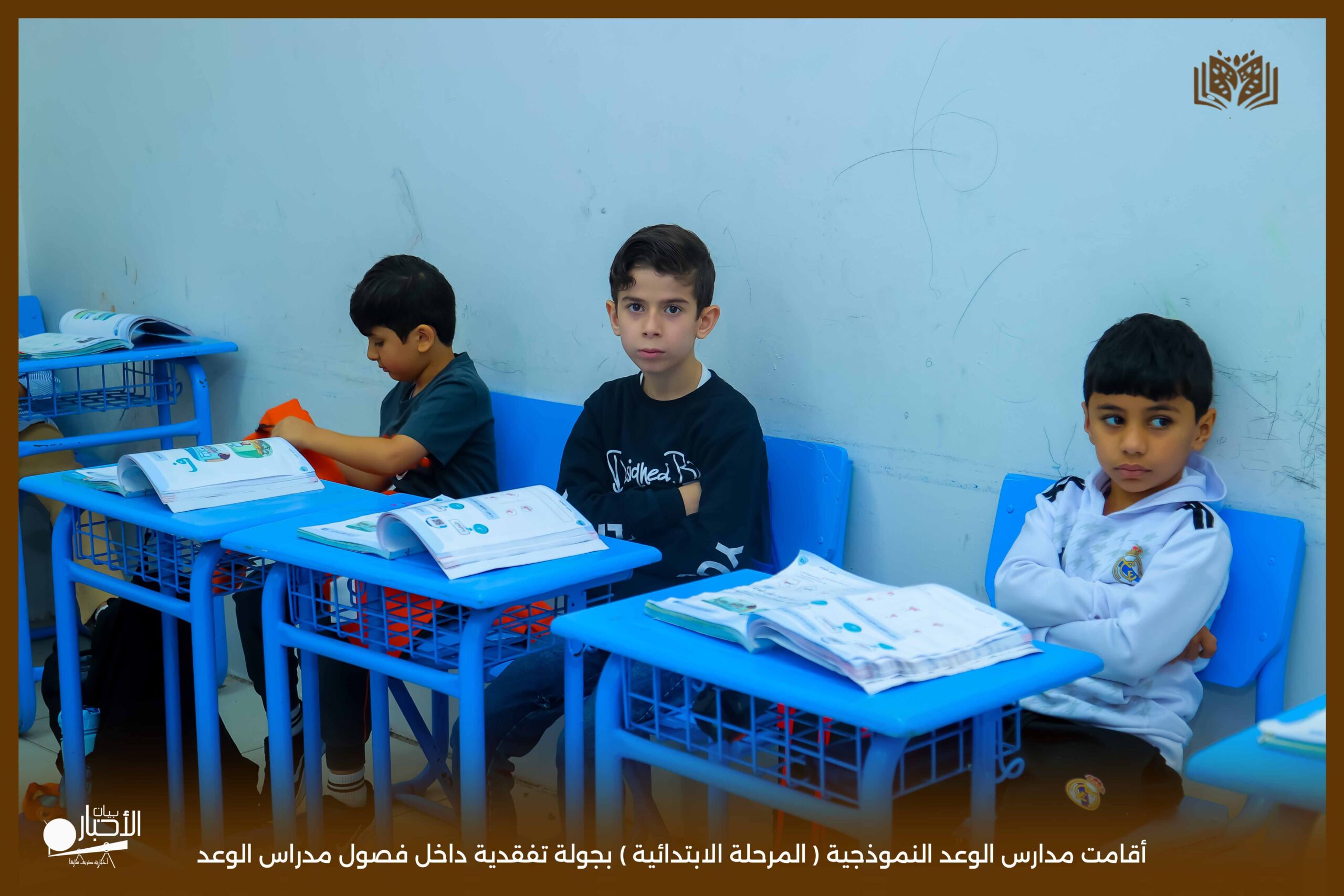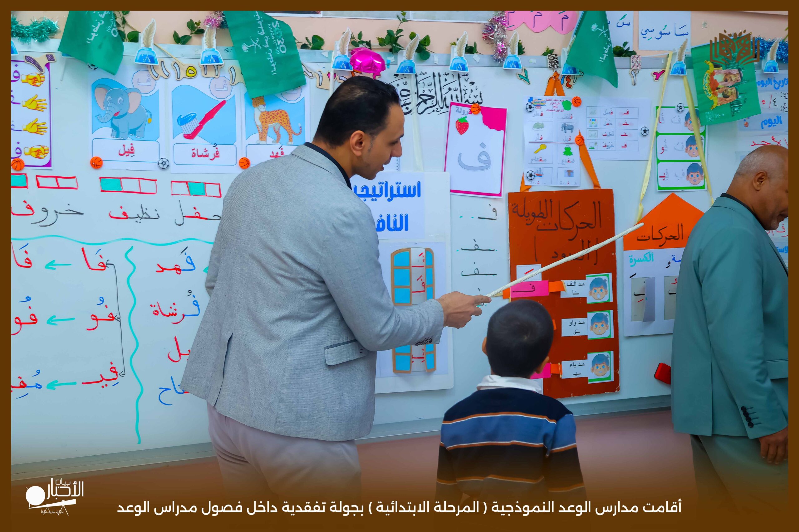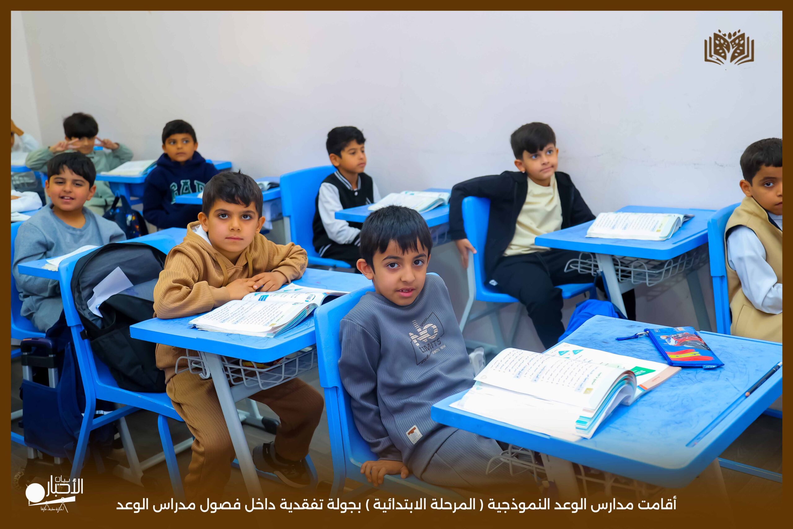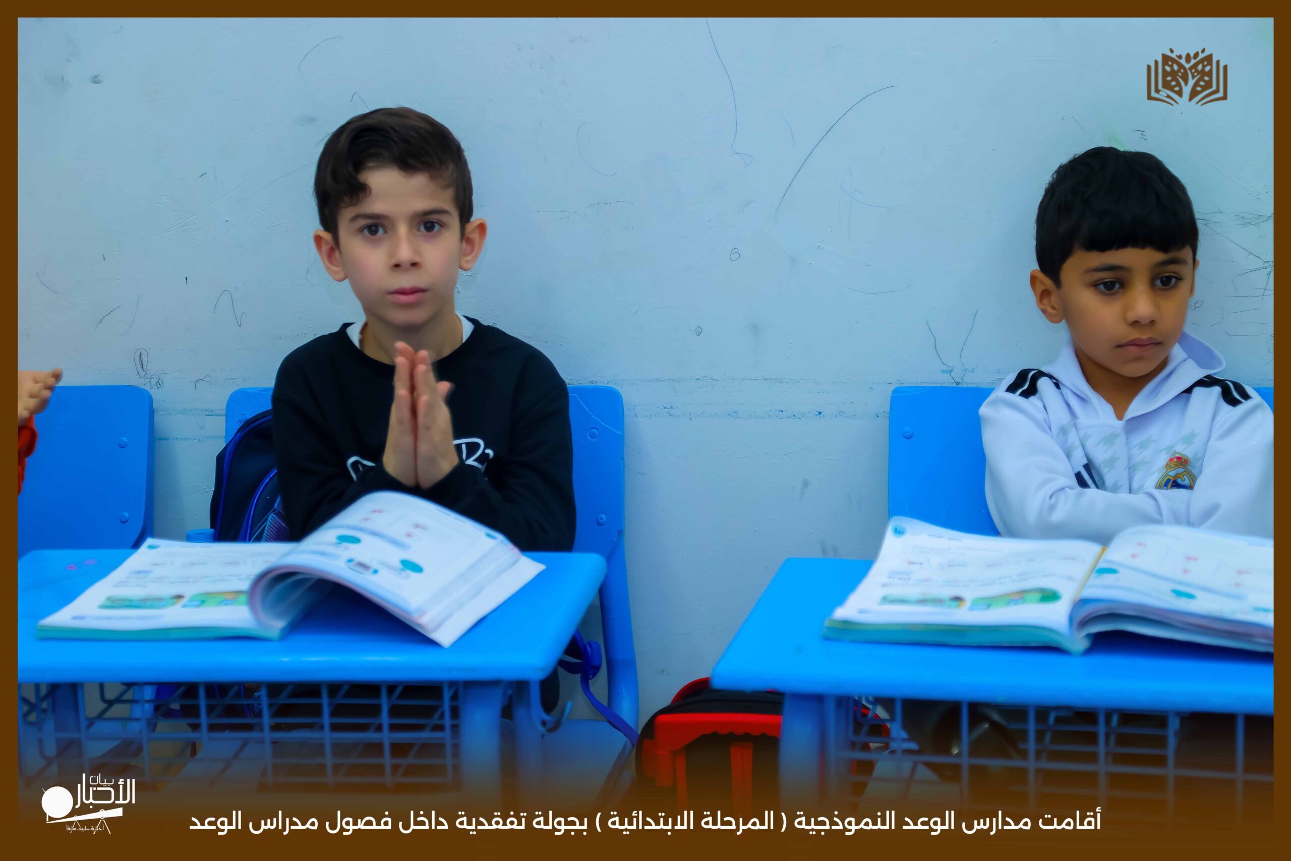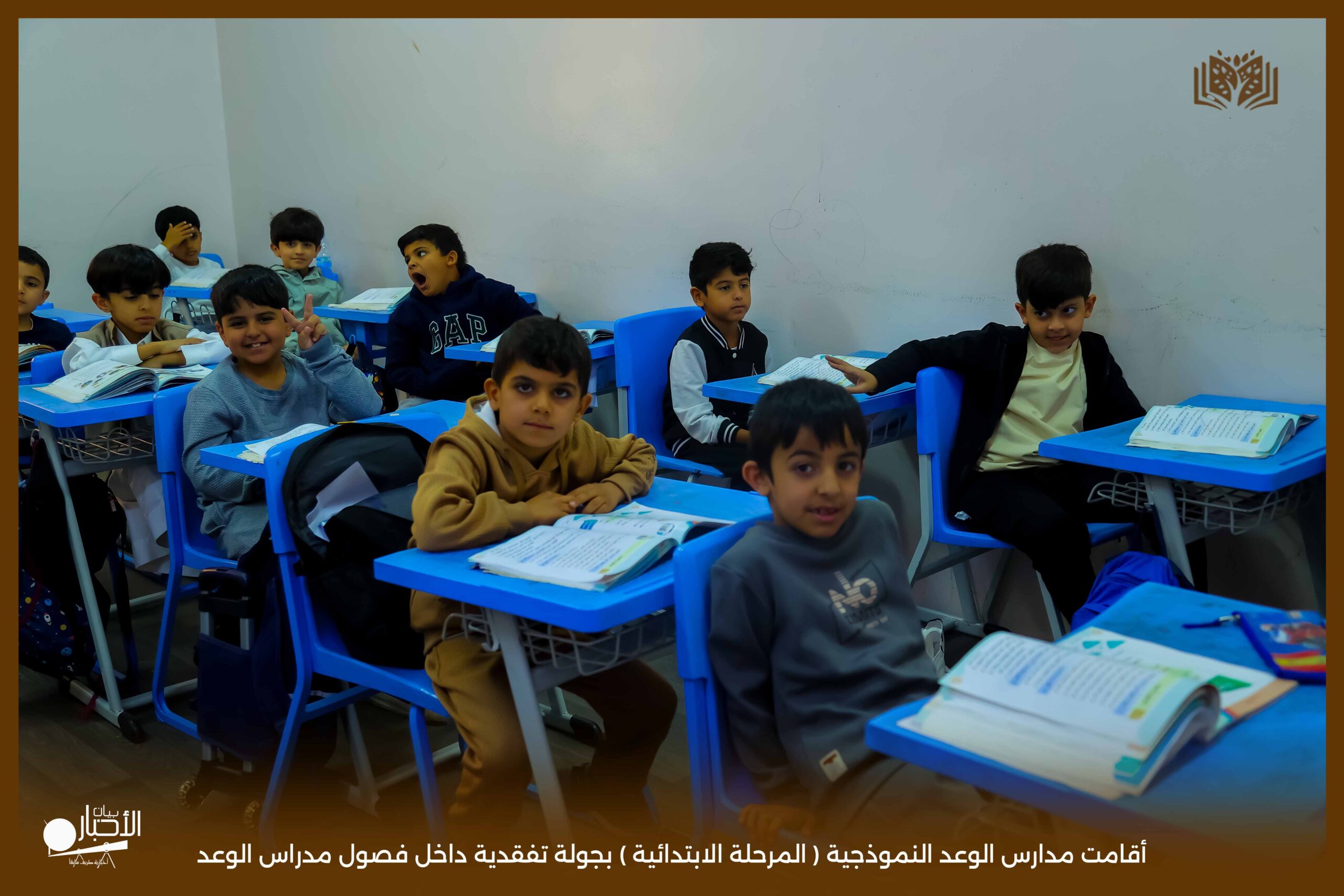 أقامت مدارس الوعد النموذجية ( المرحلة الابتدائية ) بجولة تفقدية داخل فصول مدراس الوعد ضمن الزيارات الصفية من قبل الإدارة والدعم الفني والمتابعة بالمدرسة و الوقوف على مستويات الطلاب ومدى انضباط العملية التعليمية داخل المدرسة.