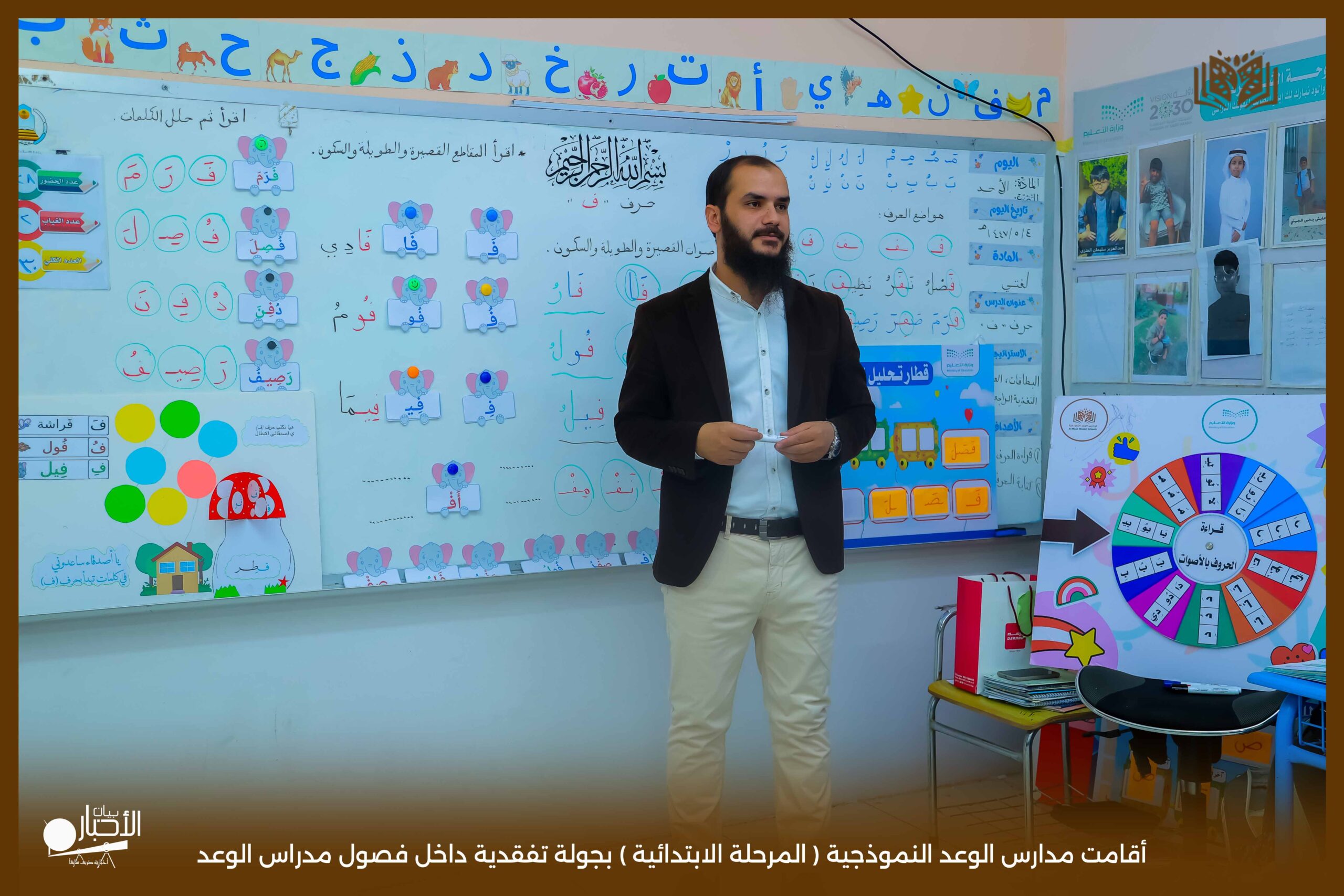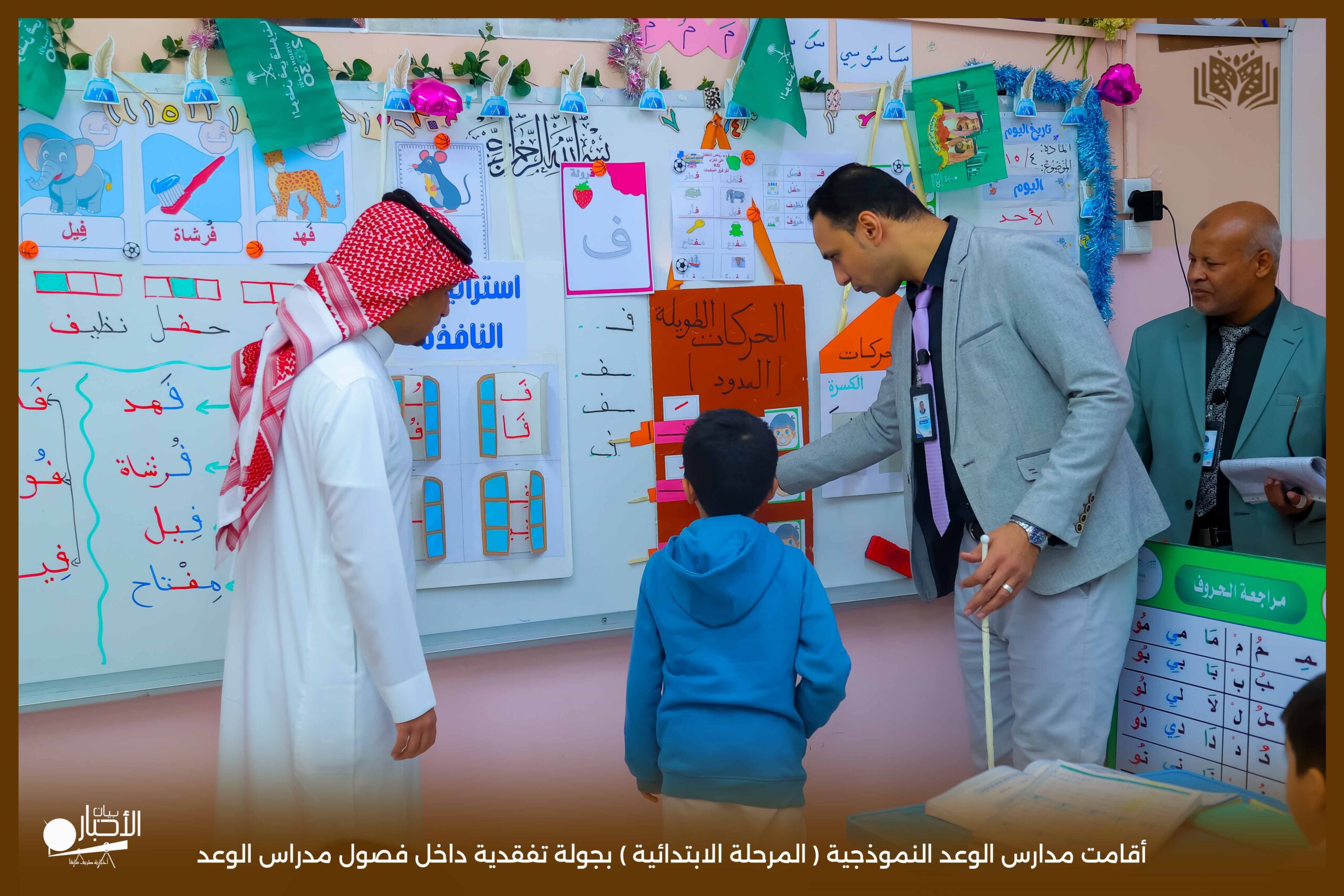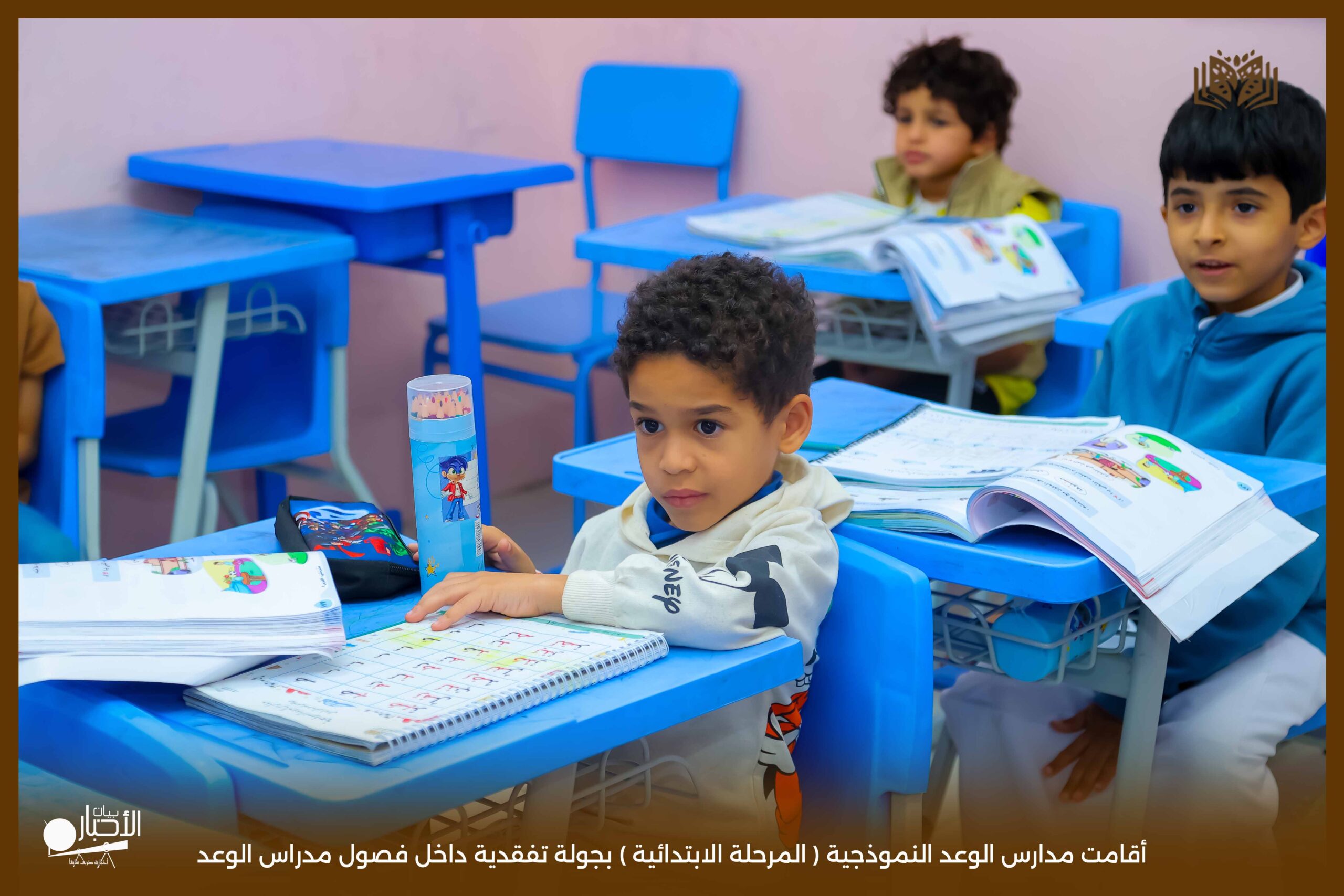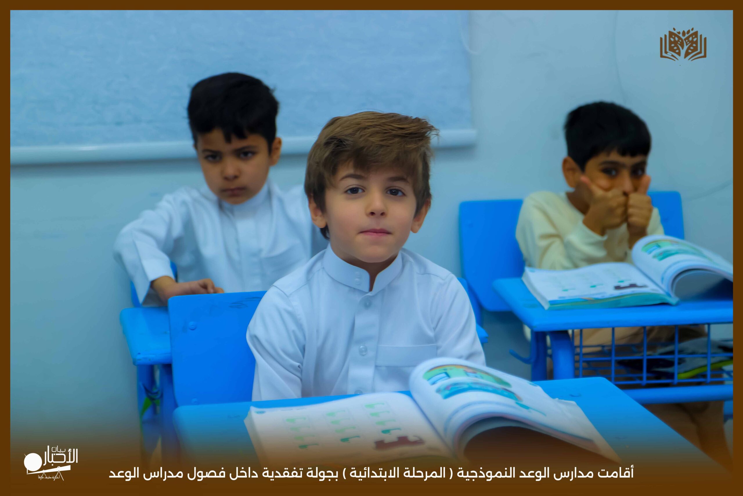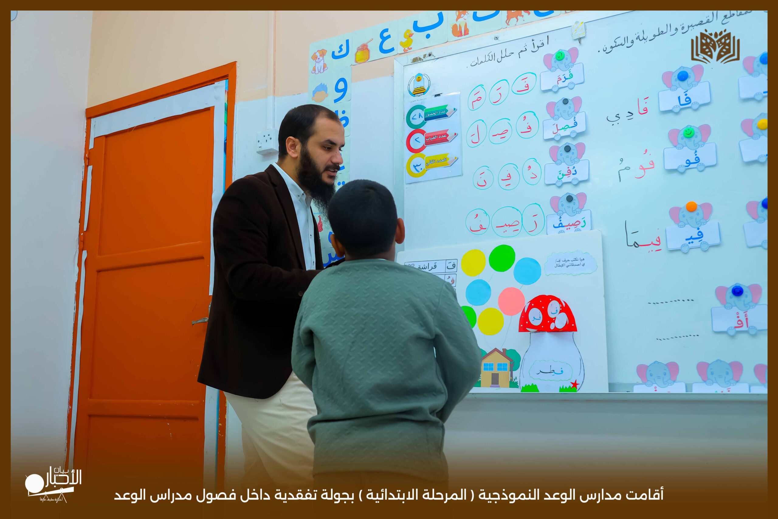 أقامت مدارس الوعد النموذجية ( المرحلة الابتدائية ) بجولة تفقدية داخل فصول مدراس الوعد ضمن الزيارات الصفية من قبل الإدارة والدعم الفني والمتابعة بالمدرسة و الوقوف على مستويات الطلاب ومدى انضباط العملية التعليمية داخل المدرسة.