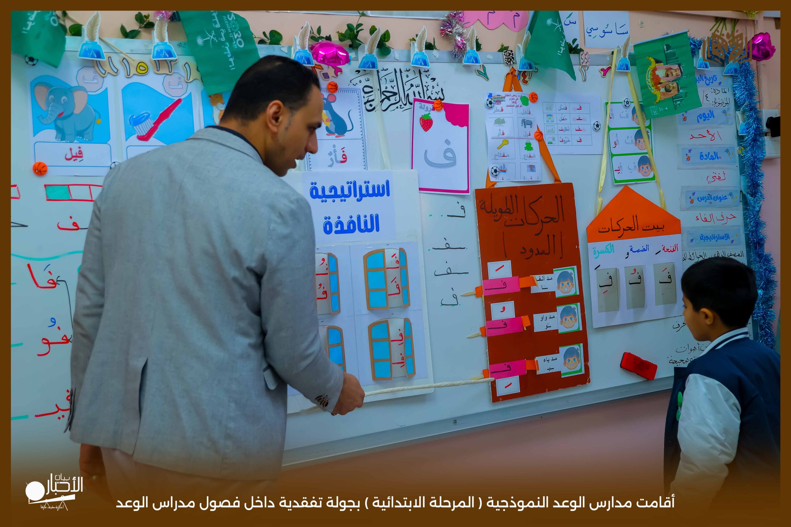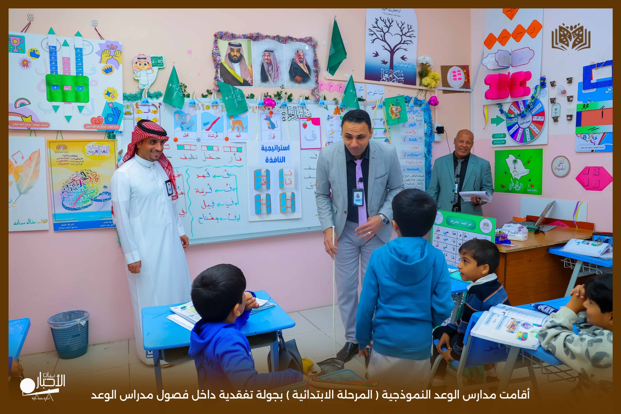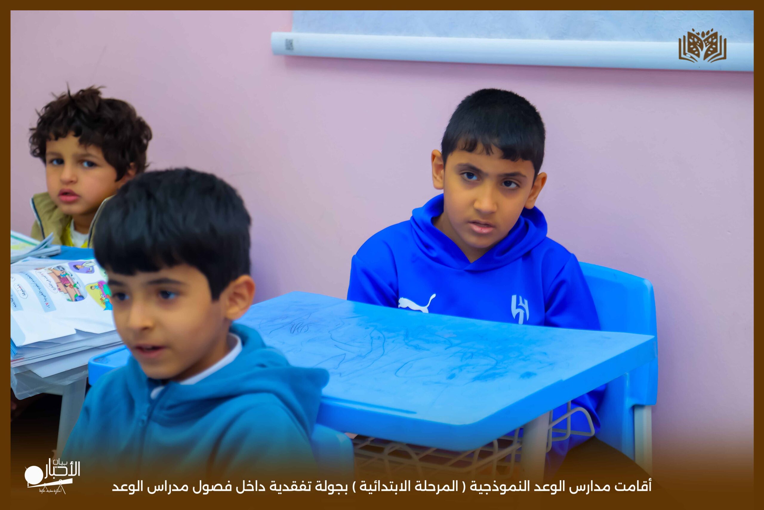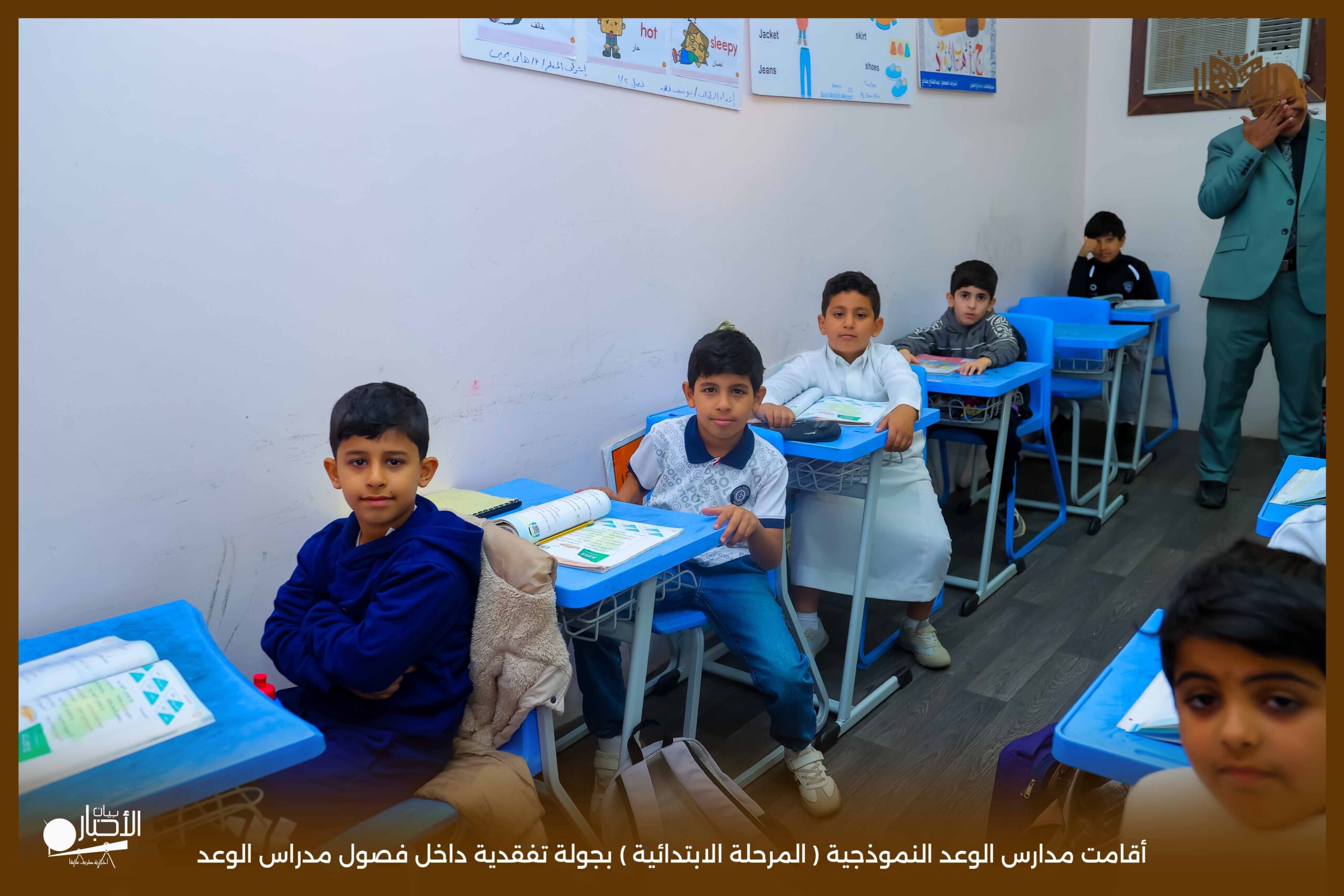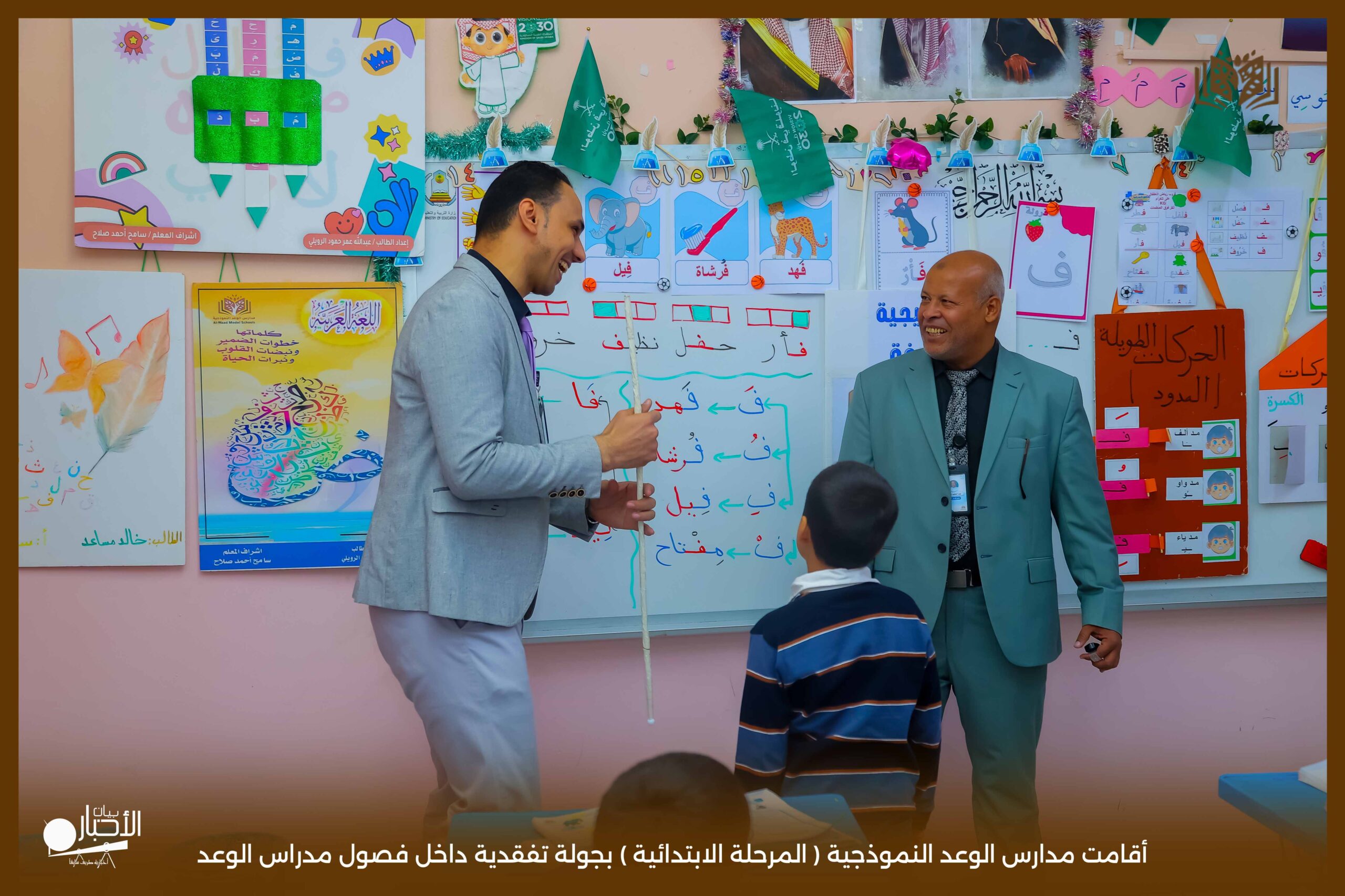أقامت مدارس الوعد النموذجية ( المرحلة الابتدائية ) بجولة تفقدية داخل فصول مدراس الوعد ضمن الزيارات الصفية من قبل الإدارة والدعم الفني والمتابعة بالمدرسة و الوقوف على مستويات الطلاب ومدى انضباط العملية التعليمية داخل المدرسة.