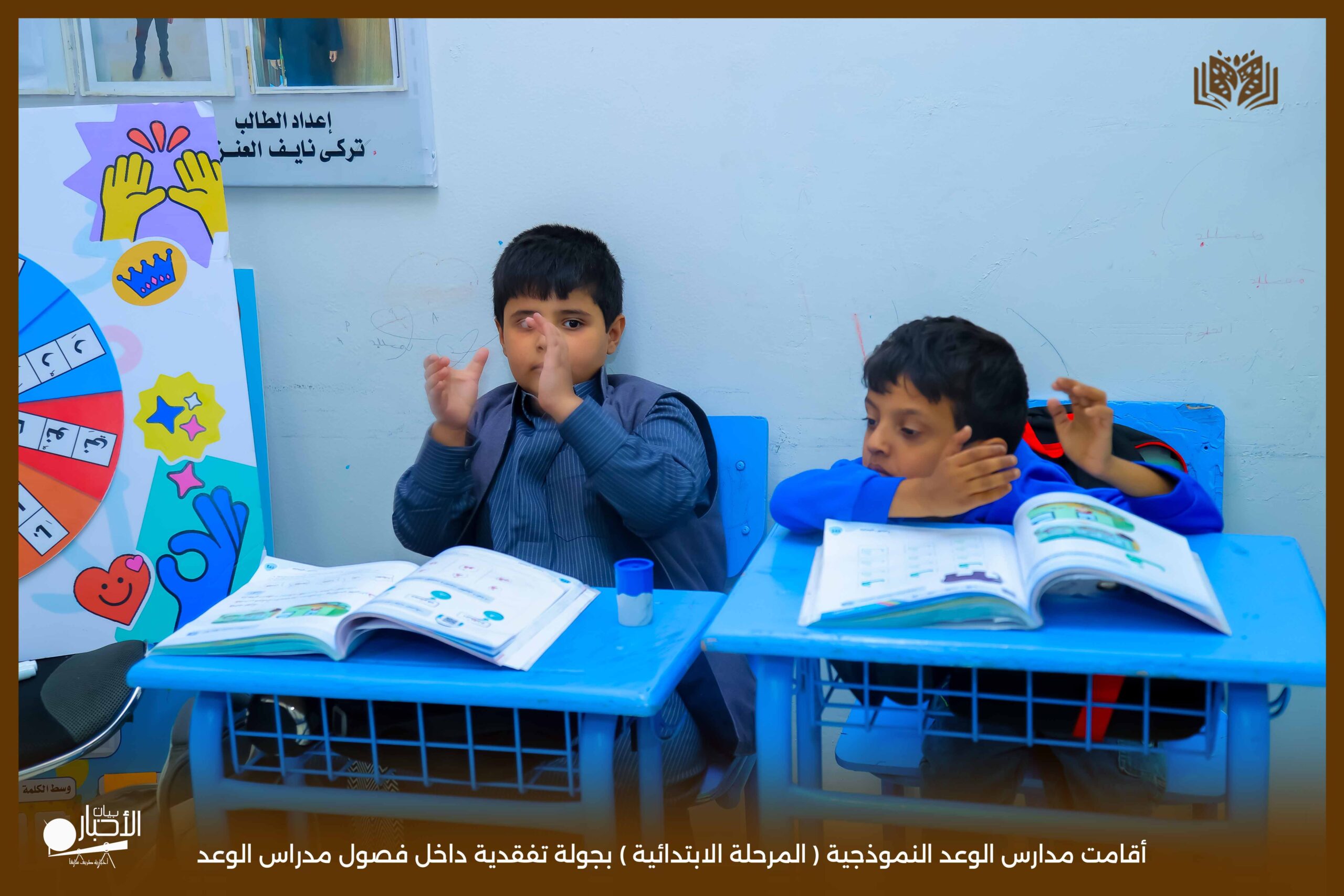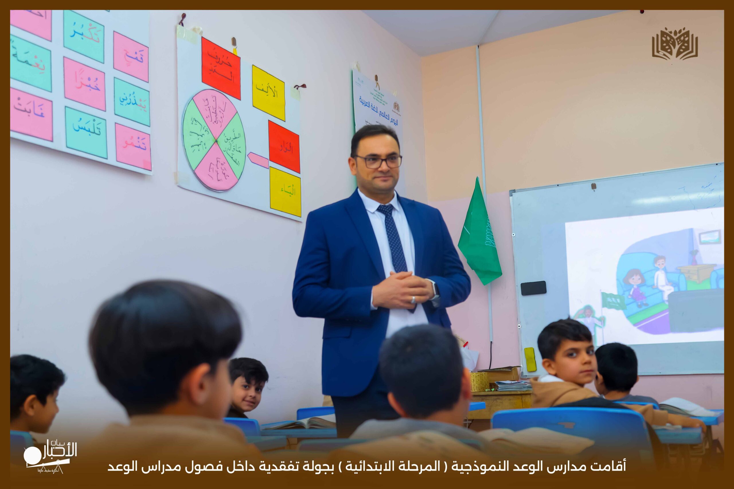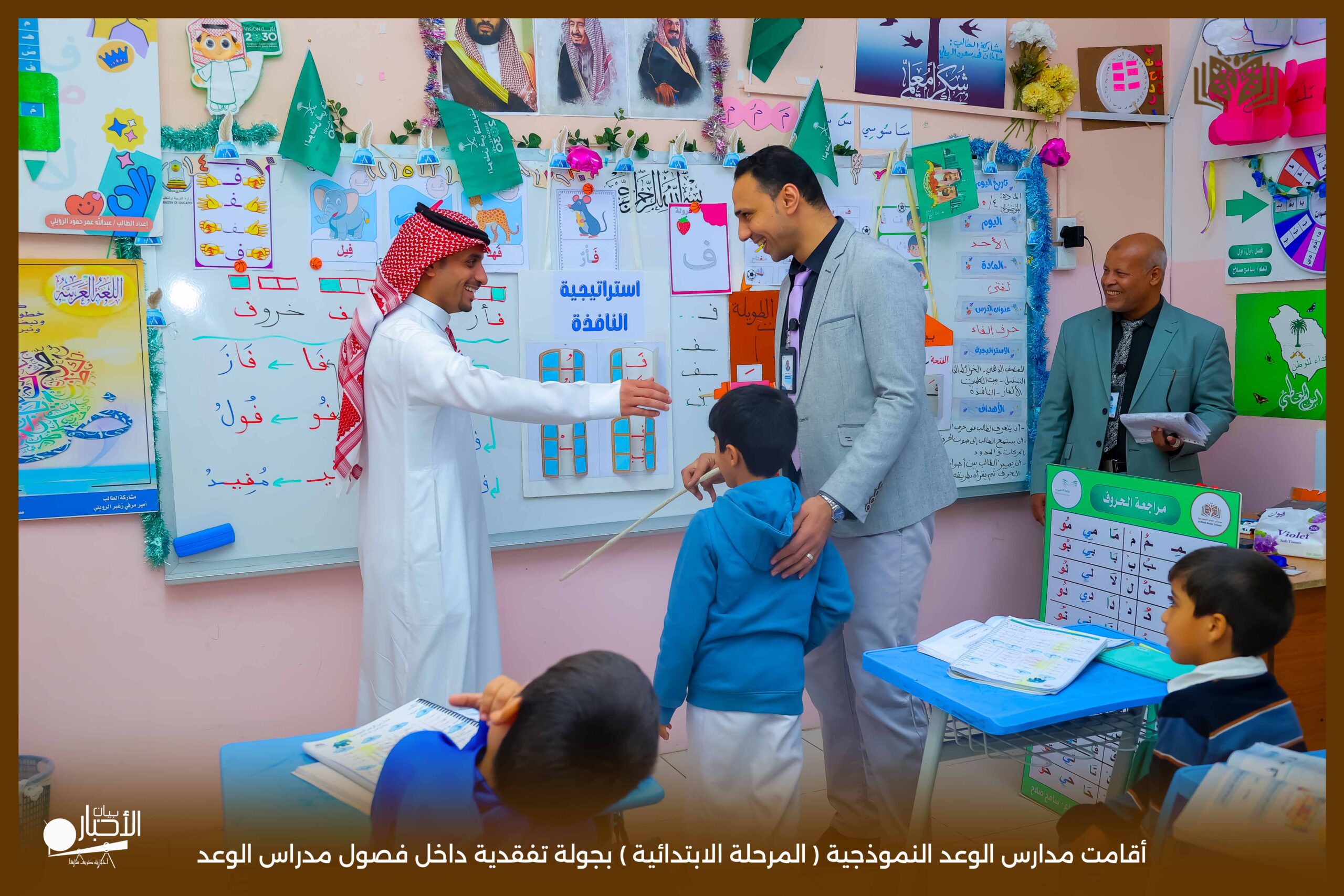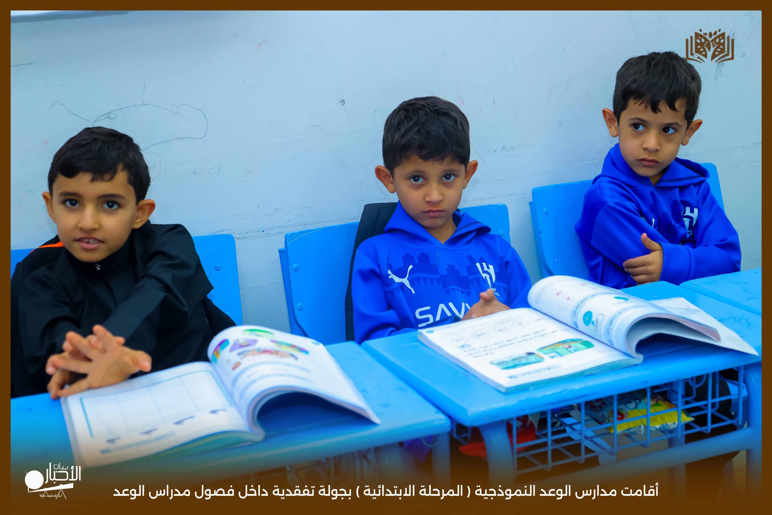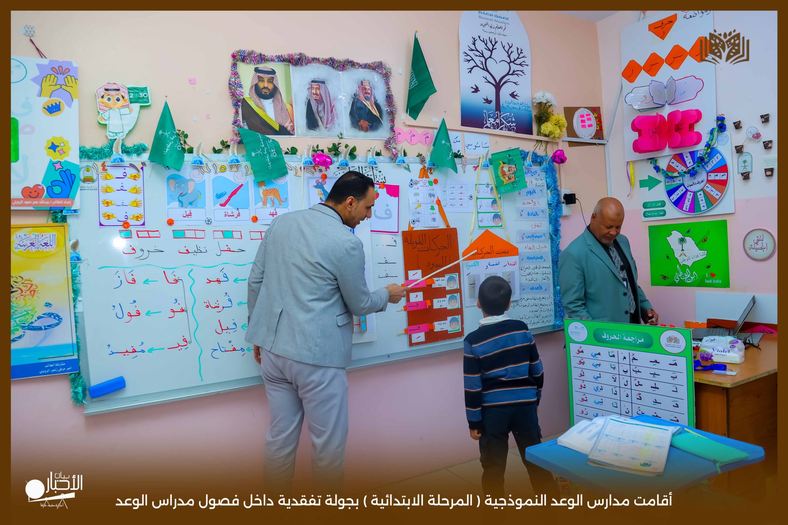 أقامت مدارس الوعد النموذجية ( المرحلة الابتدائية ) بجولة تفقدية داخل فصول مدراس الوعد ضمن الزيارات الصفية من قبل الإدارة والدعم الفني والمتابعة بالمدرسة و الوقوف على مستويات الطلاب ومدى انضباط العملية التعليمية داخل المدرسة.
