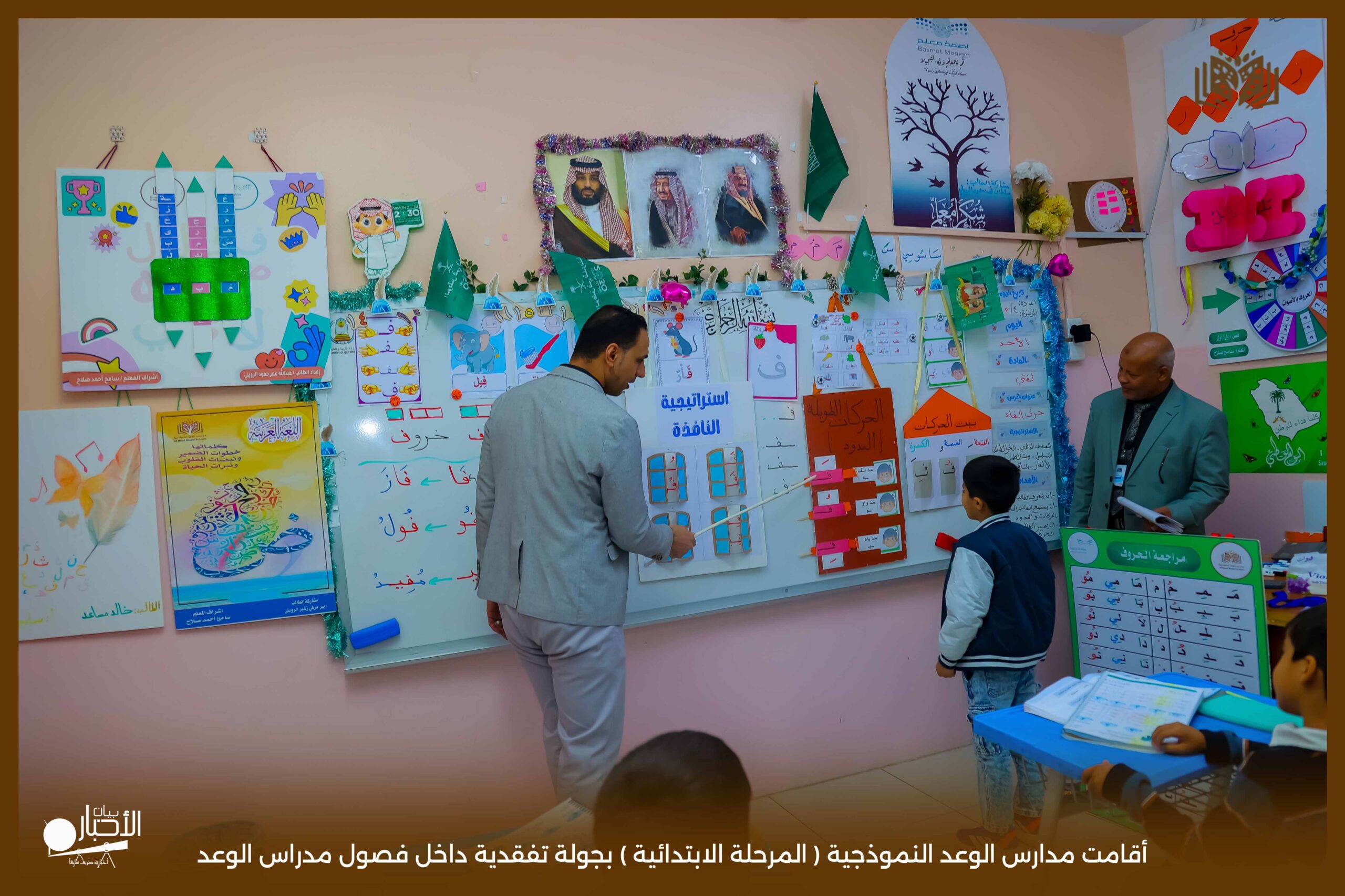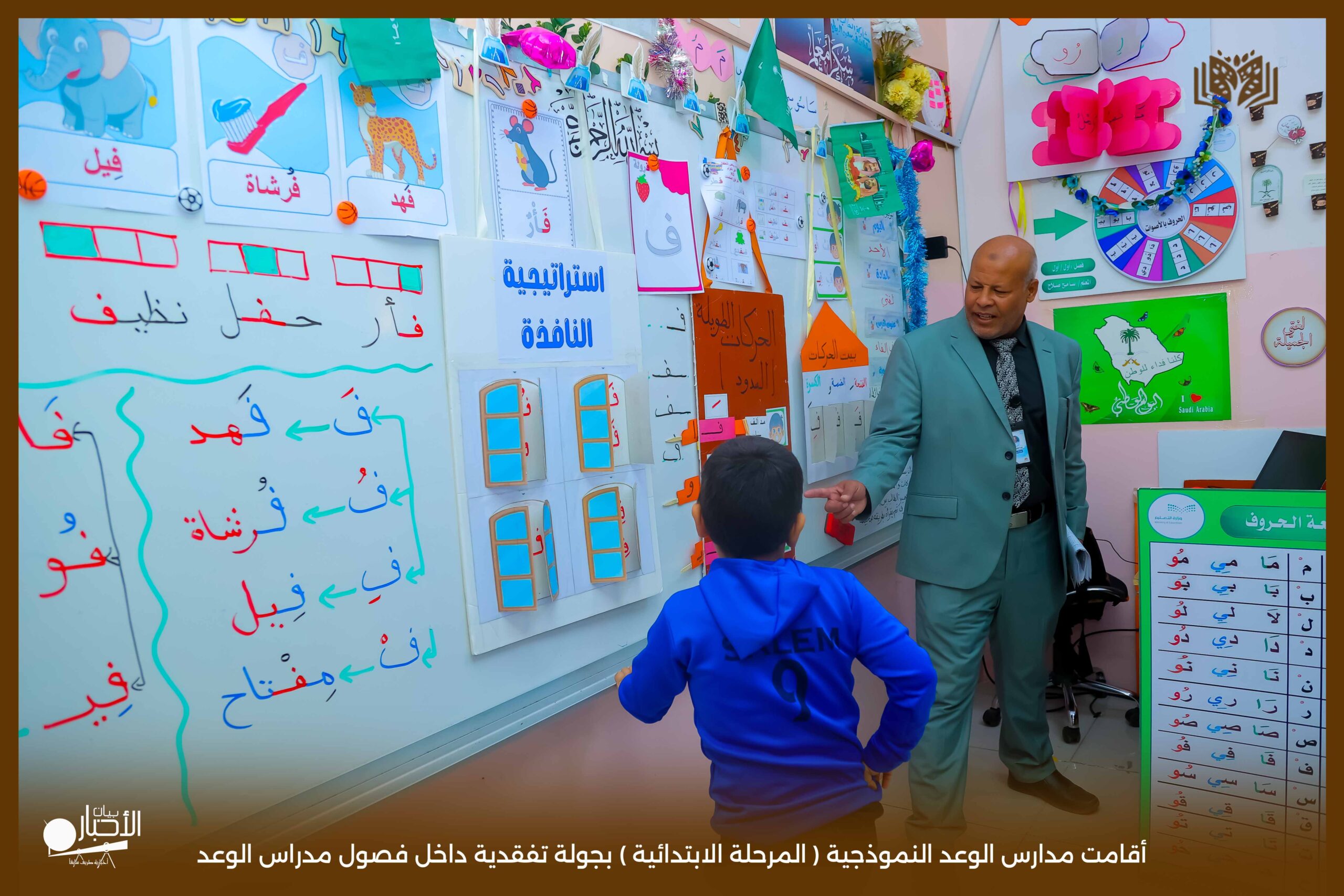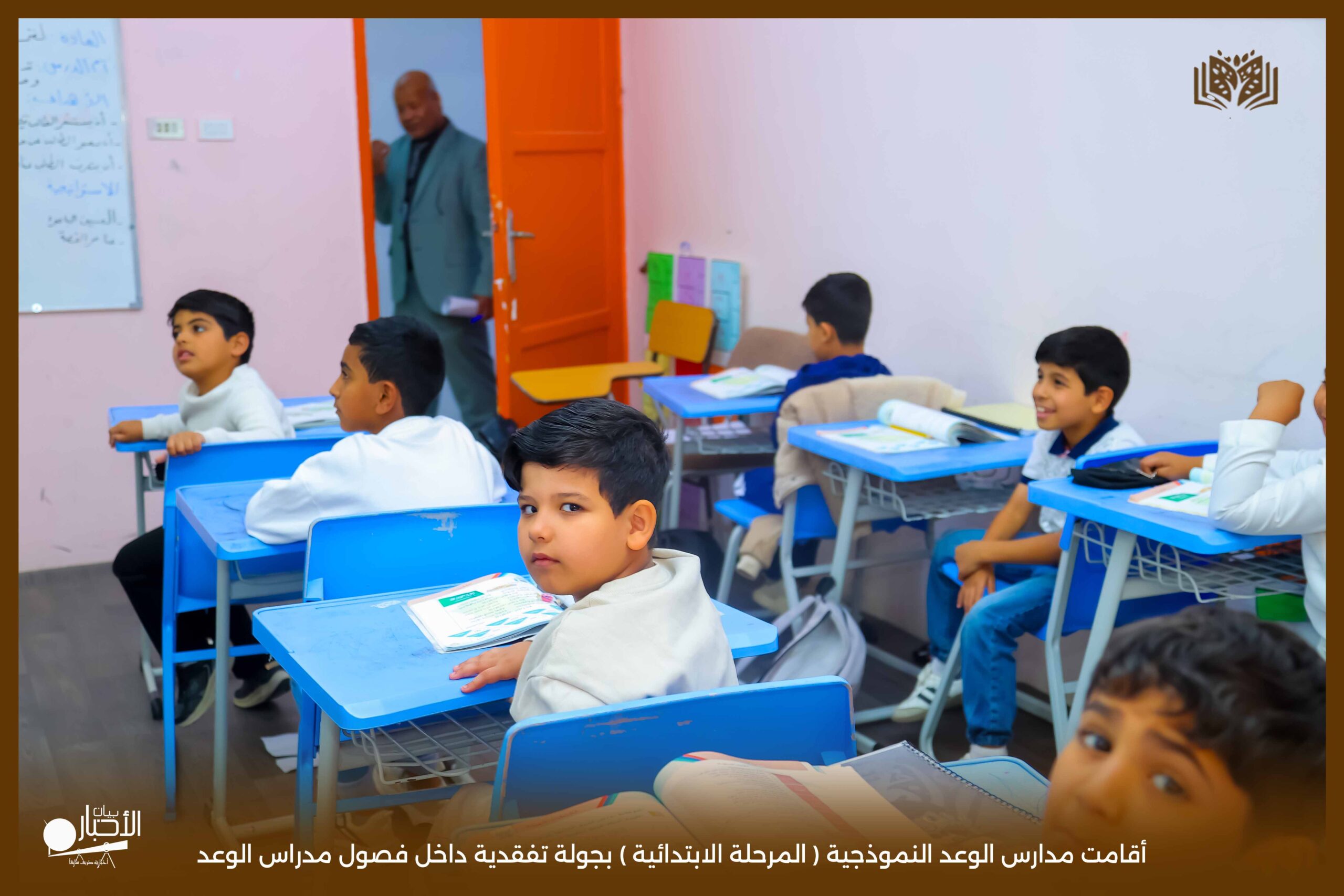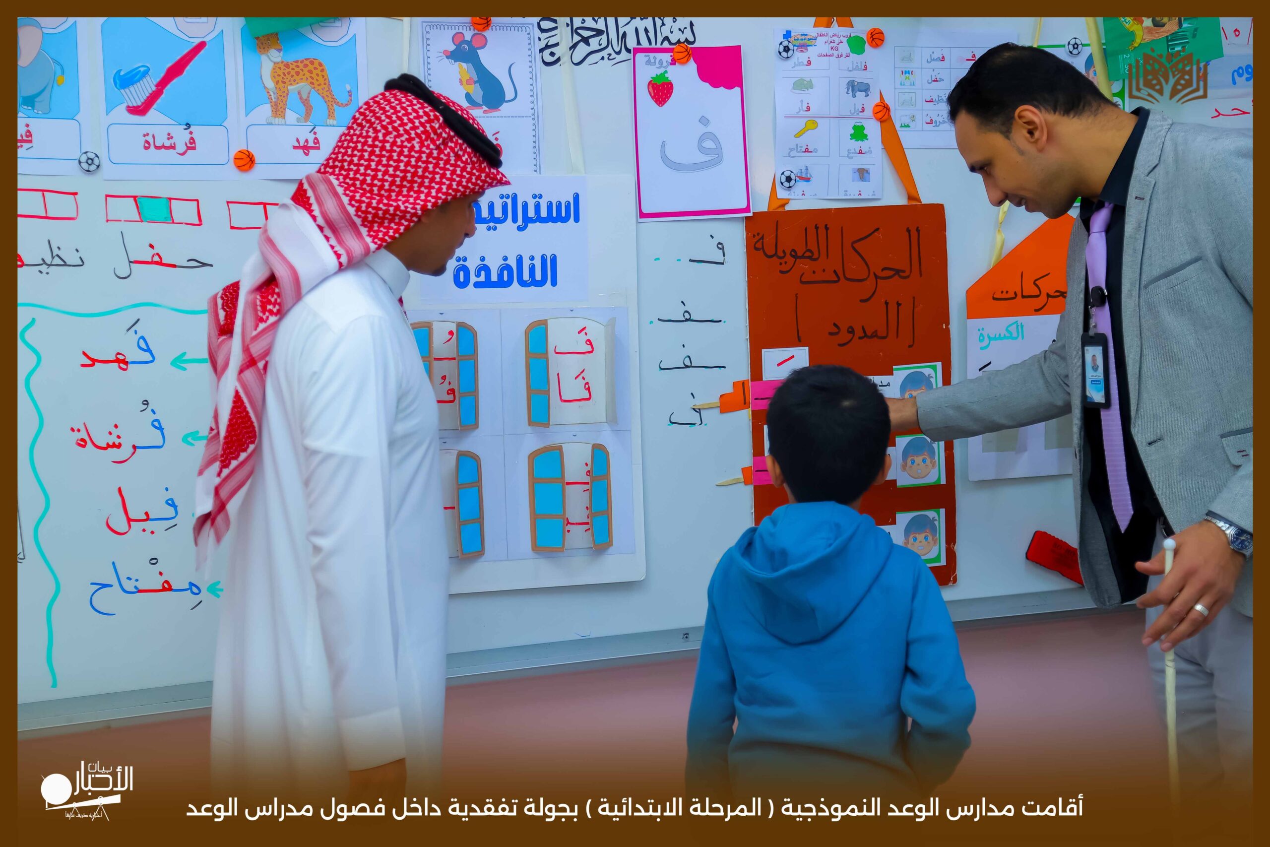 أقامت مدارس الوعد النموذجية ( المرحلة الابتدائية ) بجولة تفقدية داخل فصول مدراس الوعد ضمن الزيارات الصفية من قبل الإدارة والدعم الفني والمتابعة بالمدرسة و الوقوف على مستويات الطلاب ومدى انضباط العملية التعليمية داخل المدرسة.