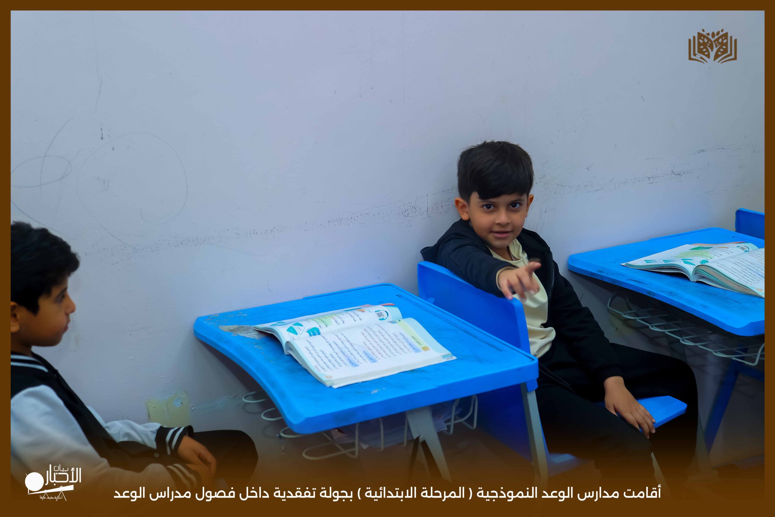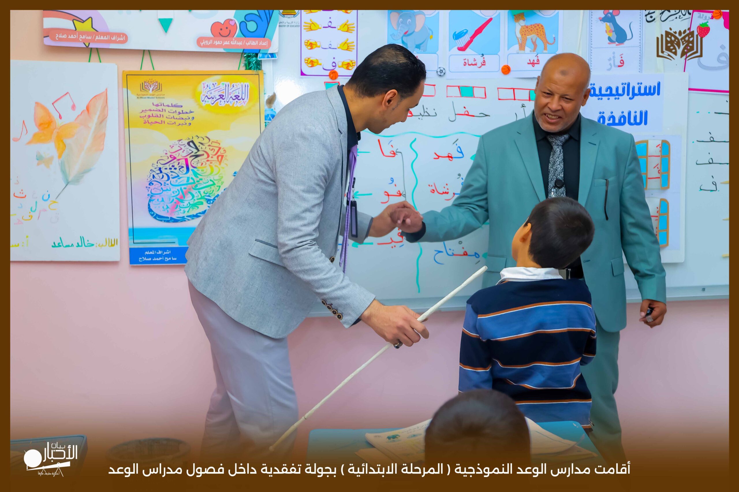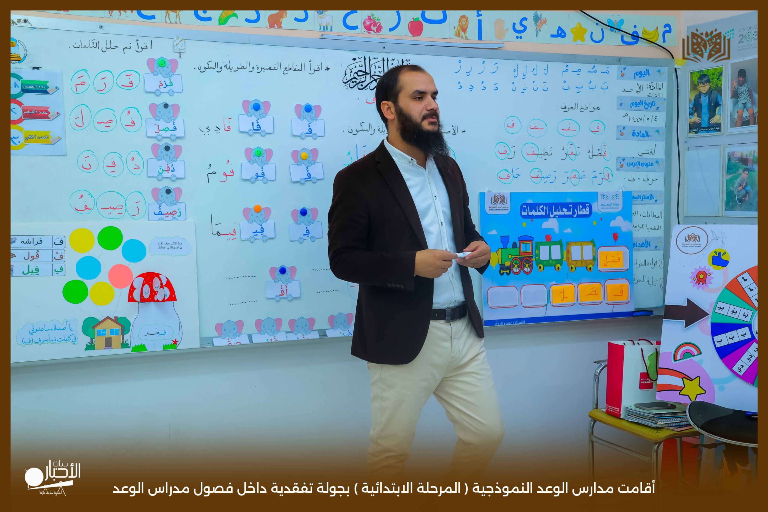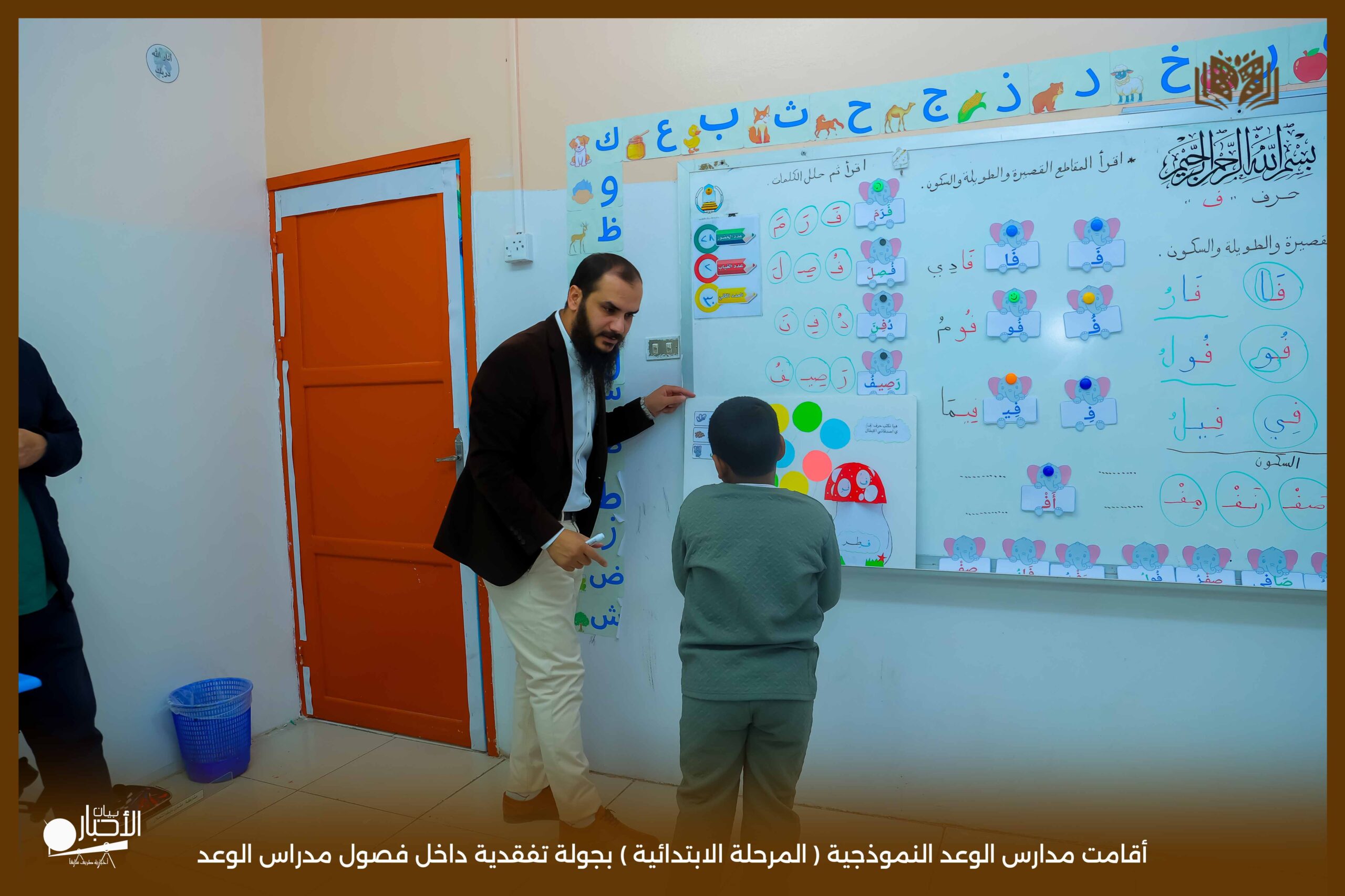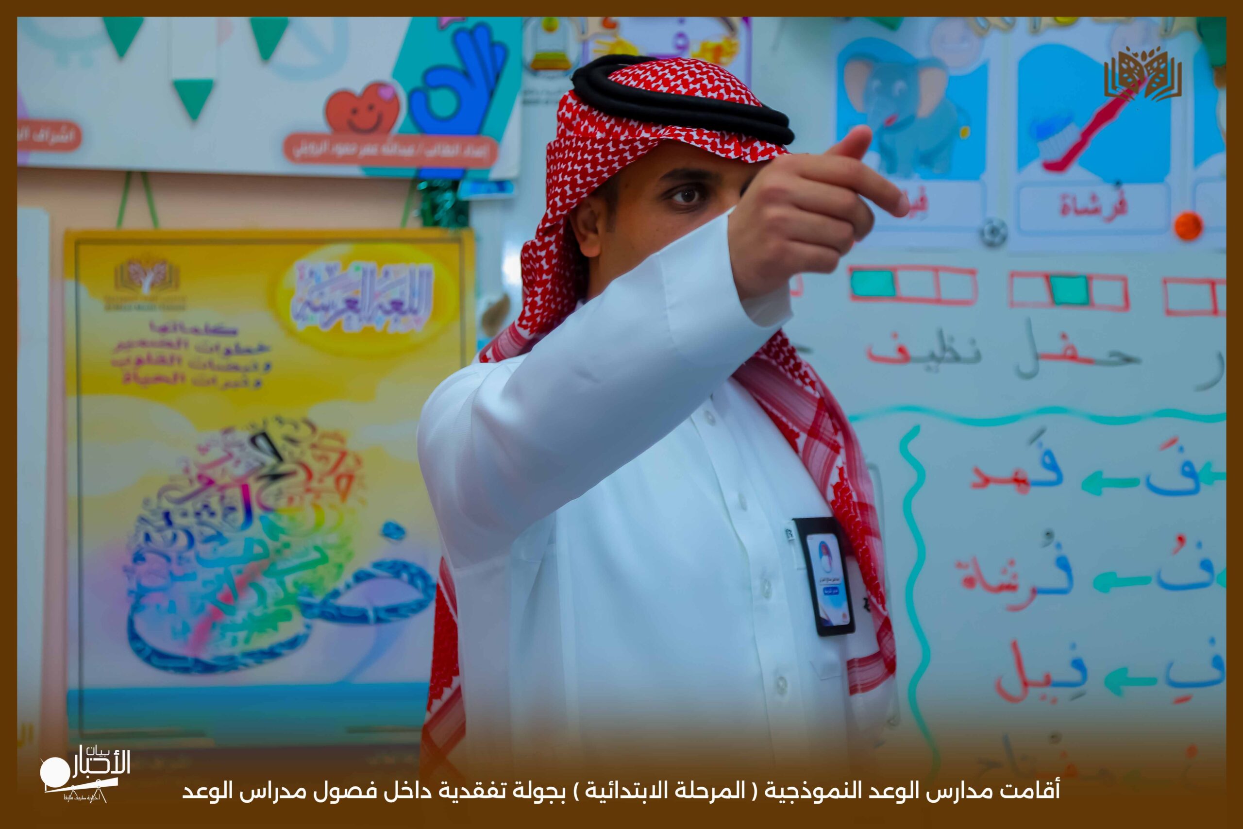 أقامت مدارس الوعد النموذجية ( المرحلة الابتدائية ) بجولة تفقدية داخل فصول مدراس الوعد ضمن الزيارات الصفية من قبل الإدارة والدعم الفني والمتابعة بالمدرسة و الوقوف على مستويات الطلاب ومدى انضباط العملية التعليمية داخل المدرسة.