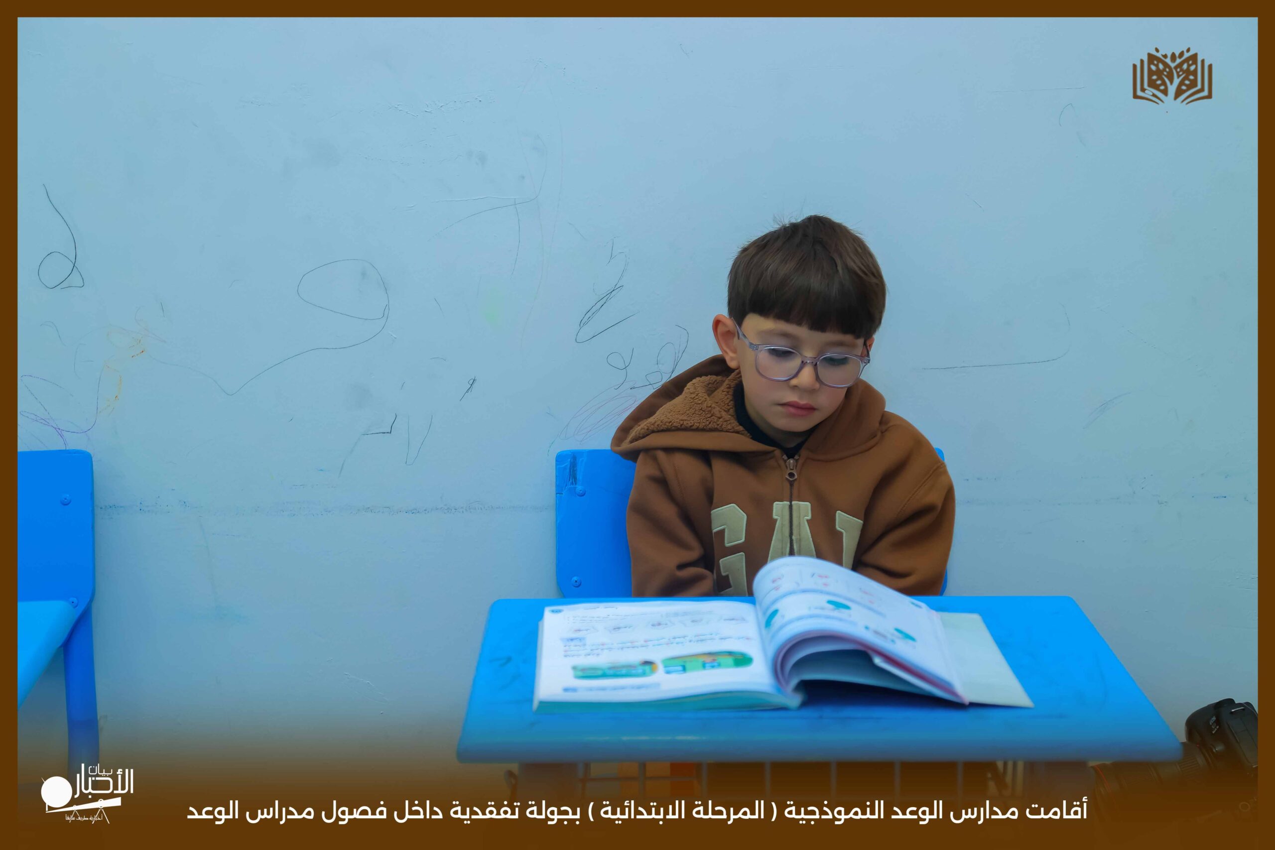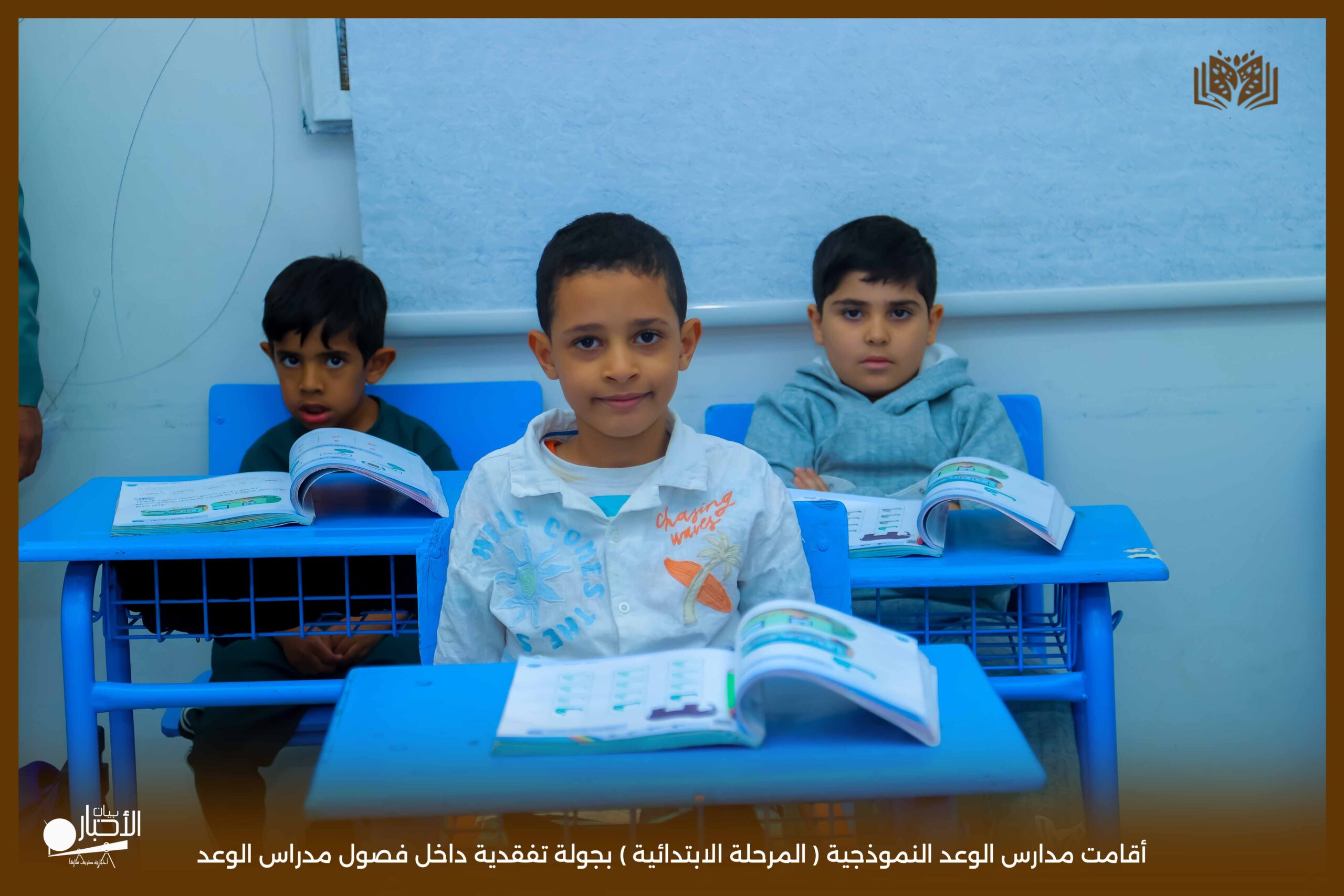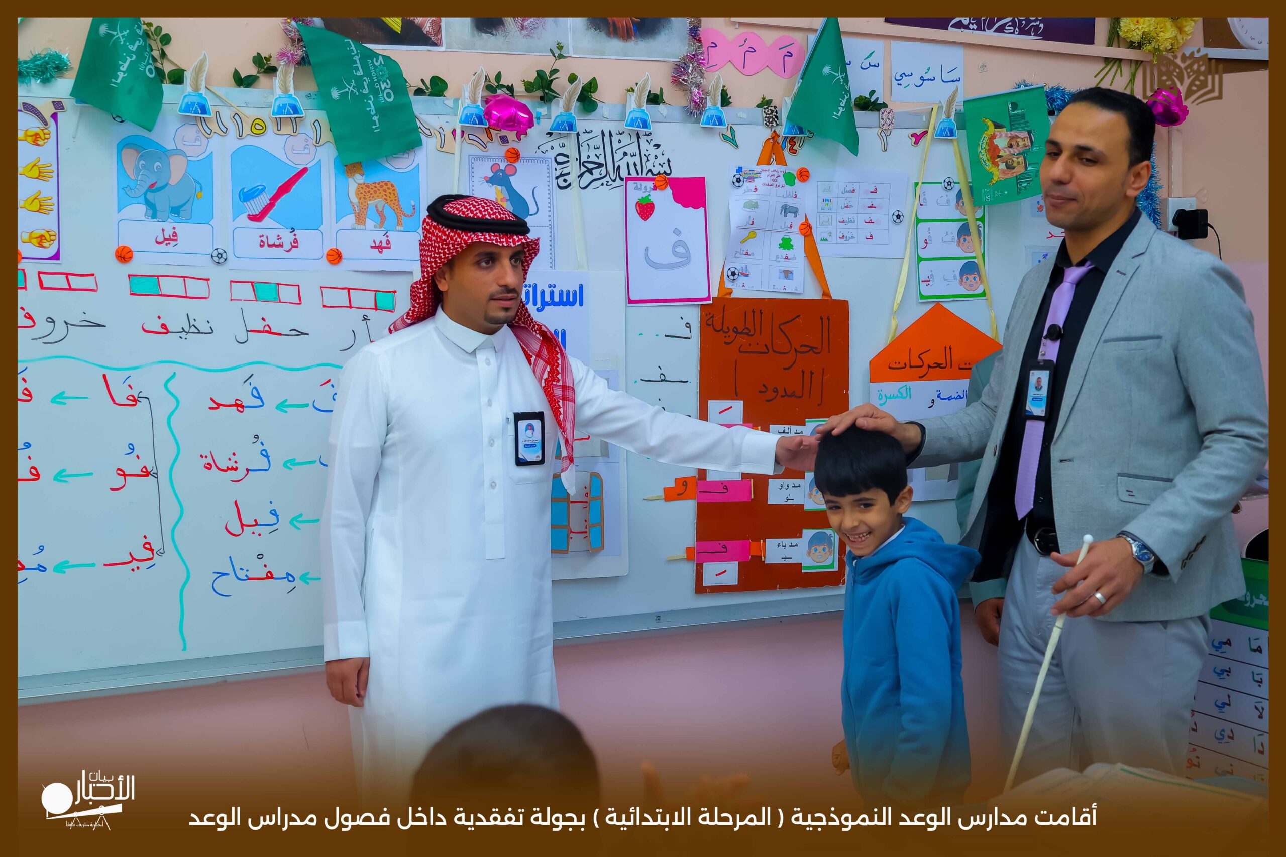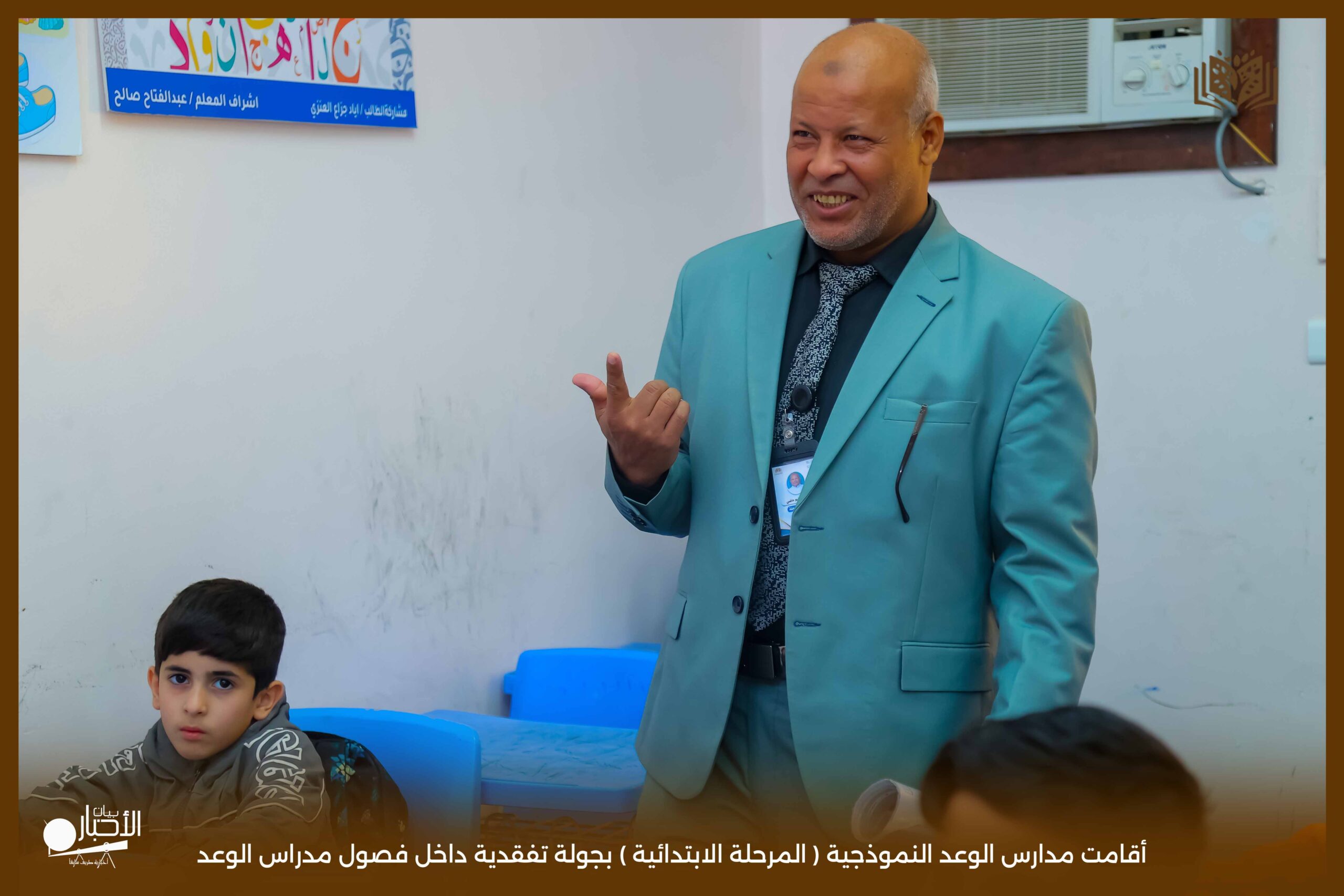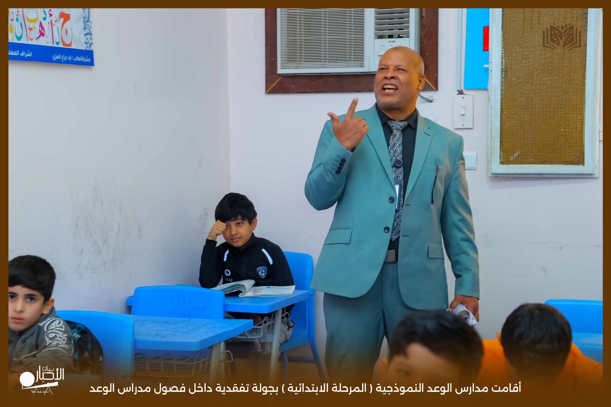 أقامت مدارس الوعد النموذجية ( المرحلة الابتدائية ) بجولة تفقدية داخل فصول مدراس الوعد ضمن الزيارات الصفية من قبل الإدارة والدعم الفني والمتابعة بالمدرسة و الوقوف على مستويات الطلاب ومدى انضباط العملية التعليمية داخل المدرسة.