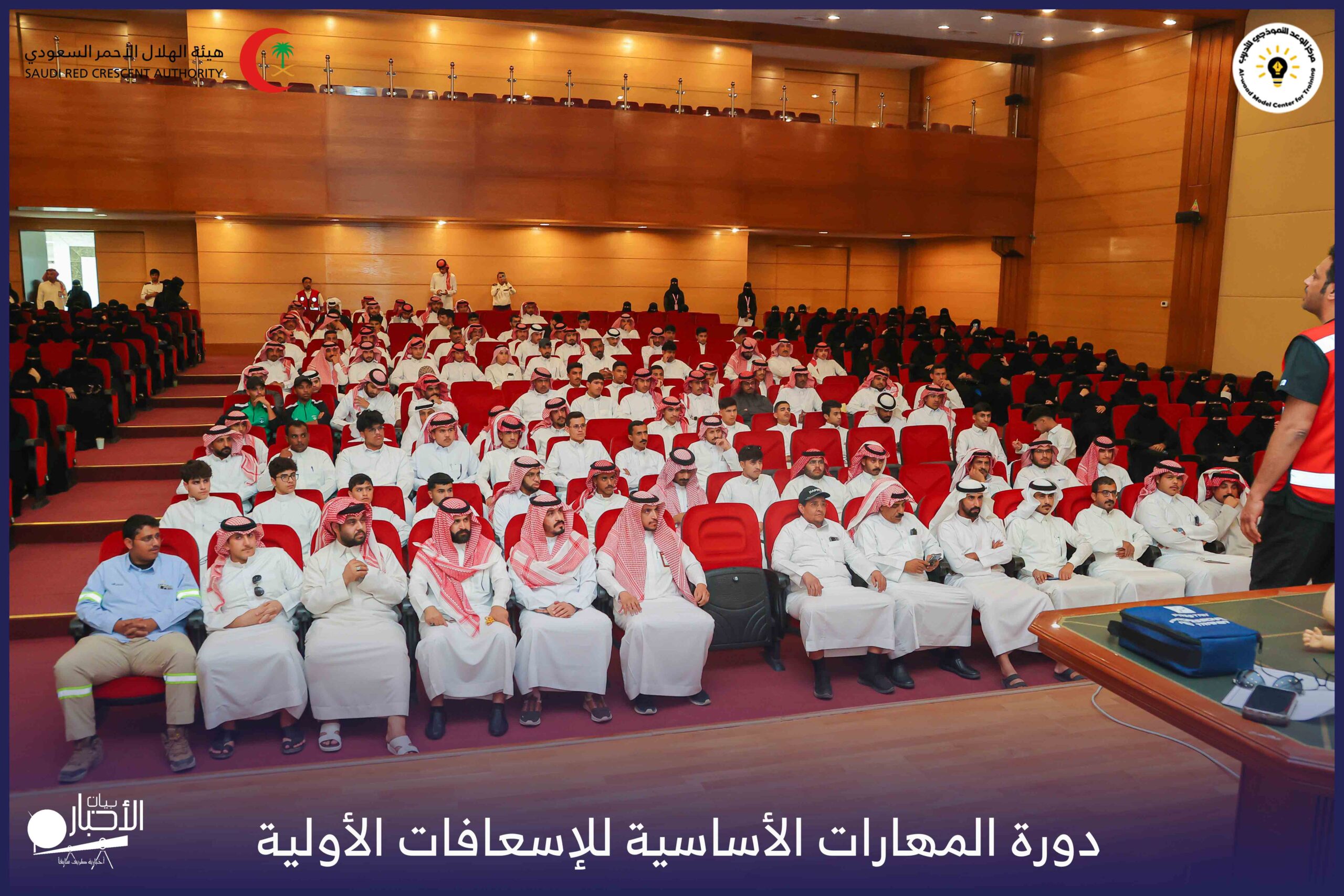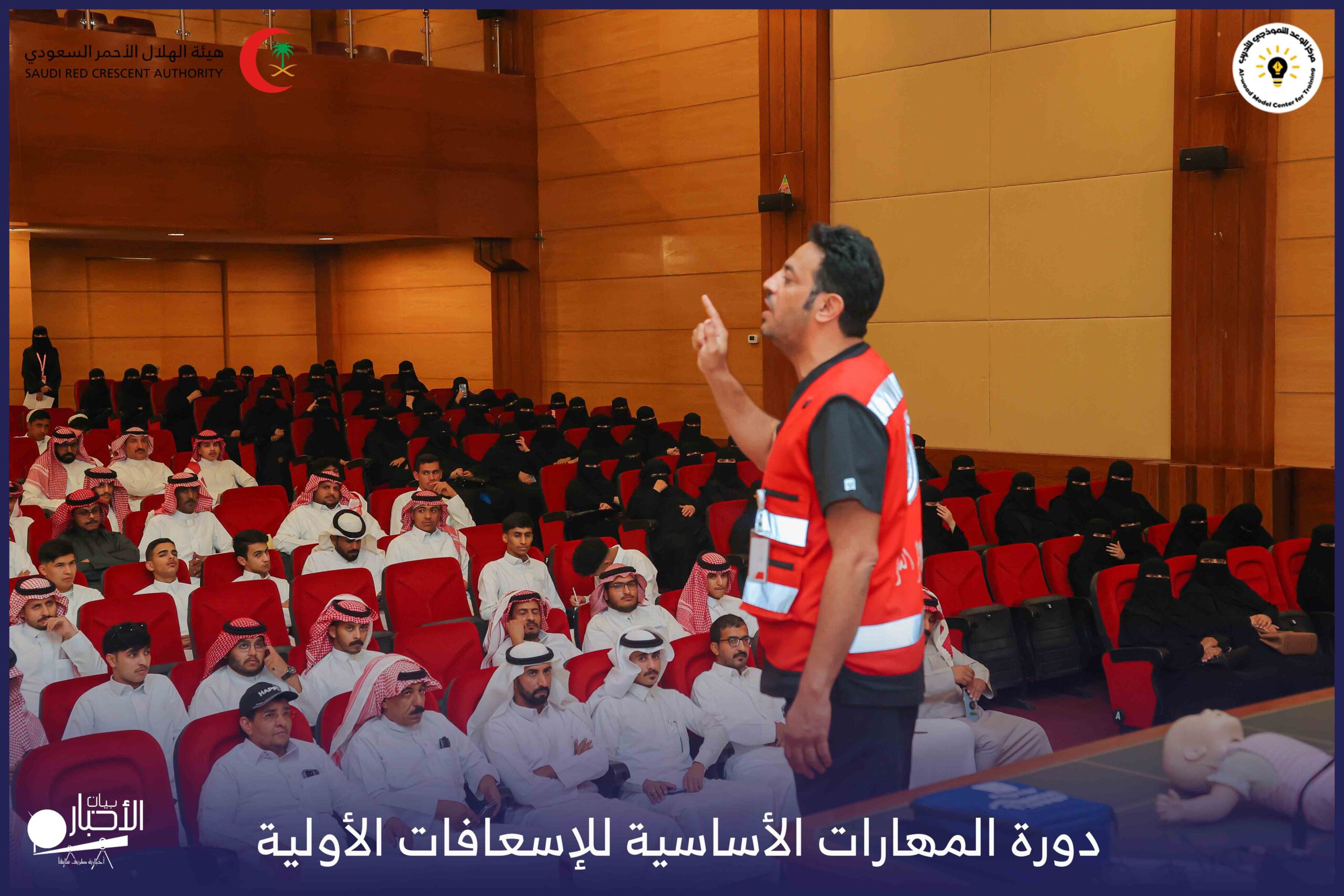 وقد قدّم الدورة كل من المدرب رخيص غانم الشمري والمدرب عبدالغني عيد العنزي، وسط حضورٍ كبير من المتدربين والمتدربات الذين تفاعلوا مع محاور الدورة لما تحمله من أهمية كبيرة في تعزيز الوعي بالإسعافات الأولية ودورها في إنقاذ الأرواح والتعامل مع الحالات الطارئة في الحياة اليومية.