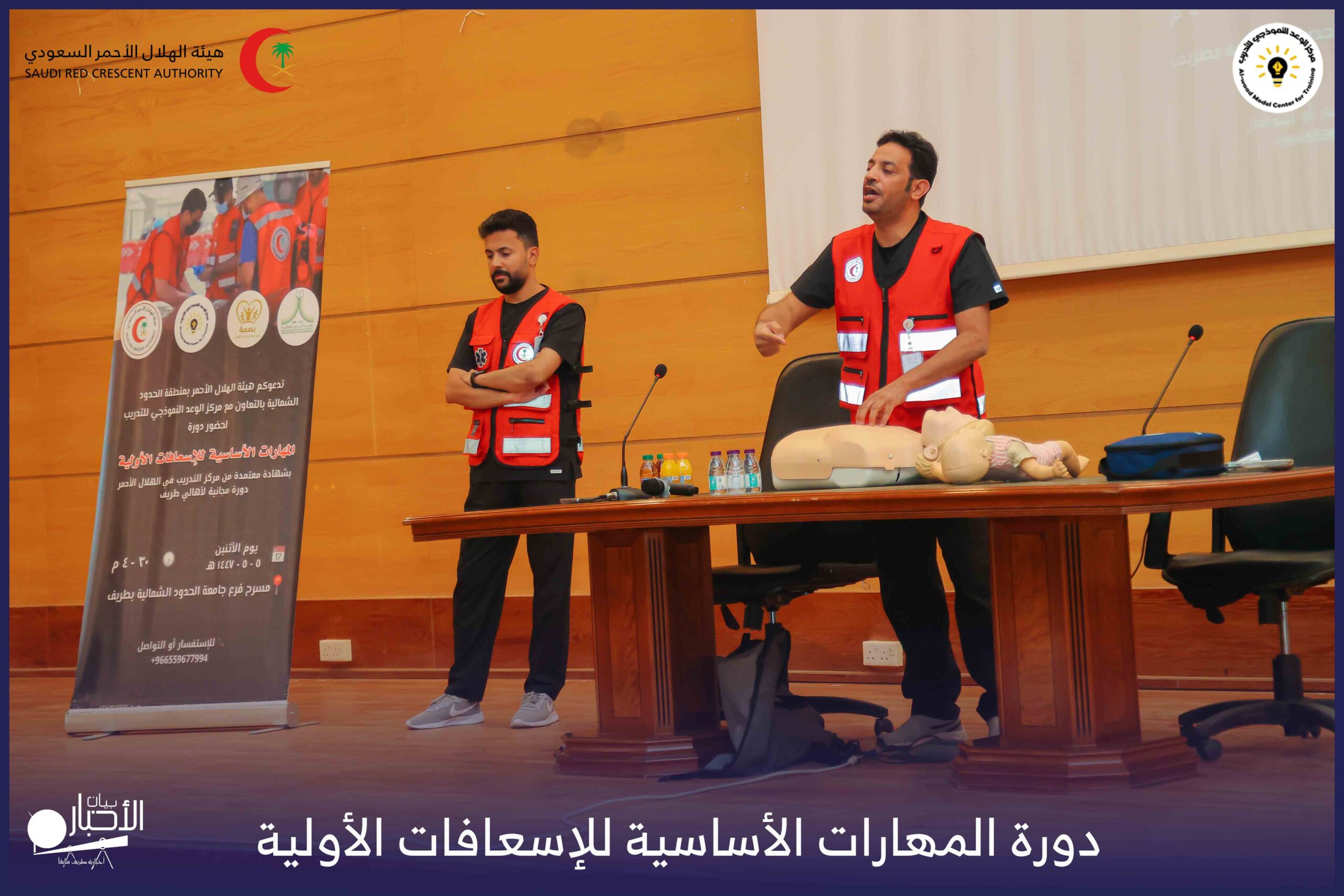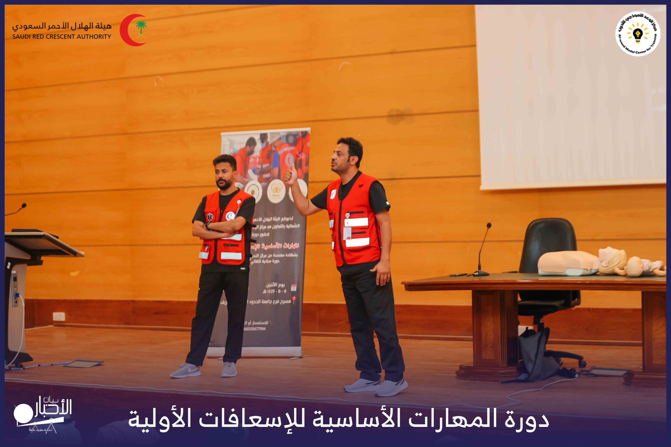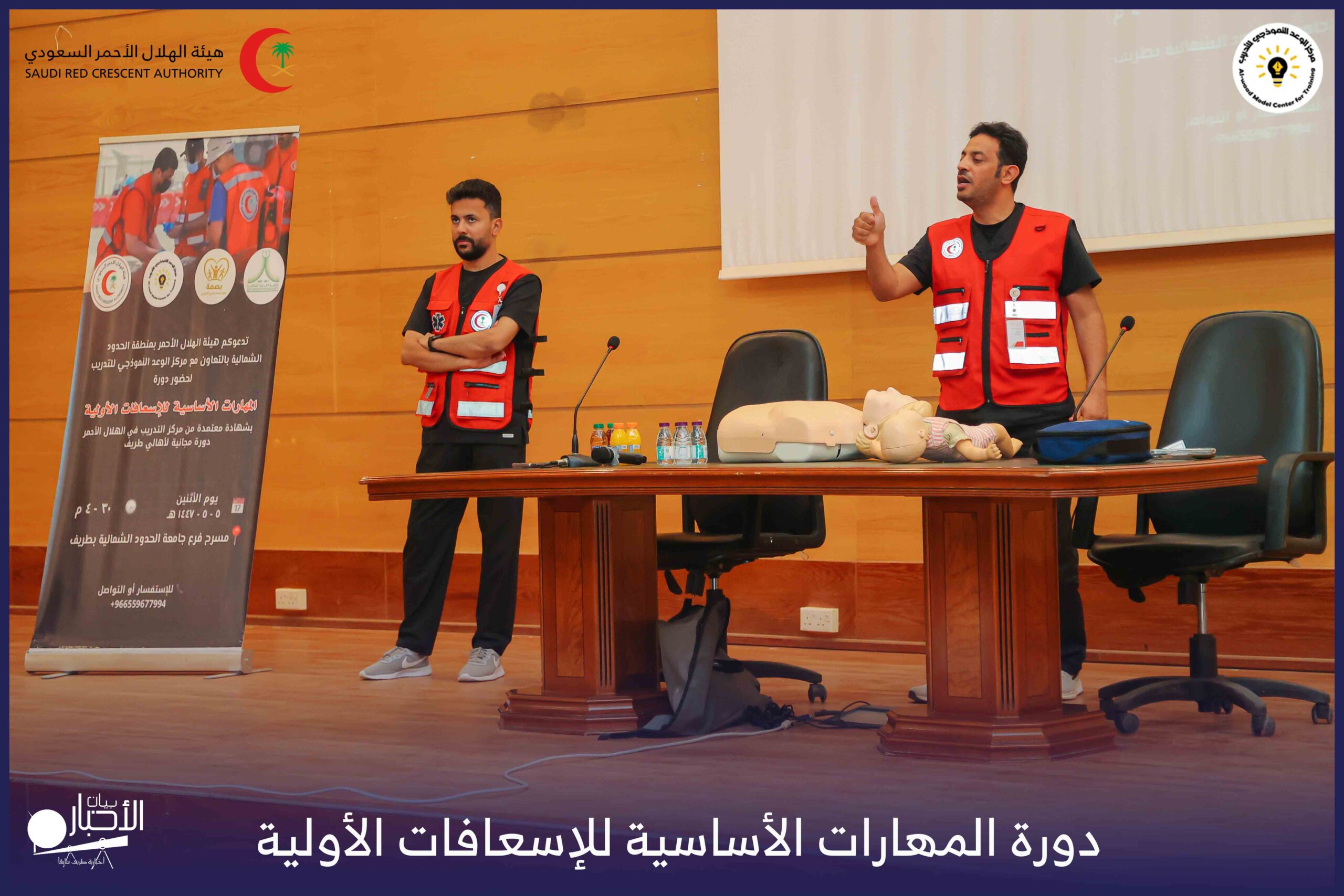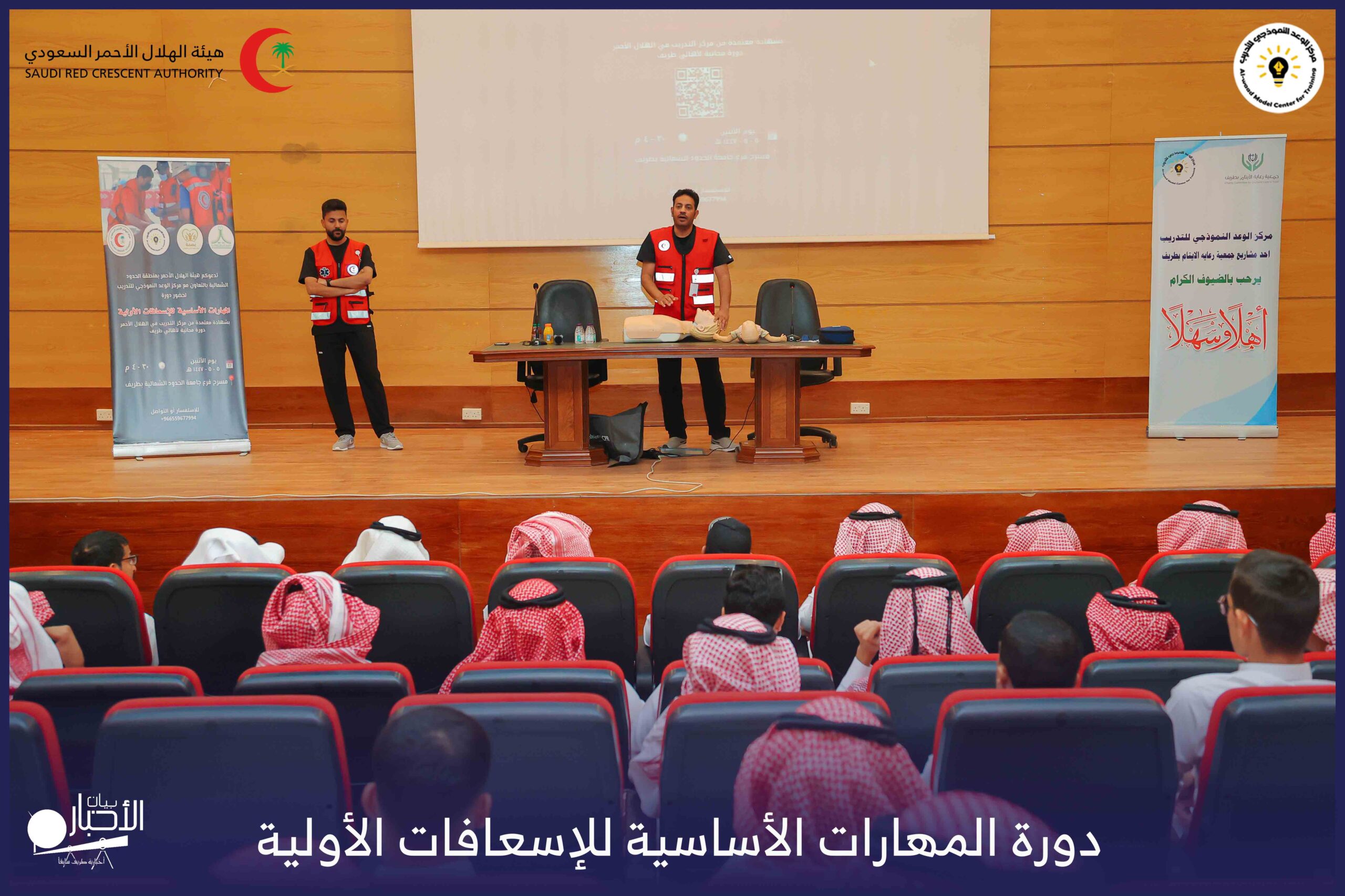 أقام فرع هيئة الهلال الأحمر السعودي بمنطقة الحدود الشمالية بالتعاون مع مركز الوعد النموذجي للتدريب، دورة المهارات الأساسية للإسعافات الأولية، وذلك يوم الاثنين الموافق 28 أكتوبر 2025م، في قاعة التدريب بجامعة الحدود الشمالية.