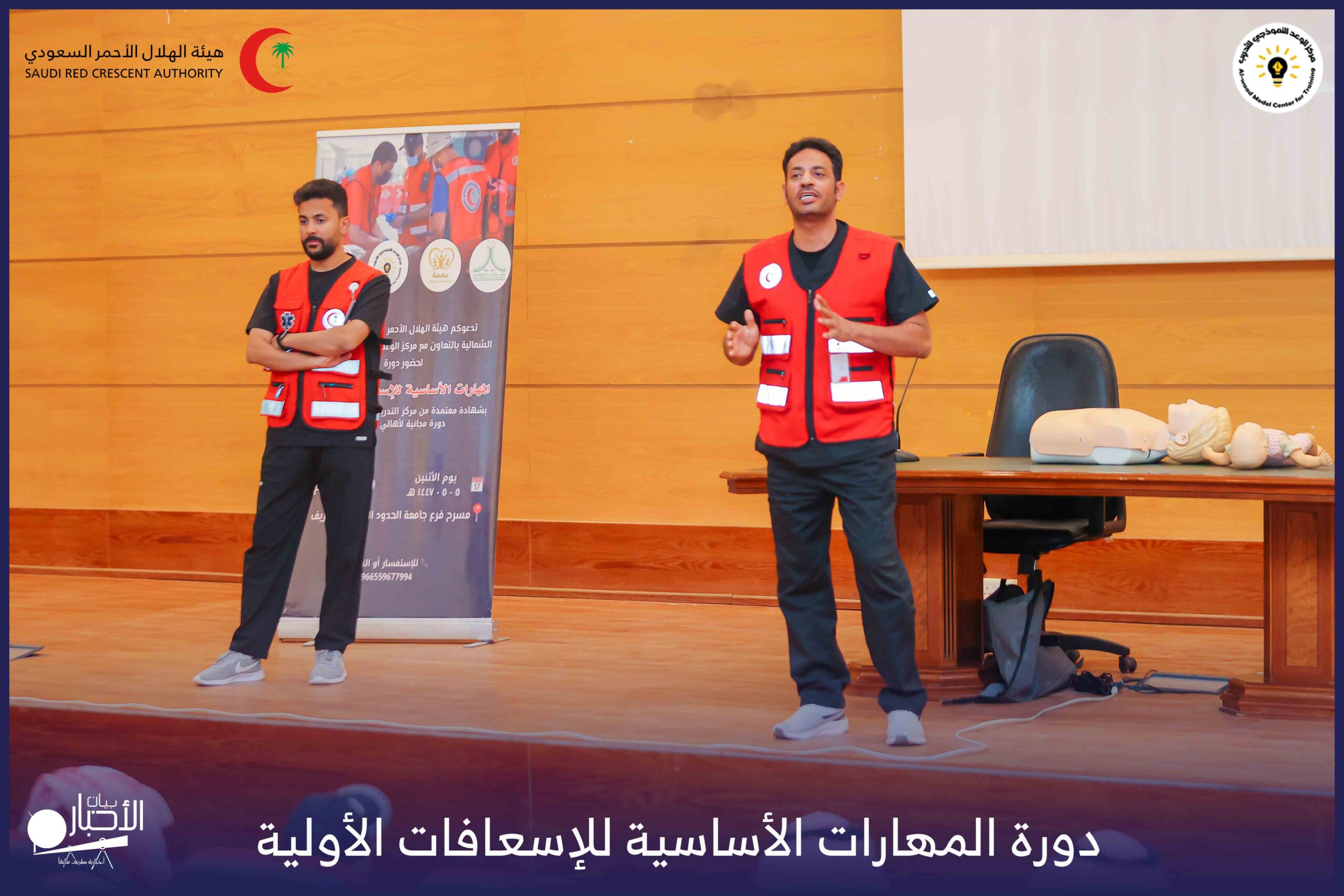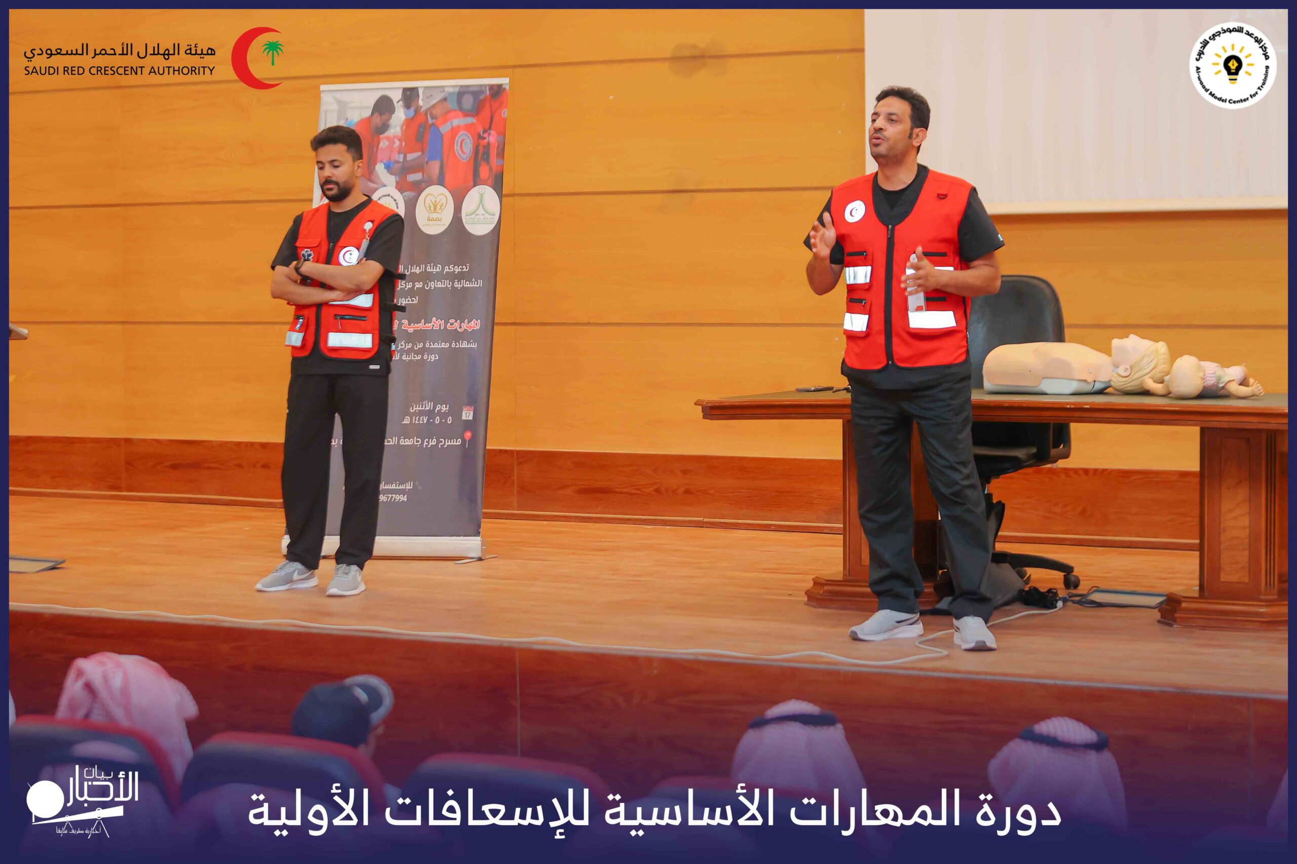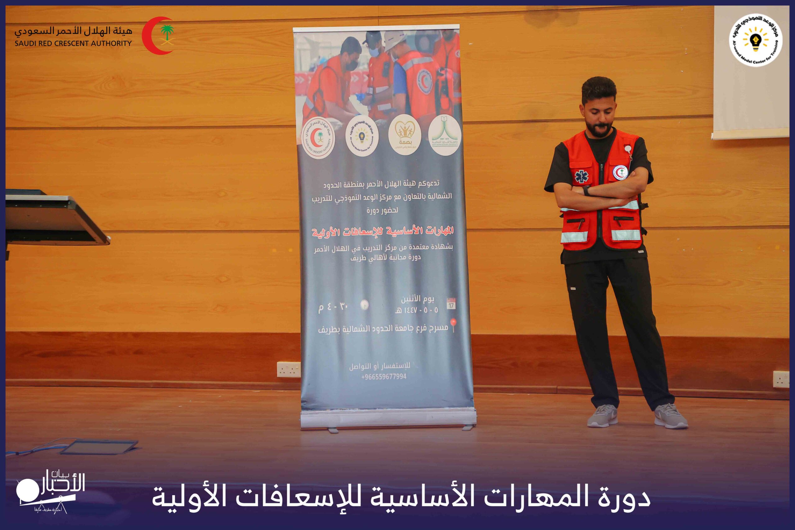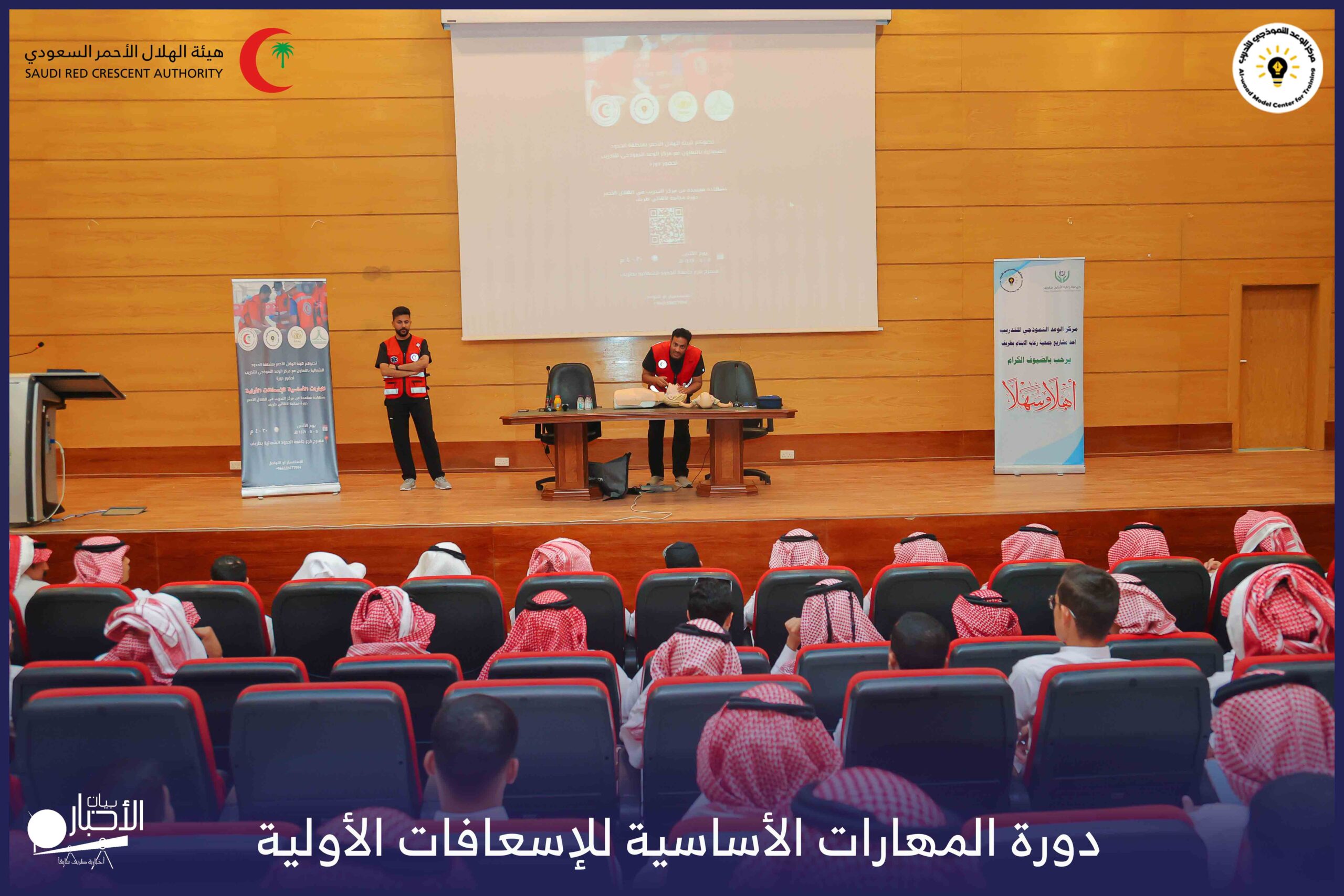 أقام فرع هيئة الهلال الأحمر السعودي بمنطقة الحدود الشمالية بالتعاون مع مركز الوعد النموذجي للتدريب، دورة المهارات الأساسية للإسعافات الأولية، وذلك يوم الاثنين الموافق 28 أكتوبر 2025م، في قاعة التدريب بجامعة الحدود الشمالية.