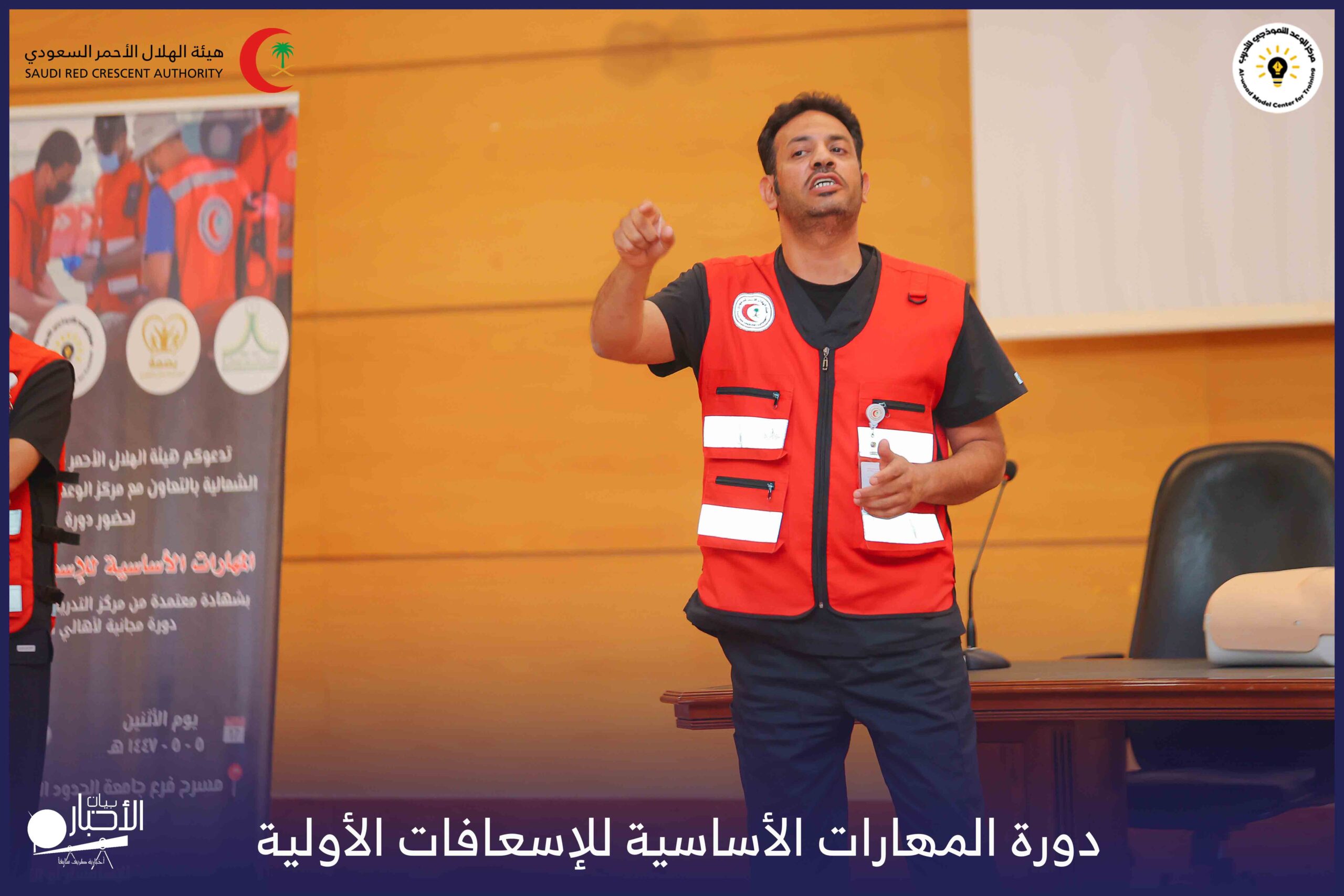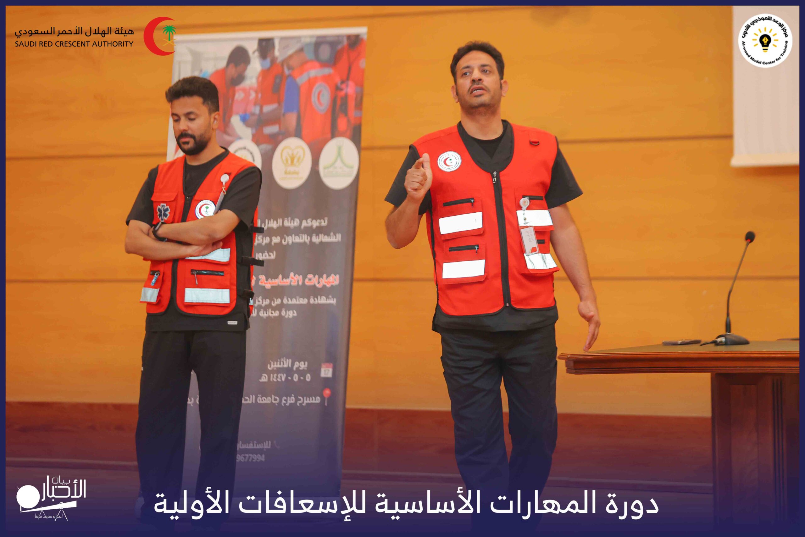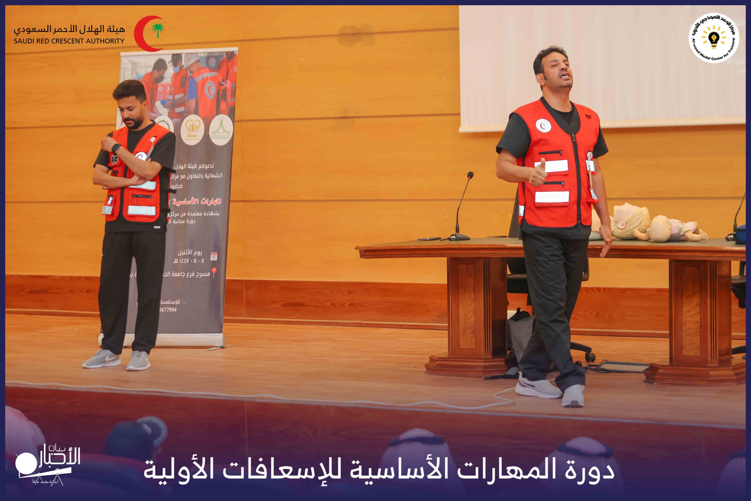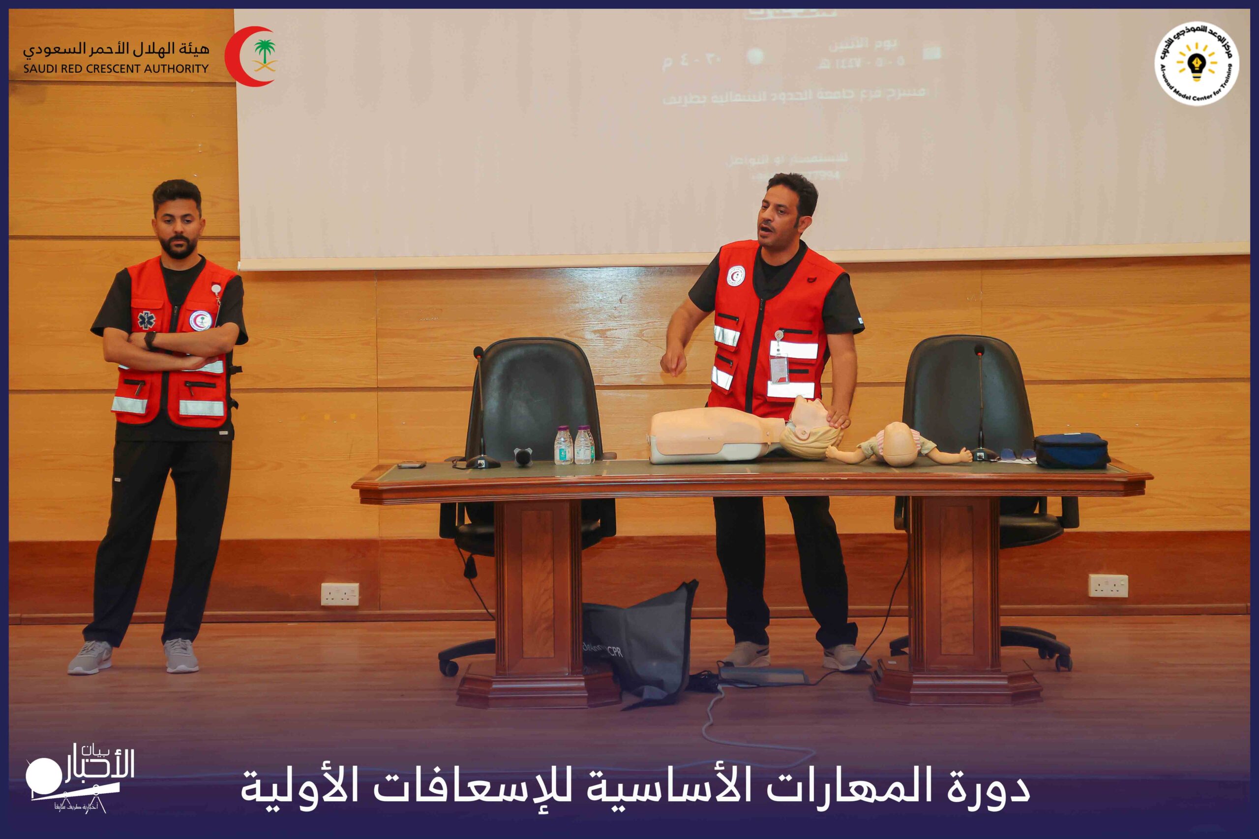 أقام فرع هيئة الهلال الأحمر السعودي بمنطقة الحدود الشمالية بالتعاون مع مركز الوعد النموذجي للتدريب، دورة المهارات الأساسية للإسعافات الأولية، وذلك يوم الاثنين الموافق 28 أكتوبر 2025م، في قاعة التدريب بجامعة الحدود الشمالية.