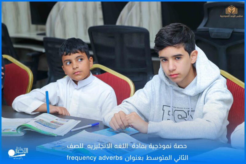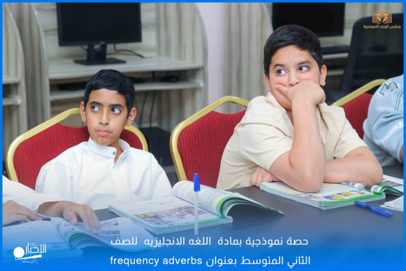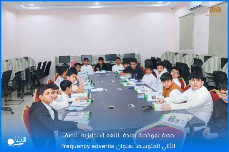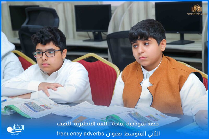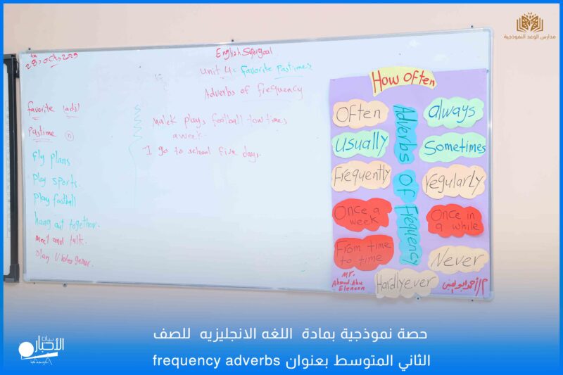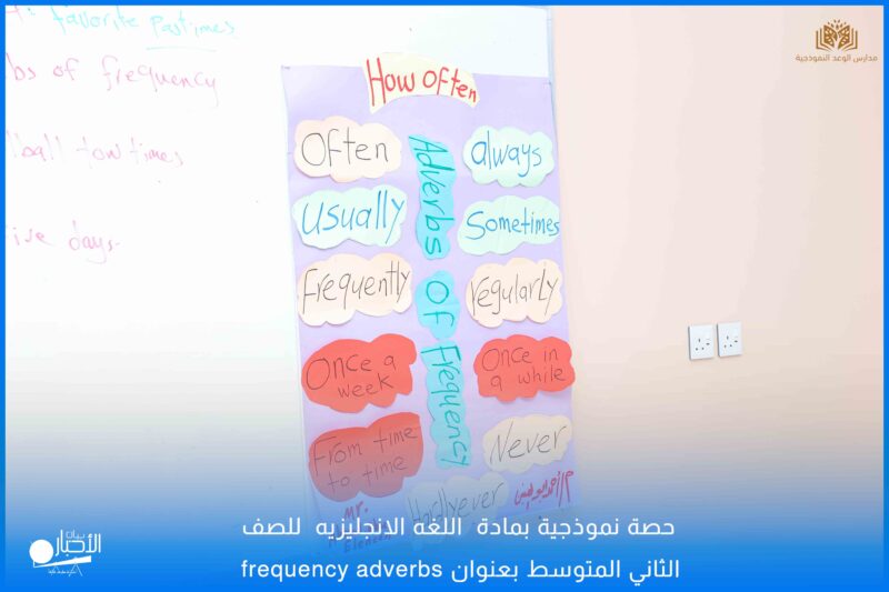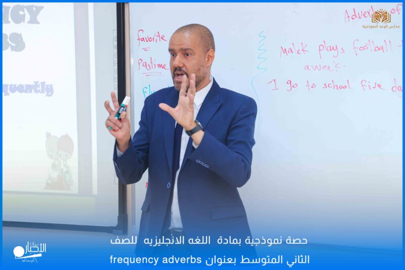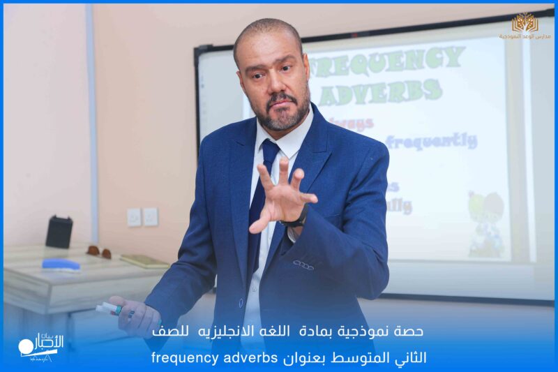 أقامت اليوم الأحد مدارس الوعد النموذجية حصة نموذجية بمادة اللغه الإنجليزية للصف الثاني المتوسط بعنوان frequency adverbs عرض المعلم محاورالدرس باستخدام استراتيجيات التعلم النشط من عصف ذهني والنمذجة كما استخدم شاشة العرض وعرض الدرس بوربونت ووسيلة تعليمية وبطاقات تخدم الدرس وورقة عمل مما ساعد الطلاب على فهمه واتقانه.