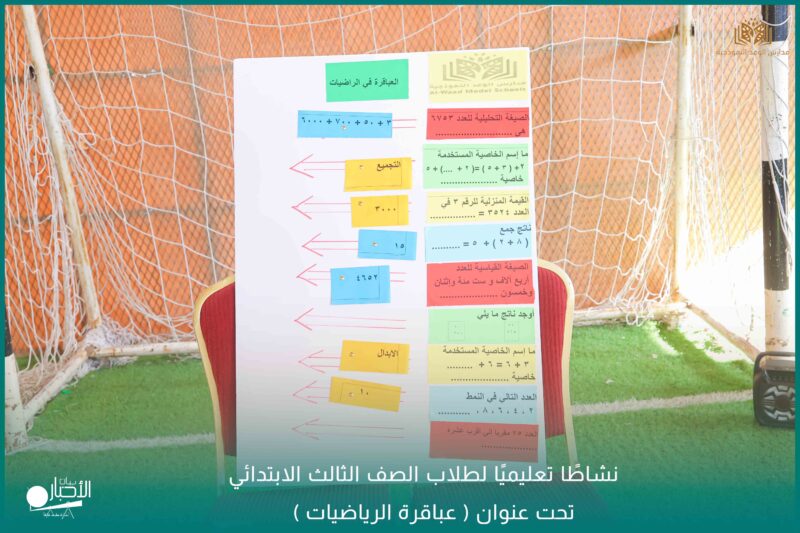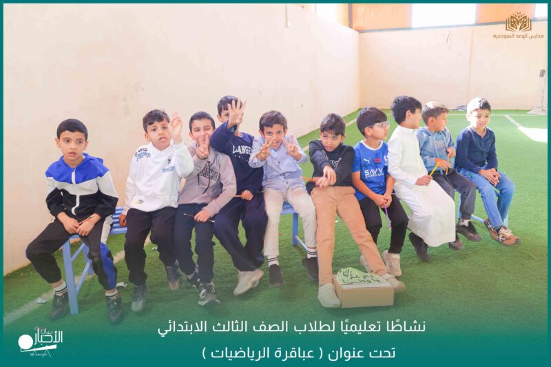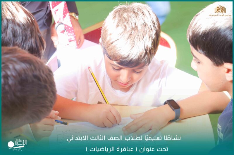 أقامت مدارس الوعد النموذجية (المرحلة الابتدائية ) نشاطًا تعليميًا لطلاب الصف الثالث الابتدائي تحت عنوان ( عباقرة الرياضيات ) وذلك بهدف معرفة مدى إتقان الطلاب لمهارات المنهج وكذلك التنافس بين الطلاب ٠