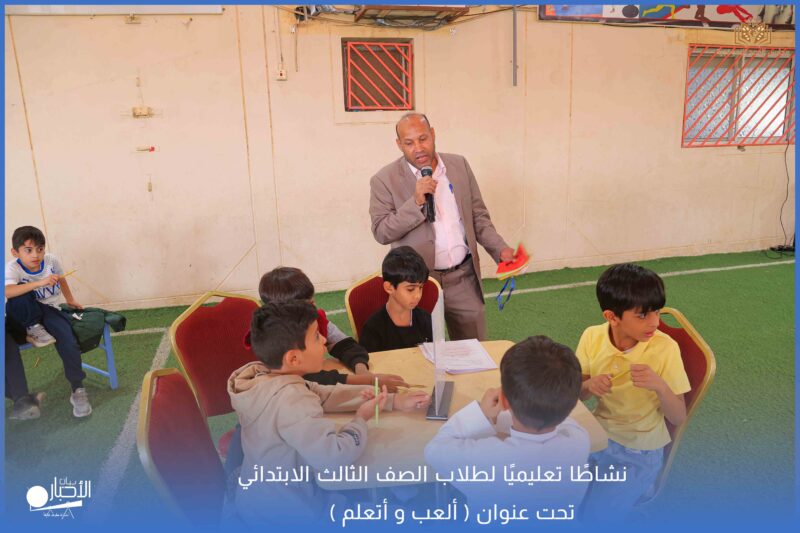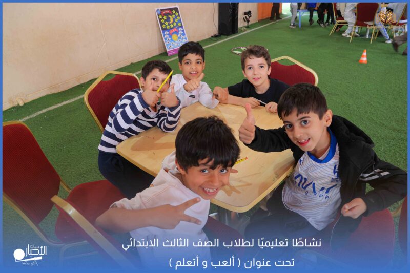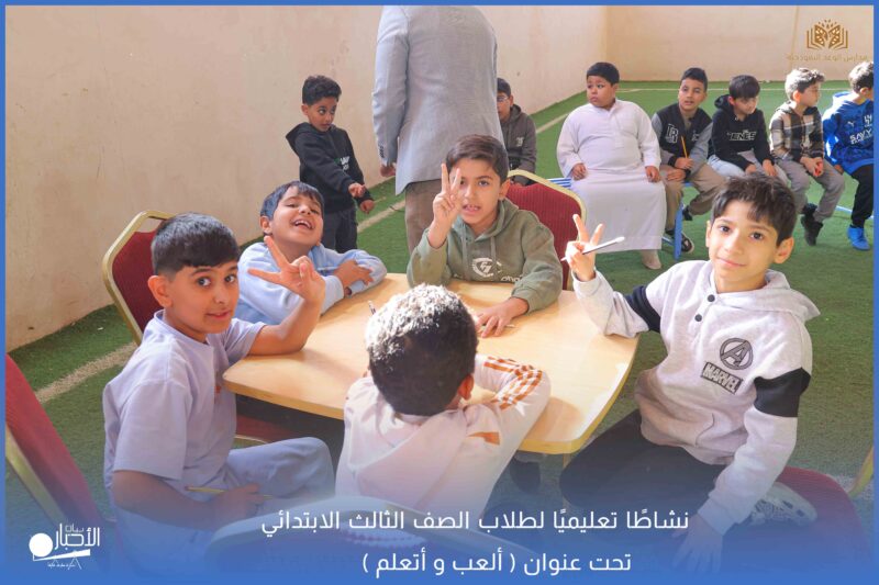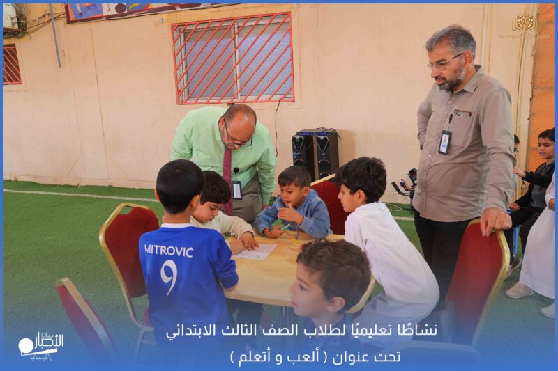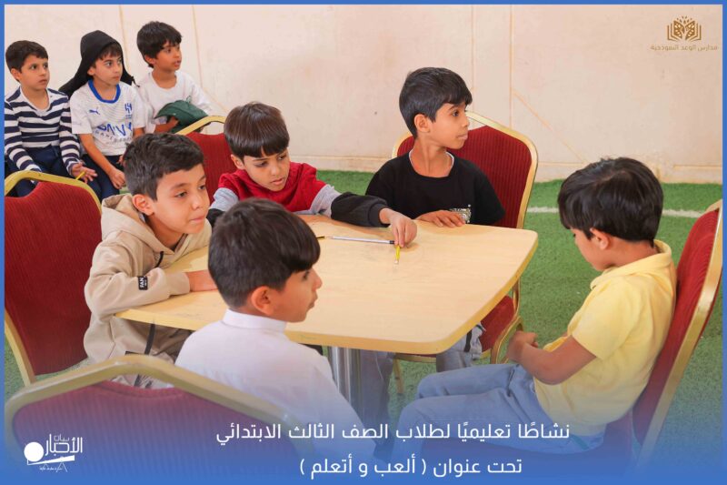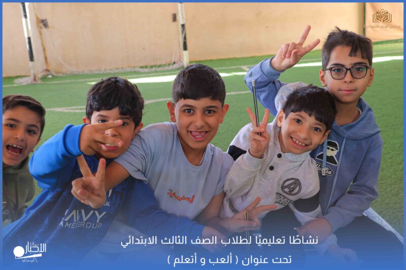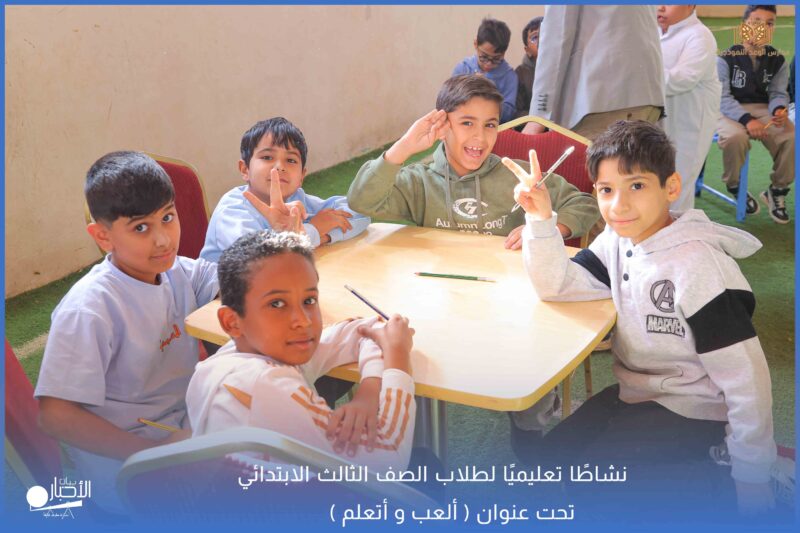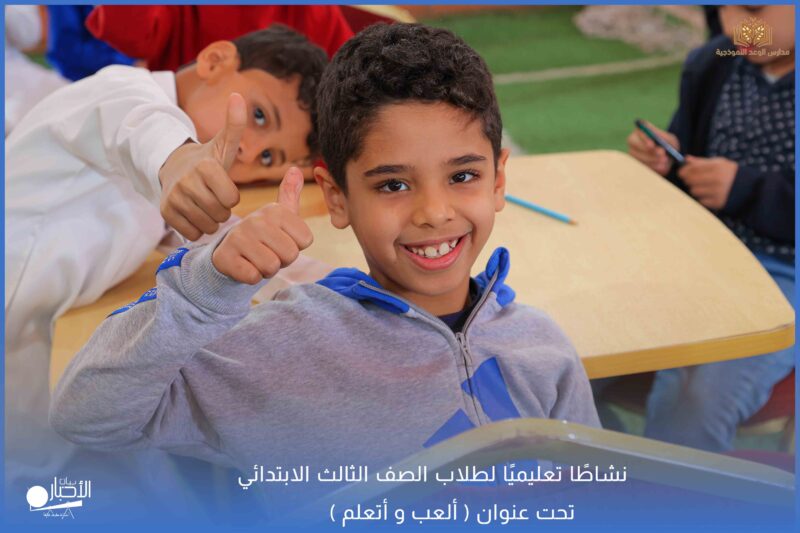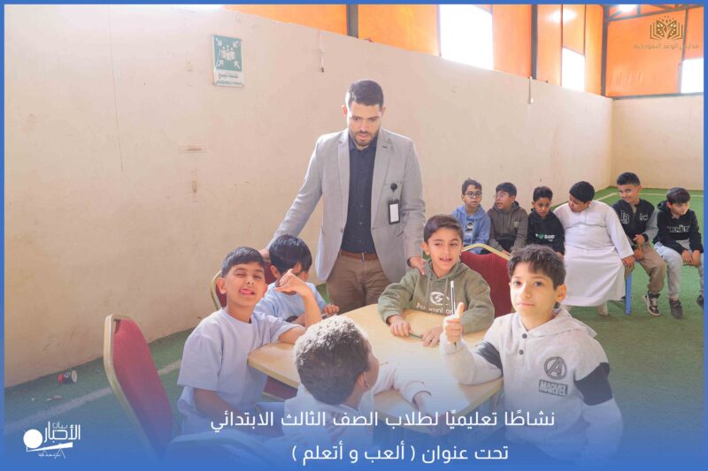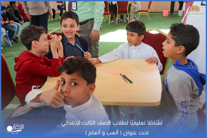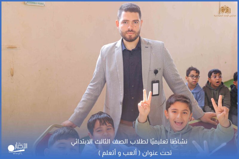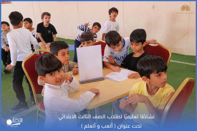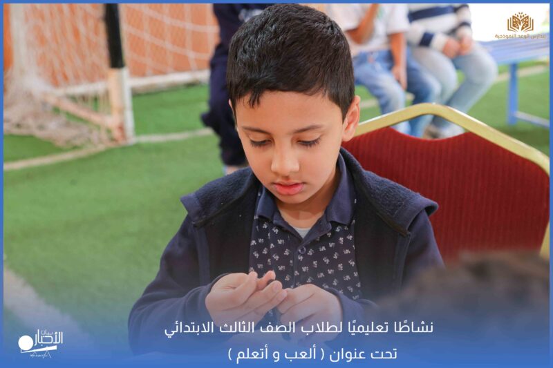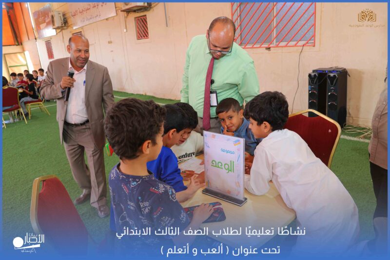 أقامت مدارس الوعد النموذجية ( المرحلة الابتدائية ) نشاطًا تعليميًا لطلاب الصف الثالث الابتدائي تحت عنوان ( ألعب و أتعلم ) للمعلم المتميز الاستاذ حمدي جابر حيث قسم الطلاب الى مجموعات تنافسية تنافسوا فيما بينهم على سرعة استخراج المهارات ثم قام الطلاب بحل ورقة عمل لمهارات الدروس المقررة واستخراج المهارات.