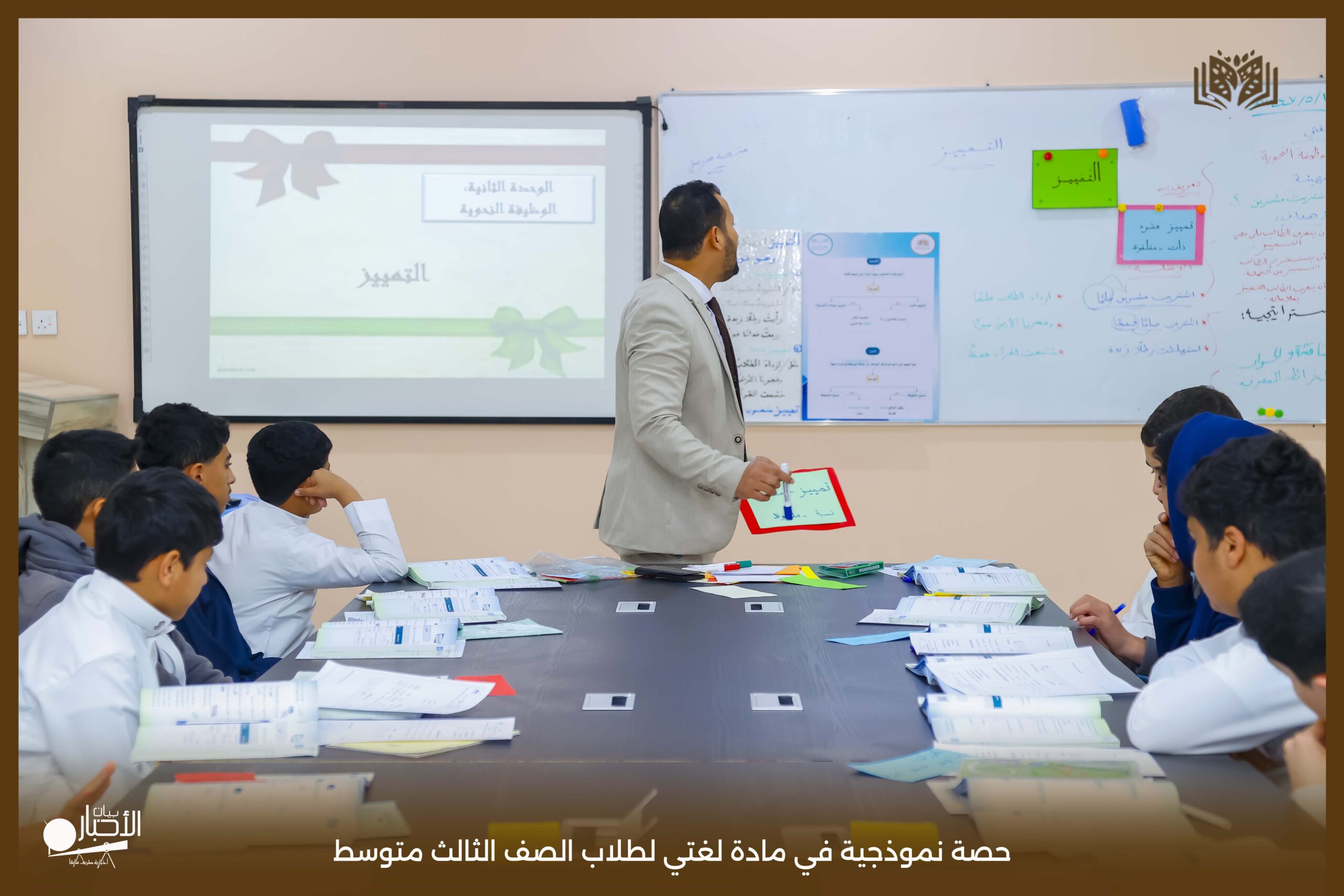 أقامت مدارس الوعد النموذجية الأهلية حصة نموذجية في مادة لغتي لطلاب الصف الثالث متوسط من إعداد المعلم المتميز الأستاذ محمد عبد العاطي.