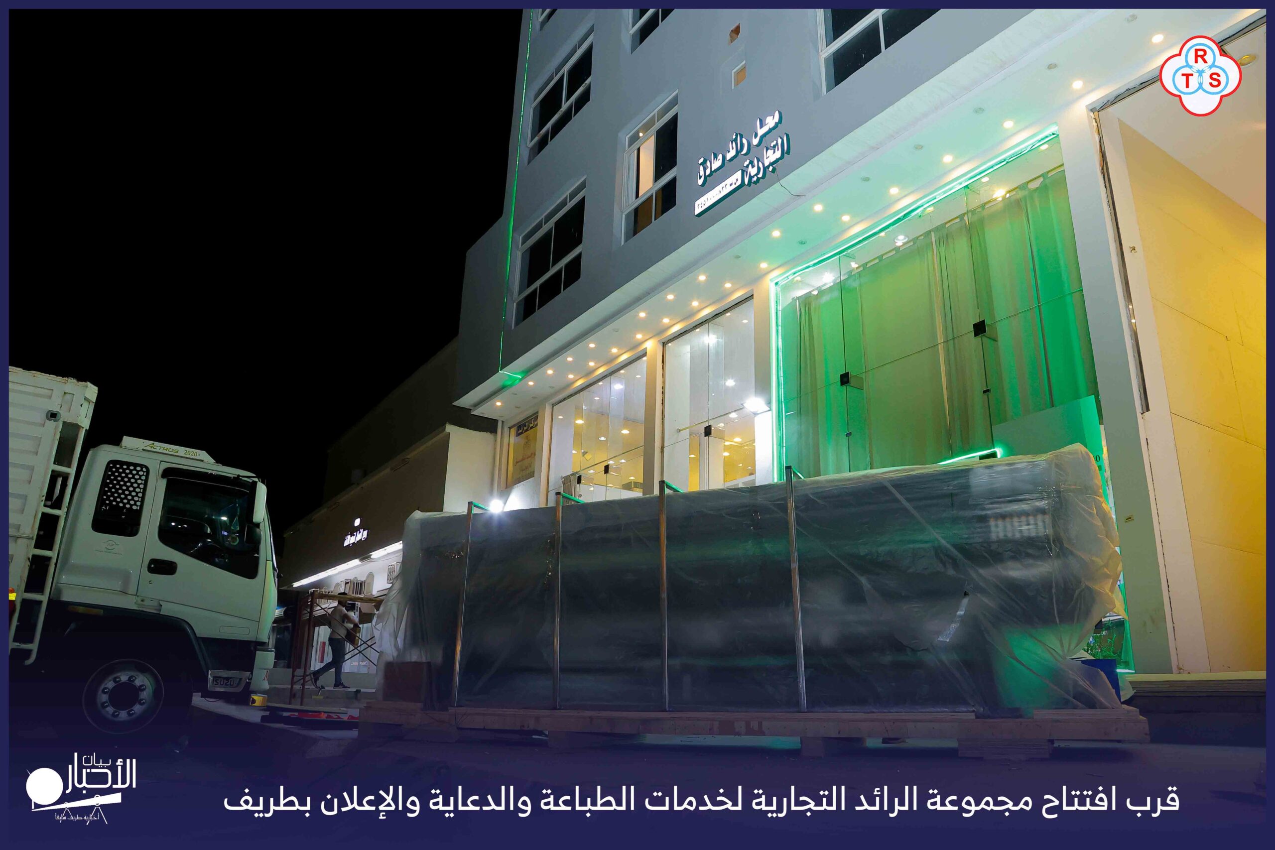 تستعد مجموعة الرائد التجارية لافتتاح فرعها الجديد في محافظة طريف، لتقدّم مجموعة متكاملة من خدمات الطباعة والدعاية والإعلان بأحدث التقنيات والمعدات الحديثة.