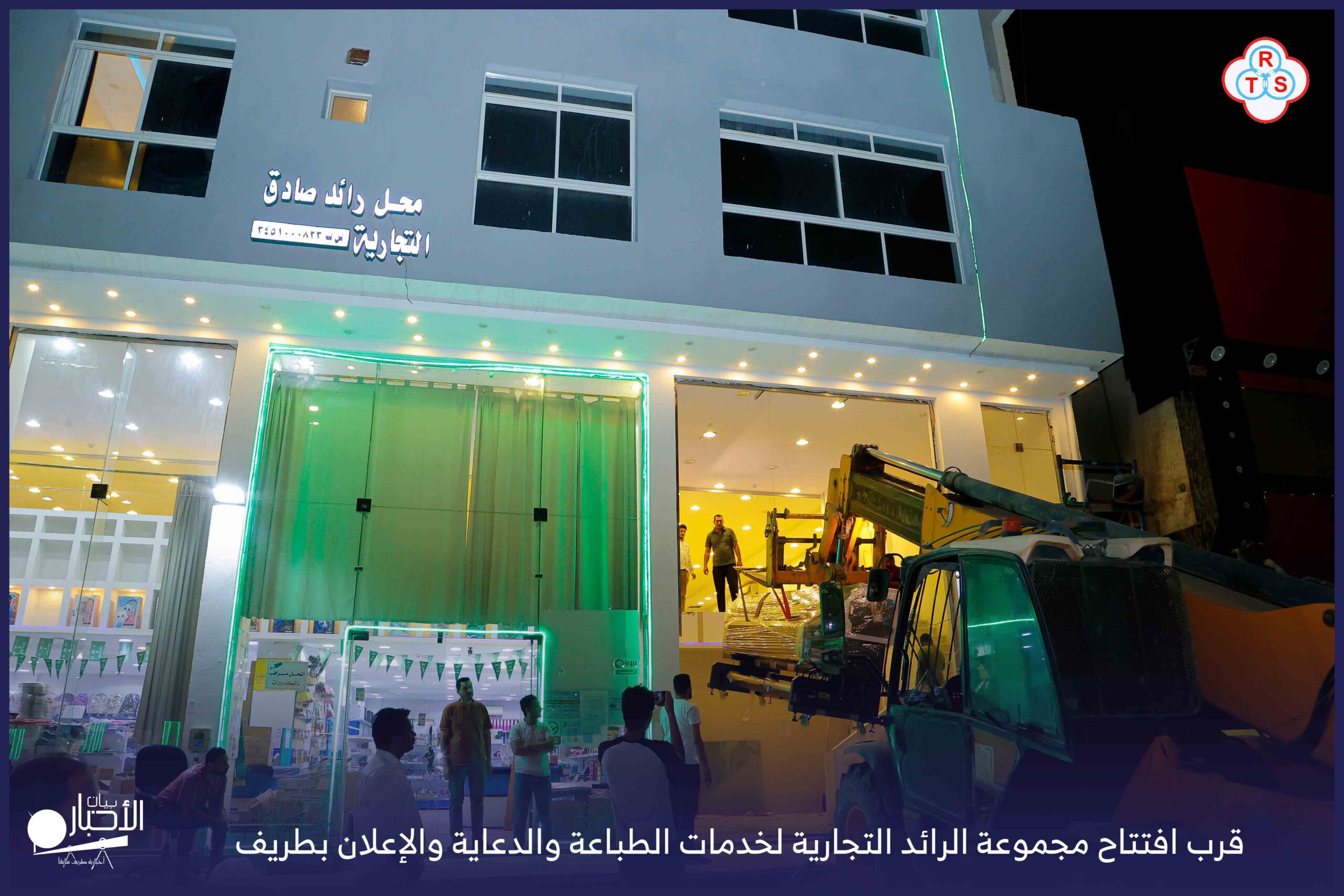 بالفيديو والصور.. قرب افتتاح مجموعة الرائد التجارية لخدمات الطباعة والدعاية والإعلان بطريف