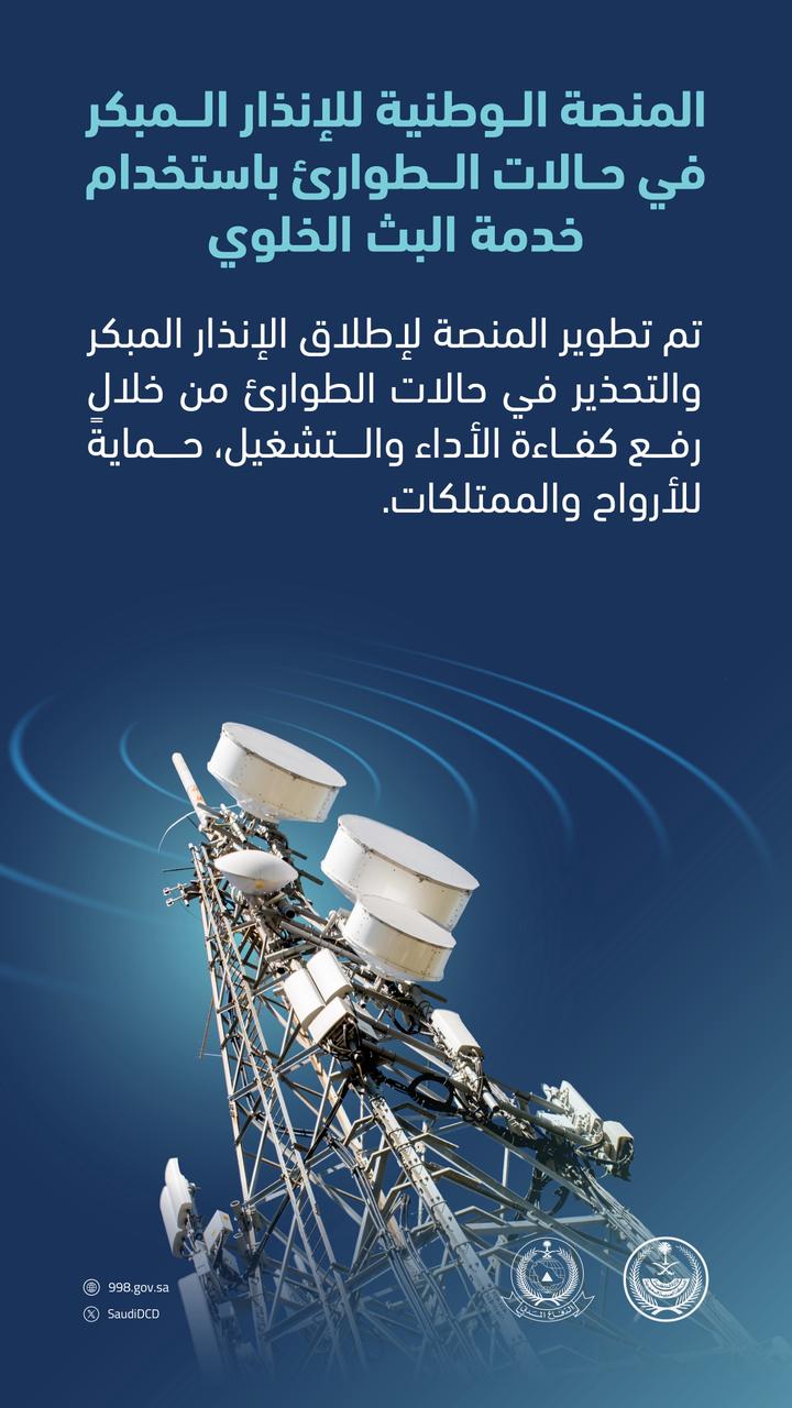 وتأتي التجارب الدورية في جميع مناطق المملكة عبر المنصة الوطنية للإنذار المبكر في حالات الطوارئ من خلال خدمة البث الخلوي، بإرسال رسائل تحذيرية إلى الهواتف المتنقلة مصحوبة بنغمة صوتية مميزة، للتأكد من جاهزيتها، وذلك بالتزامن مع تنفيذ تجربة صافرات الإنذار.