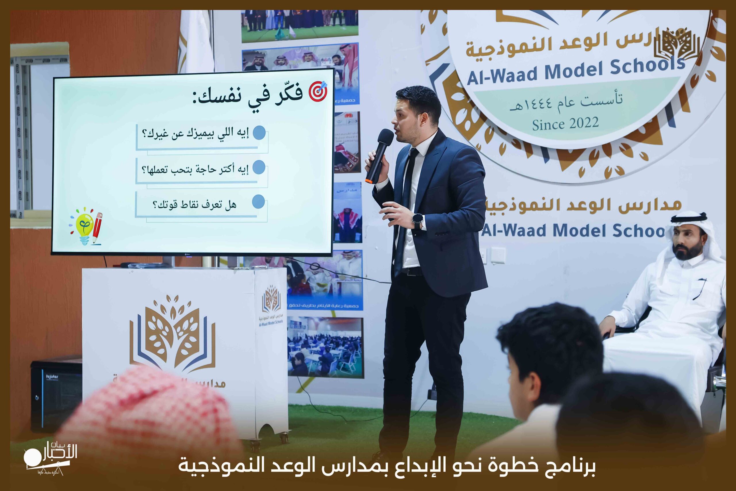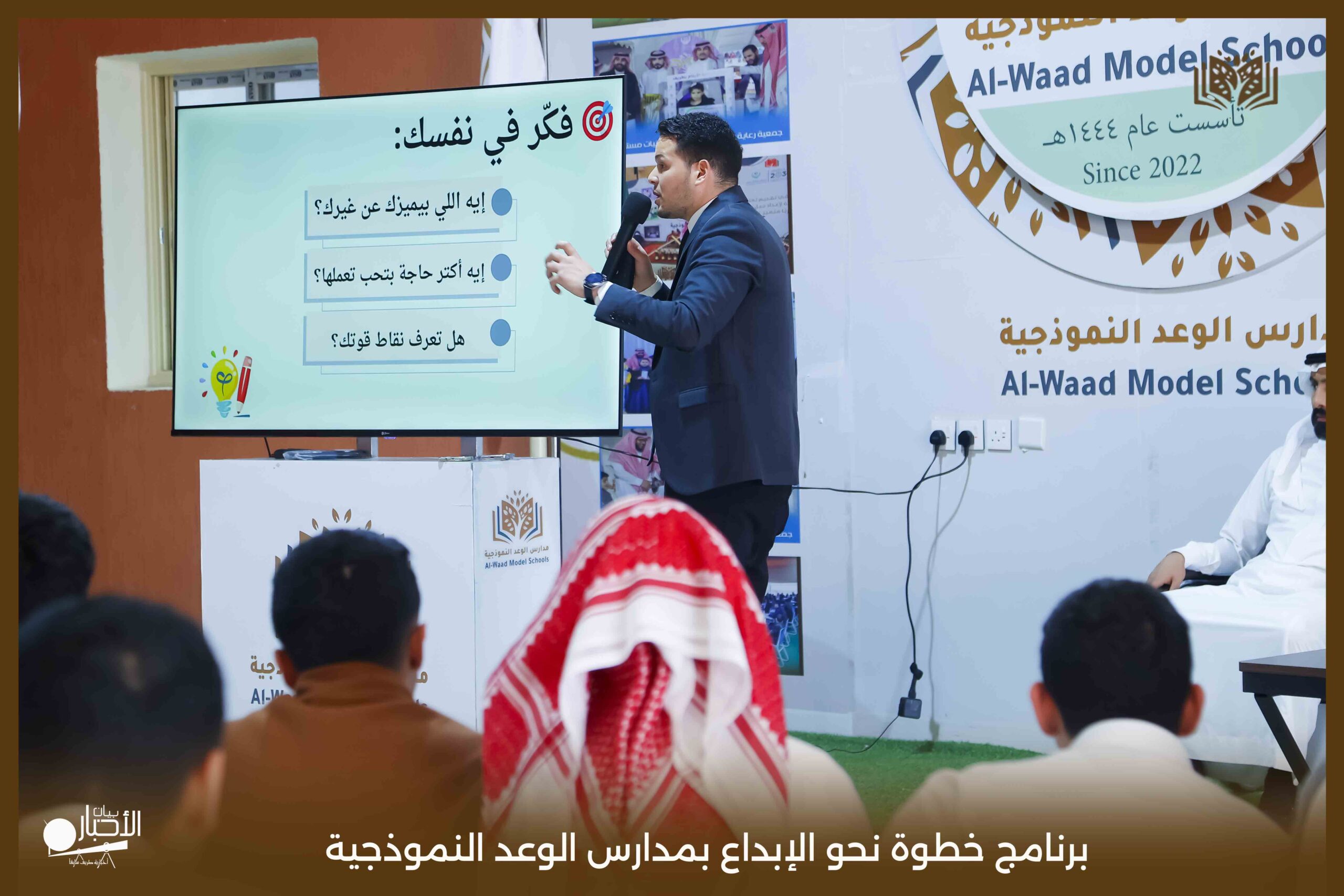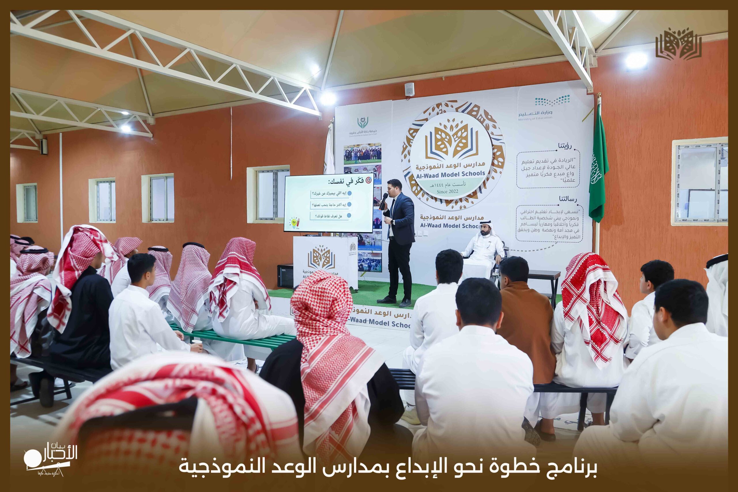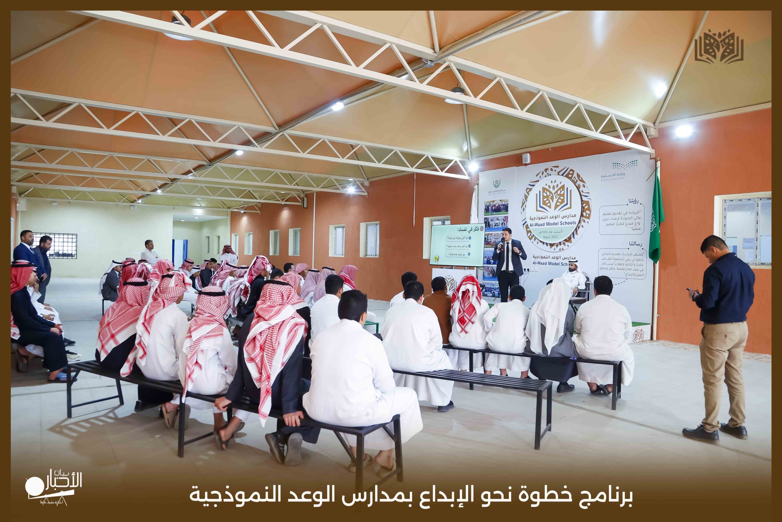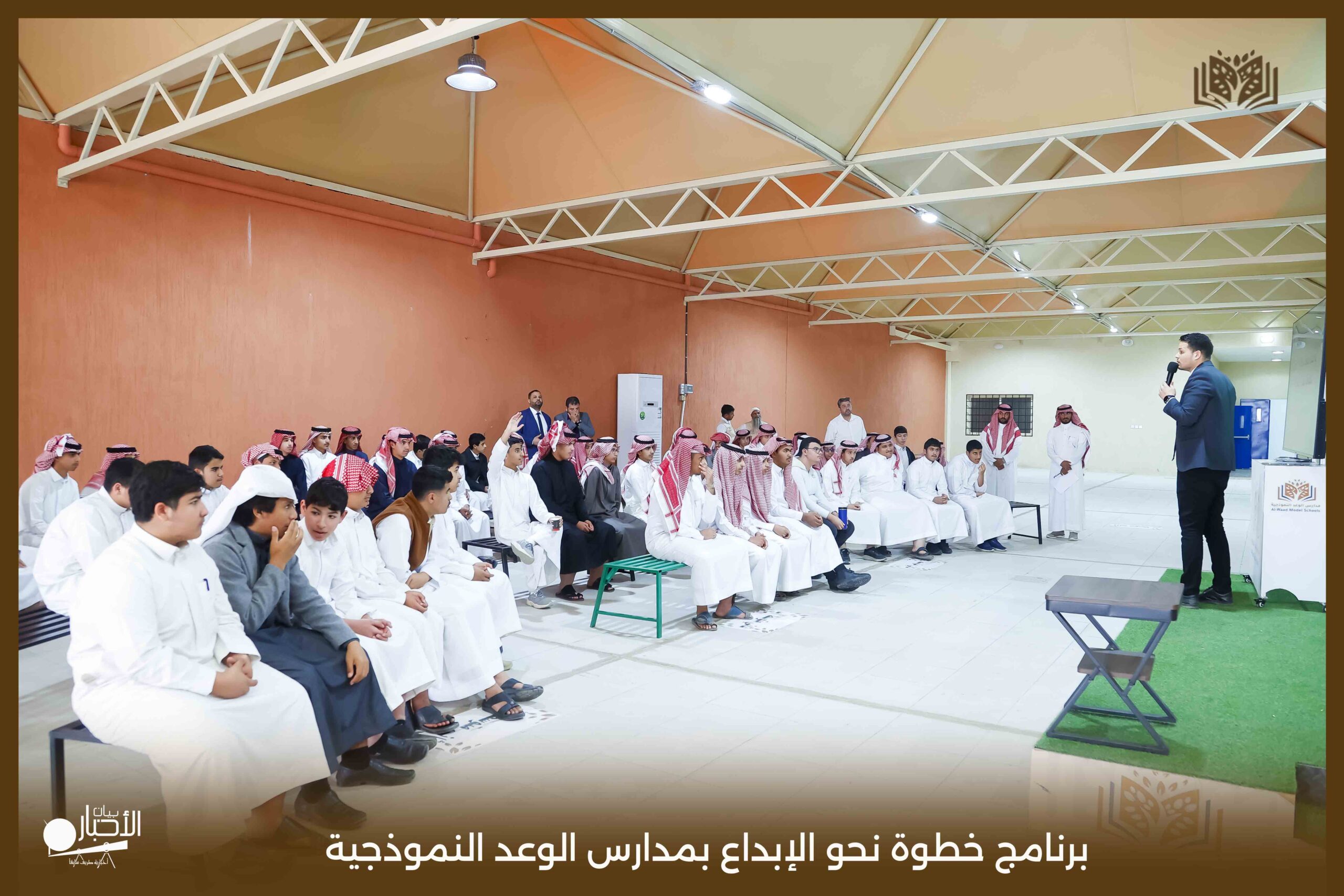 أقام اليوم الثلاثاء قسم الموهوبين بمدارس الوعد النموذجية بمحافظة طريف برنامج بعنوان خطوة نحو الإبداع حيث تناول البرنامج عدة محاور تتمثل في كيفية اكتشاف الموهبة وطرق حل المشكلات