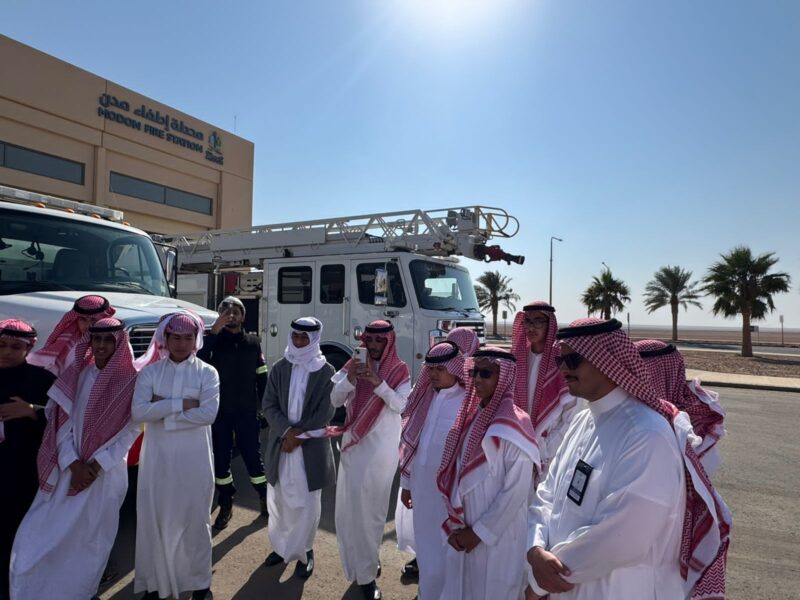 أقامت ثانوية الوعد النموذجية رحلة تثقيفية إلى محطة إطفاء مدن بمدينة وعد الشمال وذلك يوم الخميس الموافق 2025/11/06 لطلاب المرحلة الثانوية وكان في استقبال الطلاب مسؤولي المدينة الصناعية ومشرفي الامن الصناعي وزار الطلاب المصانع الجديدة ومحطة الاطفاء واطلعنا على معدات المحطة وجاهزيتها كما زار الطلاب مكاتب الإدارة و واطلعوا على مجسم للمدينة ومصانع الفوسفات معادن الحالية وخطتهم المستقبلية.