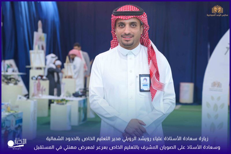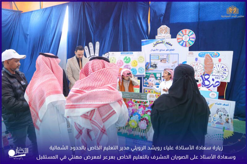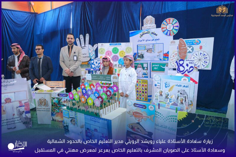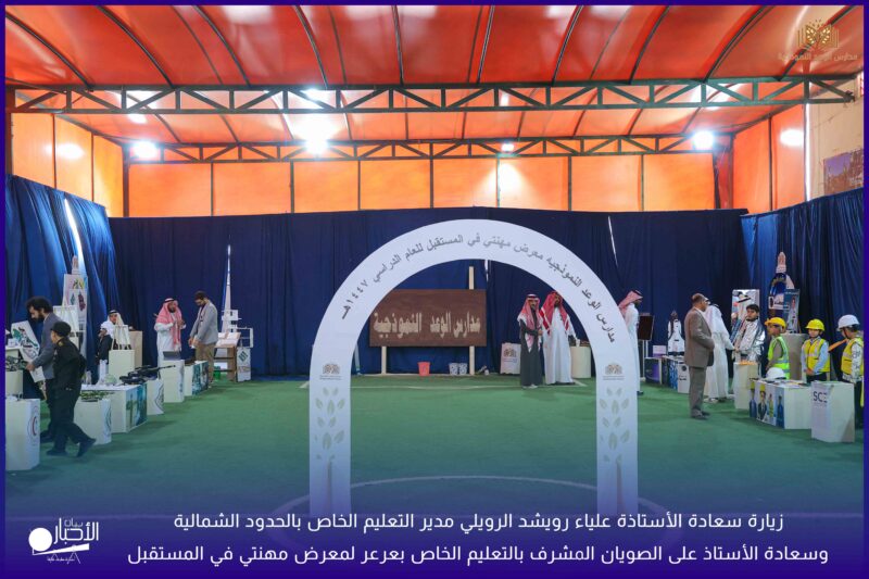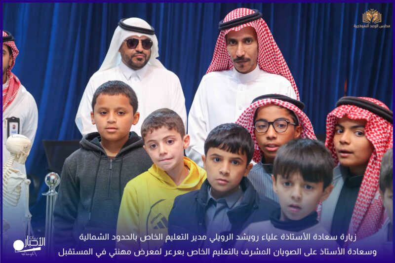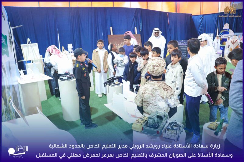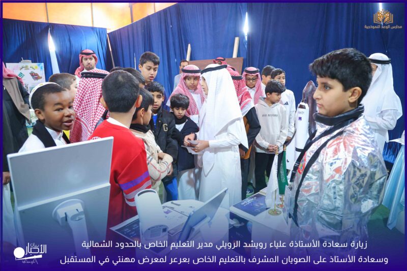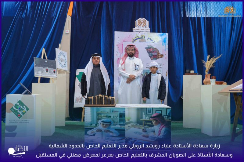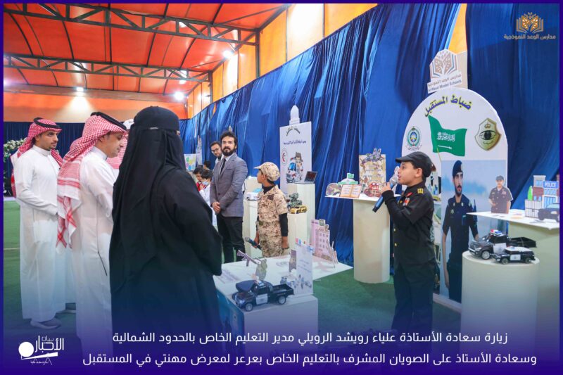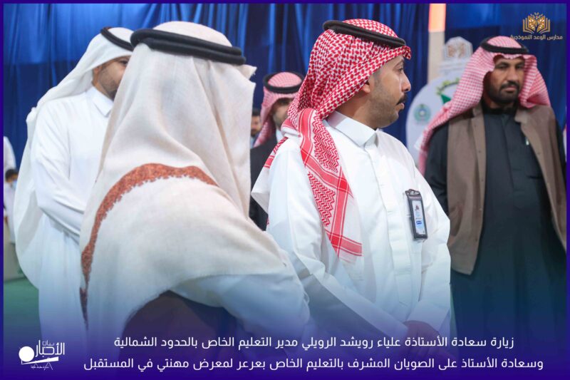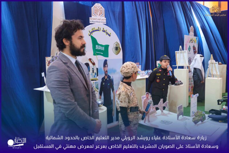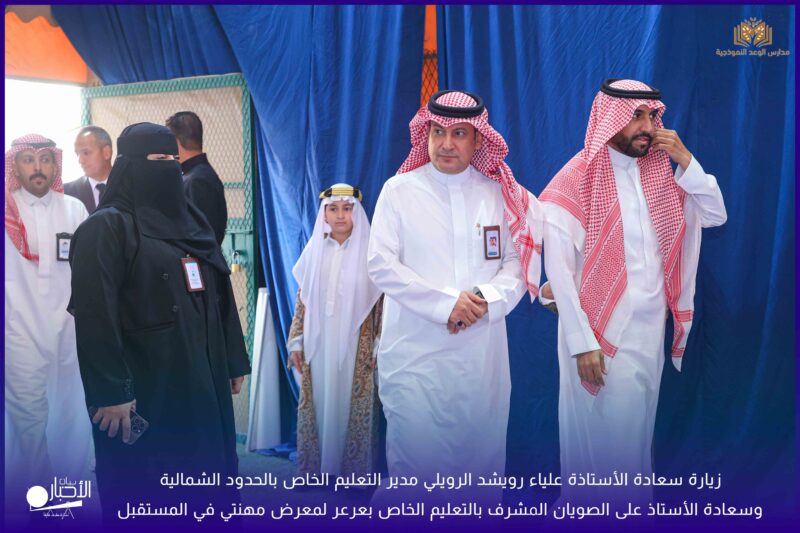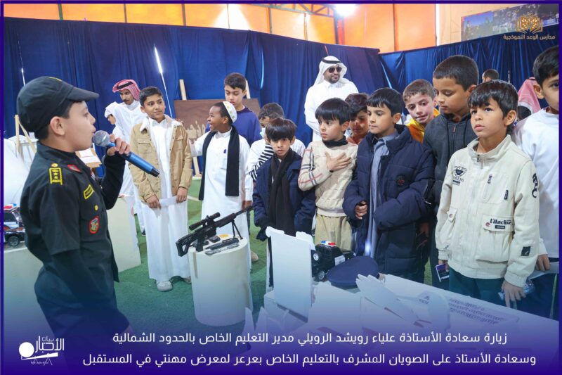 شرفت مدارس الوعد النموذجية الأهلية (المرحلة الابتدائية ) الخميس 13 / 11 /2025 بزيارة سعادة الأستاذة علياء رويشد الرويلي مدير التعليم الخاص بالحدود الشمالية وسعادة الأستاذ علي الصويان المشرف بالتعليم الخاص بعرعر لمعرض مهنتي في المستقبل المقام بمدارس الوعد النموذجية وكذلك زيارة بعض مدارس المرحلة الابتدائية بمحافظة طريف .