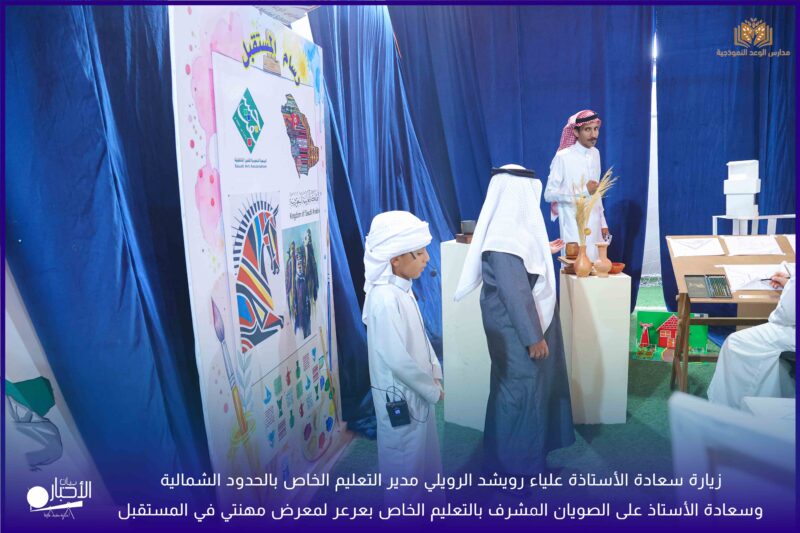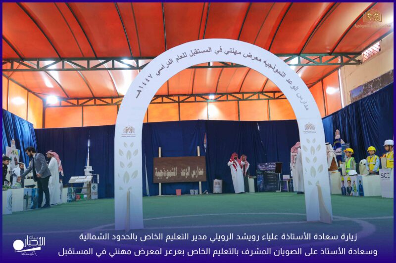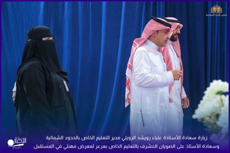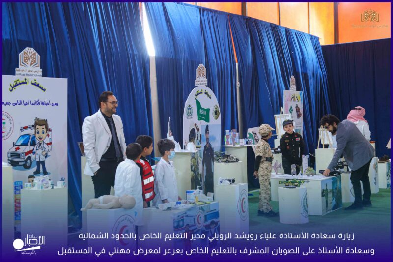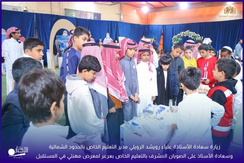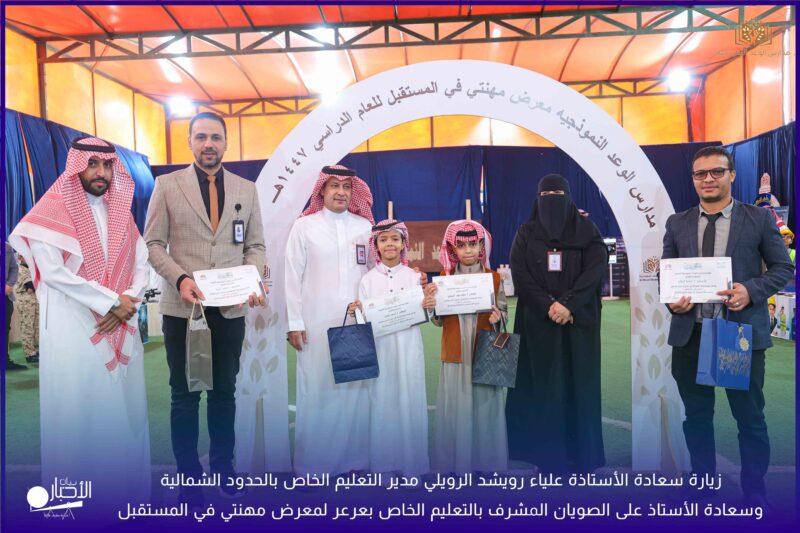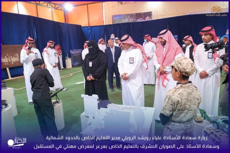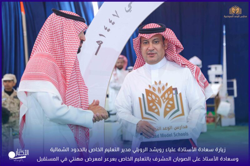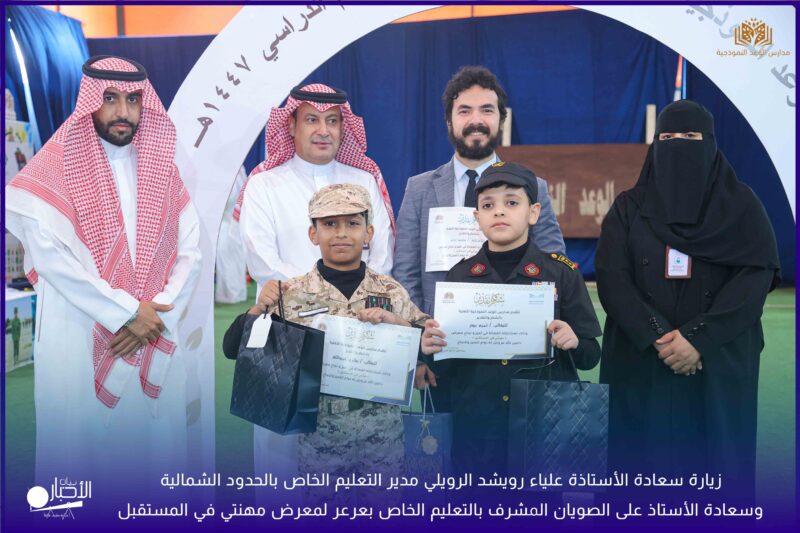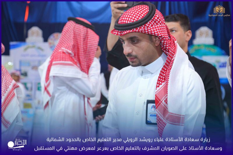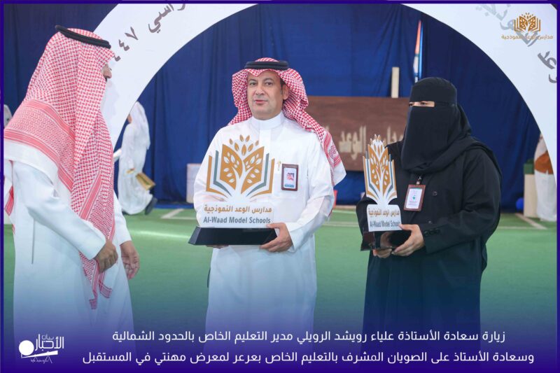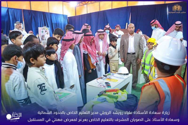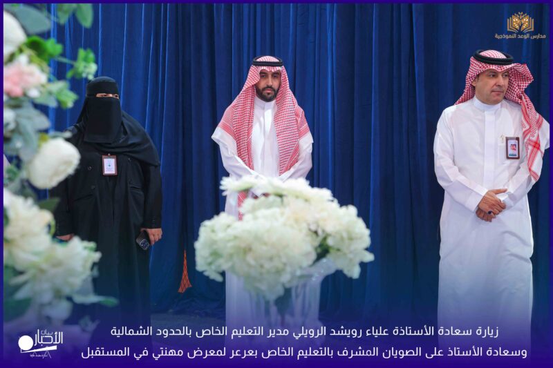 شرفت مدارس الوعد النموذجية الأهلية (المرحلة الابتدائية ) الخميس 13 / 11 /2025 بزيارة سعادة الأستاذة علياء رويشد الرويلي مدير التعليم الخاص بالحدود الشمالية وسعادة الأستاذ علي الصويان المشرف بالتعليم الخاص بعرعر لمعرض مهنتي في المستقبل المقام بمدارس الوعد النموذجية وكذلك زيارة بعض مدارس المرحلة الابتدائية بمحافظة طريف .
