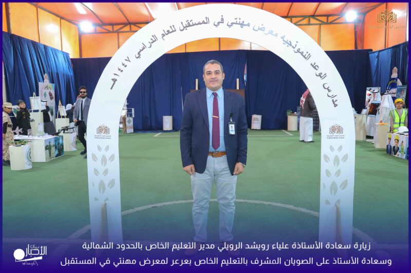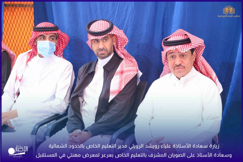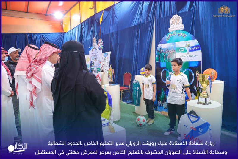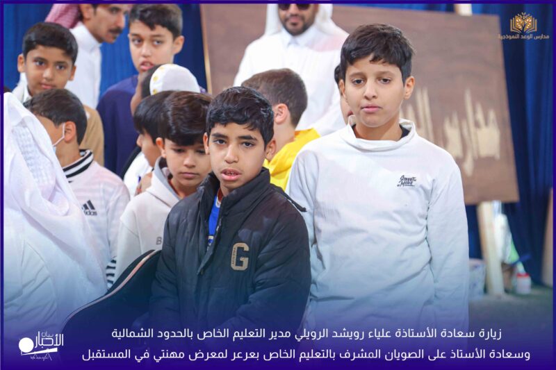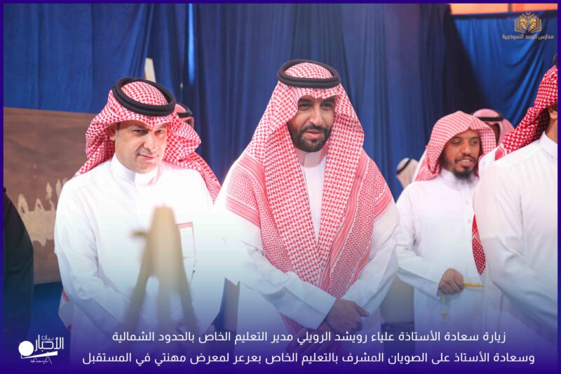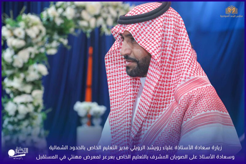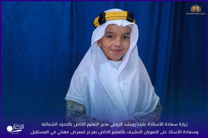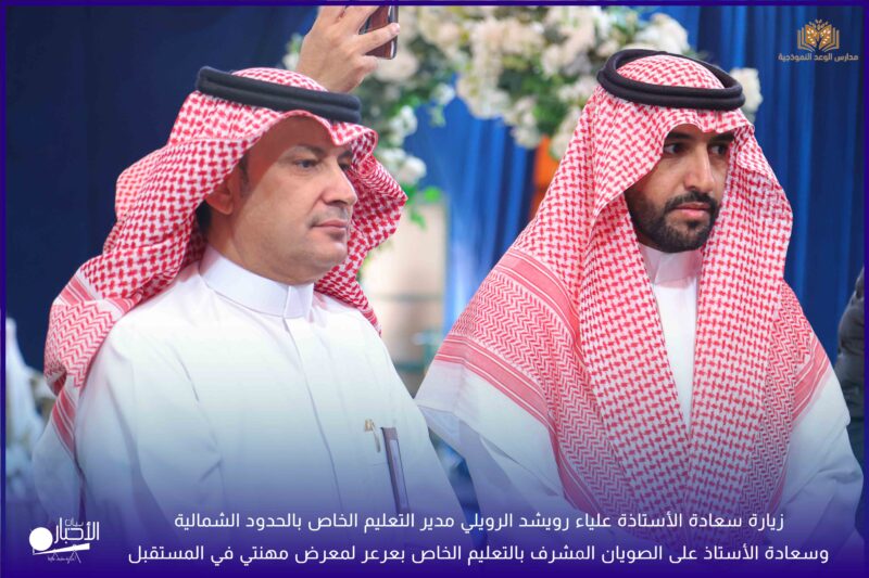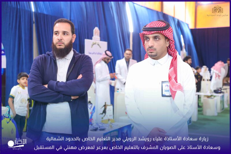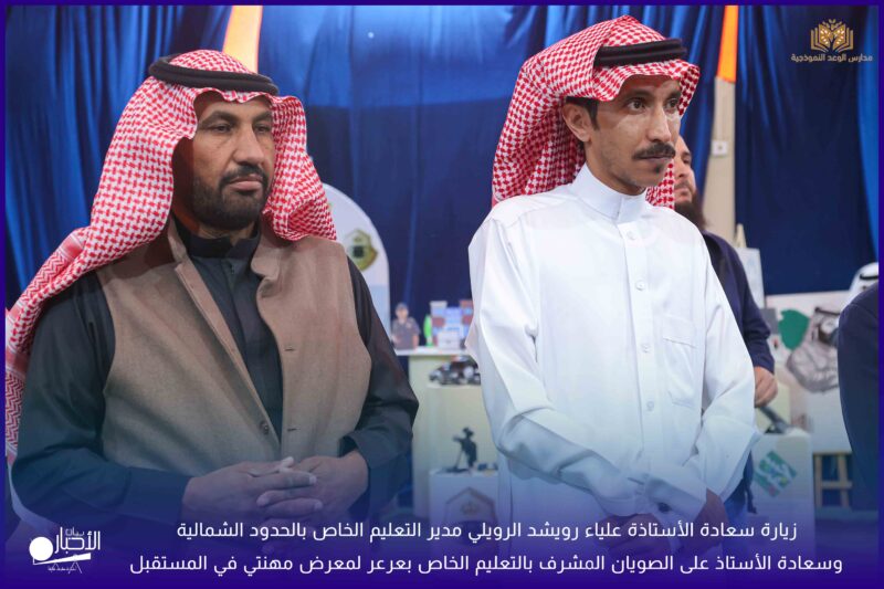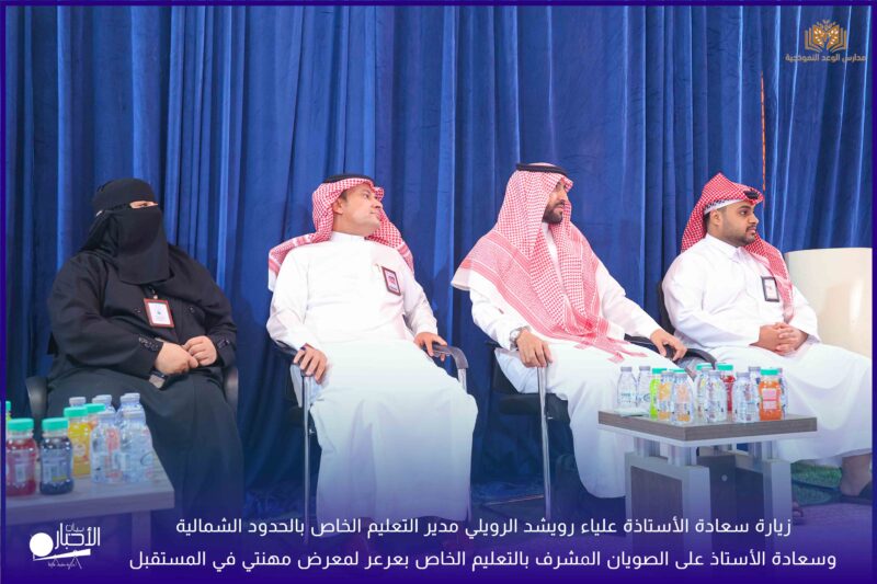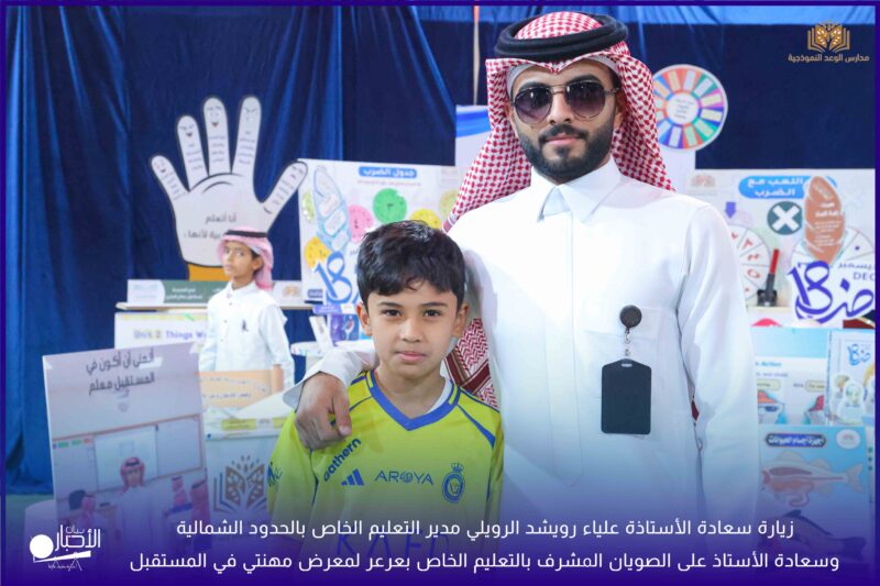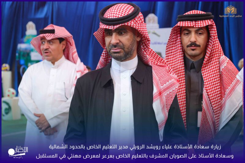 شرفت مدارس الوعد النموذجية الأهلية (المرحلة الابتدائية ) الخميس 13 / 11 /2025 بزيارة سعادة الأستاذة علياء رويشد الرويلي مدير التعليم الخاص بالحدود الشمالية وسعادة الأستاذ علي الصويان المشرف بالتعليم الخاص بعرعر لمعرض مهنتي في المستقبل المقام بمدارس الوعد النموذجية وكذلك زيارة بعض مدارس المرحلة الابتدائية بمحافظة طريف .