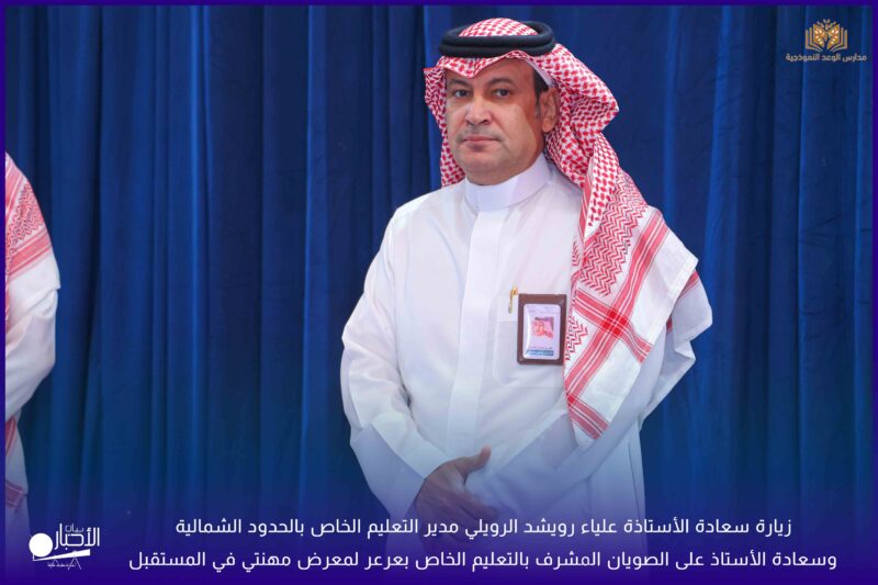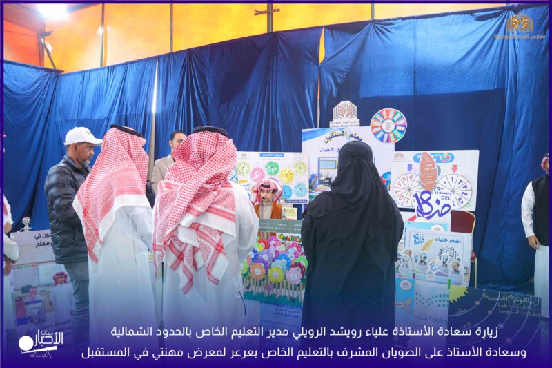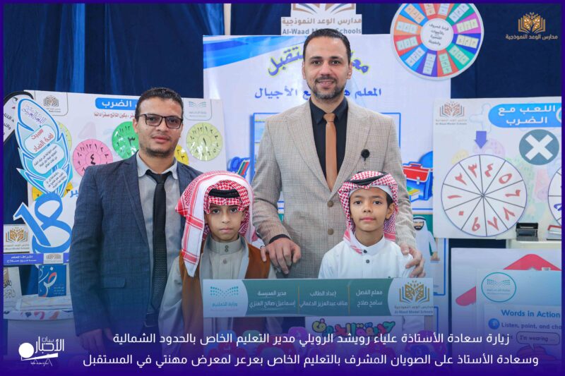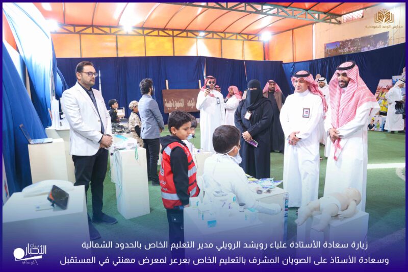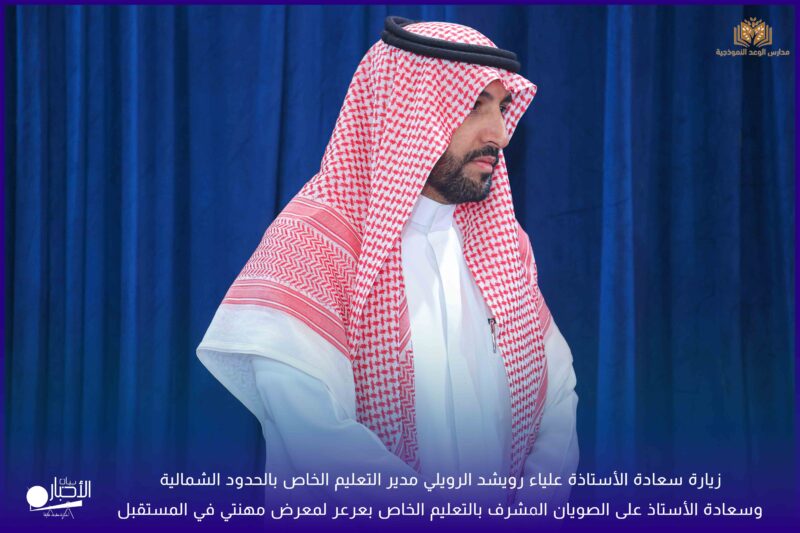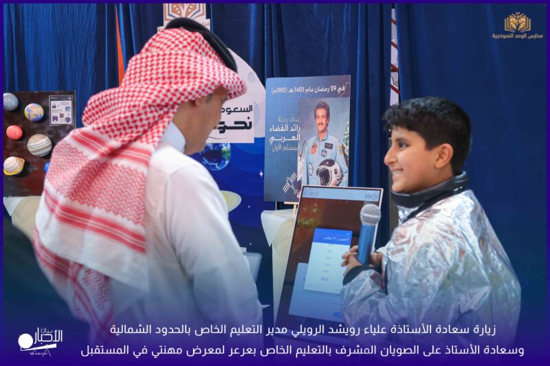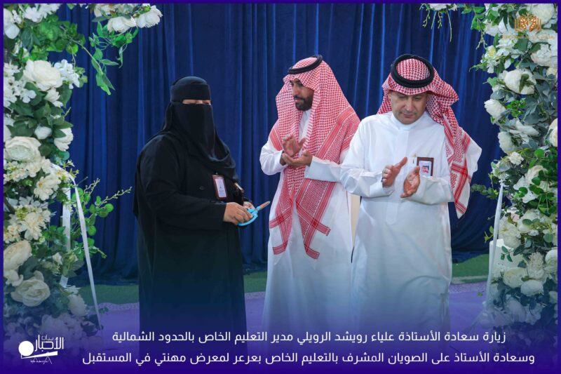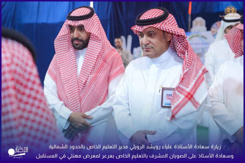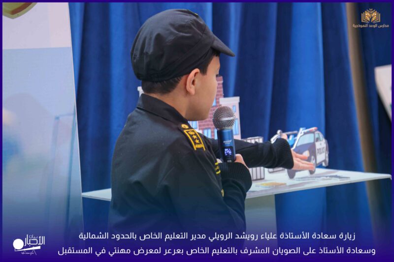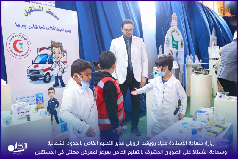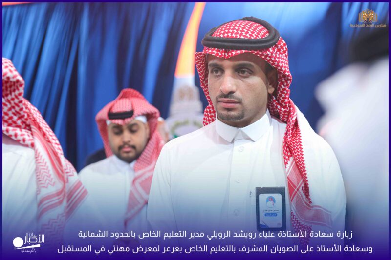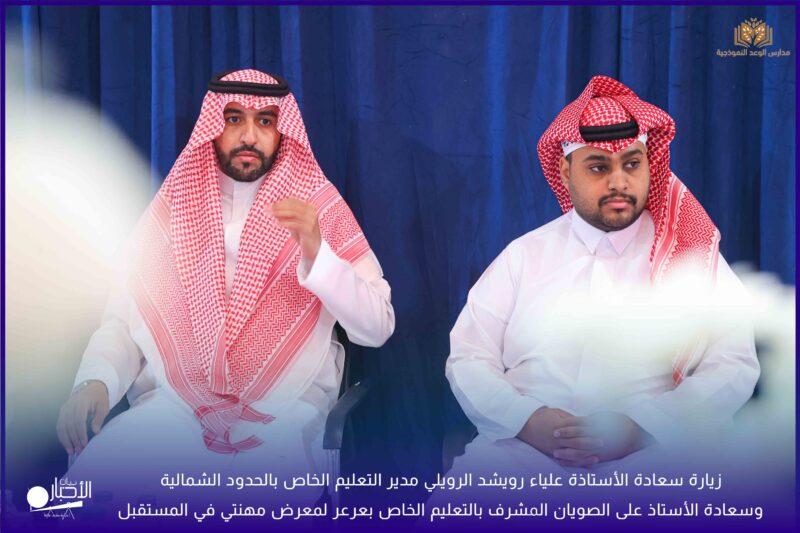 شرفت مدارس الوعد النموذجية الأهلية (المرحلة الابتدائية ) الخميس 13 / 11 /2025 بزيارة سعادة الأستاذة علياء رويشد الرويلي مدير التعليم الخاص بالحدود الشمالية وسعادة الأستاذ علي الصويان المشرف بالتعليم الخاص بعرعر لمعرض مهنتي في المستقبل المقام بمدارس الوعد النموذجية وكذلك زيارة بعض مدارس المرحلة الابتدائية بمحافظة طريف .