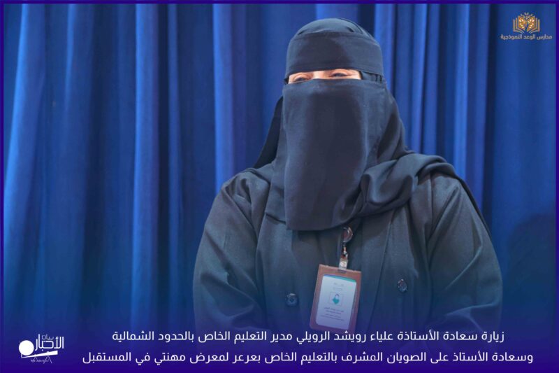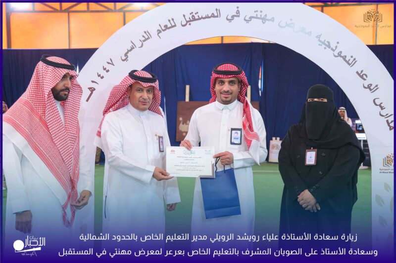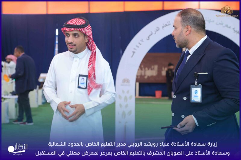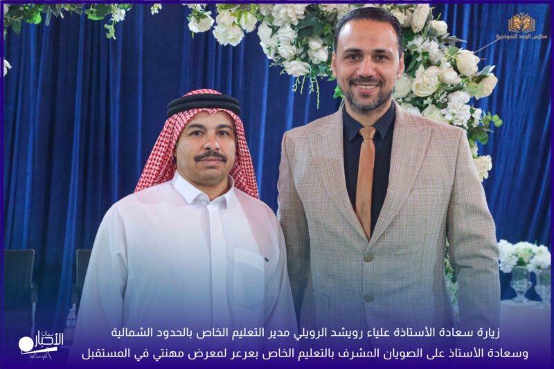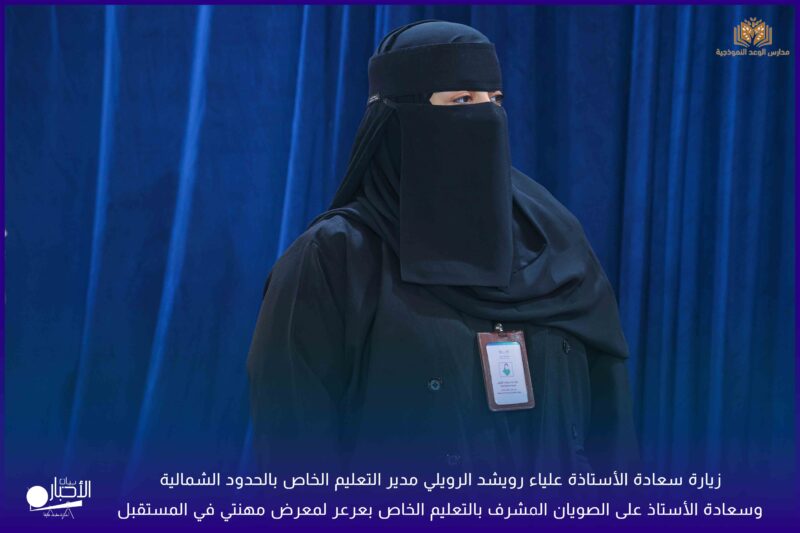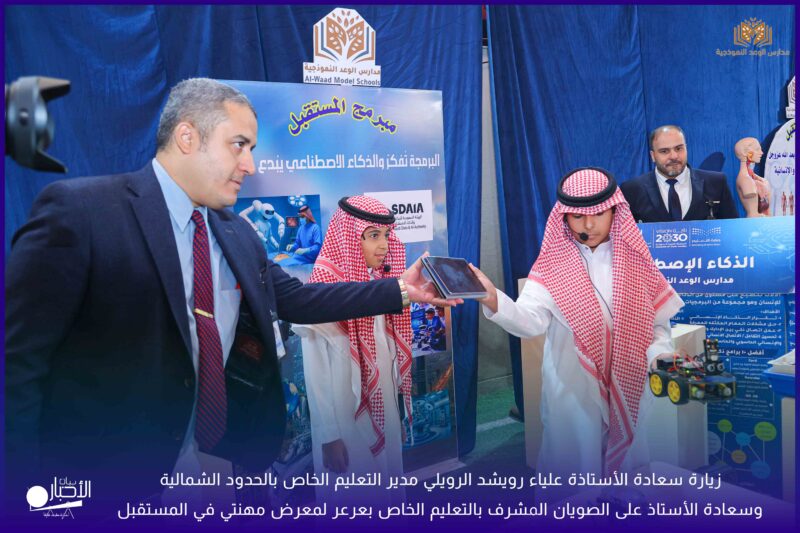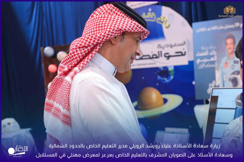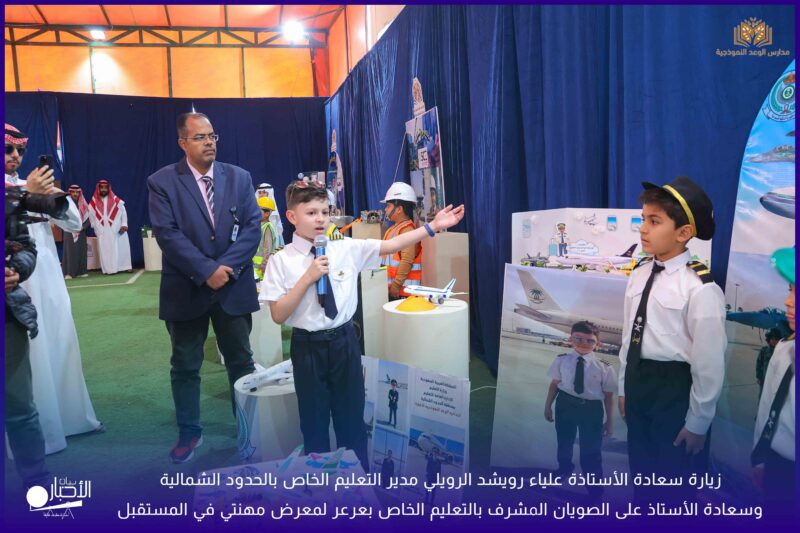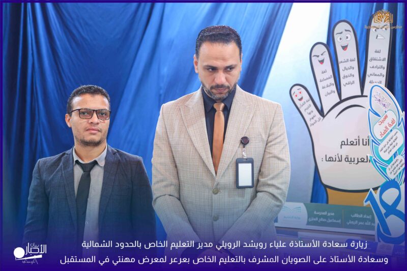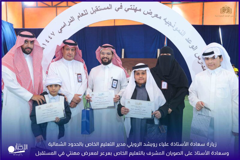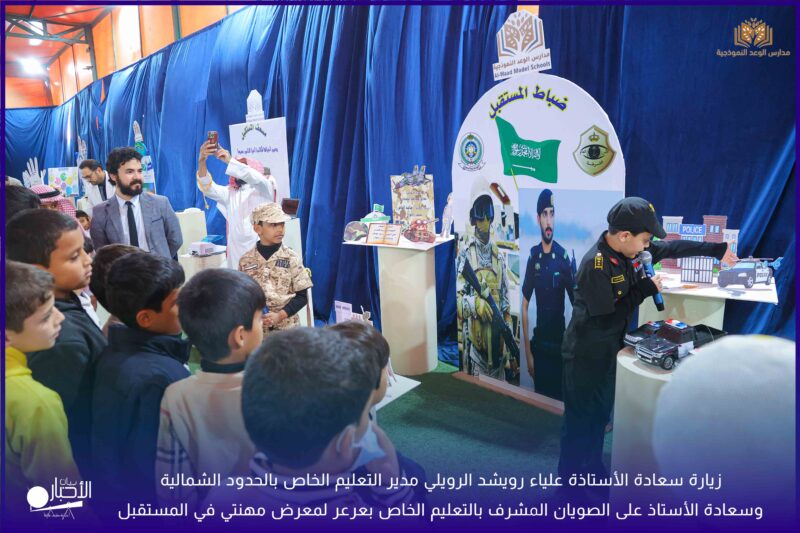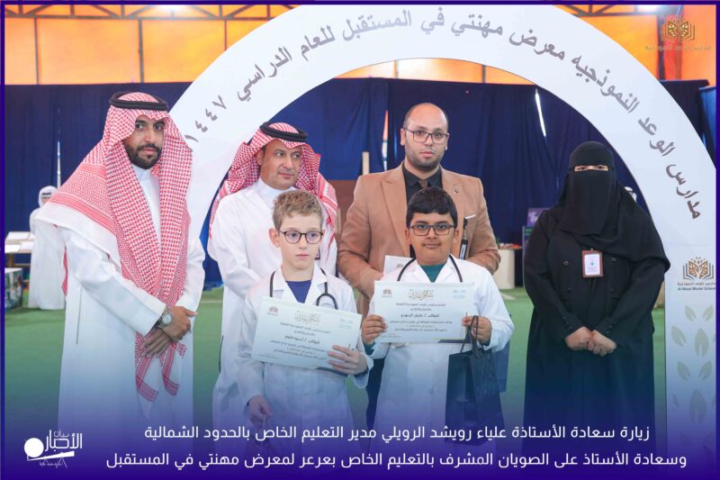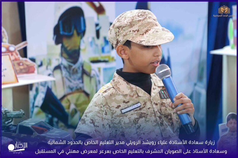 شرفت مدارس الوعد النموذجية الأهلية (المرحلة الابتدائية ) الخميس 13 / 11 /2025 بزيارة سعادة الأستاذة علياء رويشد الرويلي مدير التعليم الخاص بالحدود الشمالية وسعادة الأستاذ علي الصويان المشرف بالتعليم الخاص بعرعر لمعرض مهنتي في المستقبل المقام بمدارس الوعد النموذجية وكذلك زيارة بعض مدارس المرحلة الابتدائية بمحافظة طريف .